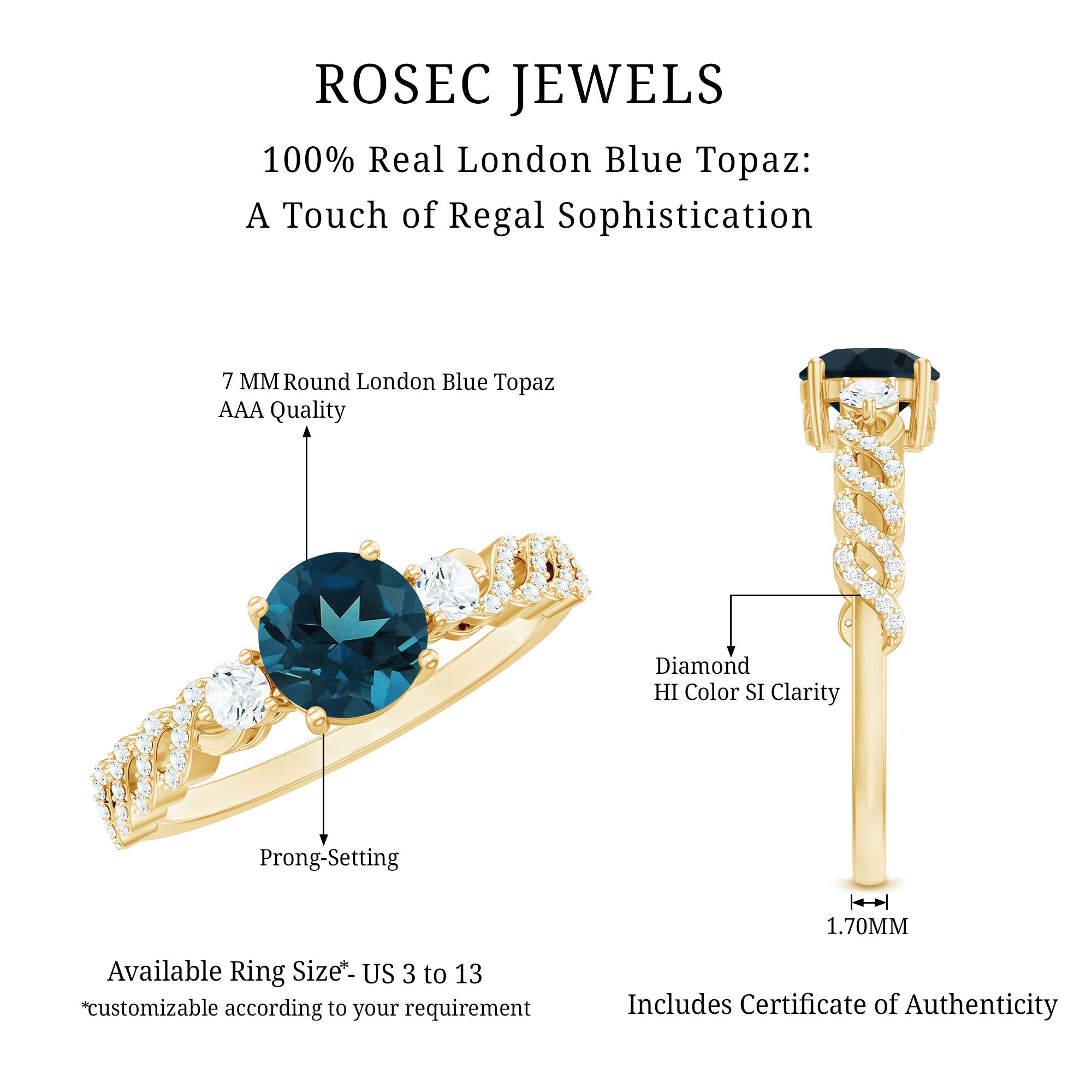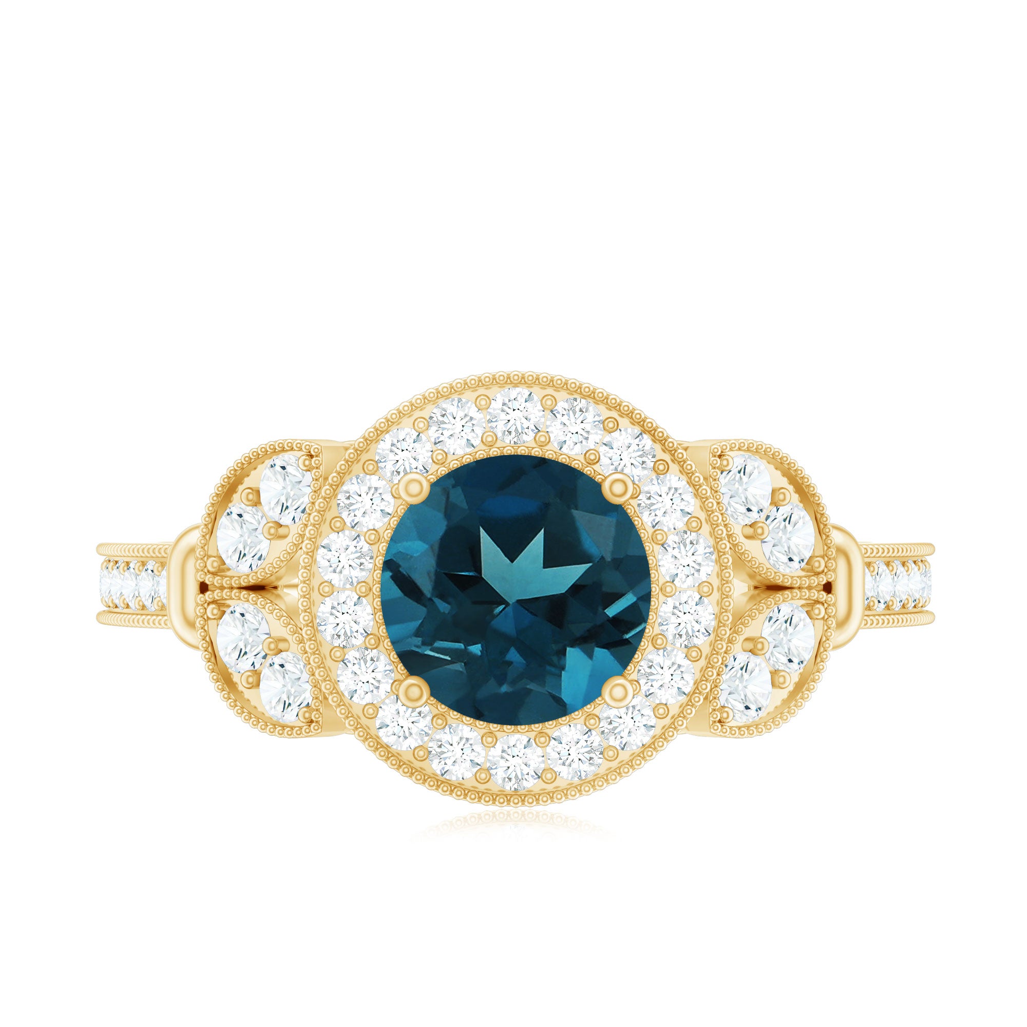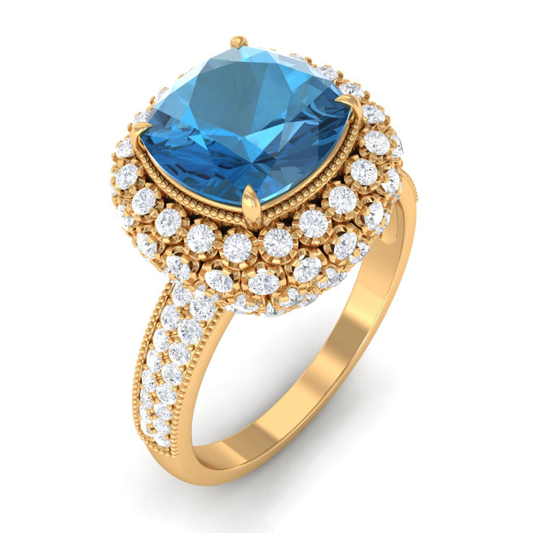 Turning back time, a Vintage London Blue Topaz Ring boasts iconic designs from Edwardian, Victorian, and Art-Deco Eras. It is ornately crafted with Milgrain, filigree, and other retro engravings along with abstract patterns that ooze an old-world vibe. A Vintage-inspired London Blue Topaz Engagement Ring is preferred by those that like an emblem of love that connects with a historic story.