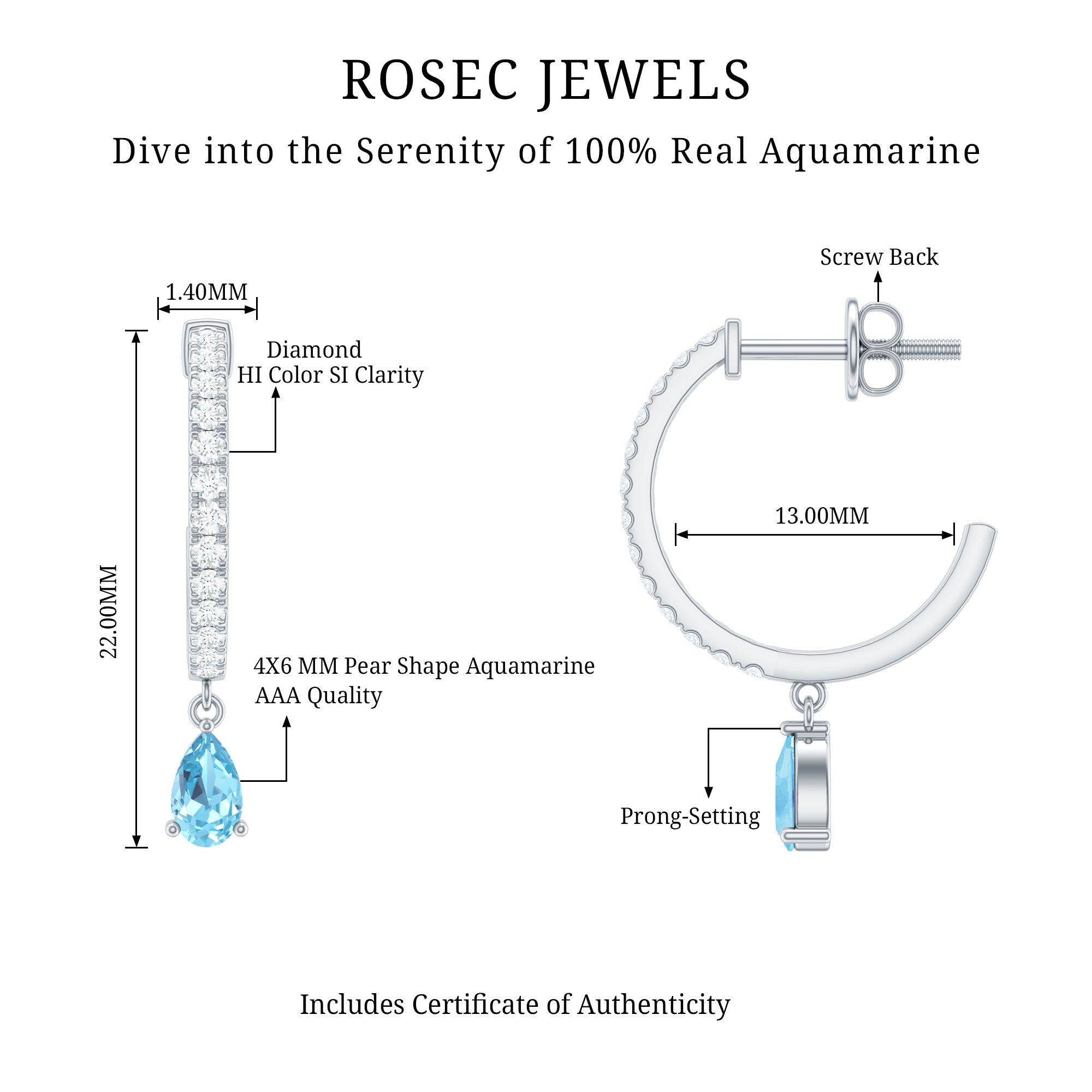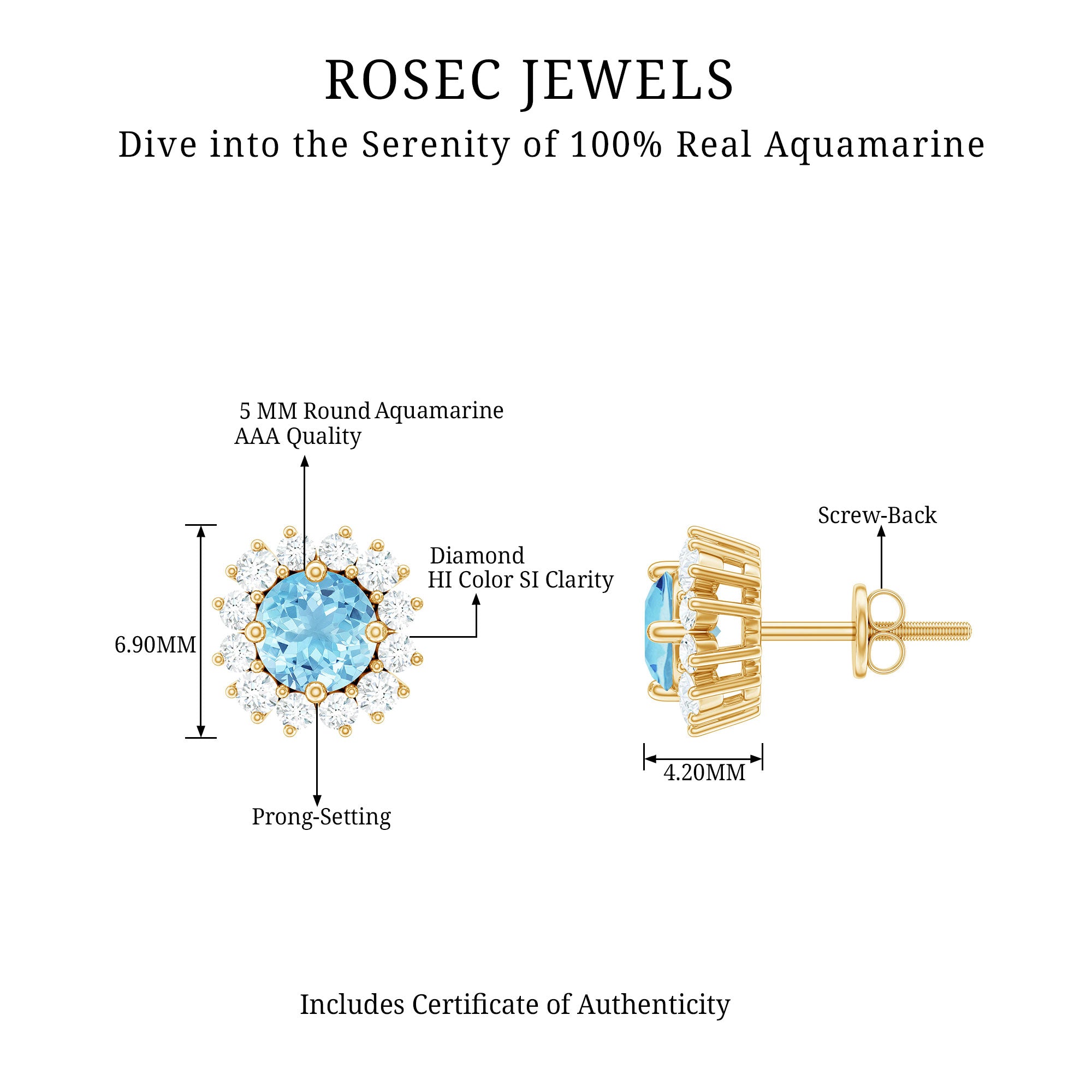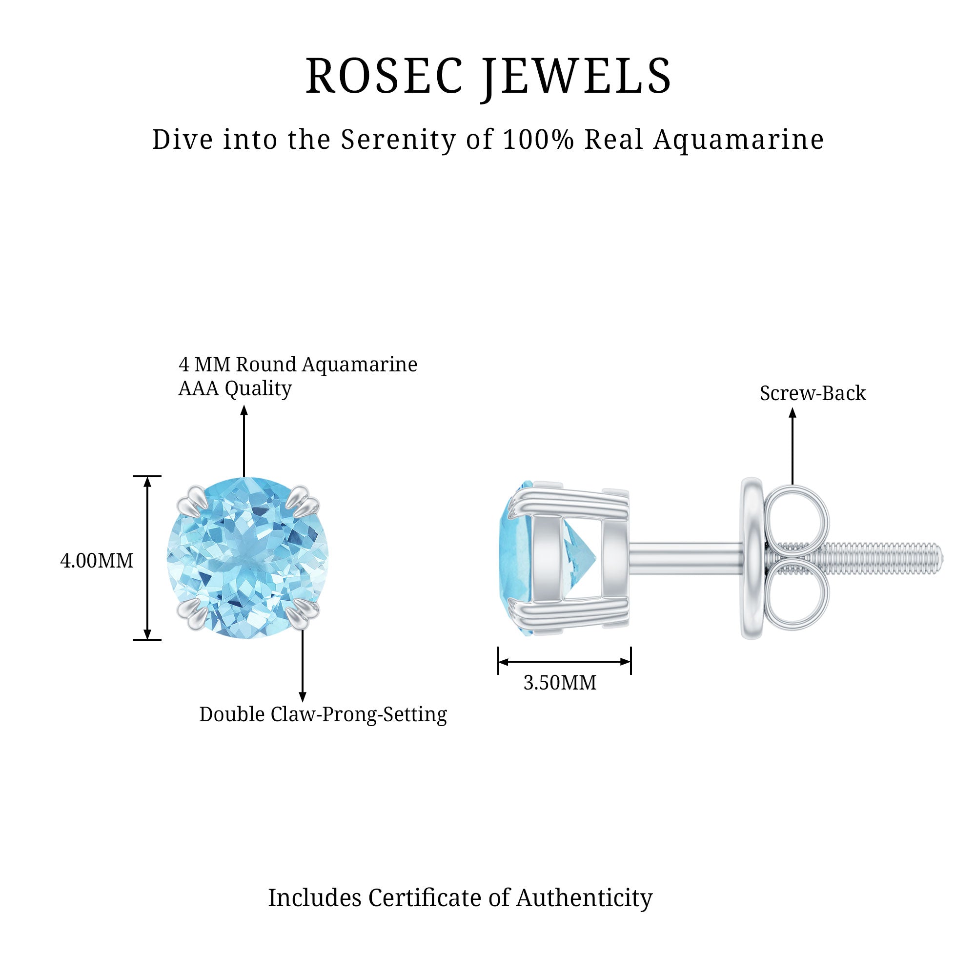 • Carat: The carat weight of Aquamarine jewelry typically ranges between 0.25 to 4 CT.