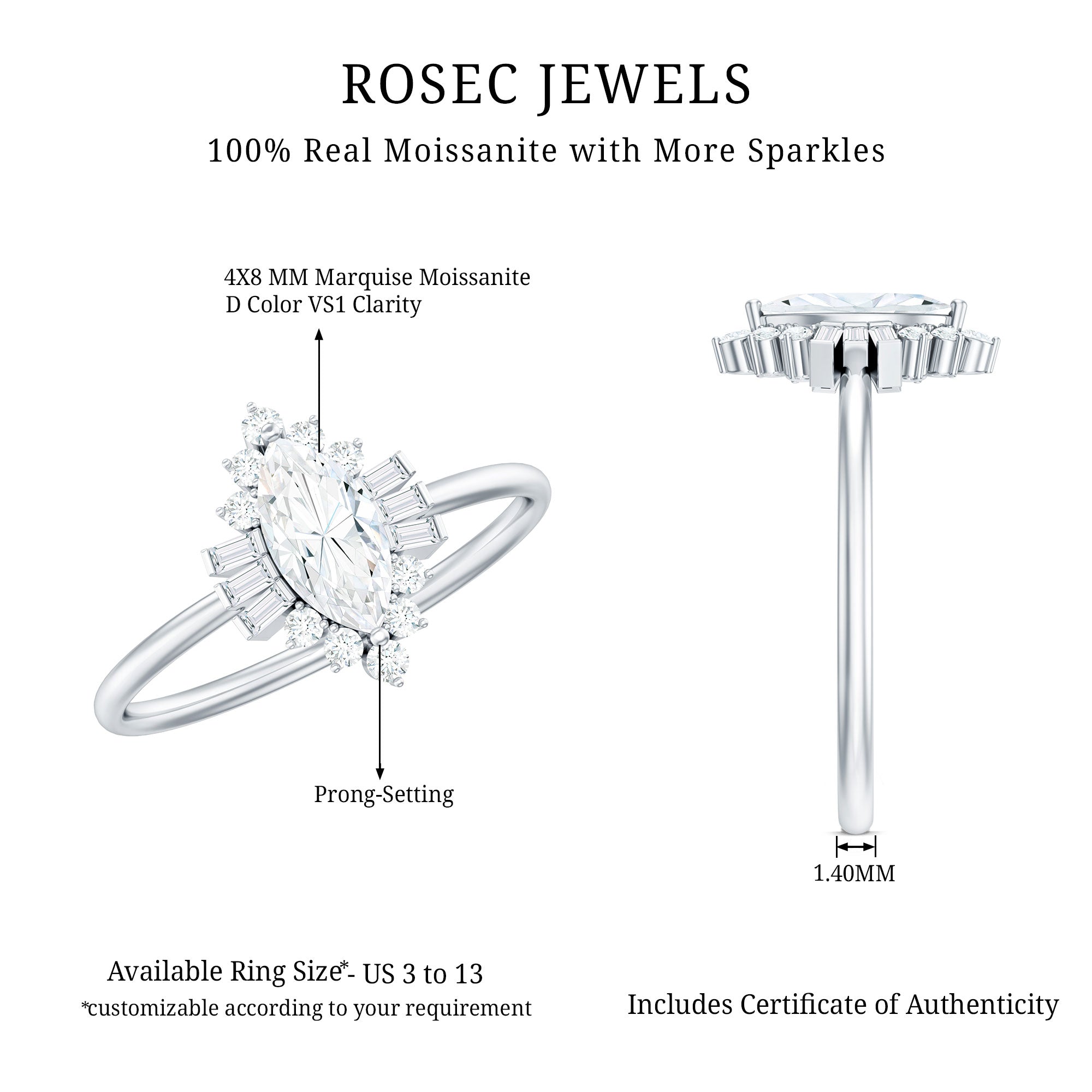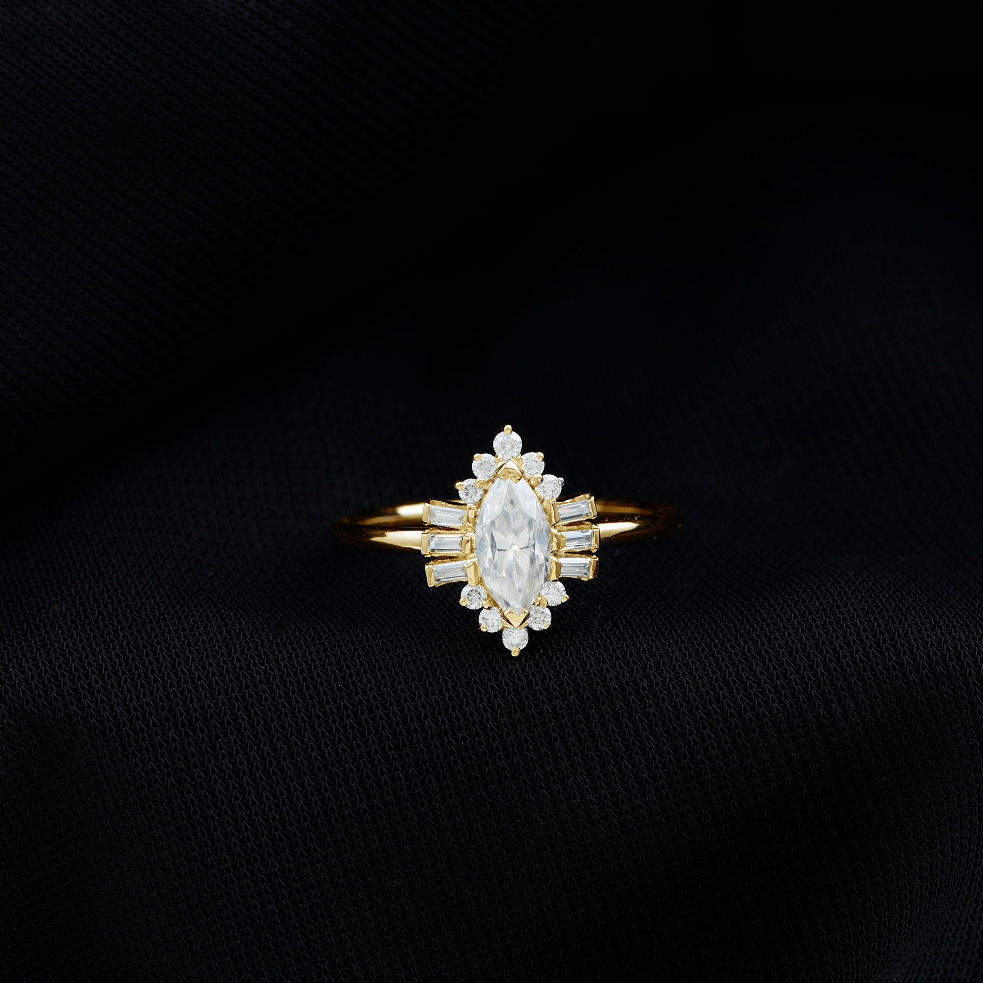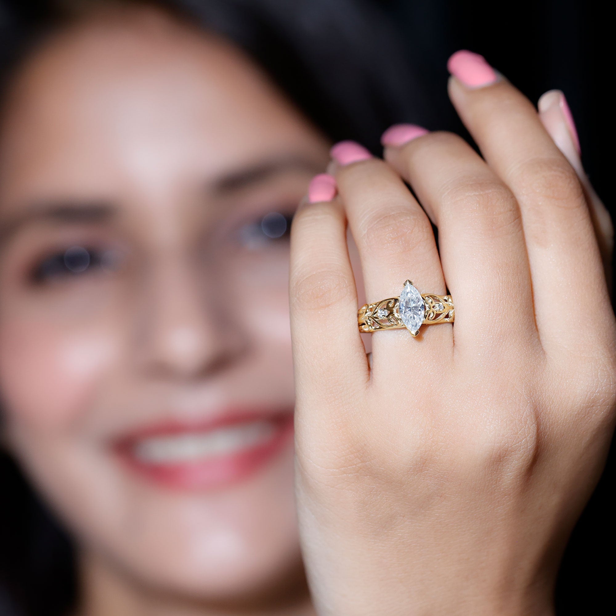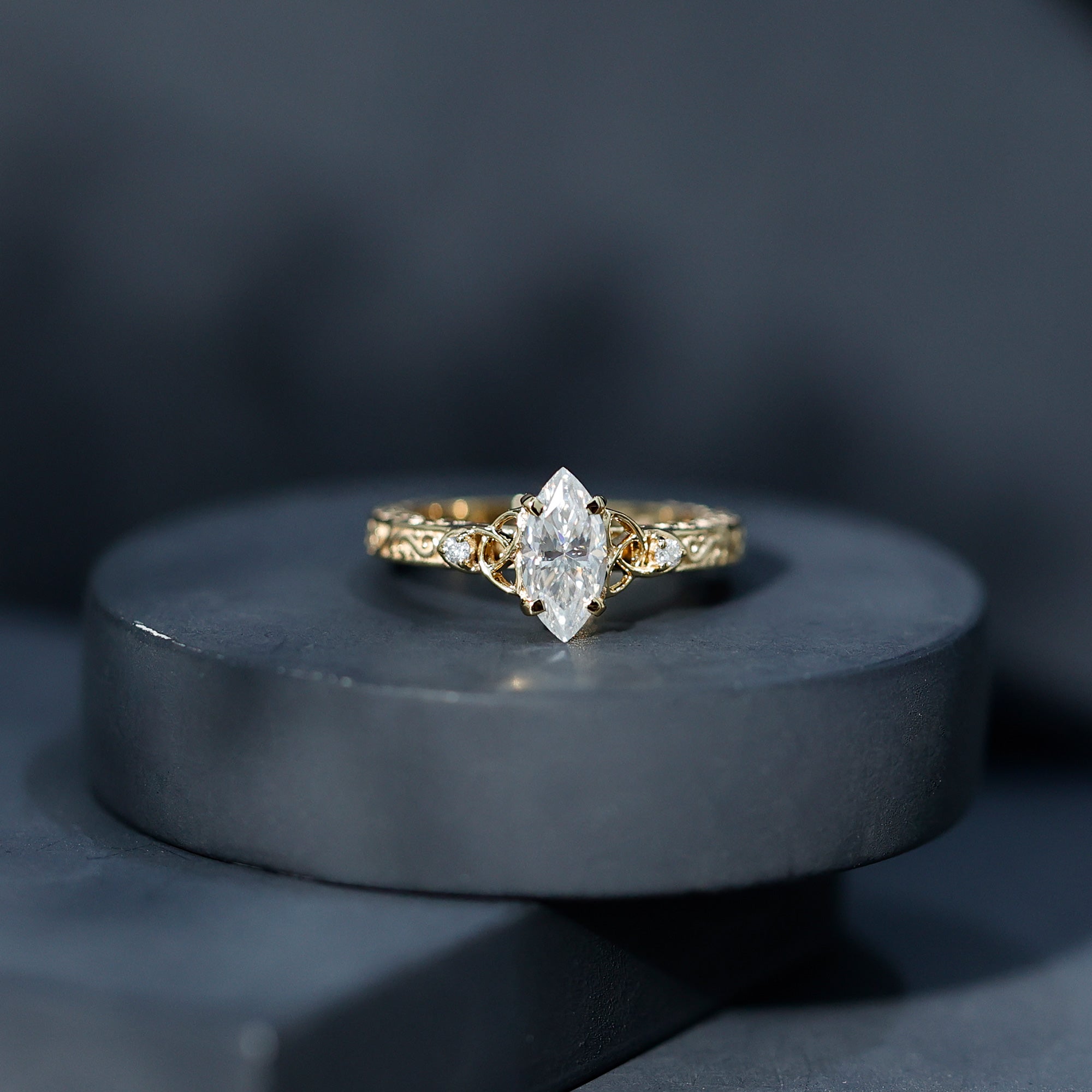 Elongated and elegant shape of the marquise gemstone makes this ring a choice for those who look for alternatives in traditional shapes.
