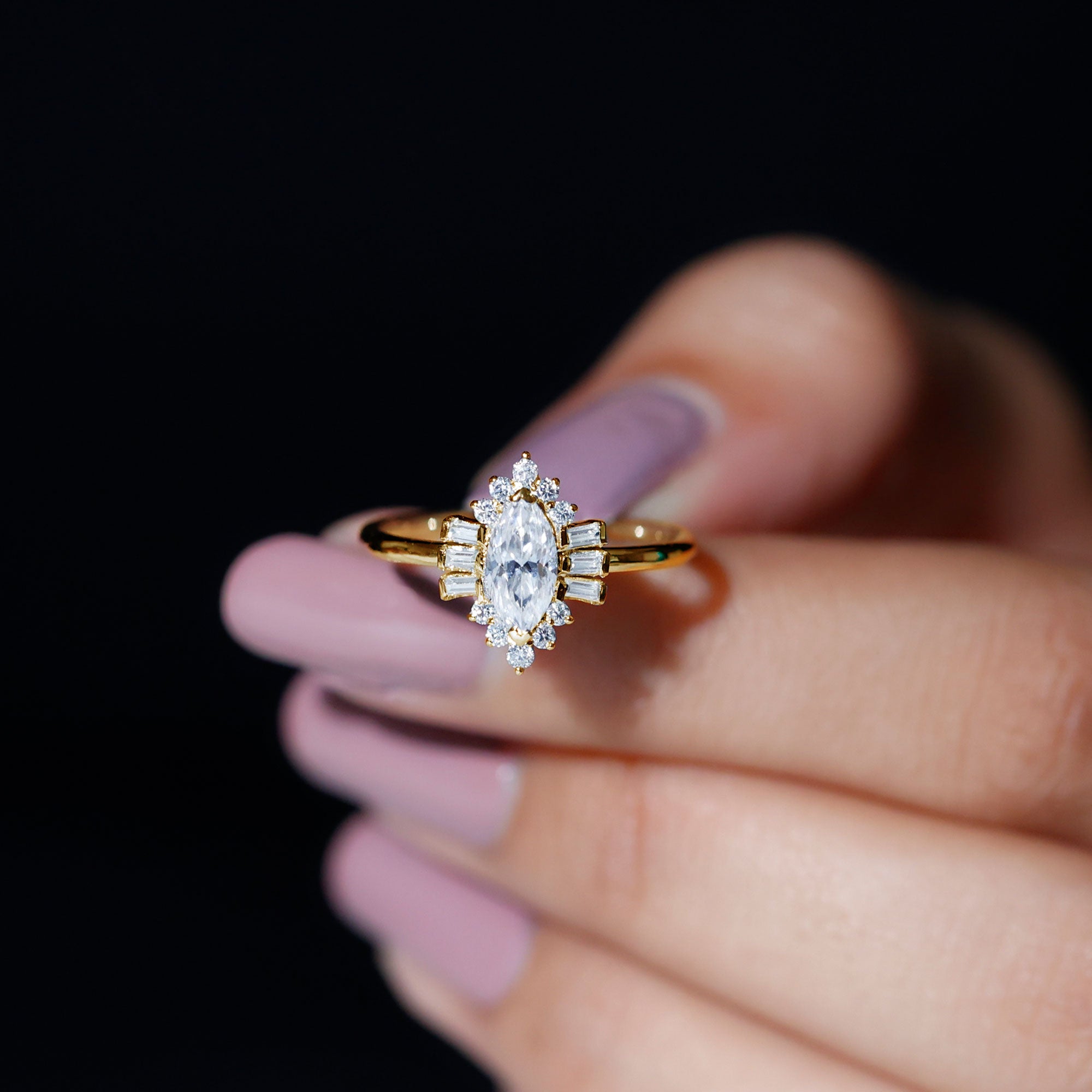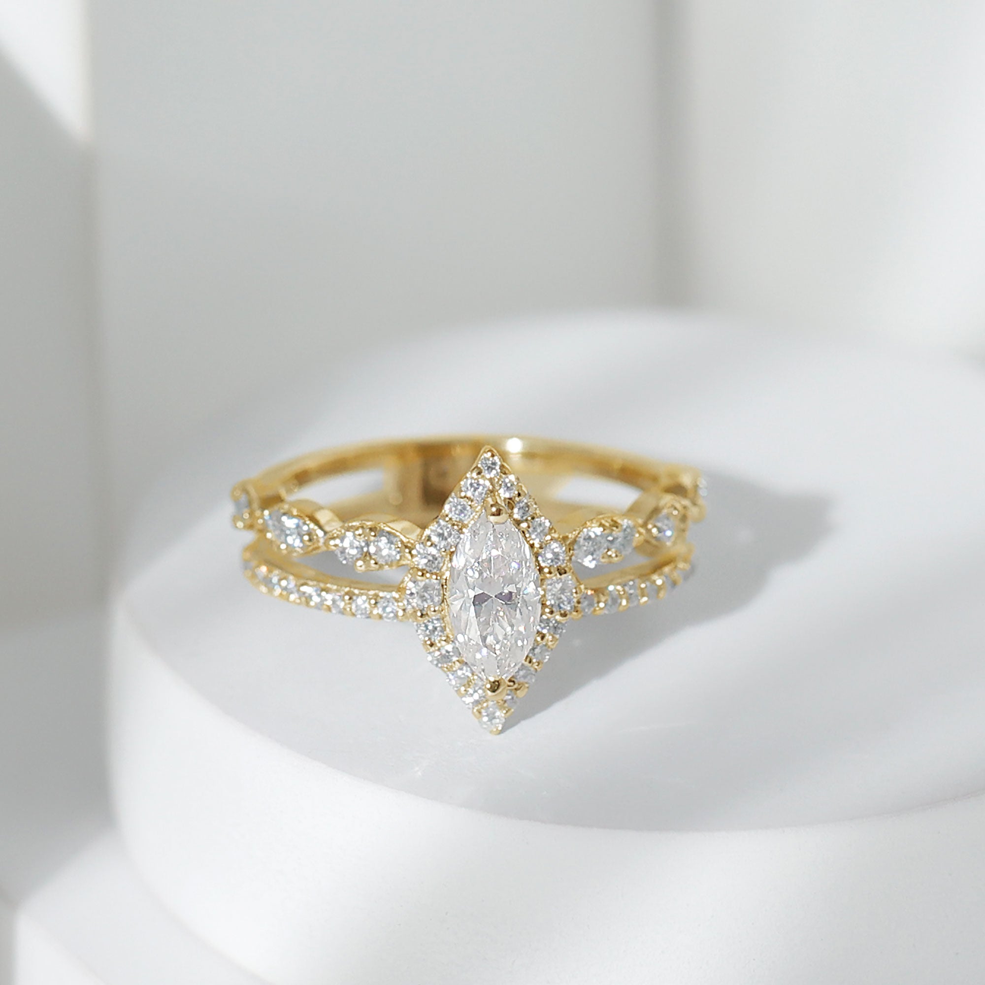 Choose a trusted jeweler with proven expertise and a wide catalogue of designs. Ensure they provide authentication certificates for both the gemstones and the metals used in your marquise halo engagement ring.