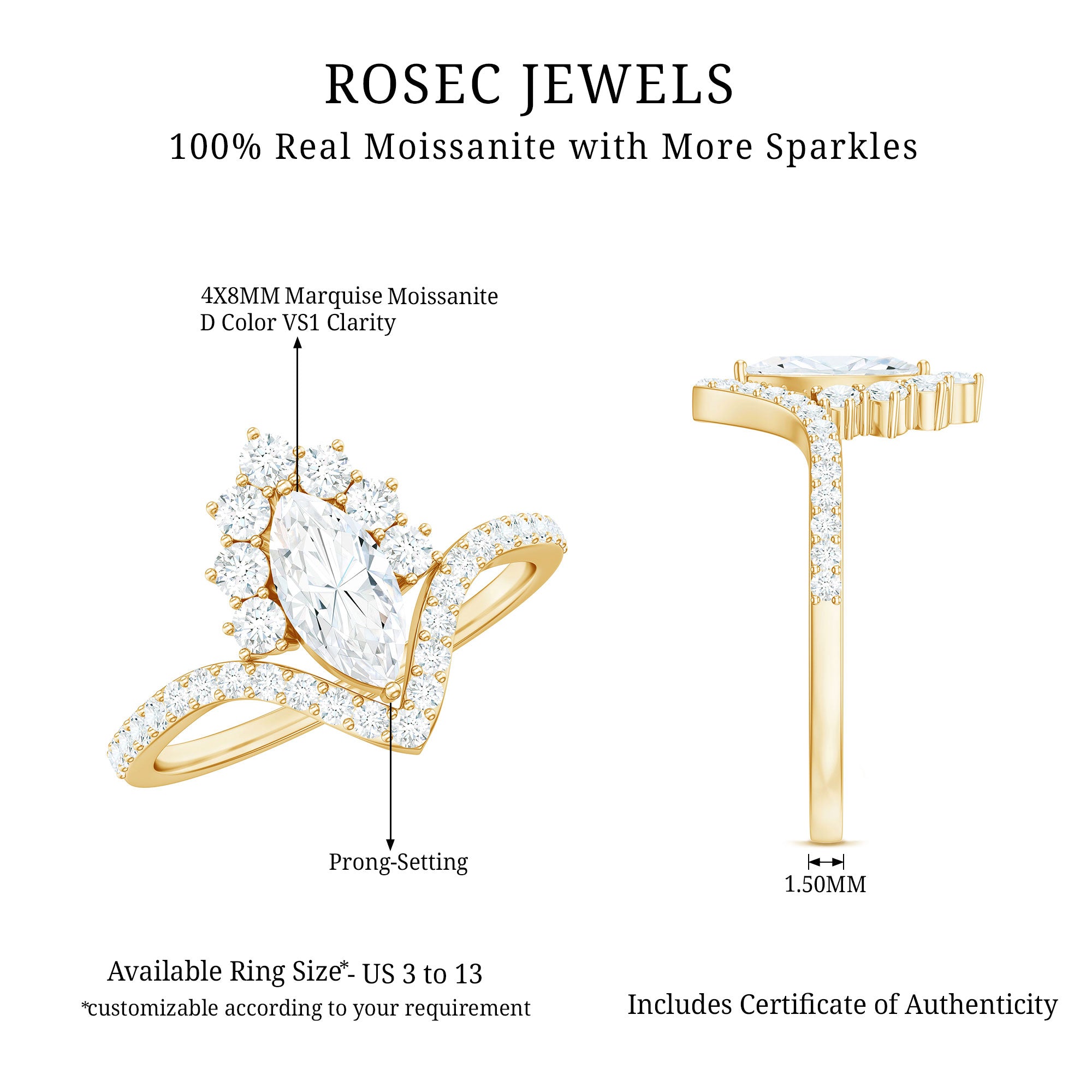 Marquise engagement rings are for those who look for distinctive and eye-catching designs. The unique, elongated shape with a boat-like curve and pointed ends makes these bold rings truly stand out.