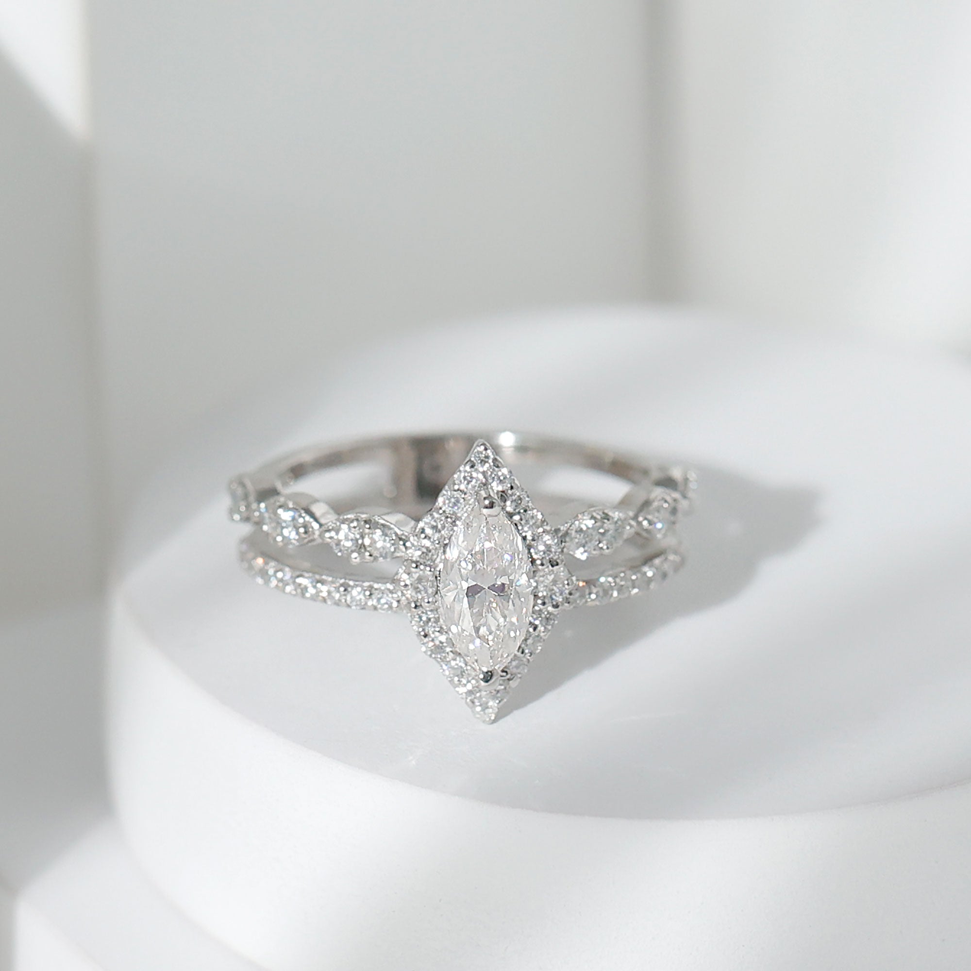 Solitaire, halo, two stone, three stone, vintage inspired and minimal are some of the popular marquise engagement ring designs.