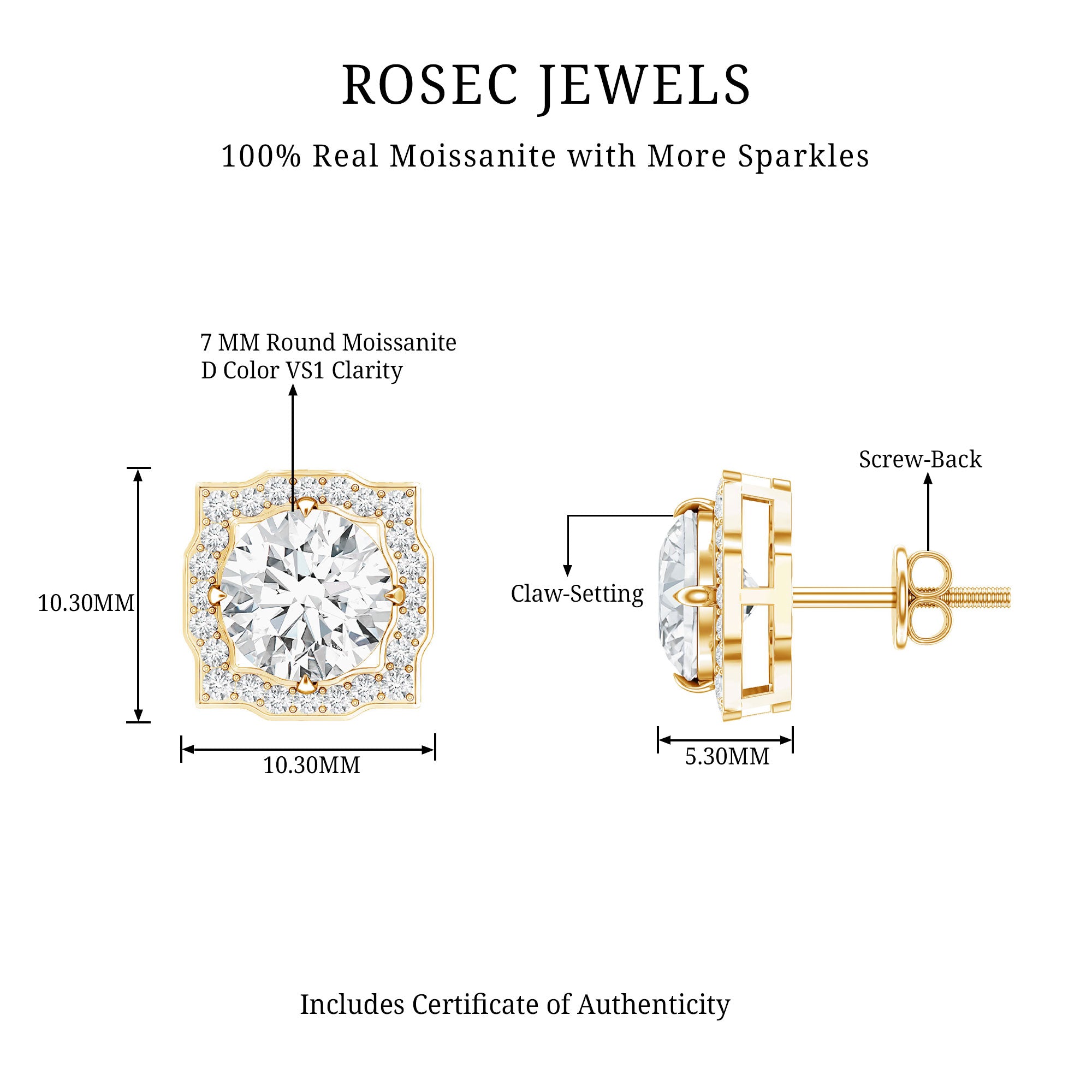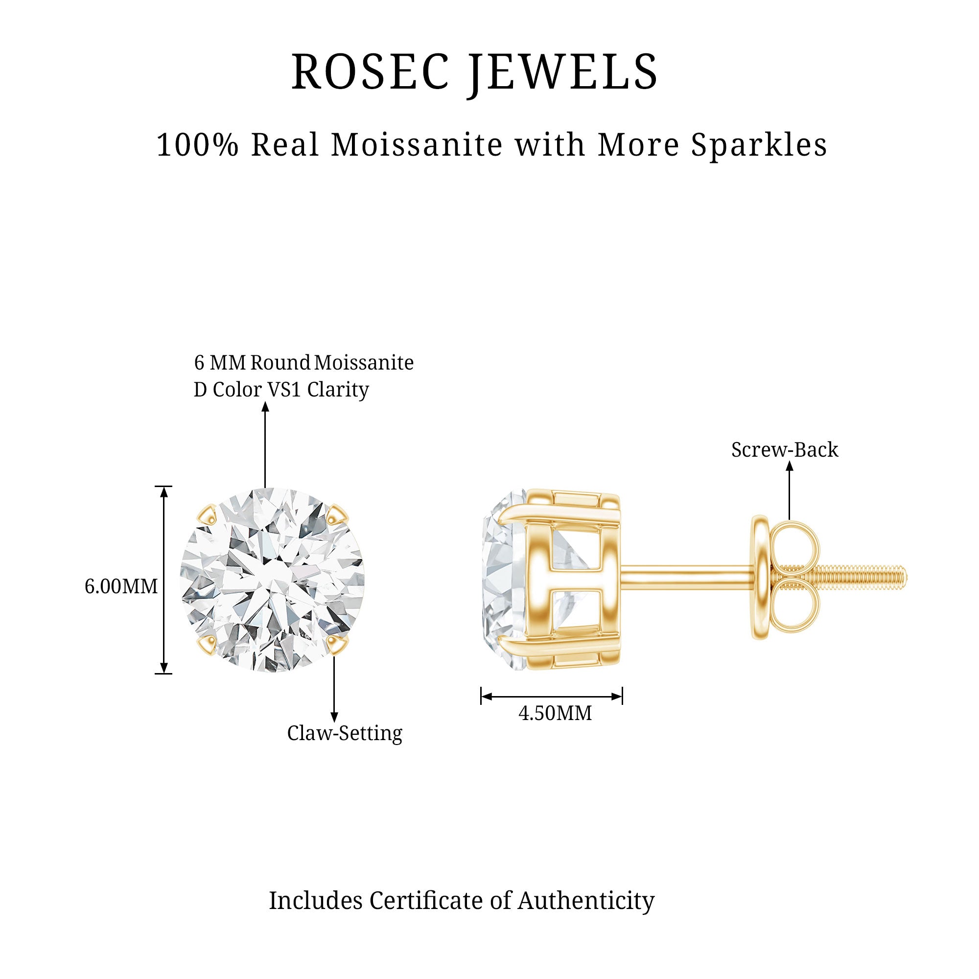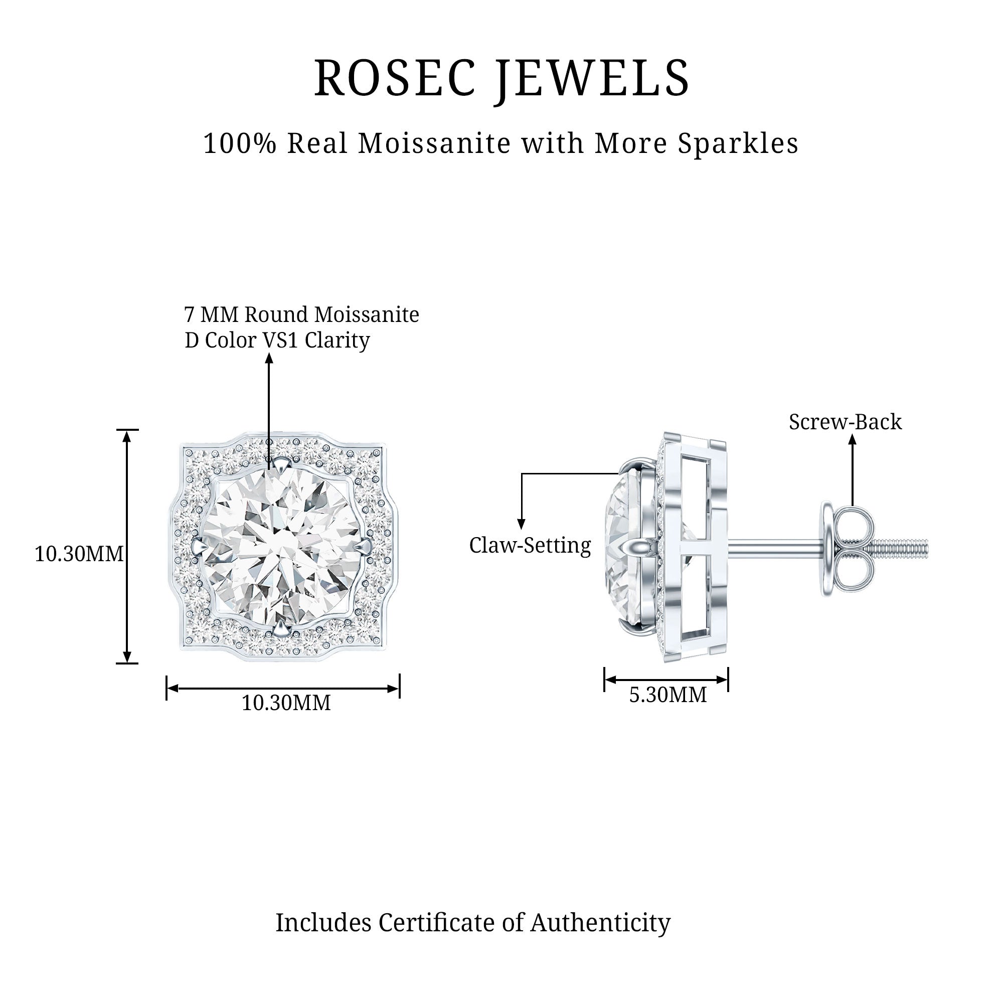 Our D color VS1 quality moissanite gems are of the highest quality, carefully selected for their amazing clarity and brilliance. Each pair of our high-quality moissanite earrings is crafted to ensure maximum fire and sparkle, providing a stunning look like the beauty of diamonds, but at a fraction of the cost.