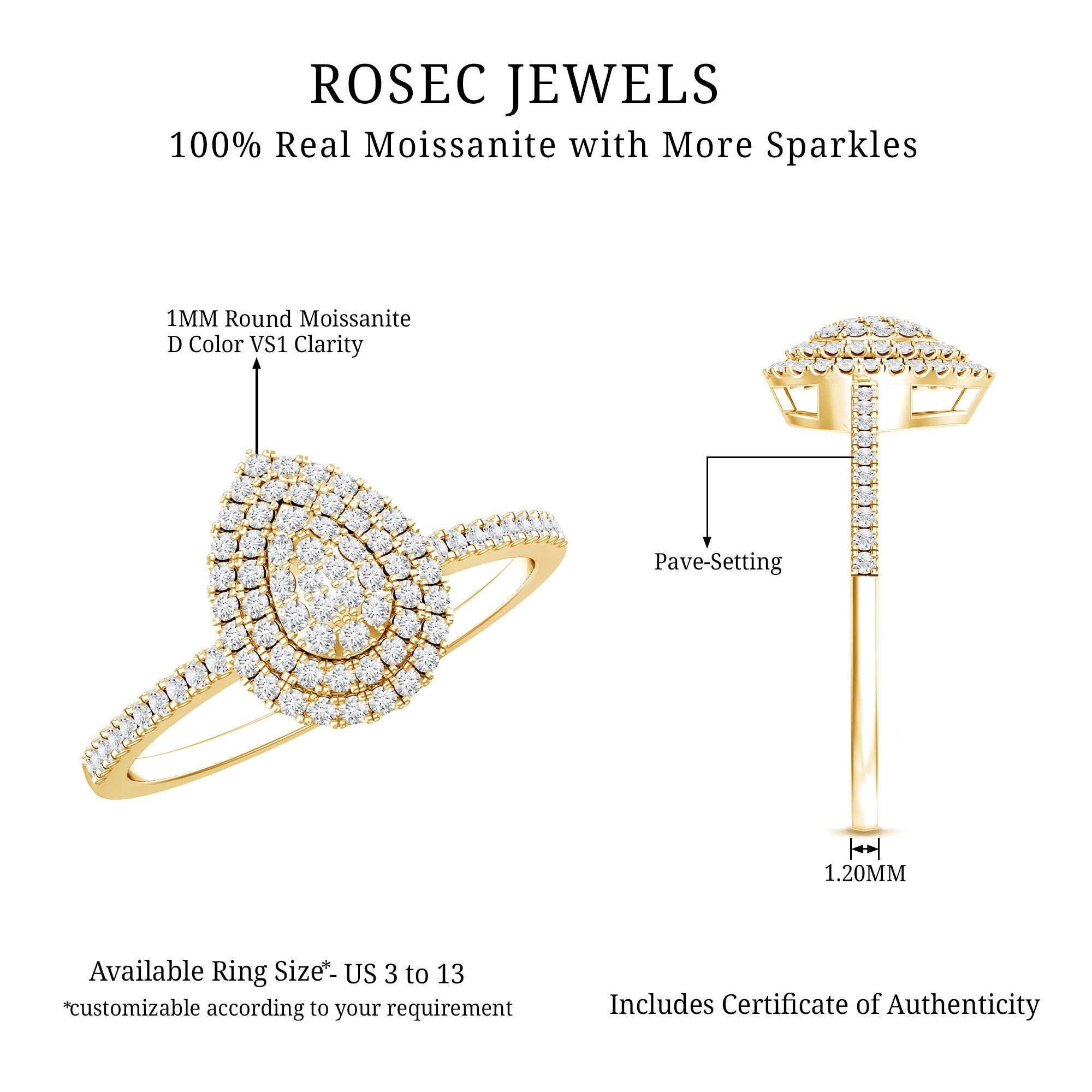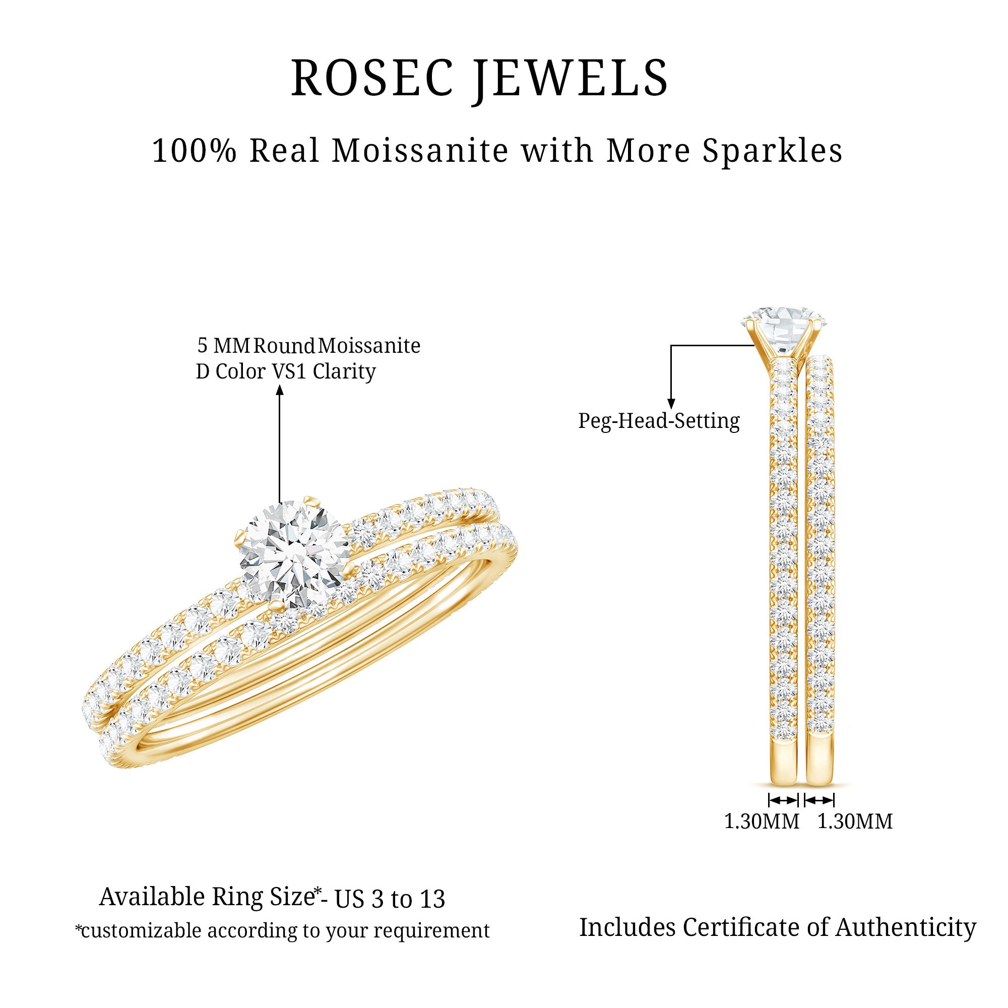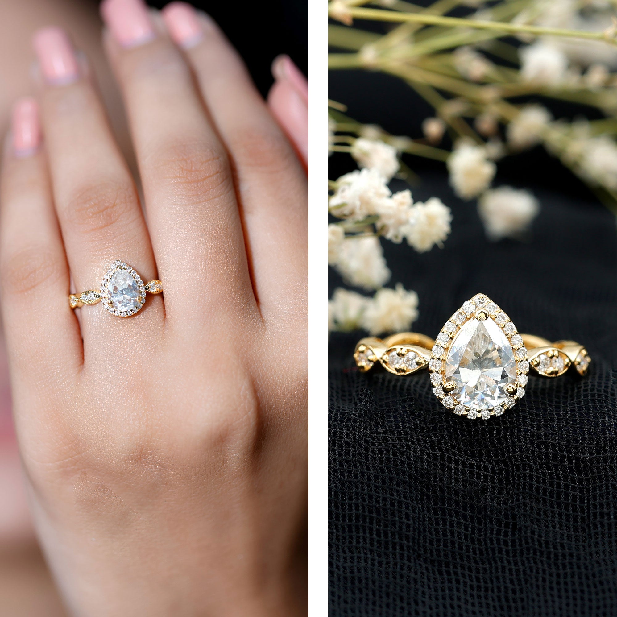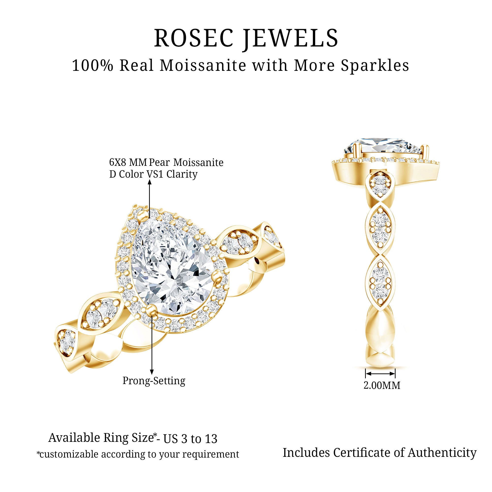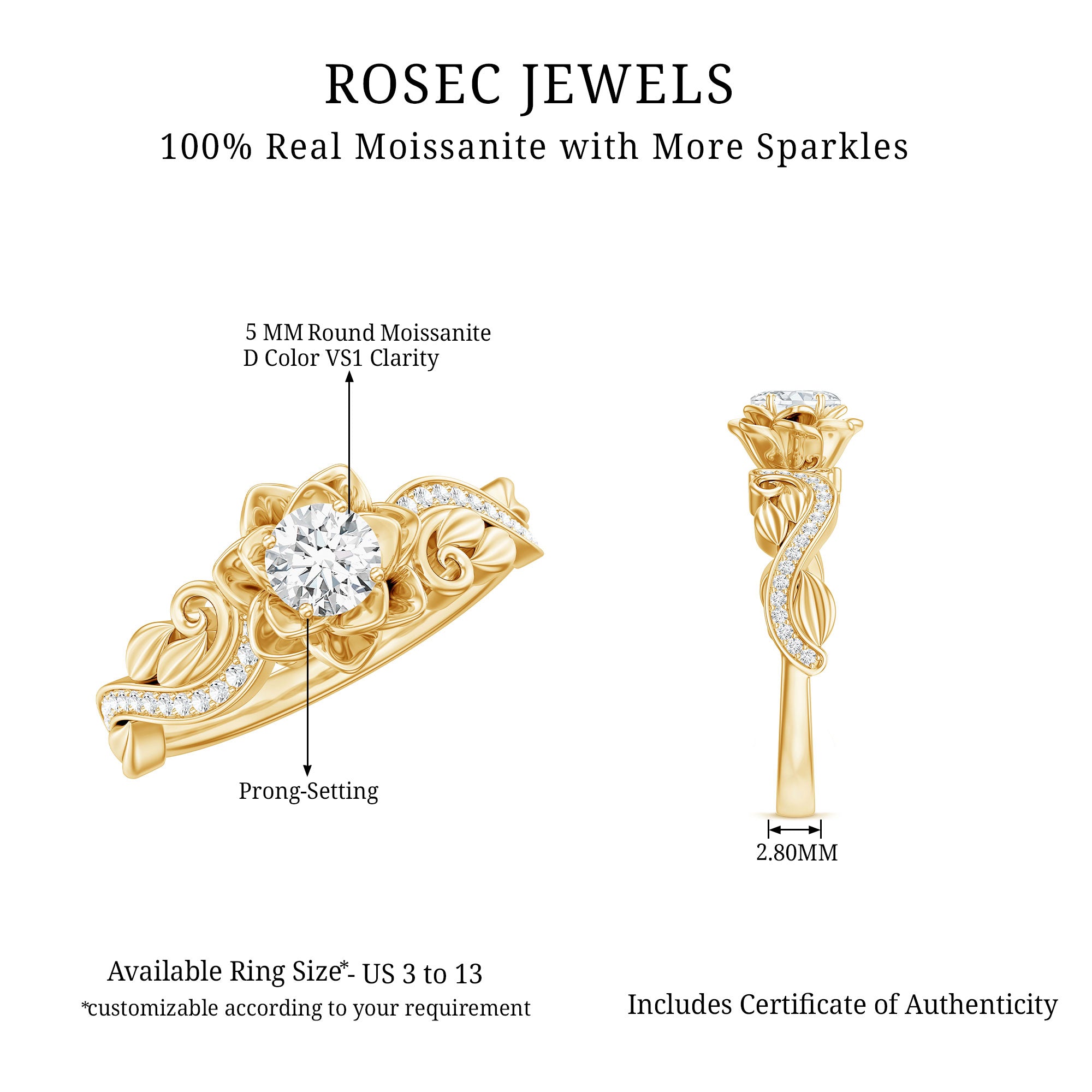 • Durable for everyday wear: With a hardness of 9.25 on the Mohs scale, moissanite is well suited for engagement rings.