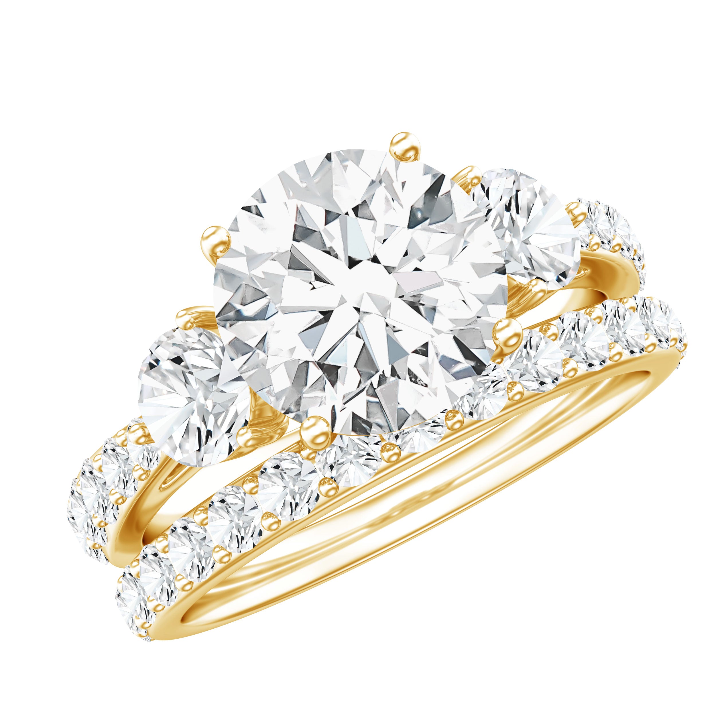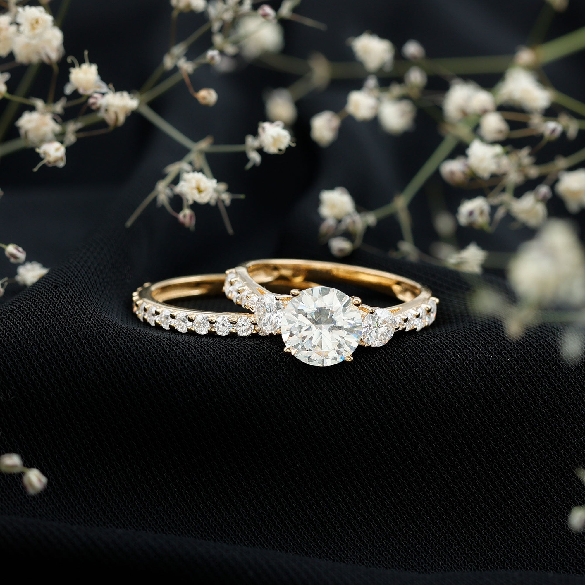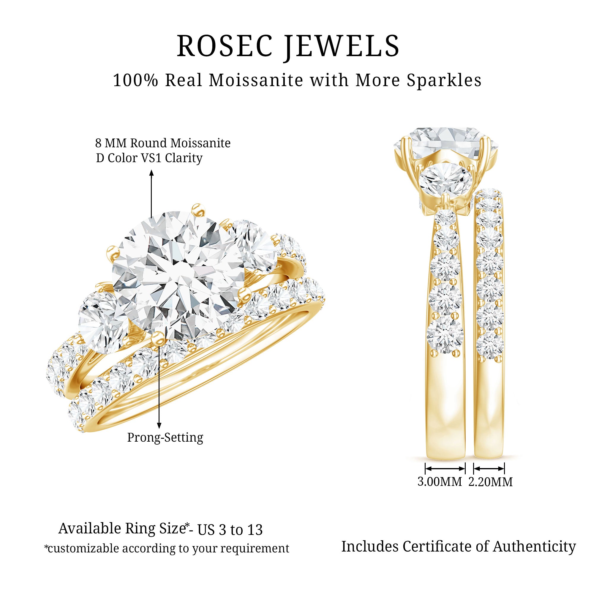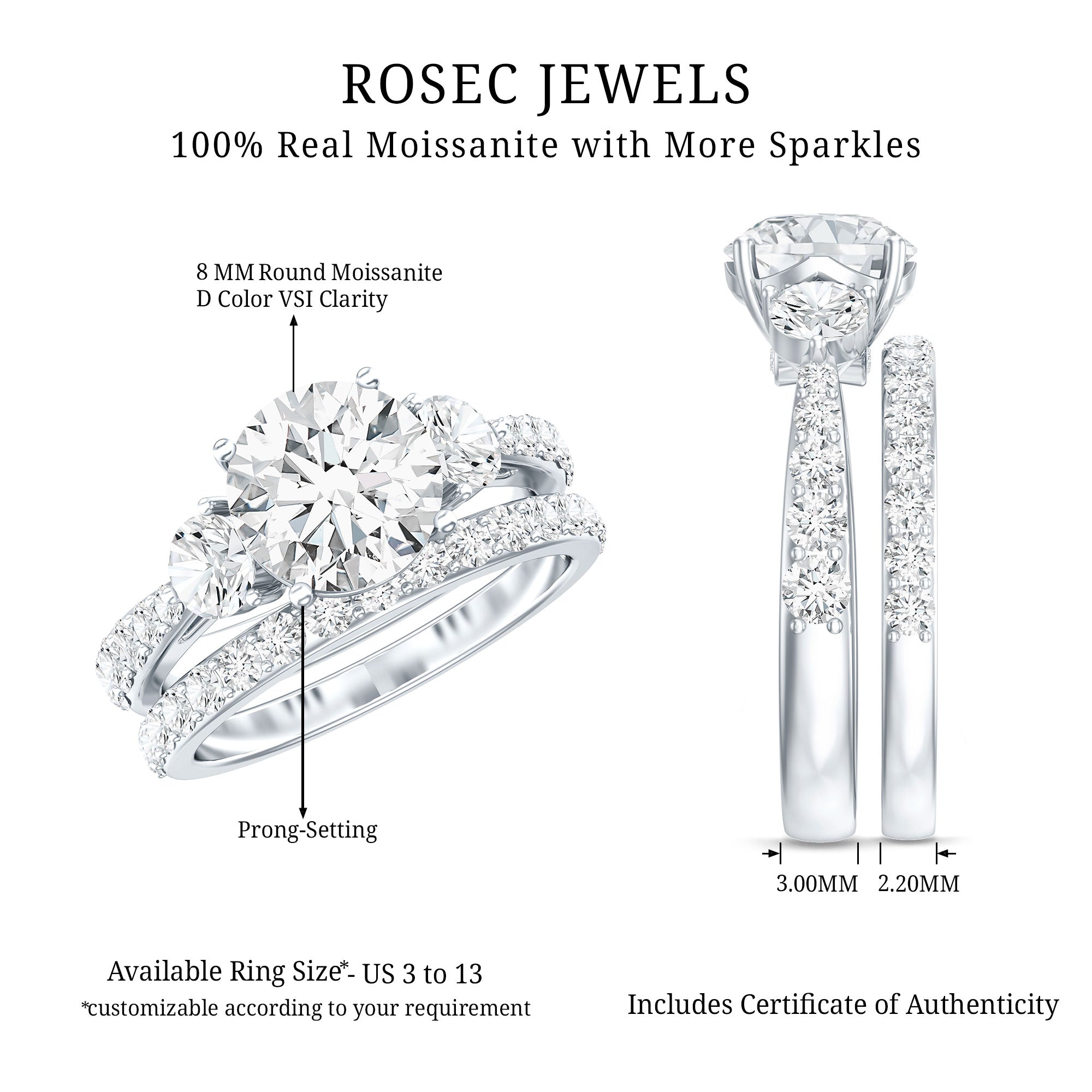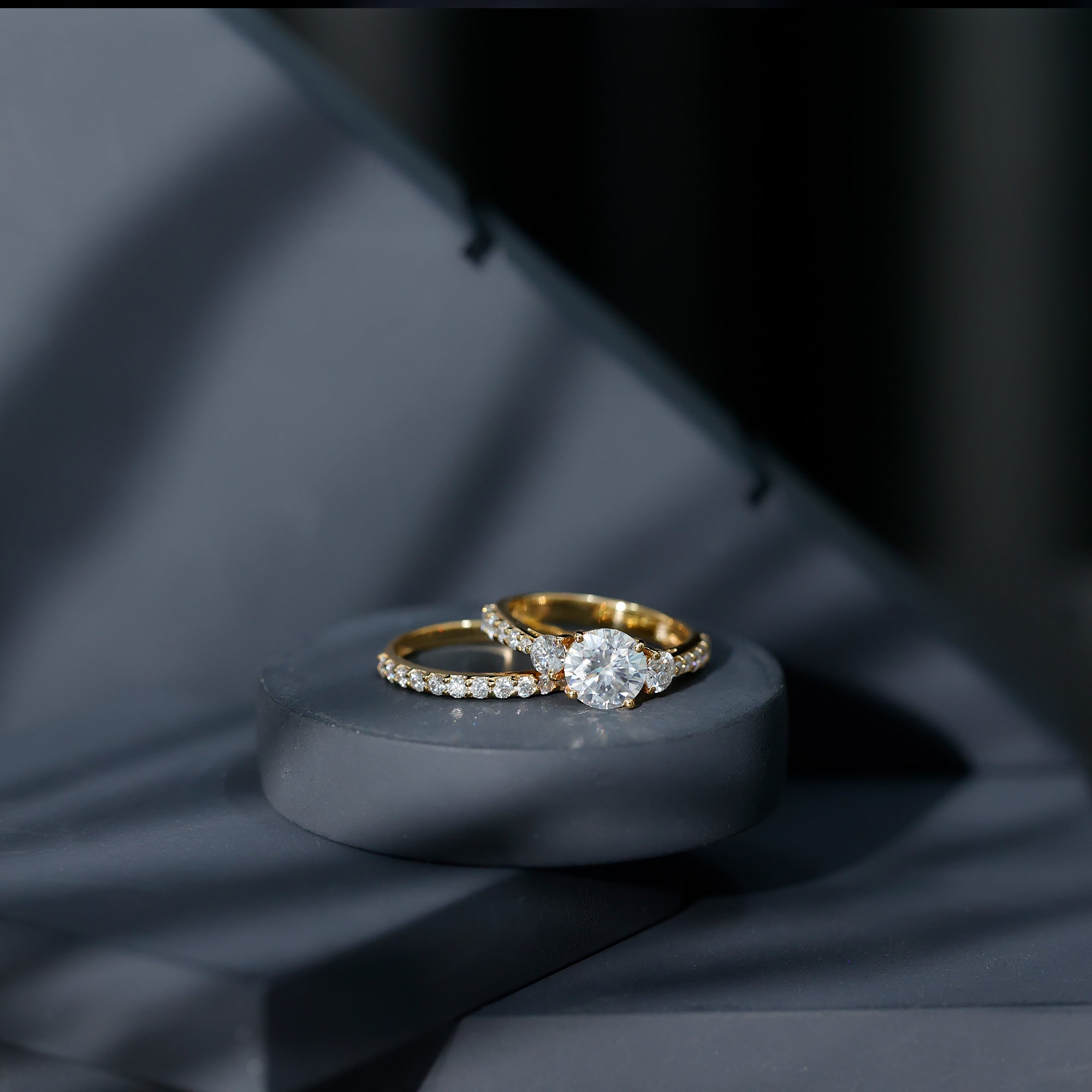 Moissanite Bridal Ring Sets: One of the popular choices for engagements and weddings is you can buy a ring set. The Bridal Ring Set is the perfect stacking combination of engagement rings and moissanite wedding rings. Two different styles create sets of rings that look premium and classy. The wedding band compliments the engagement ring and works as an enhancer.