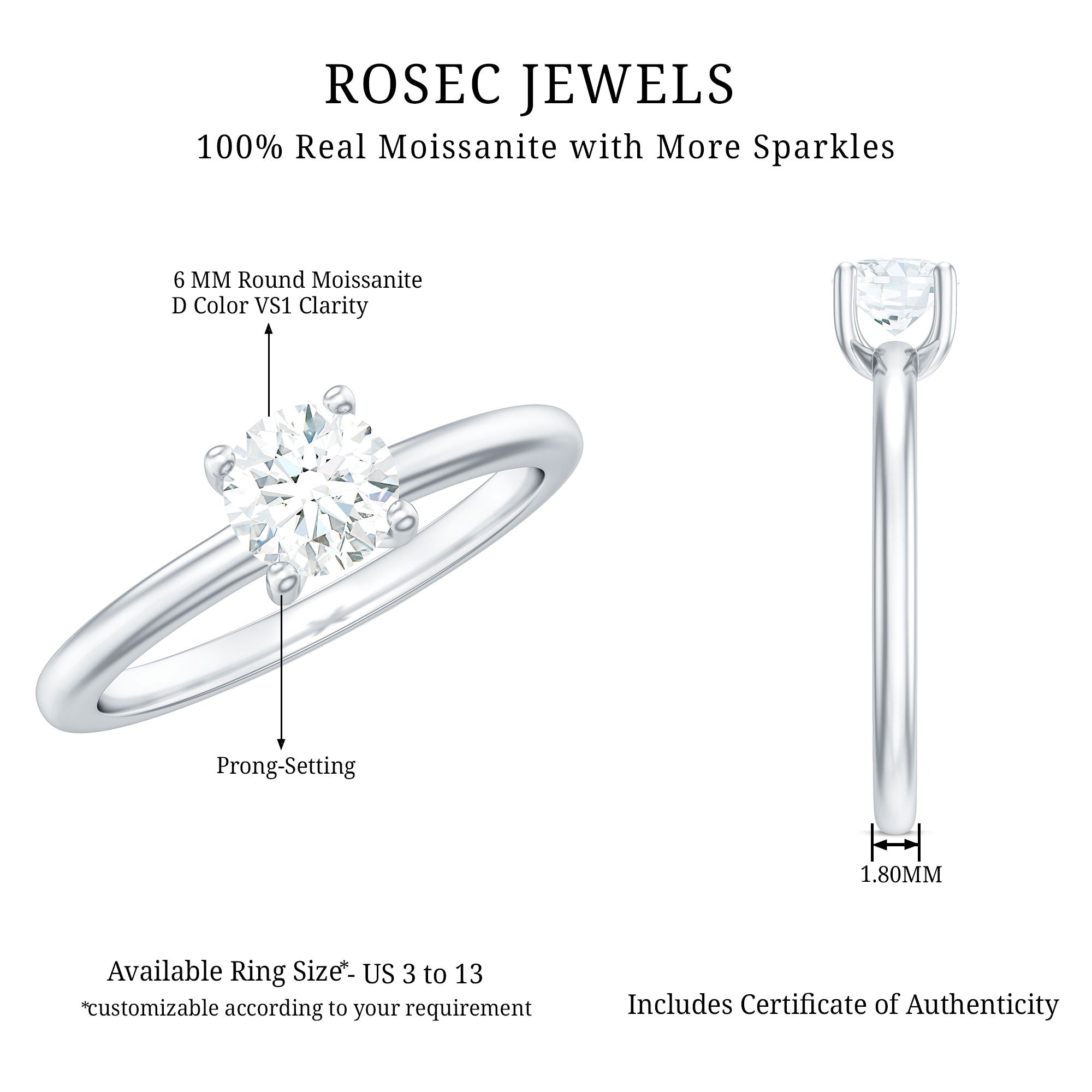 Rosec Jewels Select Only Finest Quality Moissanite