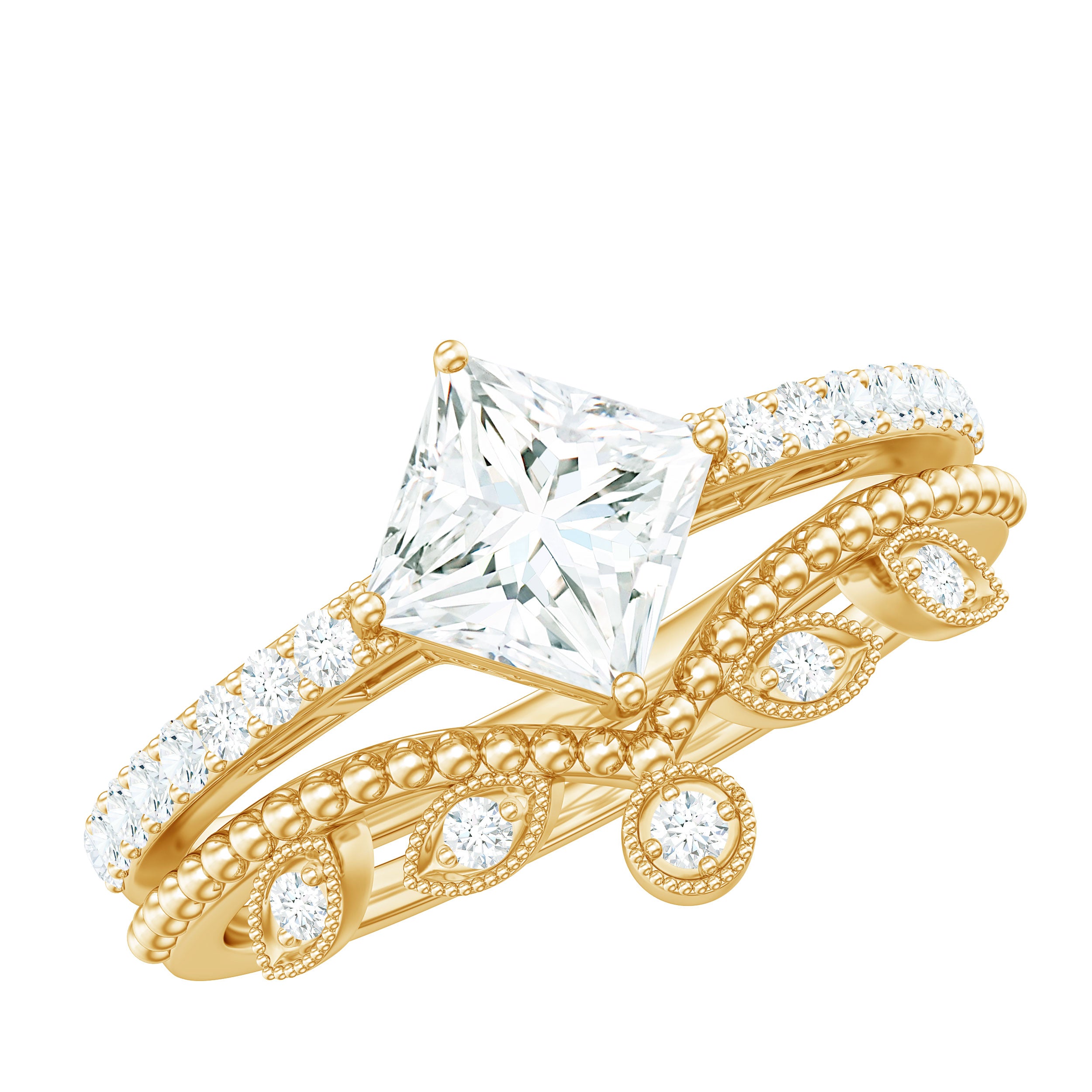 Vintage and Antique Styles: Vintage-inspired moissanite rings draw inspiration from different historical periods, and combine intricate designs, filigree work, and milgrain details. These rings exude a sense of timeless charm and sophistication.