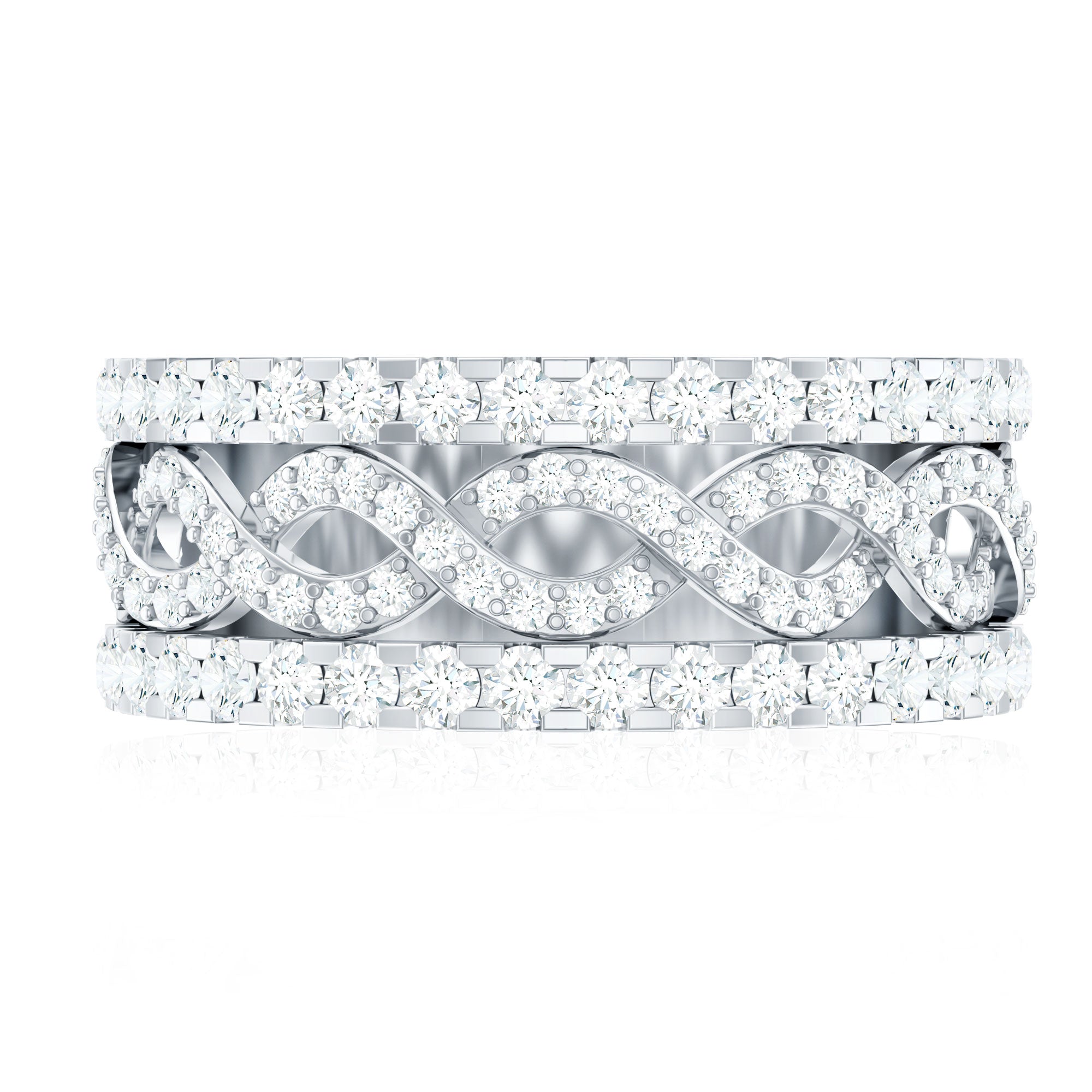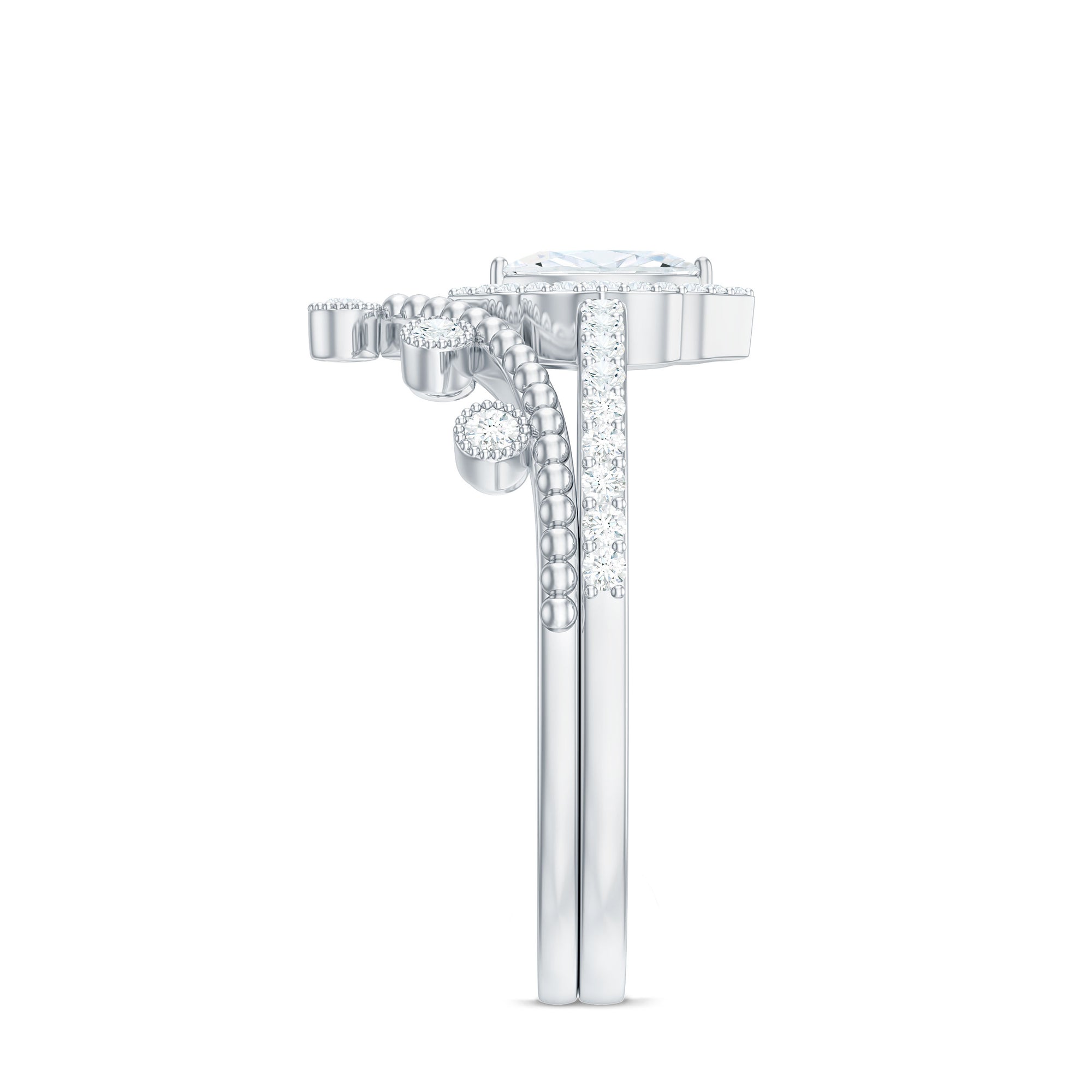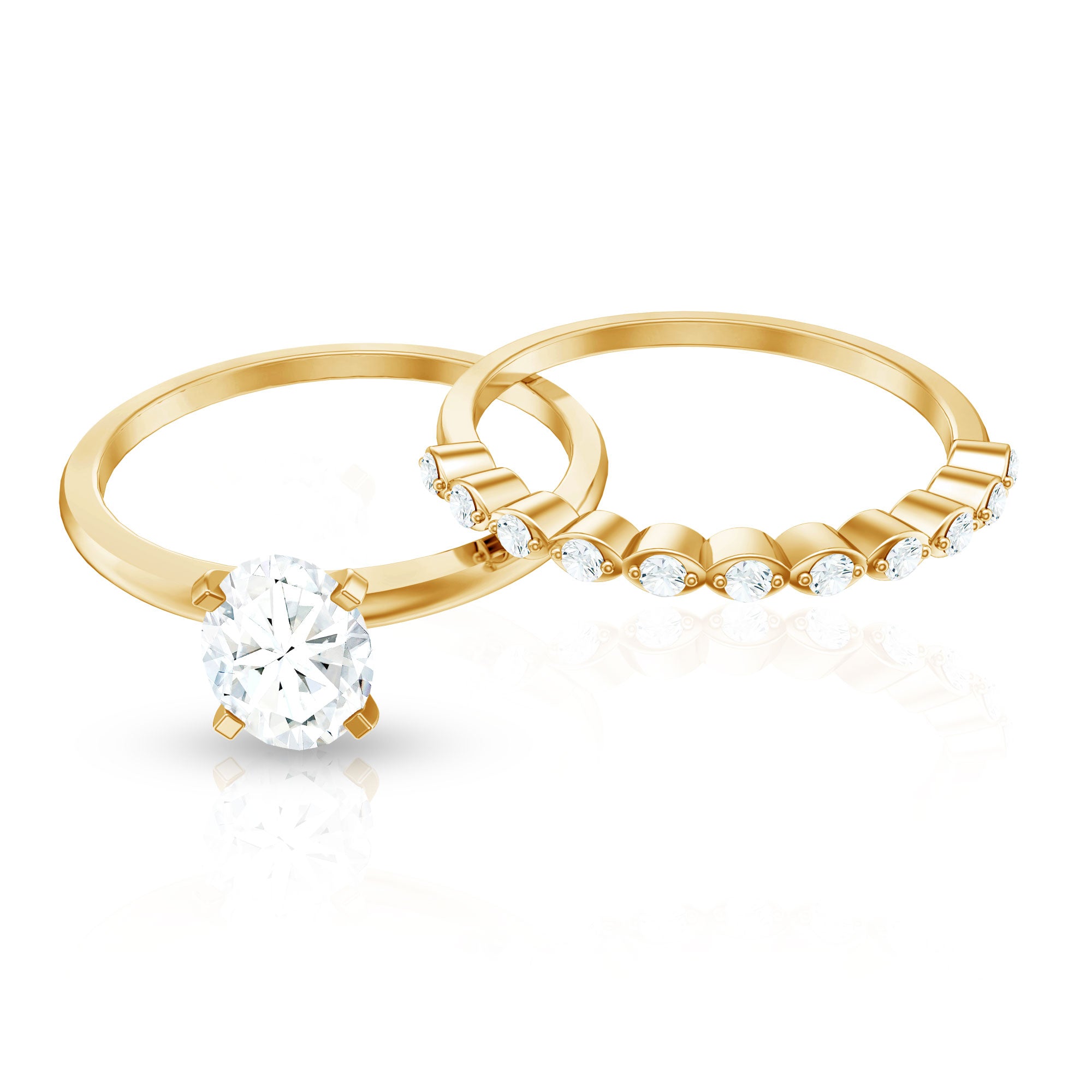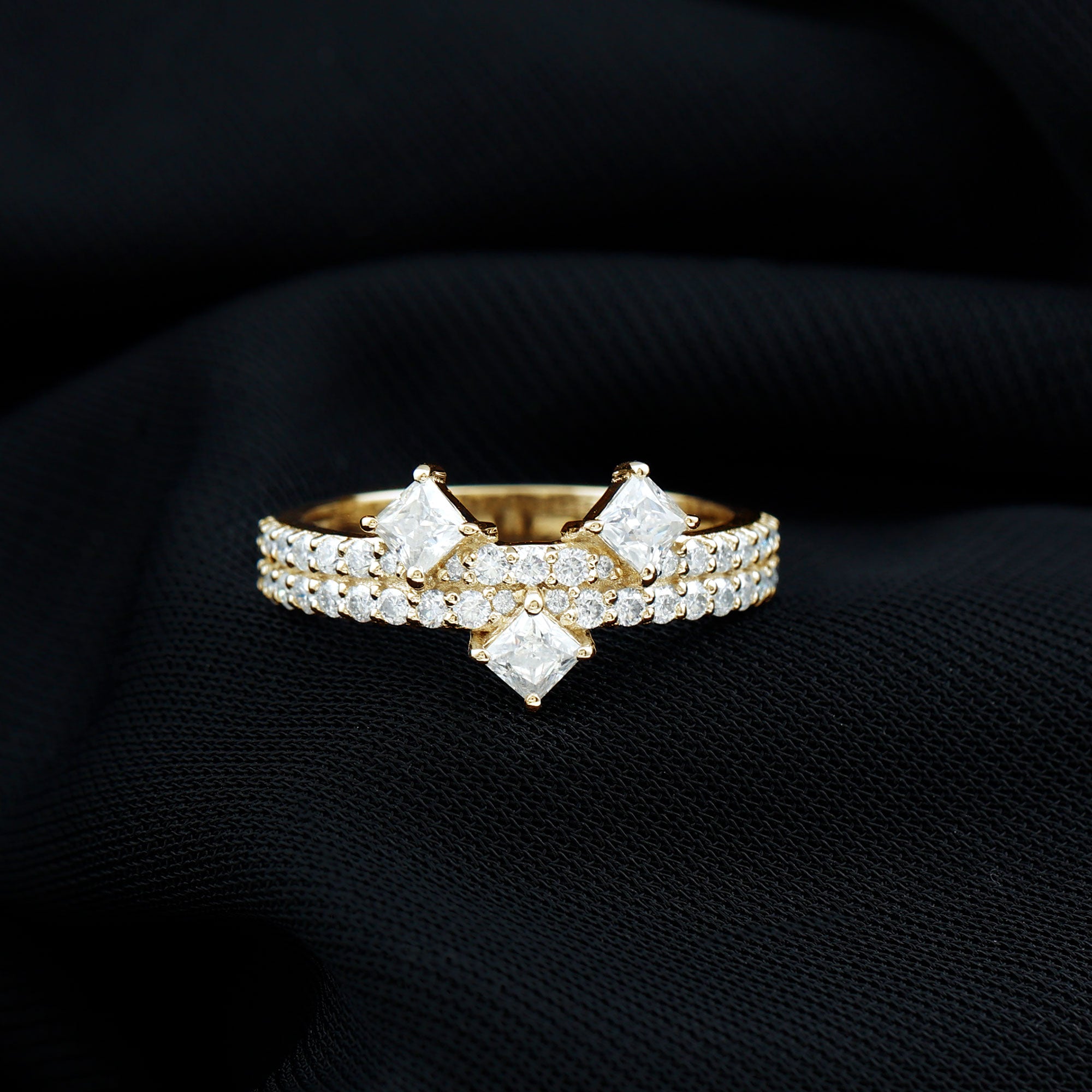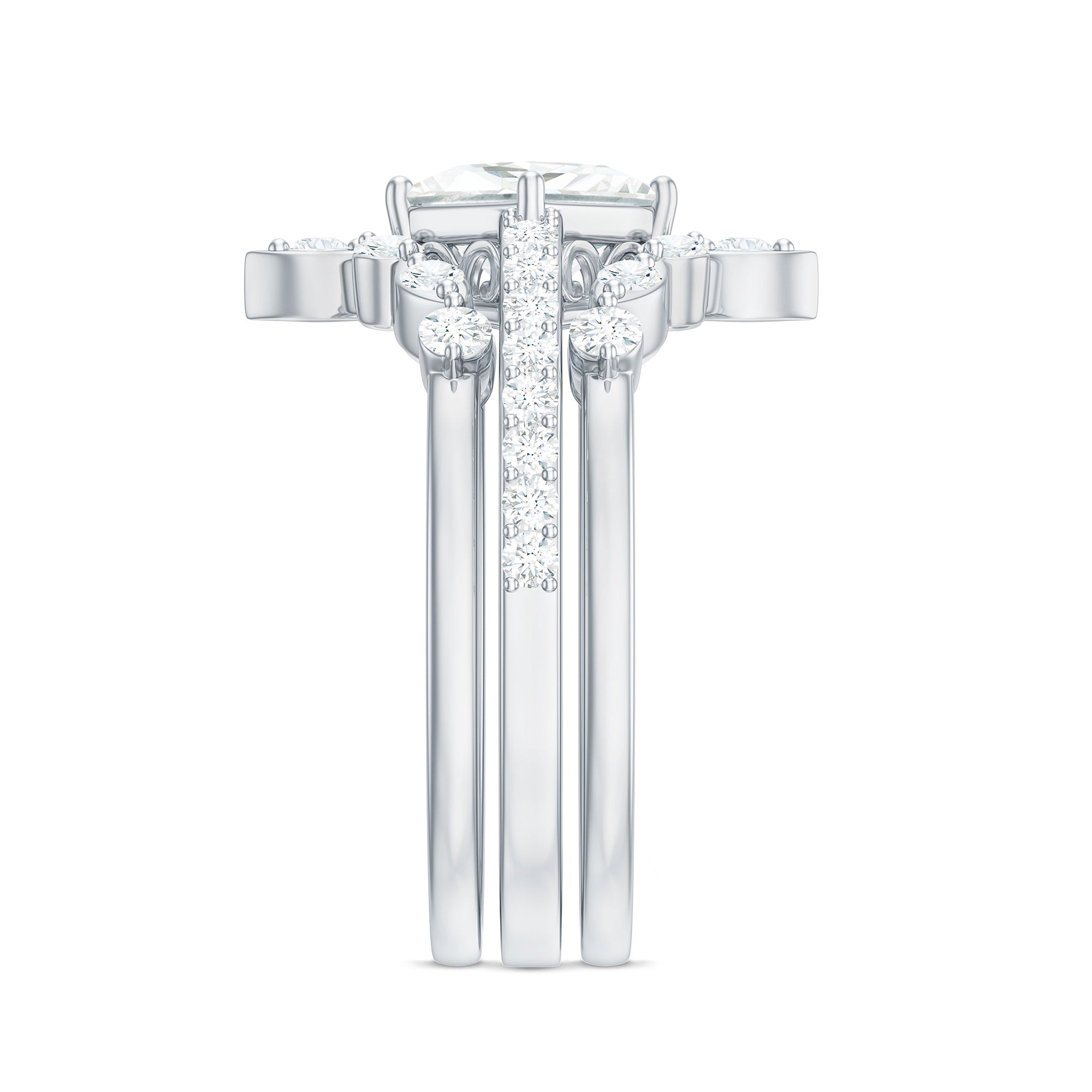 Moissanite is the best alternative to diamond for all the great reasons. The brilliant and fierce moissanite stackable wedding bands can withstand the test of time. Couple are considering moissanite wedding bands leaving behind the diamond ones as moissanite is pretty affordable. Being an Eco-friendly and cruelty-free stone gives moissanite a plus point for sustainability loving brides.