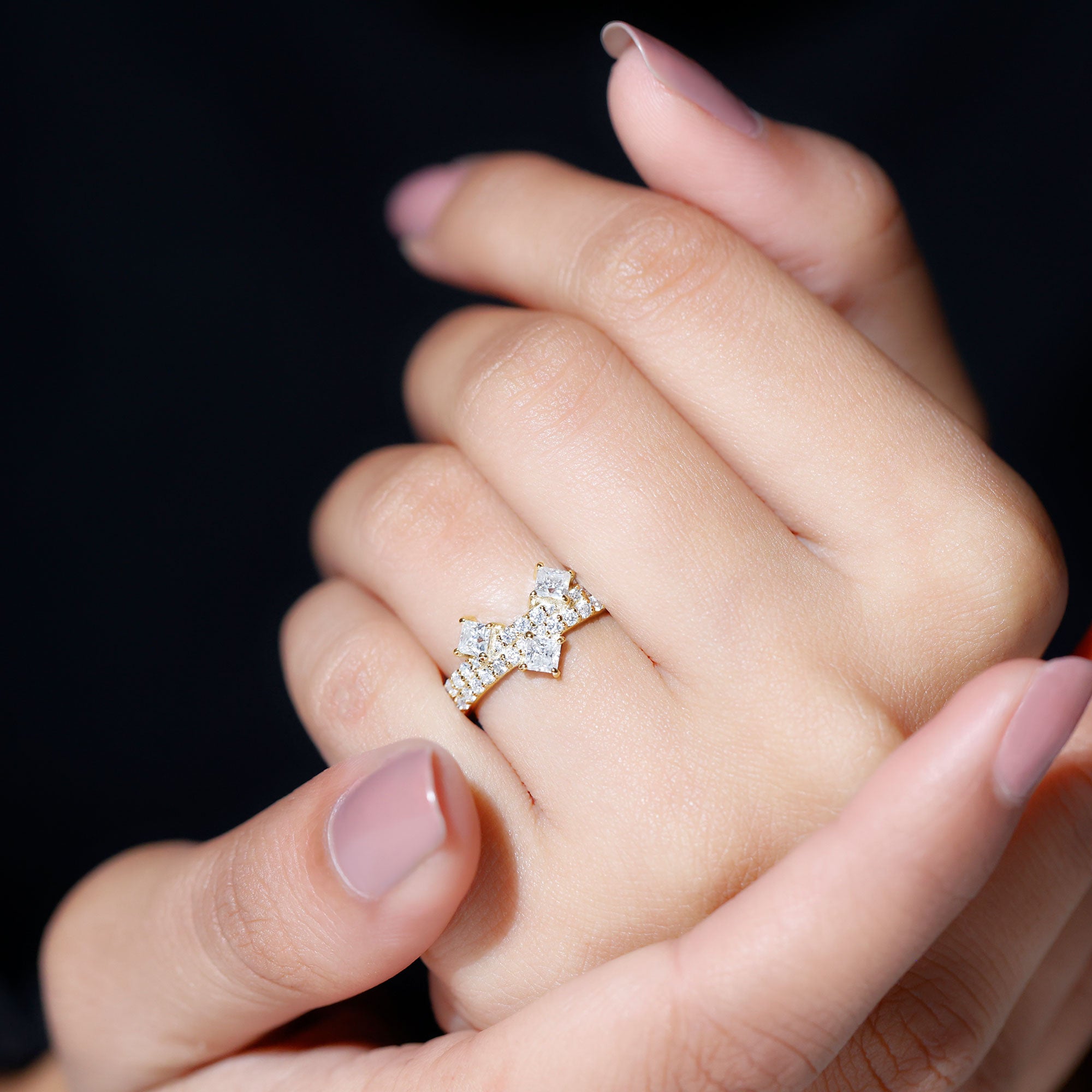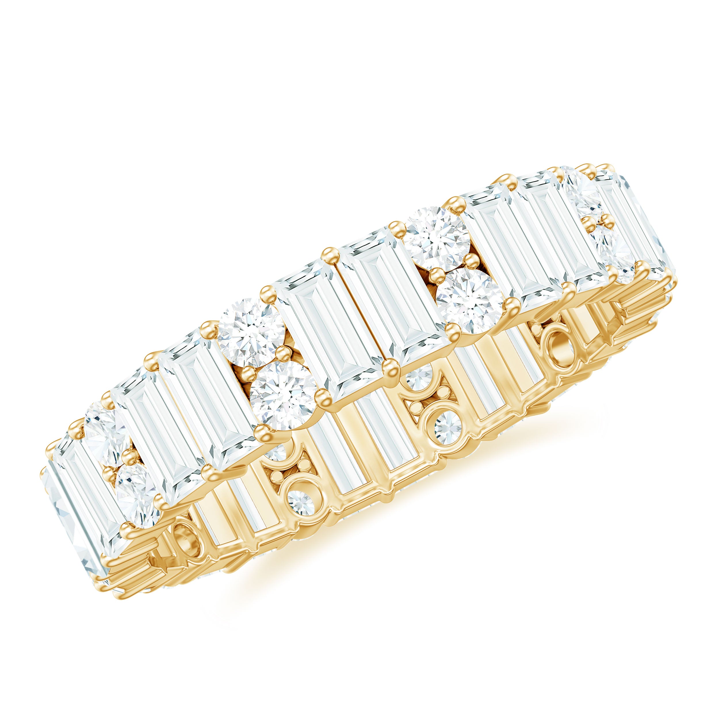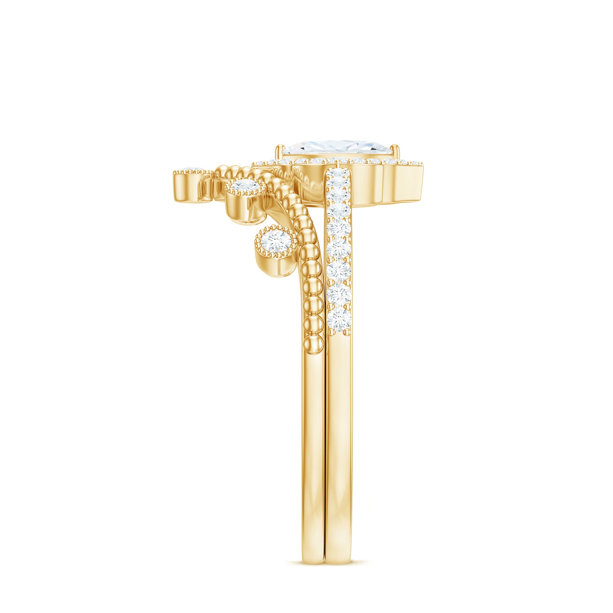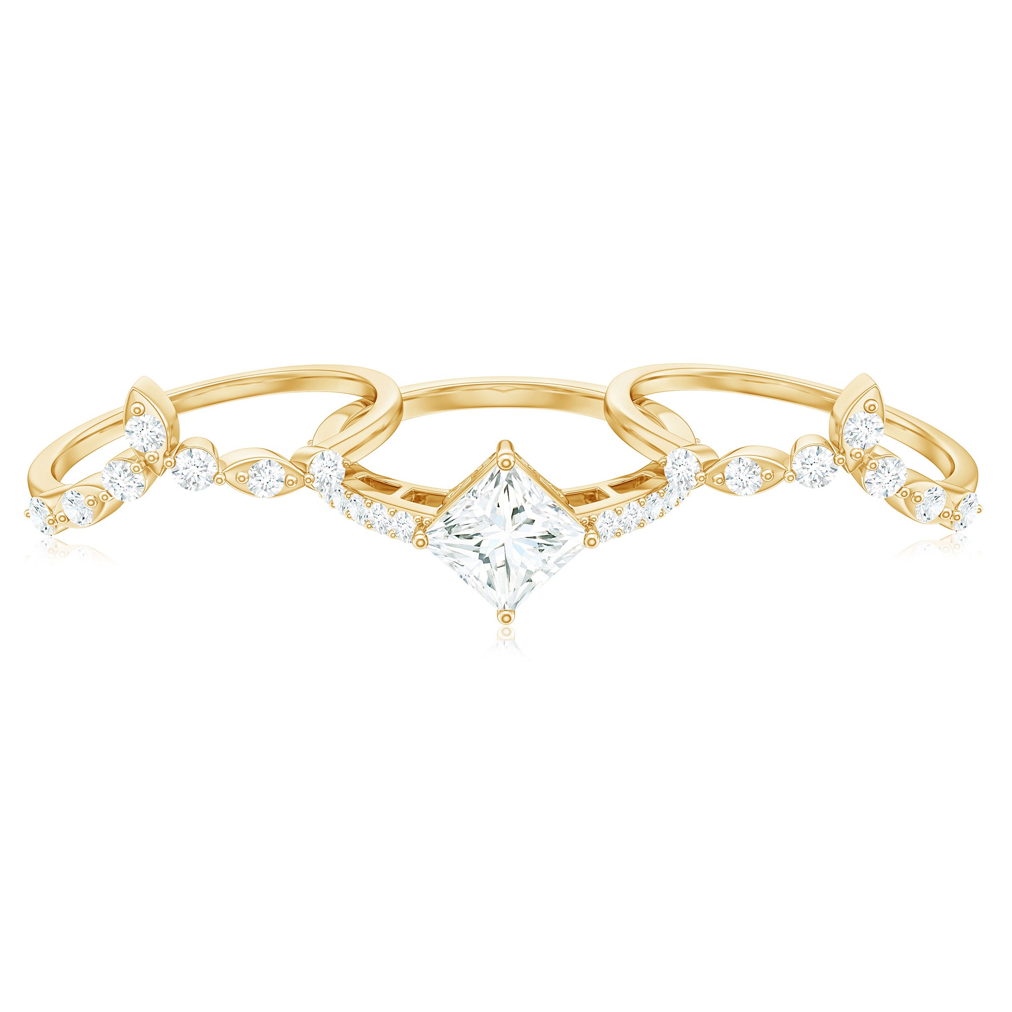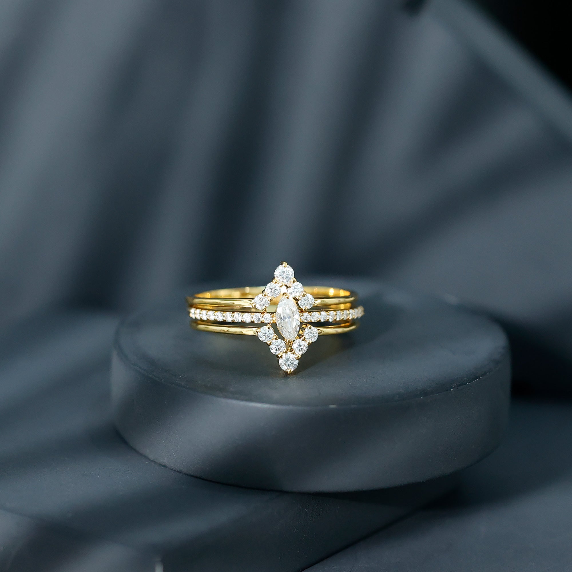 Moissanite is the best alternative to diamond for all the great reasons. The brilliant and fierce moissanite stackable wedding bands can withstand the test of time. Couple are considering moissanite wedding bands leaving behind the diamond ones as moissanite is pretty affordable. Being an Eco-friendly and cruelty-free stone gives moissanite a plus point for sustainability loving brides.