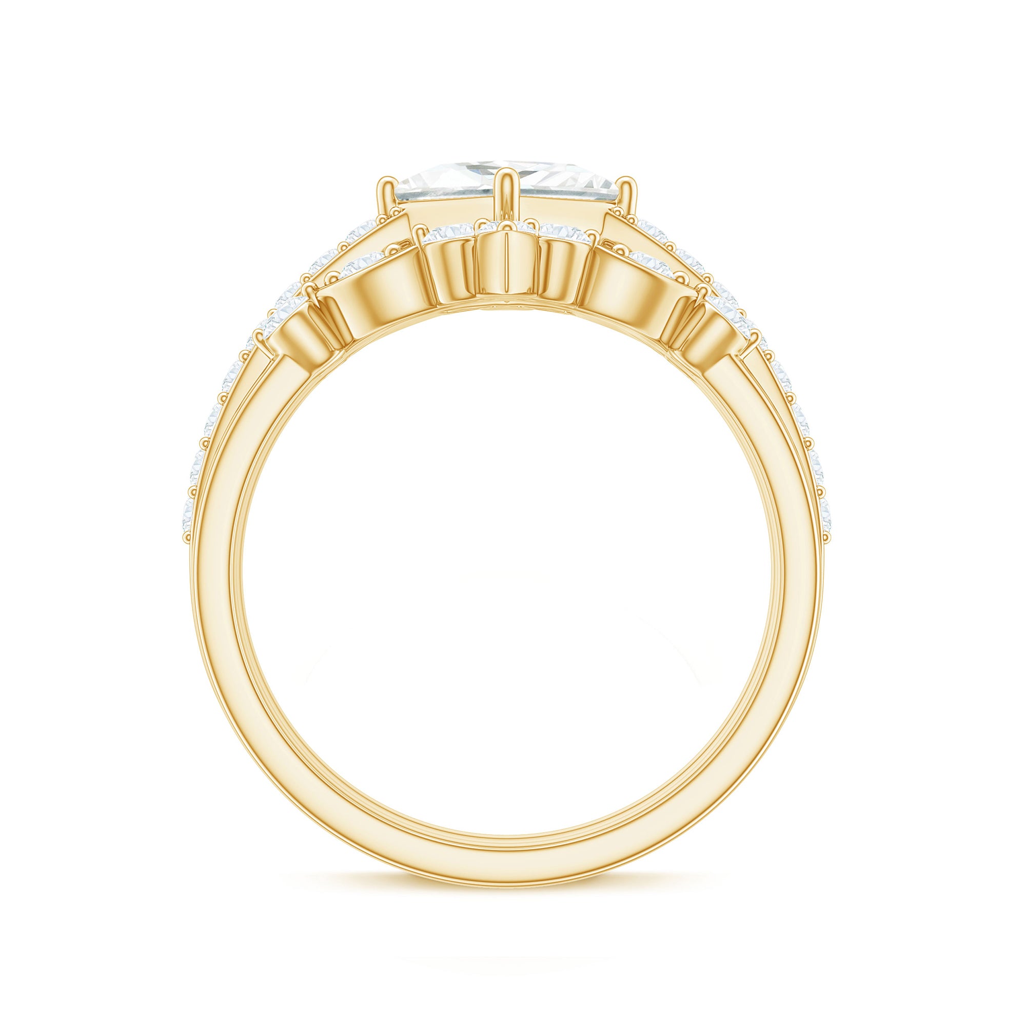 Moissanite Engagement rings indicates the proposal of marriage while Moissanite wedding bands are exchanged at the wedding ceremony.