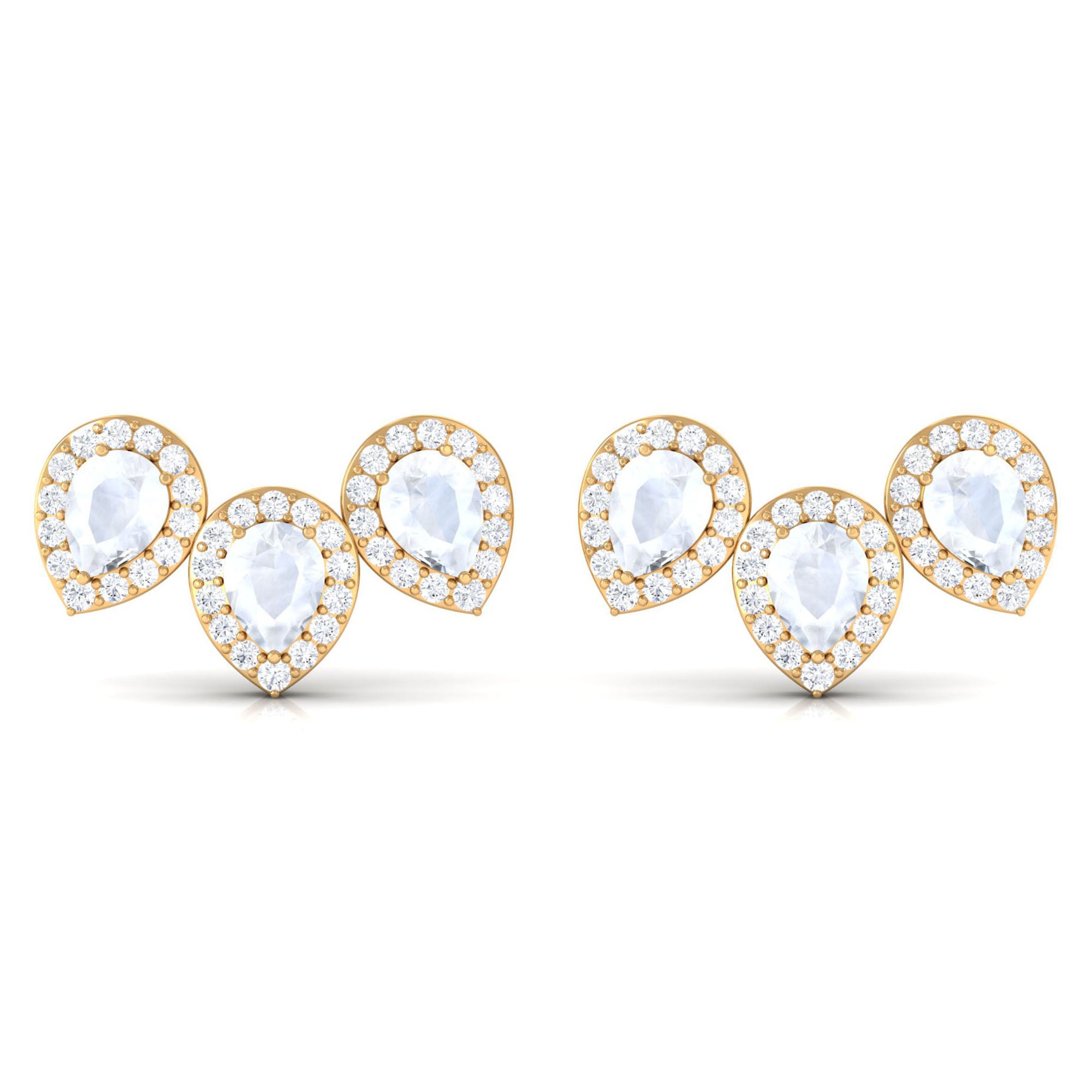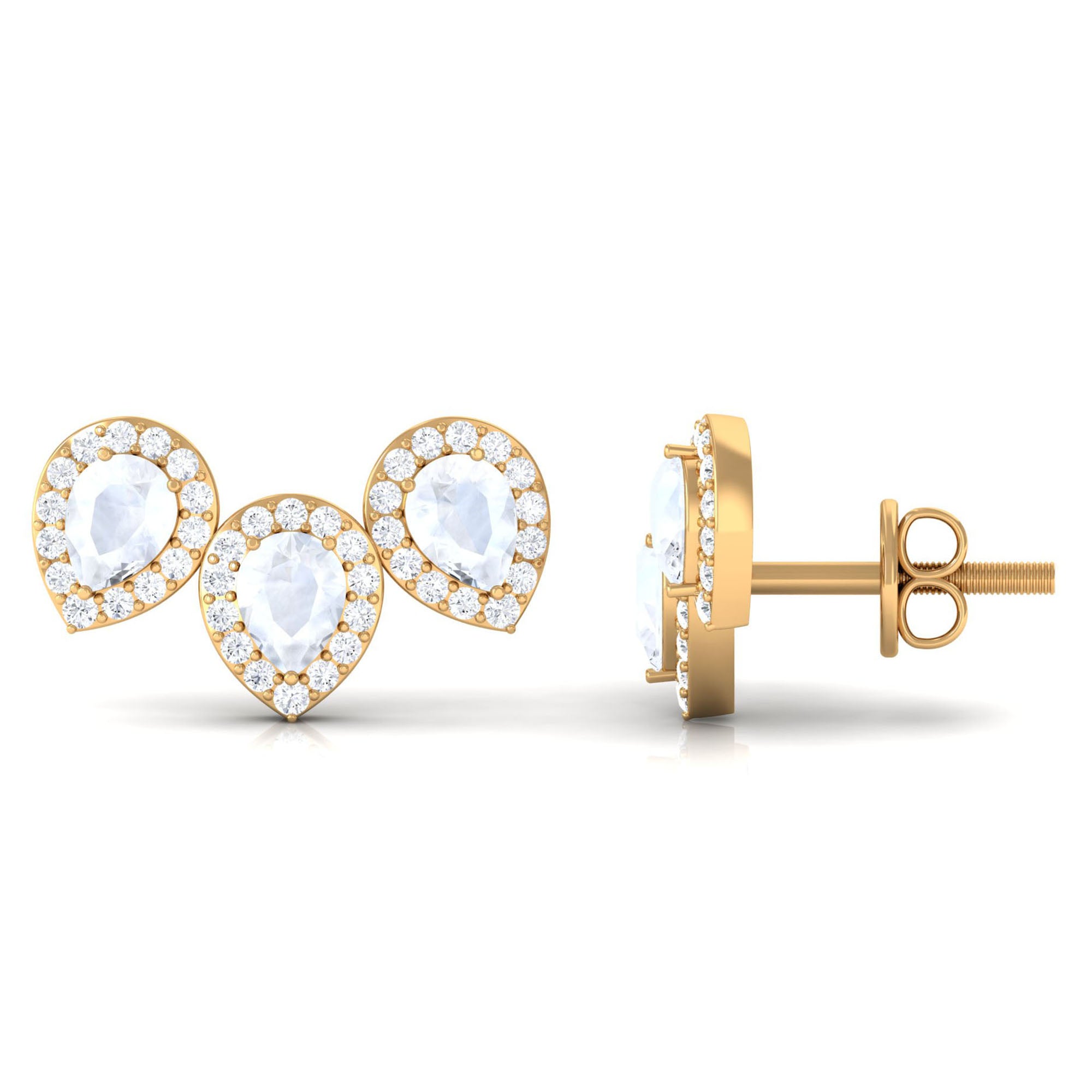 Looking for elegant moonstone stud, drop, or hoop earrings? Our exclusive collection of moonstone earrings includes unique designs and styles that align with every outfit. Moonstone earrings for women showcase timeless elegance and charm. Their vibrant hues capture the attention of viewers. The light blue gemstone symbolizes intuition, femininity, and inner strength, the earrings are just more than an accessory. Whether buying with intricate designs and any premium metal, each earring adds a touch of sophistication to any outfit. Ideal for everyday wear or occasional wear, the earrings serve as a reminder of the wearer's beauty and unique style.
