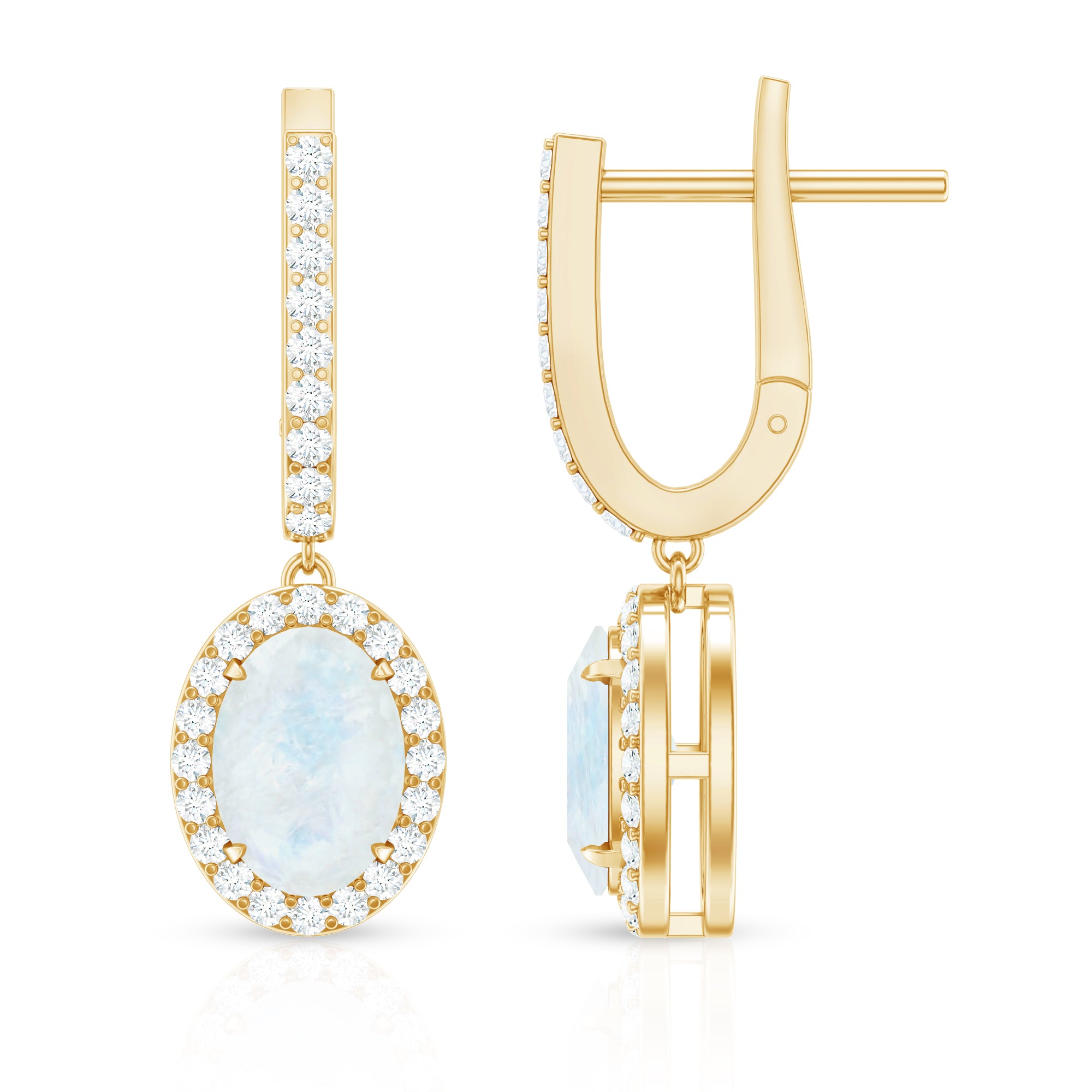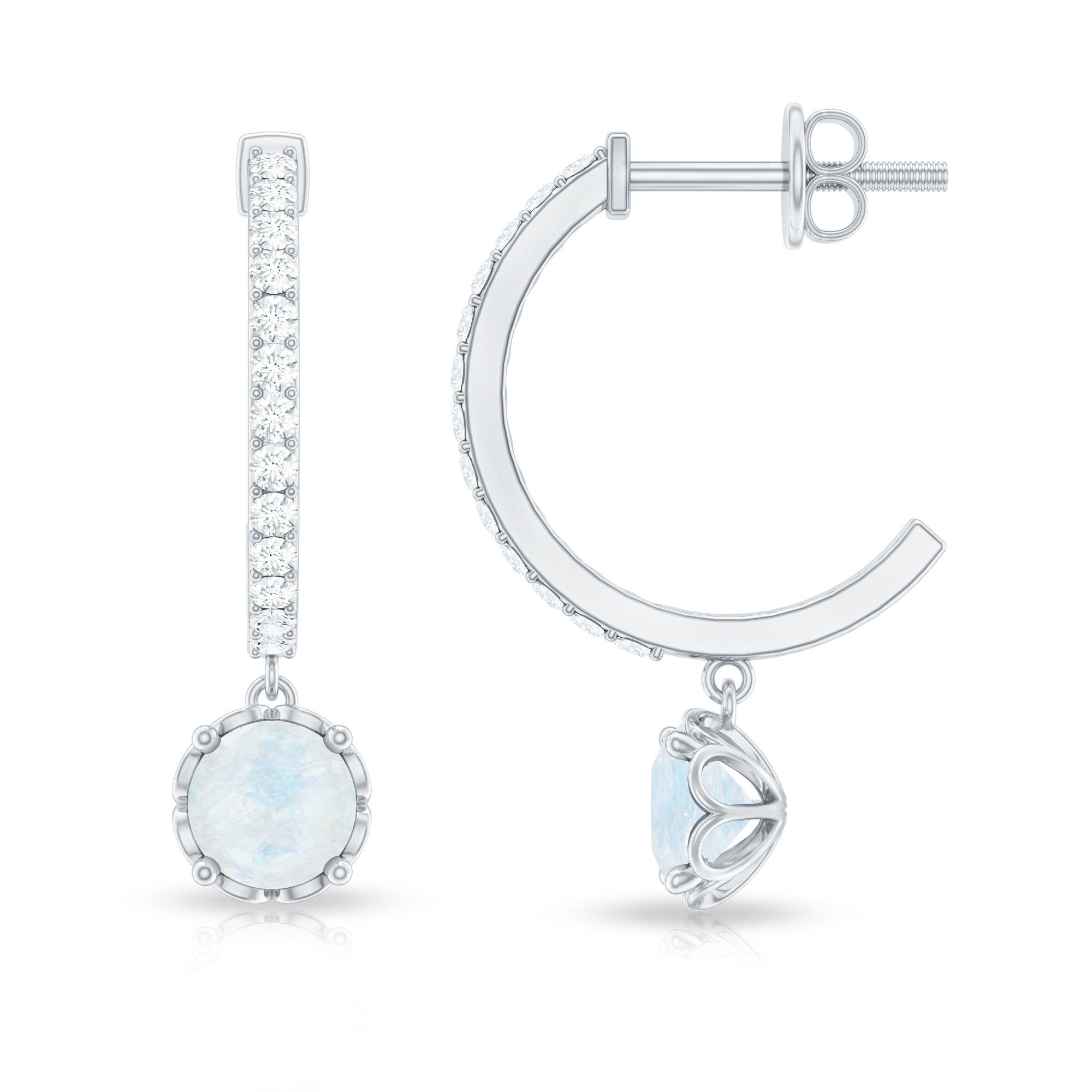 Moonstone Hoop Earrings: - These style of earrings showcases timeless elegance with circular or semicircular designs elegantly hanging from the earlobe. Each hoop is adorned with intense moonstone, adding an extra layer of sparkle to the earring. You'll find classic huggie hoops that are perfect for wear at the workplace or on formal occasions. These hoop earrings look classy on every kind of woman. Such ear pieces cater to different style preferences, making them an ideal choice for cocktail parties and other occasions. Their versatility allows you to complement your personality, and a must-have addition to your jewelry box.