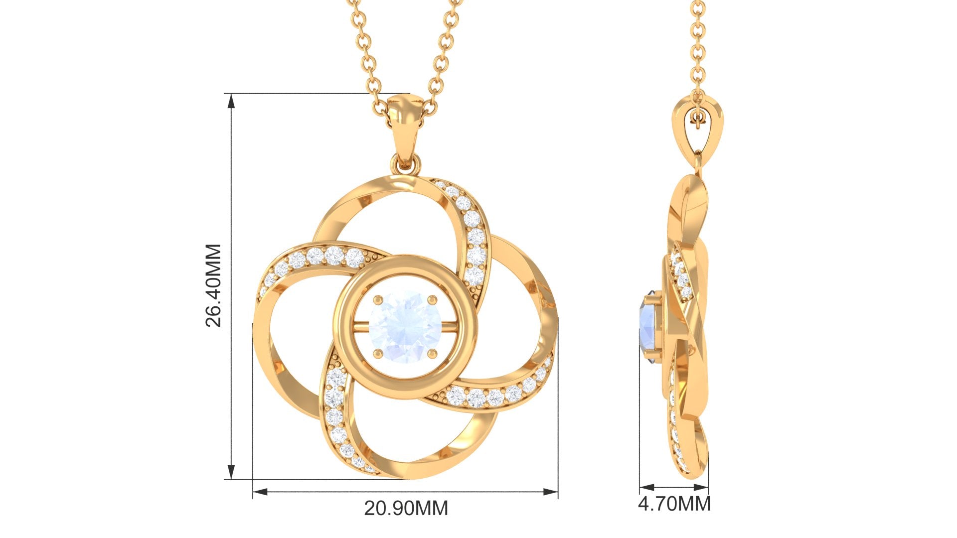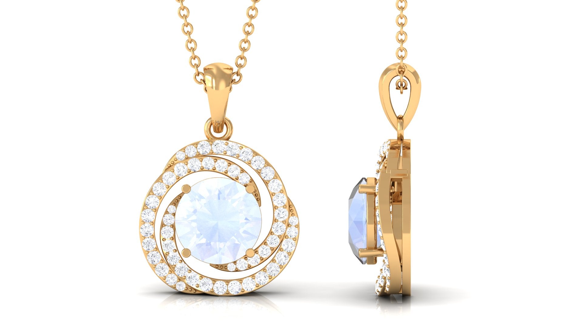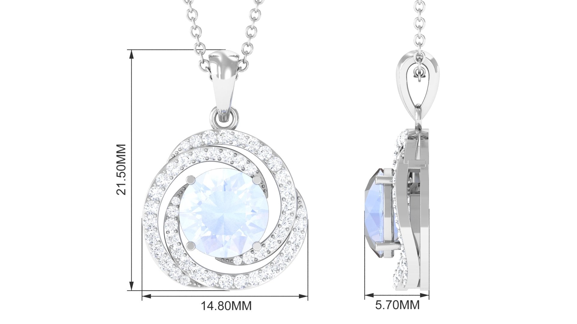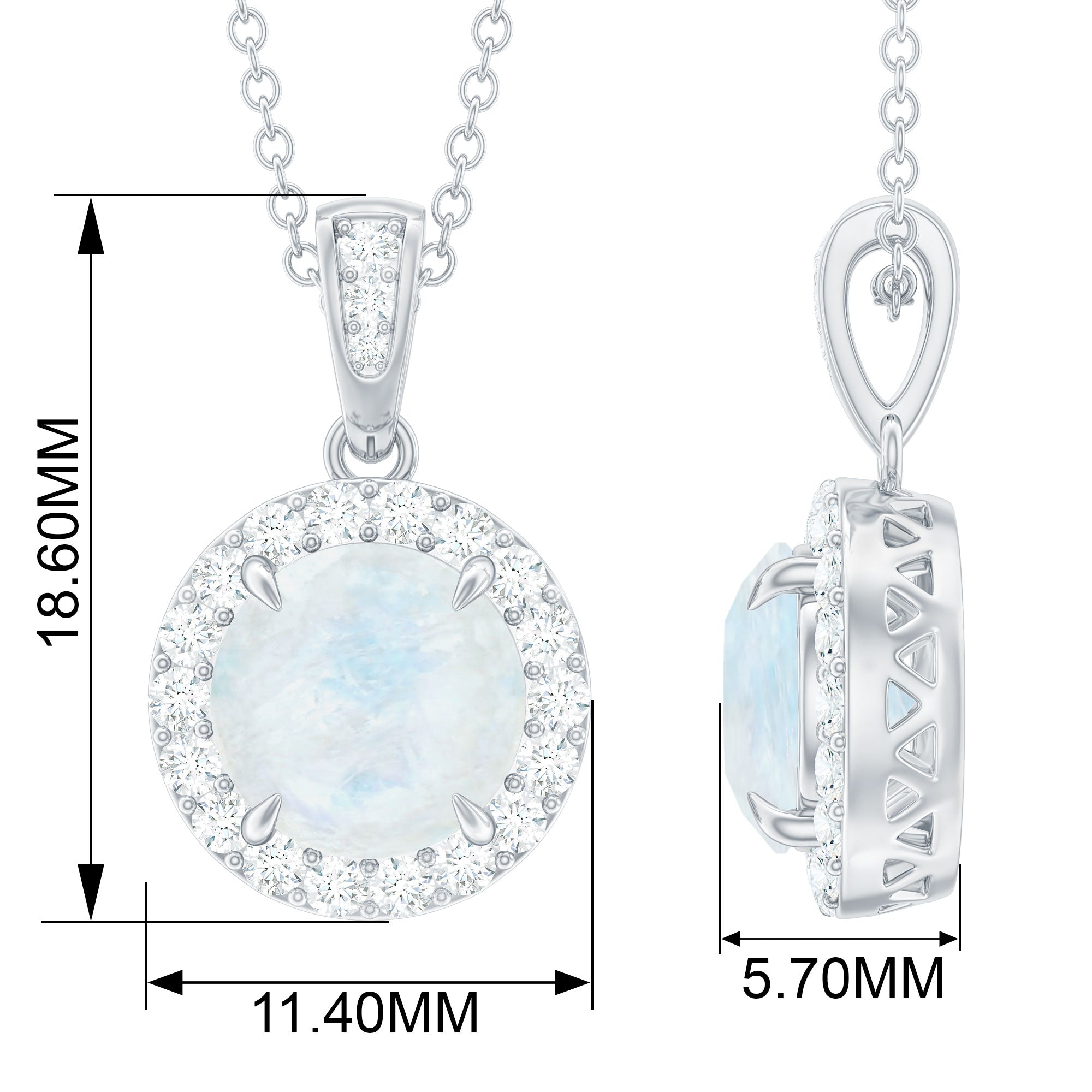 Moonstone Halo Necklaces: - These necklaces involve circling a center moonstone with other small glistening diamonds or other gemstones, enhancing the brilliance of the focal stone without increasing its carat weight. This halo design will forever make a fashion statement. Their versatility is enough to align with any attire, whether it's casual or occasional, it'll look classy.