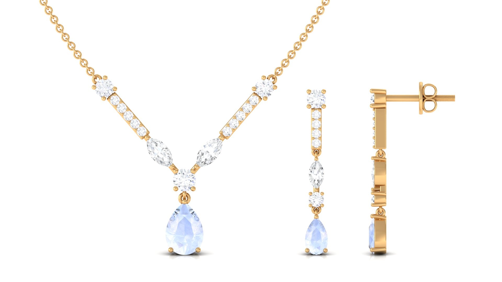 Moonstone Solitaire Necklaces: - Each solitaire pendant features a simple yet classic design; this moonstone solitaire pendant is sure to mesmerize your personality. our necklaces are crafted from white gold or yellow gold, enhancing the moonstone's beauty with their delightful play of colors. A solitaire moonstone necklace with a wide variety of shapes will appear royal, and a good companion with any outfit.