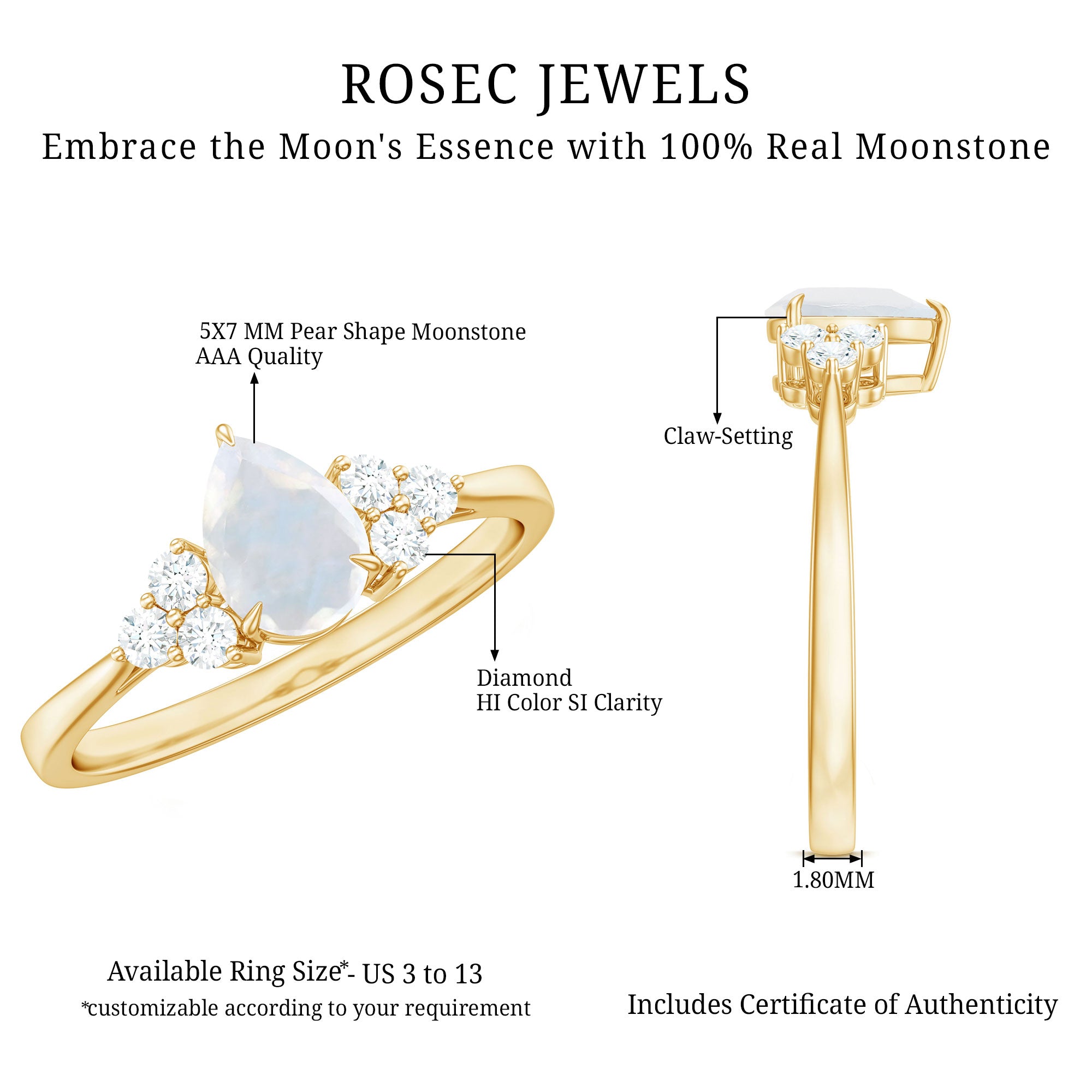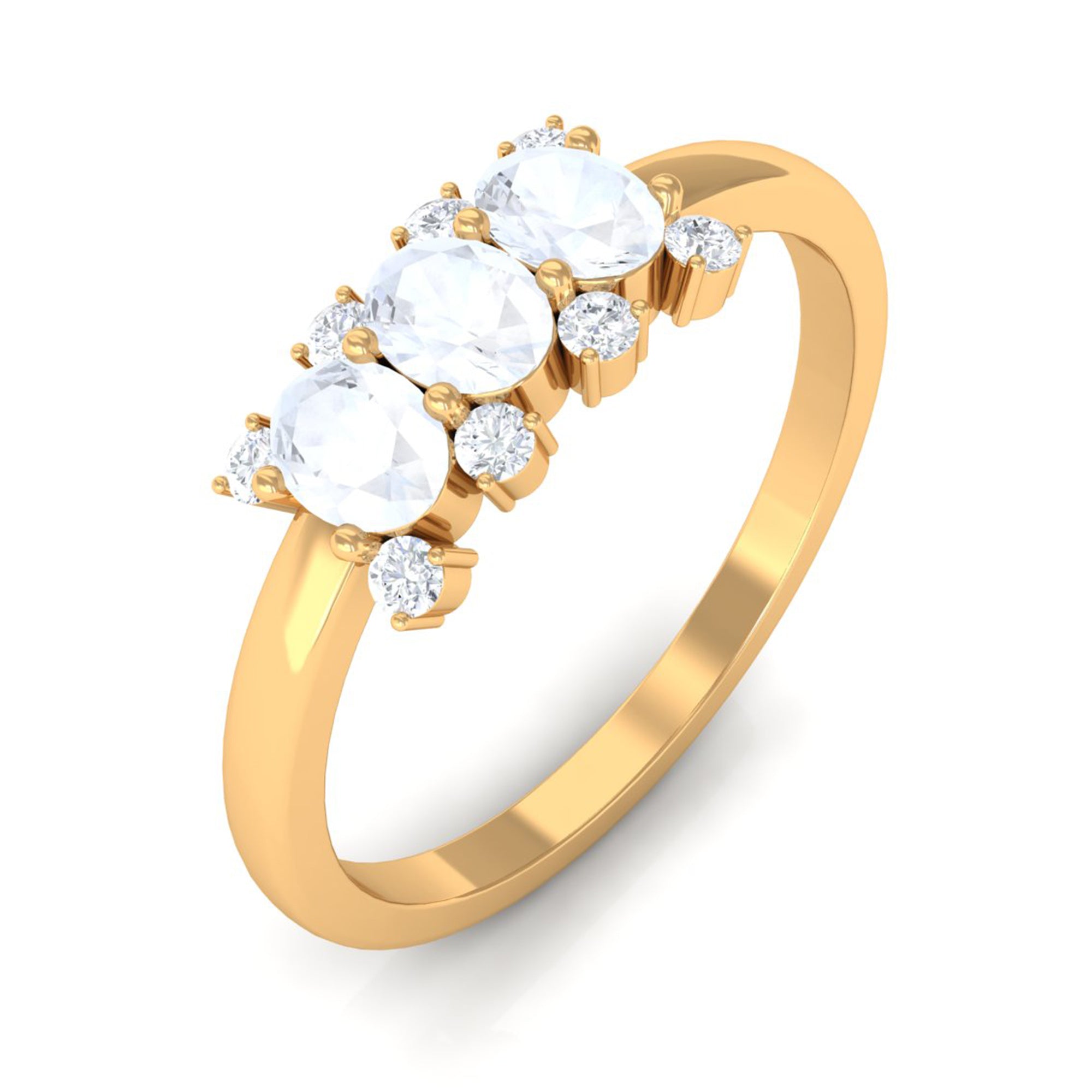A Cocktail Ring is adorned with a large, flashy center stone of Moonstone that steals all the attention with its over-the-top appeal. To beautify it even further, it is often adorned with sparkling stones of Diamond/Moissanite in eye-catching patterns. This Moonstone Ring for Women has lately become the fashion status for those who like to go all out with their choice of accessories.
