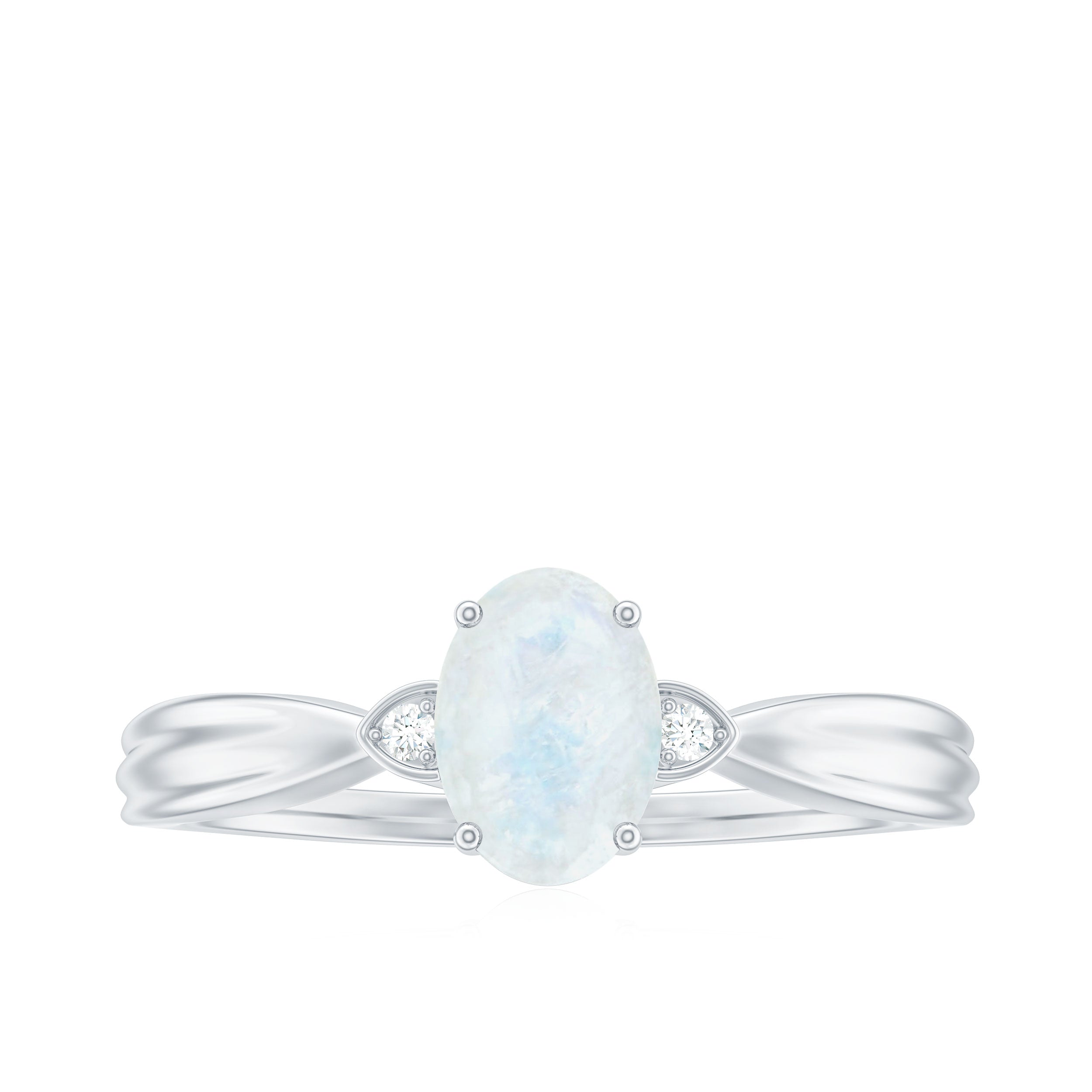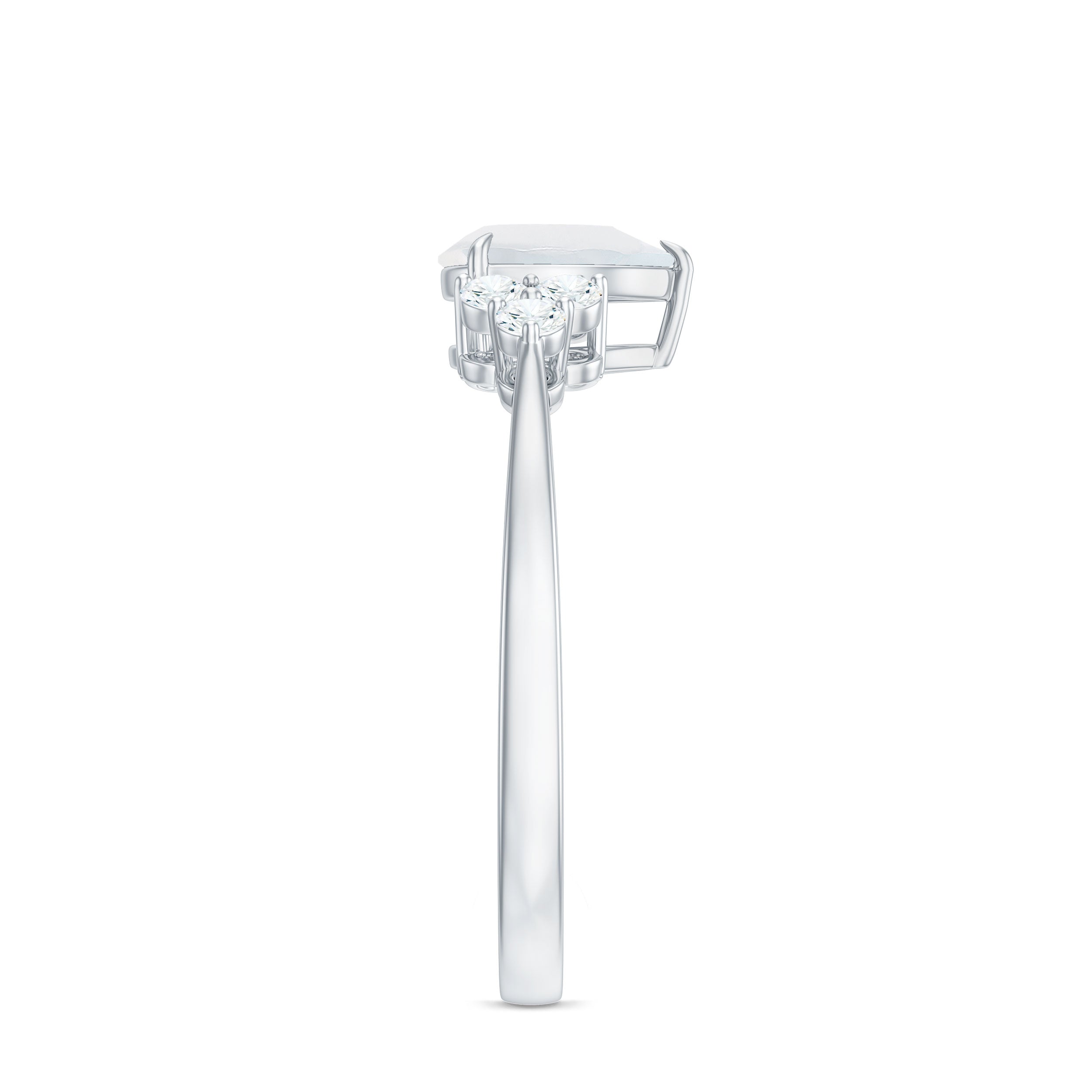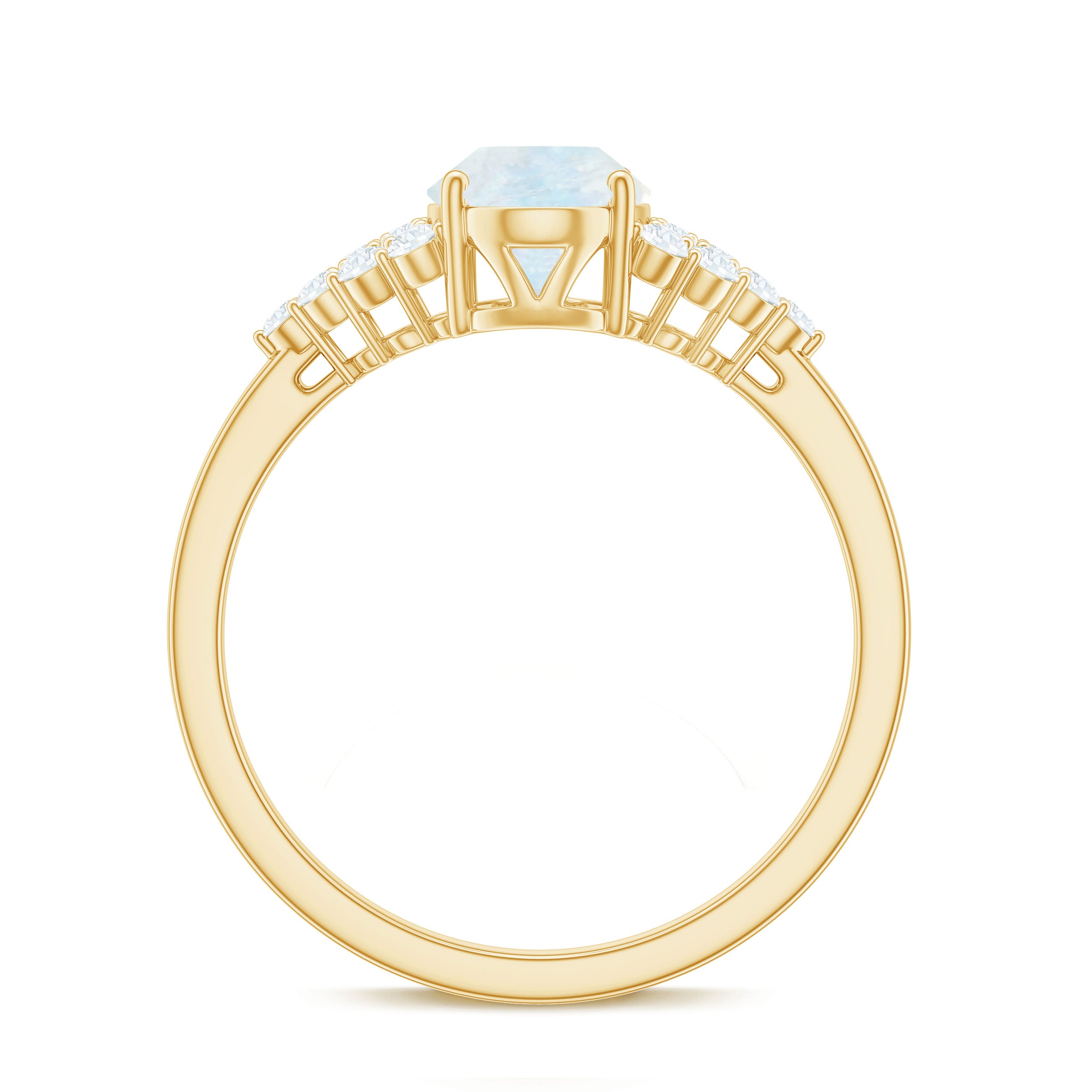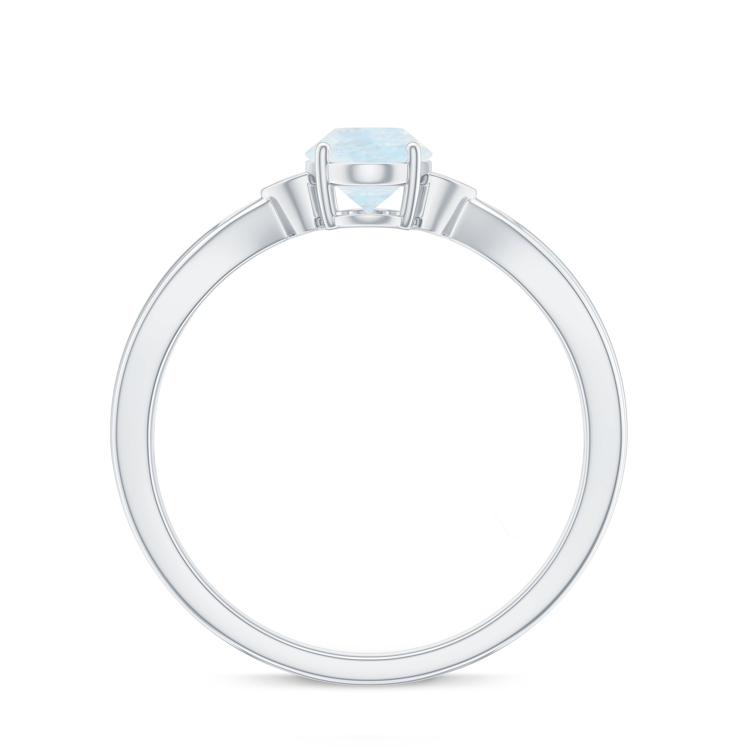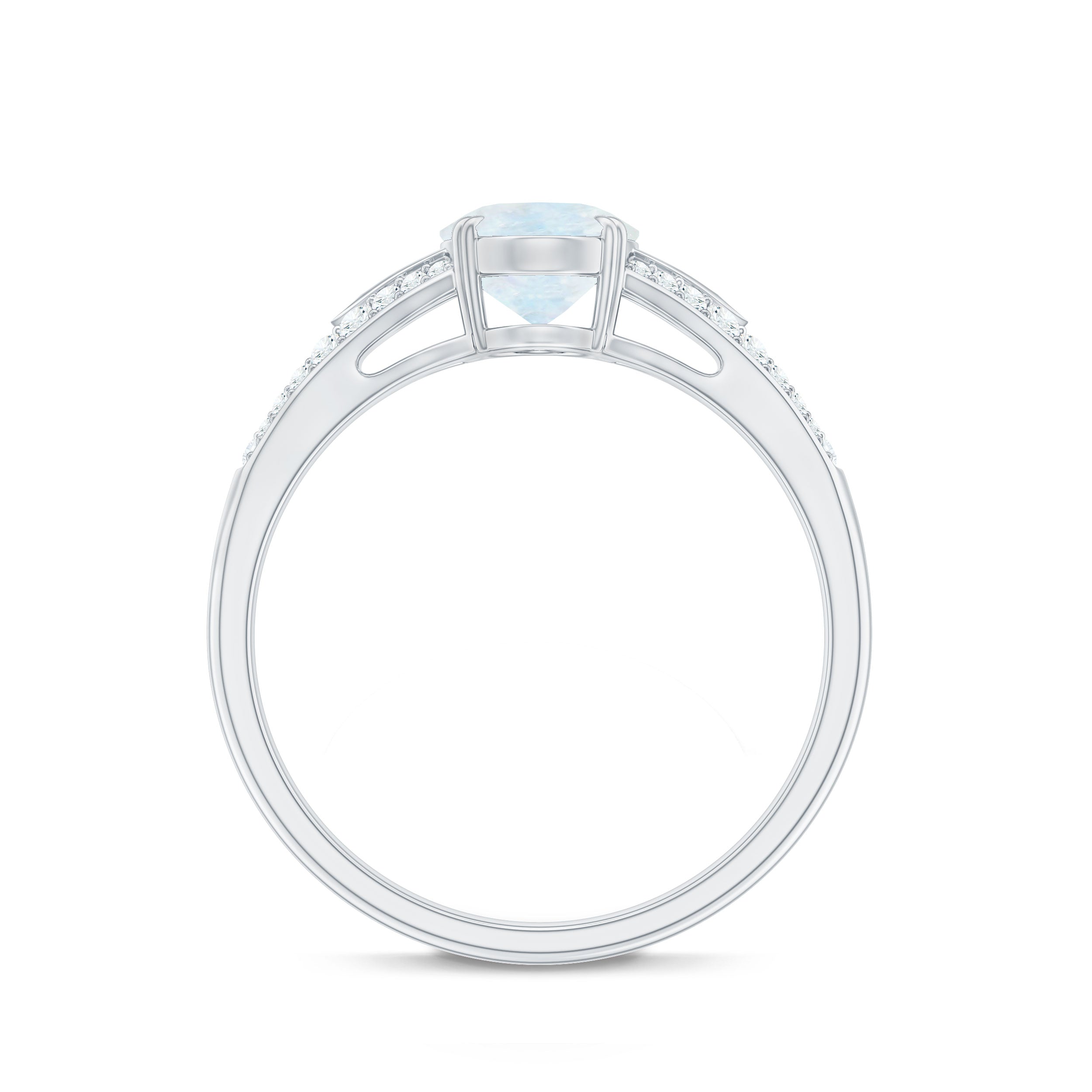 Easily the most sophisticated and Simple Moonstone Ring in the entire collection, a Solitaire Style features the Centerpiece of a Moonstone (of any shape) that stands out on its own. The Moonstone Solitaire here is at least 6 MM in size, which also makes it a one-of-a-kind choice of Moonstone Engagement Ring. It is fashioned in a versatile number of shapes that cater to just as many senses of style. While a Round or Oval Moonstone Ring exudes a conventional touch, a ring adorned with a princess, marquise, or pear-cut Moonstone is more on the fancier side of the spectrum. On the other hand, if you’re on the hunt for an Antique Moonstone Ring, go for the one fashioned in Emerald, Cushion, or Asscher cut Center stone.
