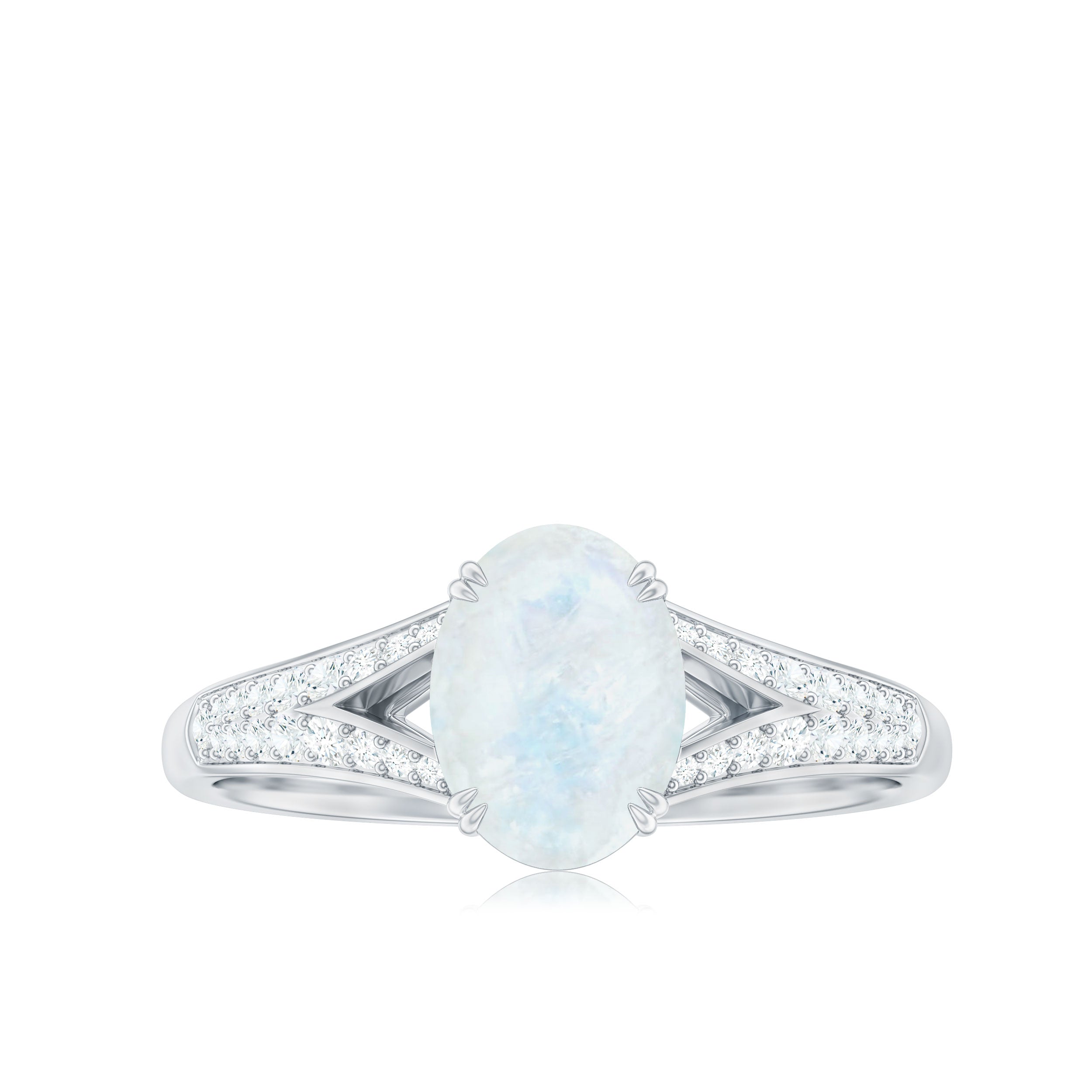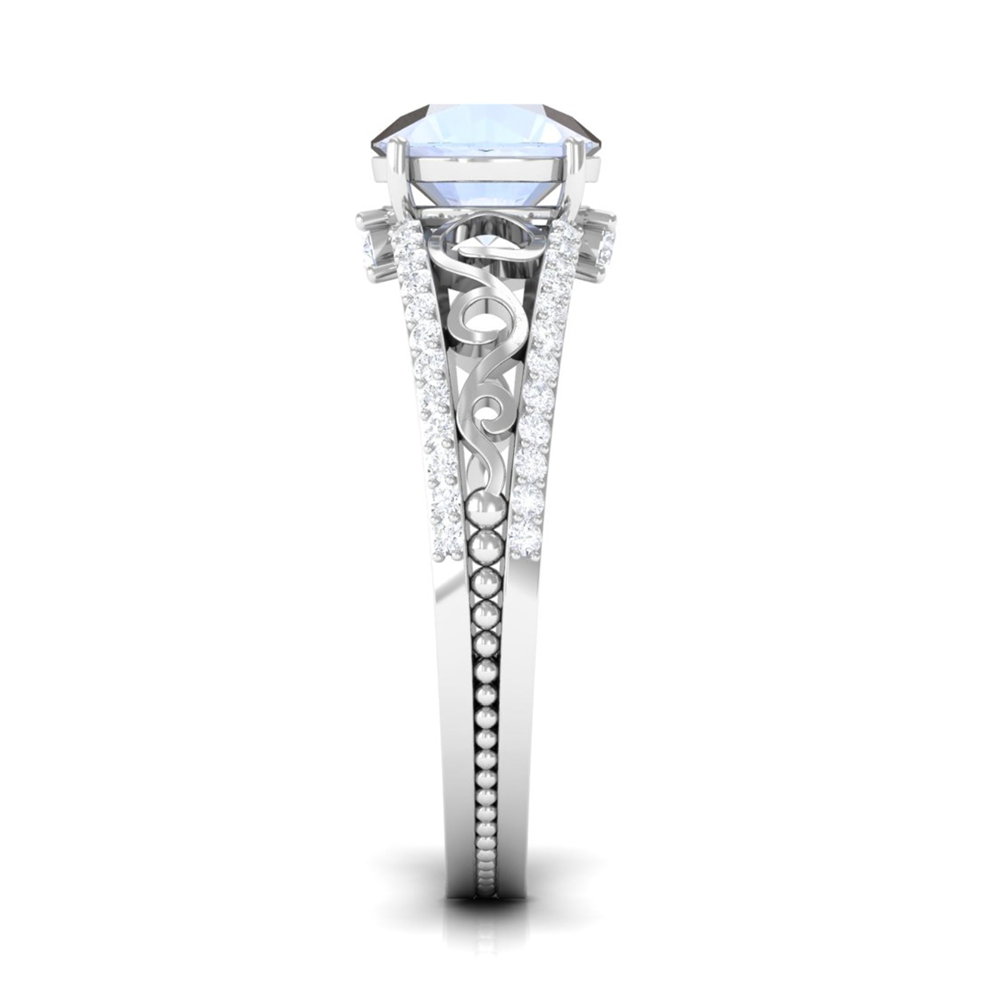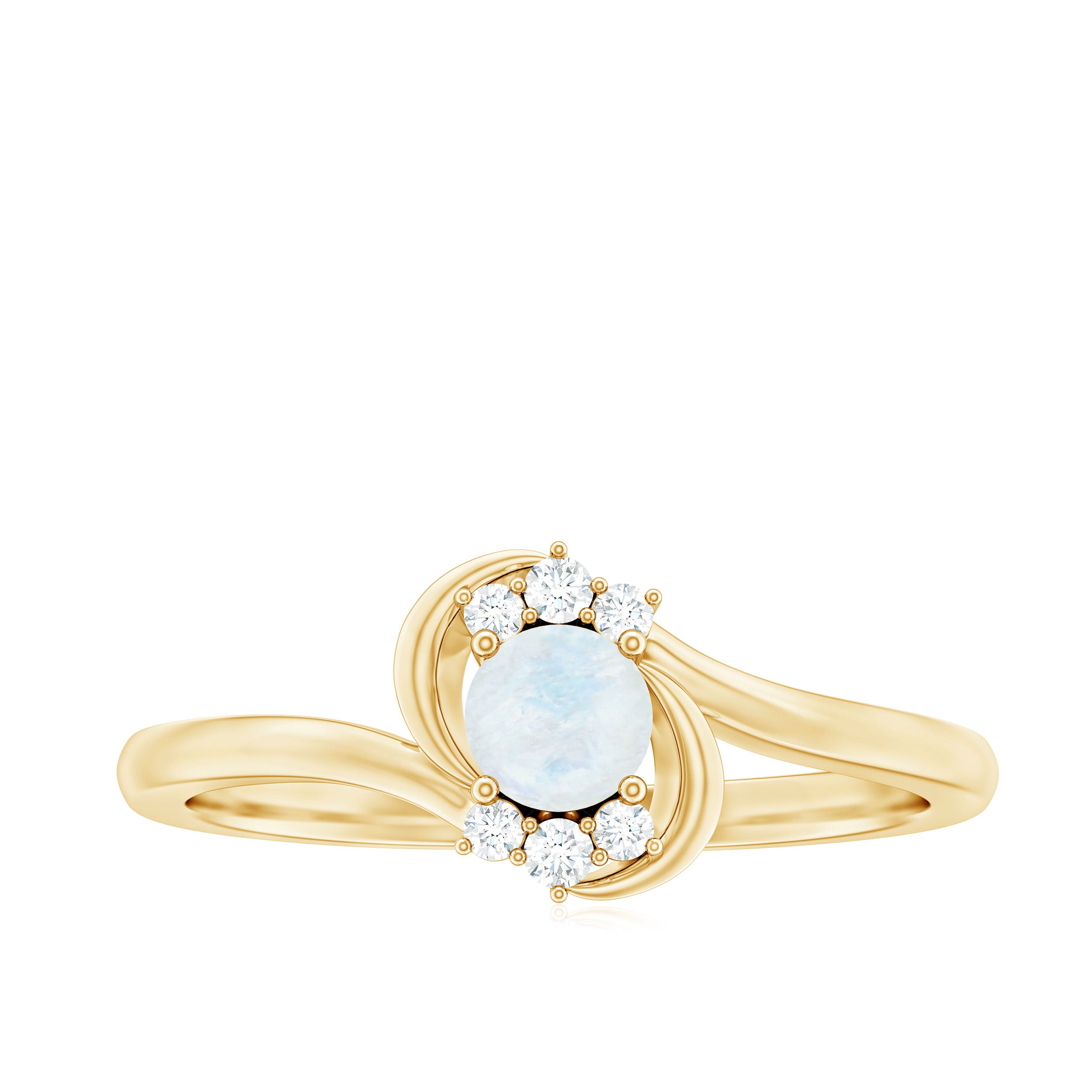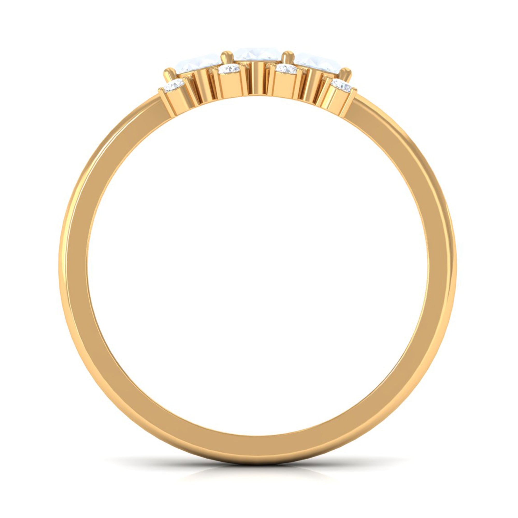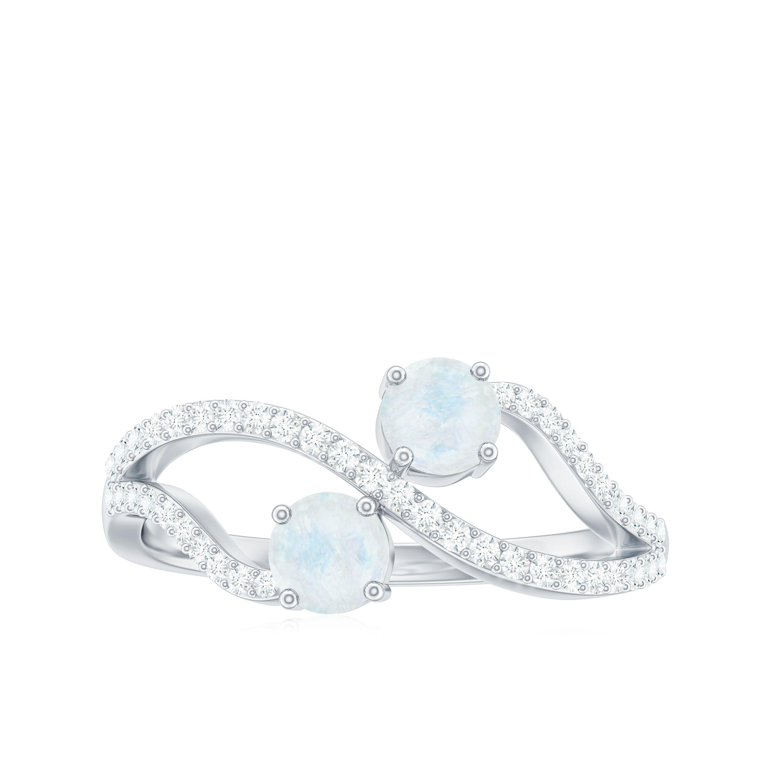 Easily the most sophisticated and Simple Moonstone Ring in the entire collection, a Solitaire Style features the Centerpiece of a Moonstone (of any shape) that stands out on its own. The Moonstone Solitaire here is at least 6 MM in size, which also makes it a one-of-a-kind choice of Moonstone Engagement Ring. It is fashioned in a versatile number of shapes that cater to just as many senses of style. While a Round or Oval Moonstone Ring exudes a conventional touch, a ring adorned with a princess, marquise, or pear-cut Moonstone is more on the fancier side of the spectrum. On the other hand, if you’re on the hunt for an Antique Moonstone Ring, go for the one fashioned in Emerald, Cushion, or Asscher cut Center stone.
