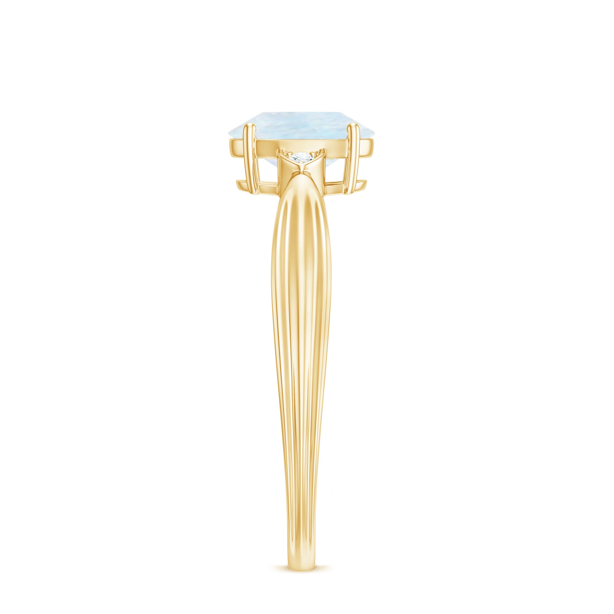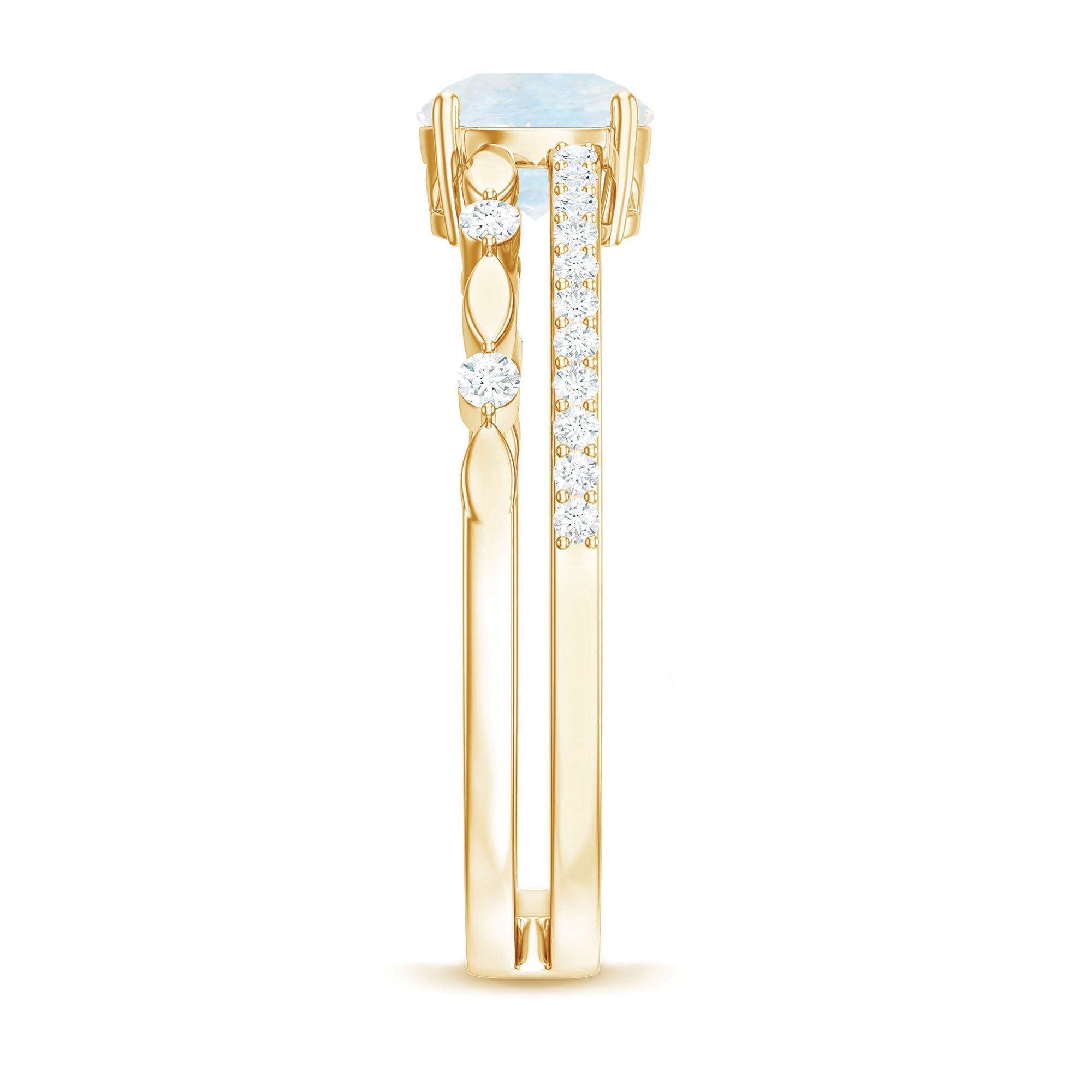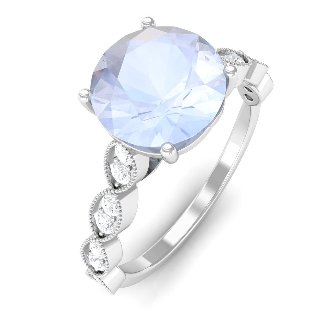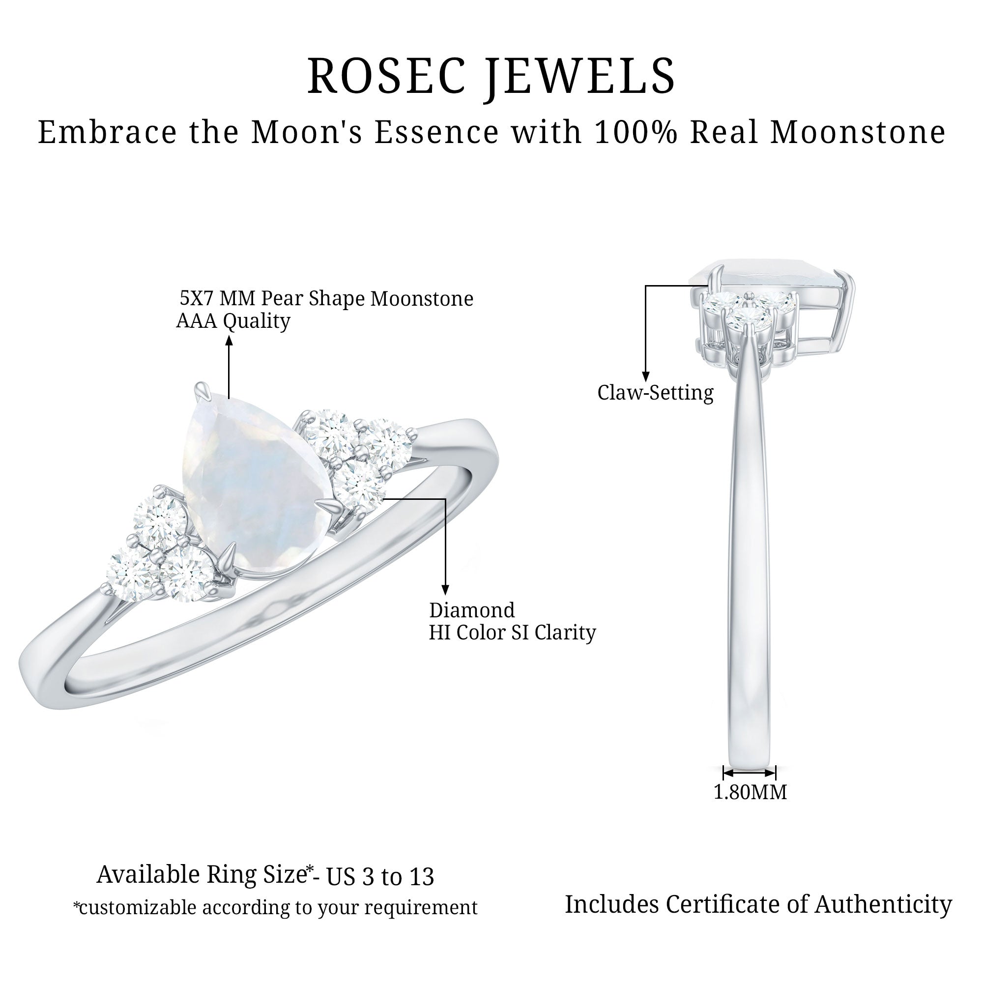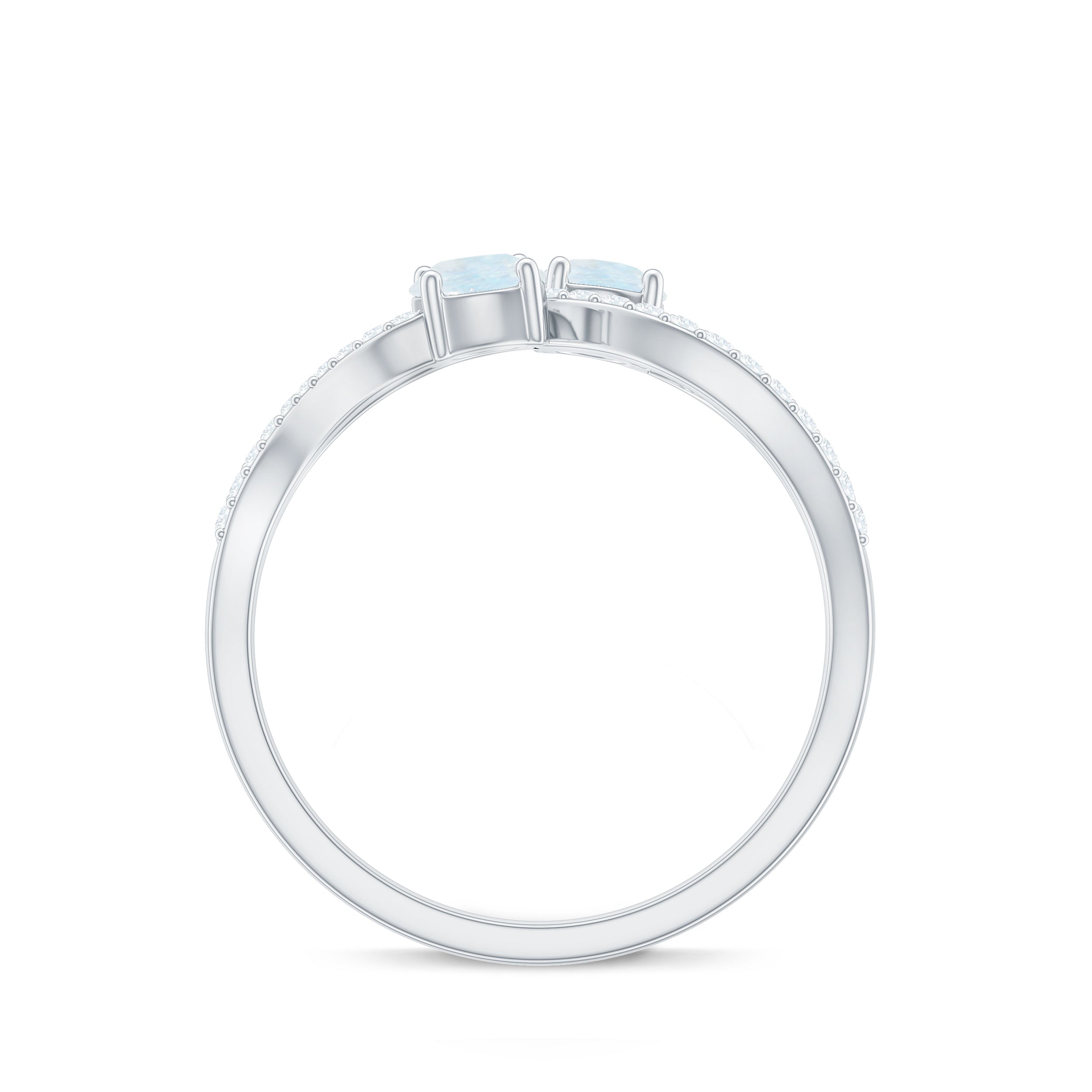 Easily the most sophisticated and Simple Moonstone Ring in the entire collection, a Solitaire Style features the Centerpiece of a Moonstone (of any shape) that stands out on its own. The Moonstone Solitaire here is at least 6 MM in size, which also makes it a one-of-a-kind choice of Moonstone Engagement Ring. It is fashioned in a versatile number of shapes that cater to just as many senses of style. While a Round or Oval Moonstone Ring exudes a conventional touch, a ring adorned with a princess, marquise, or pear-cut Moonstone is more on the fancier side of the spectrum. On the other hand, if you’re on the hunt for an Antique Moonstone Ring, go for the one fashioned in Emerald, Cushion, or Asscher cut Center stone.