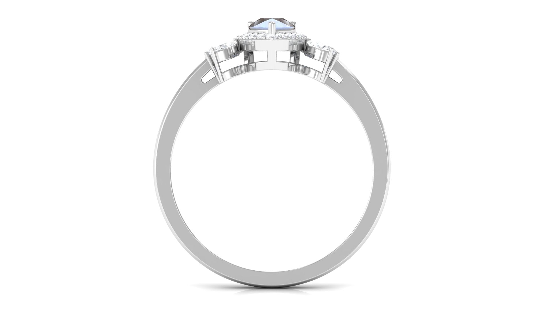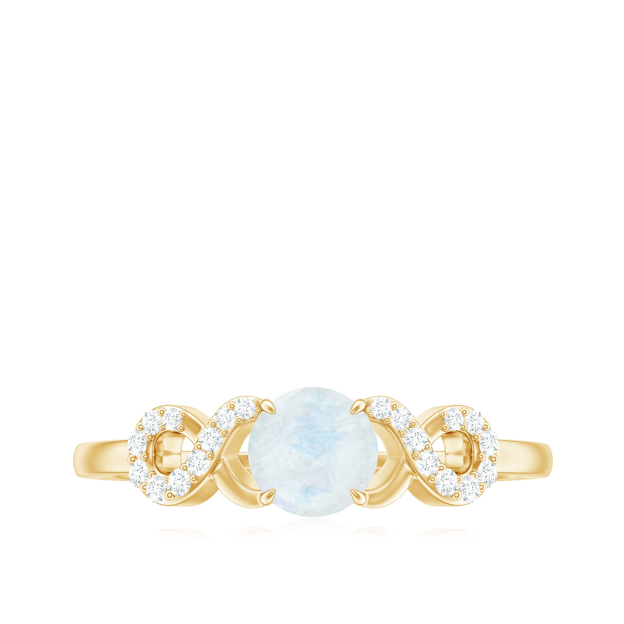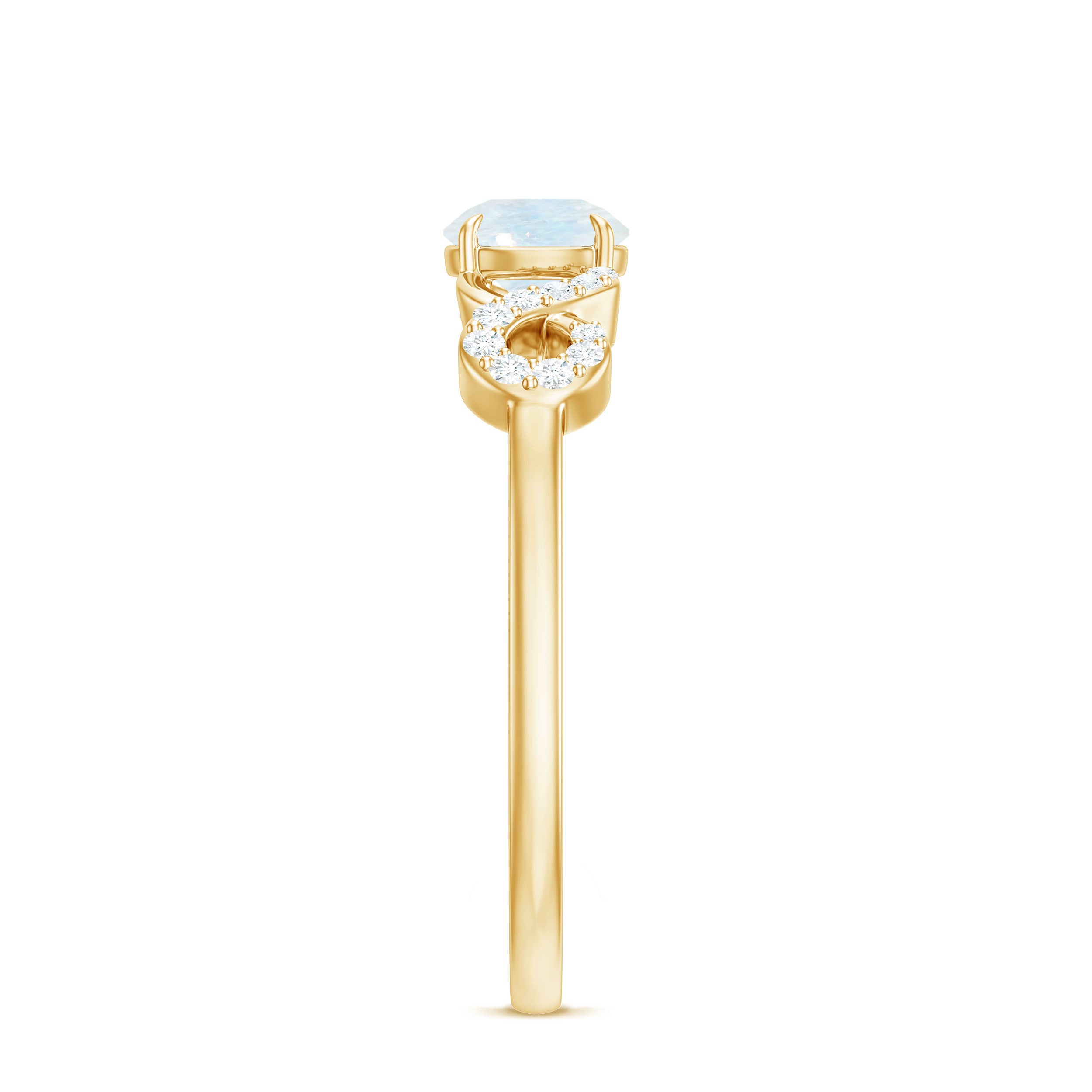Extraordinary but undefined by a specific style, a Moonstone Promise Ring is a lot more minimalist than an Engagement Ring. It ranges from a Simple Moonstone Solitaire Ring that is quite understated thanks to its dainty size of 4 MM or less. Or it could be a lot more visually appealing when decorated with minimalist nature, infinity, or floral inspired motifs and sparkling accents of Diamond/Moissanite. Beyond that, this ring style oozes romance since it commemorates the promise of lifelong commitment, making the Moonstone Heart Ring the most meaningful pick in this category.