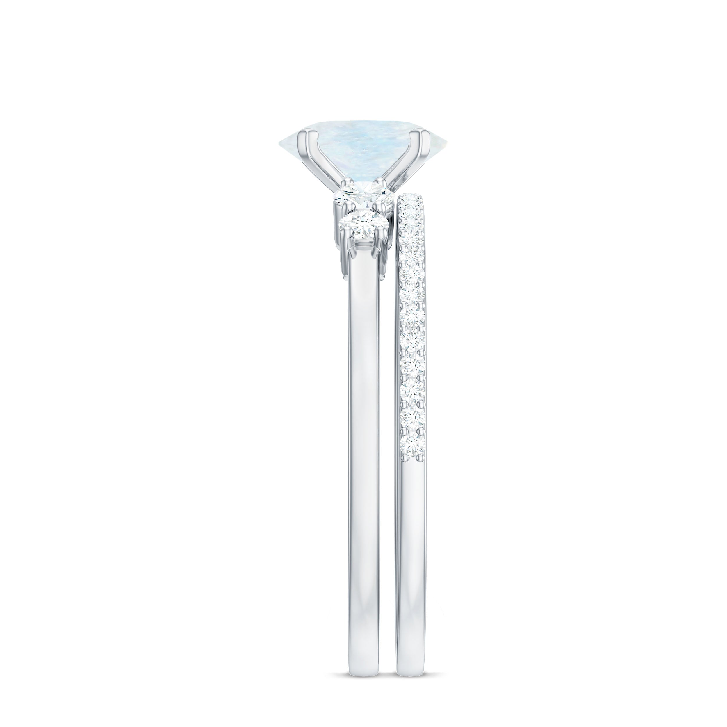 Similar to the eternity ring, a Moonstone Wedding Ring is encrusted with an endless row of Moonstones. But the many distinctive designs that this ring carries set it apart. It can be something as simple as a Plain Moonstone Band Ring that goes ahead to make for a beautiful Moonstone Engagement Ring Set. Or be more ornately crafted such as the rings that are beautified by a Sparkling Floating Halo, triple row, or vintage-inspired detailing. Needless to mention, it is exchanged between couples as an official token of their love and commitment.