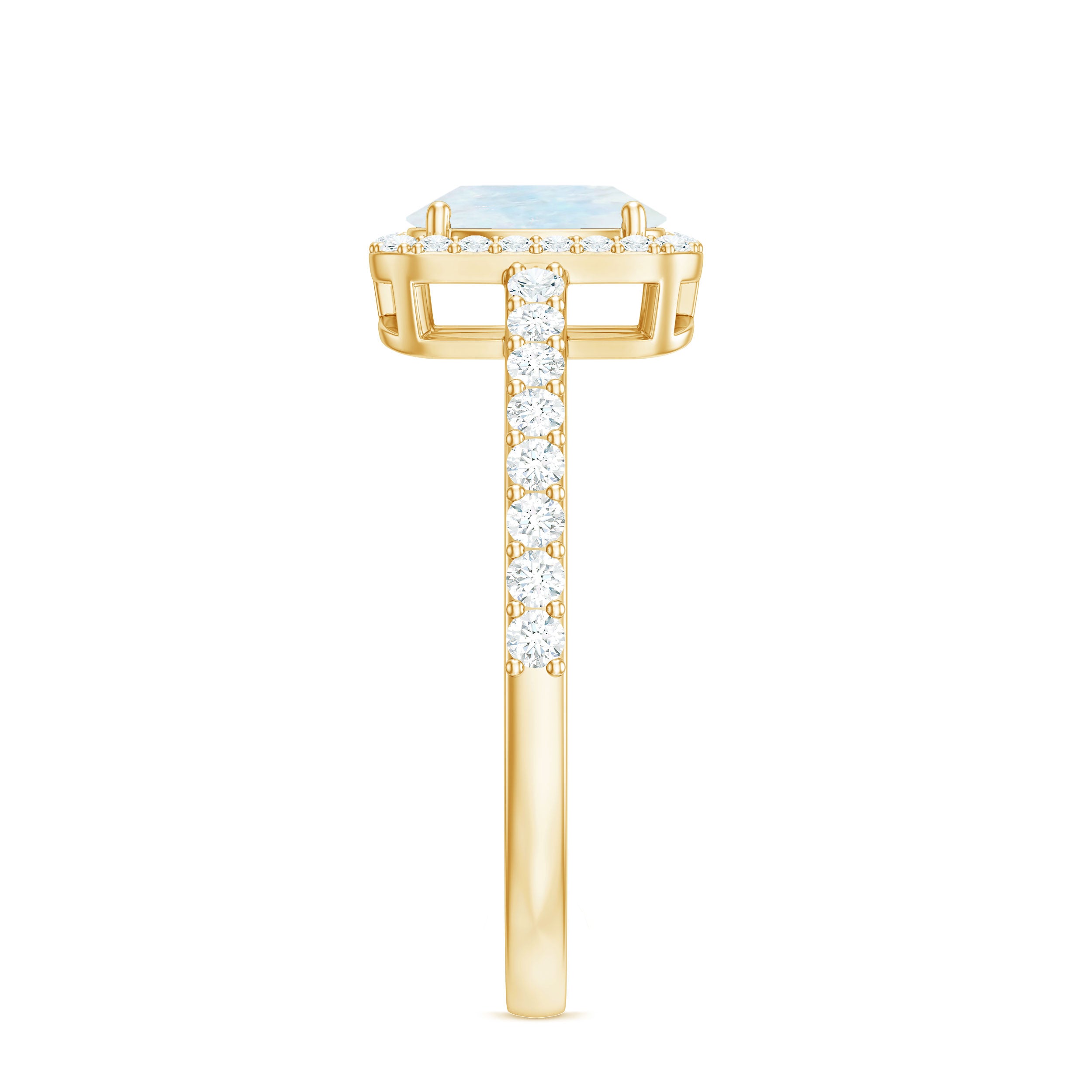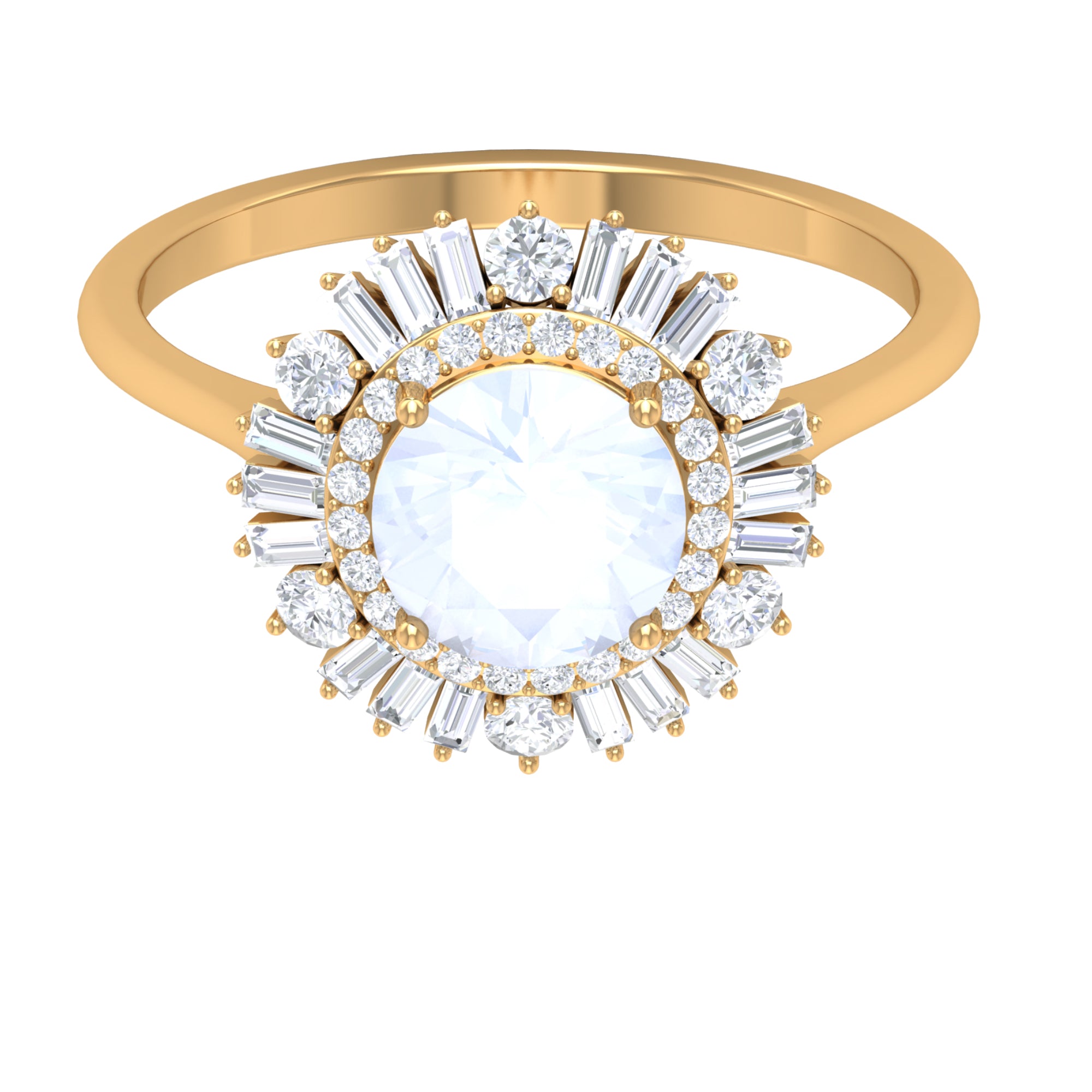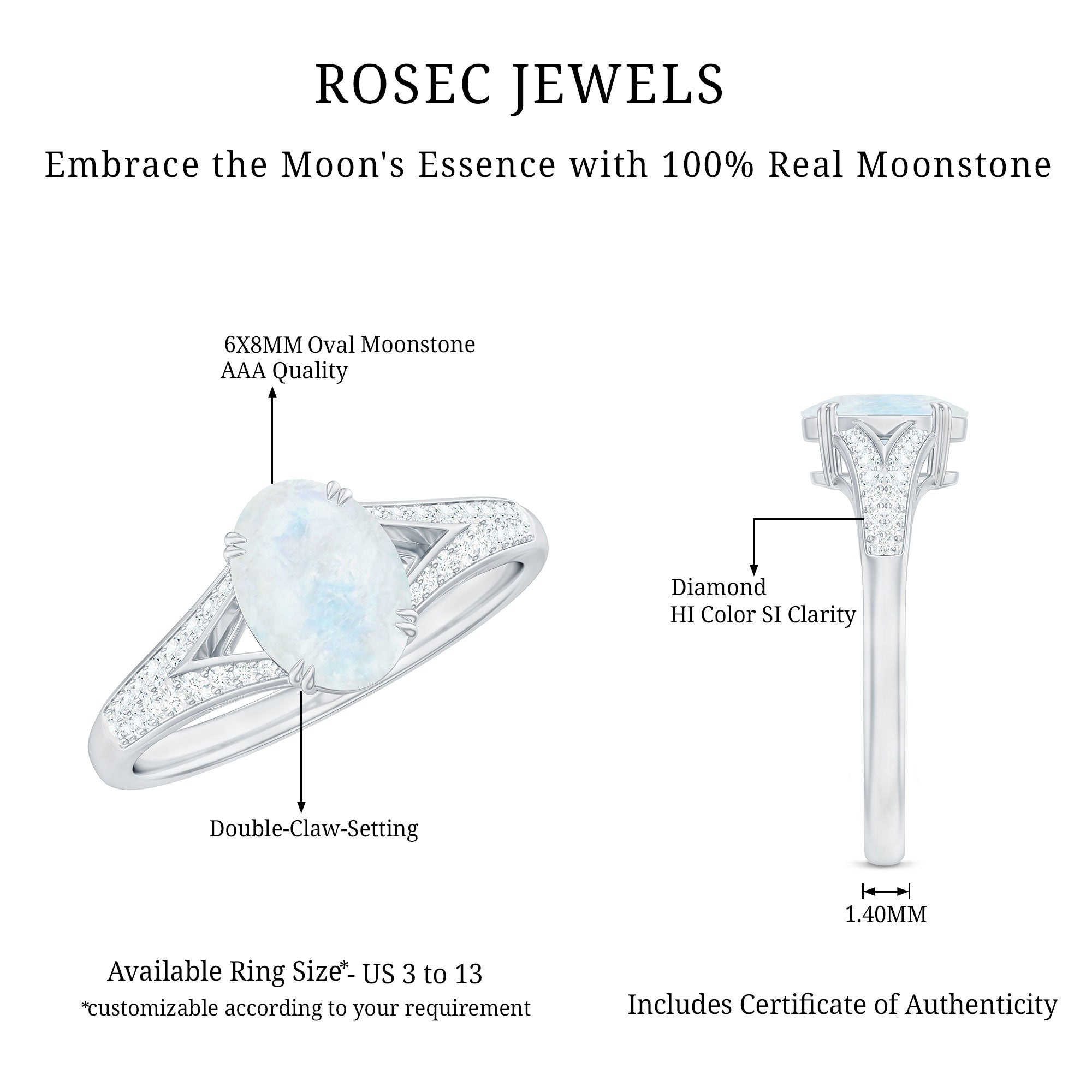 A Halo adorns the sheeny Centerpiece of Moonstone a sparkling touch with the shimmering parade of Diamond/Moissanite all around. Also, if you’re all about glitz and glam but still like a little classic touch, a Moonstone Ring with Diamonds (in a Halo) could be your best bet. The best part? It doesn’t just bestow more character on your Moonstone; it best highlights its beauty by making it appear larger.