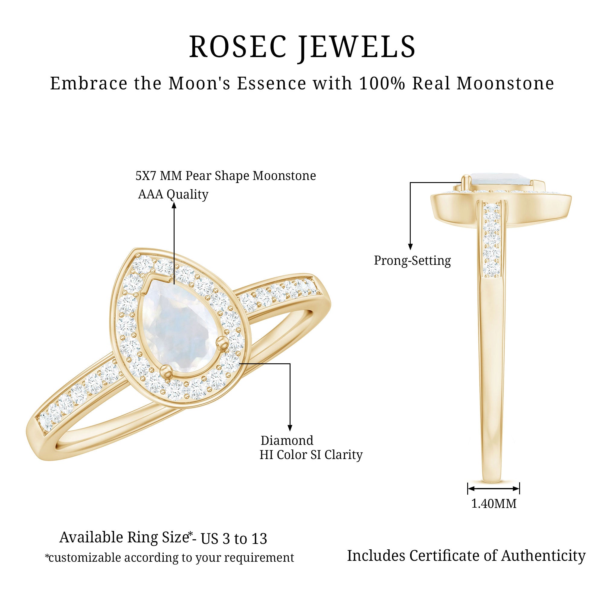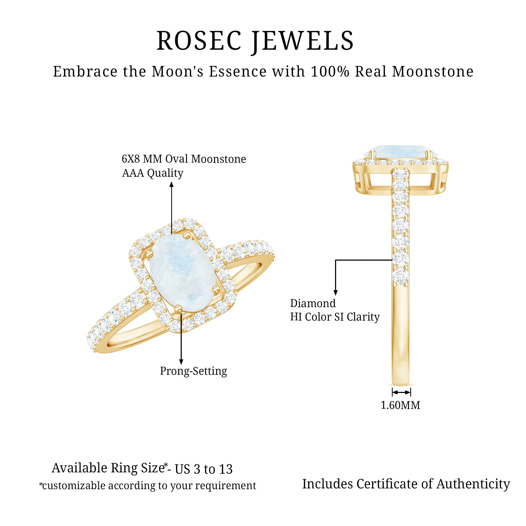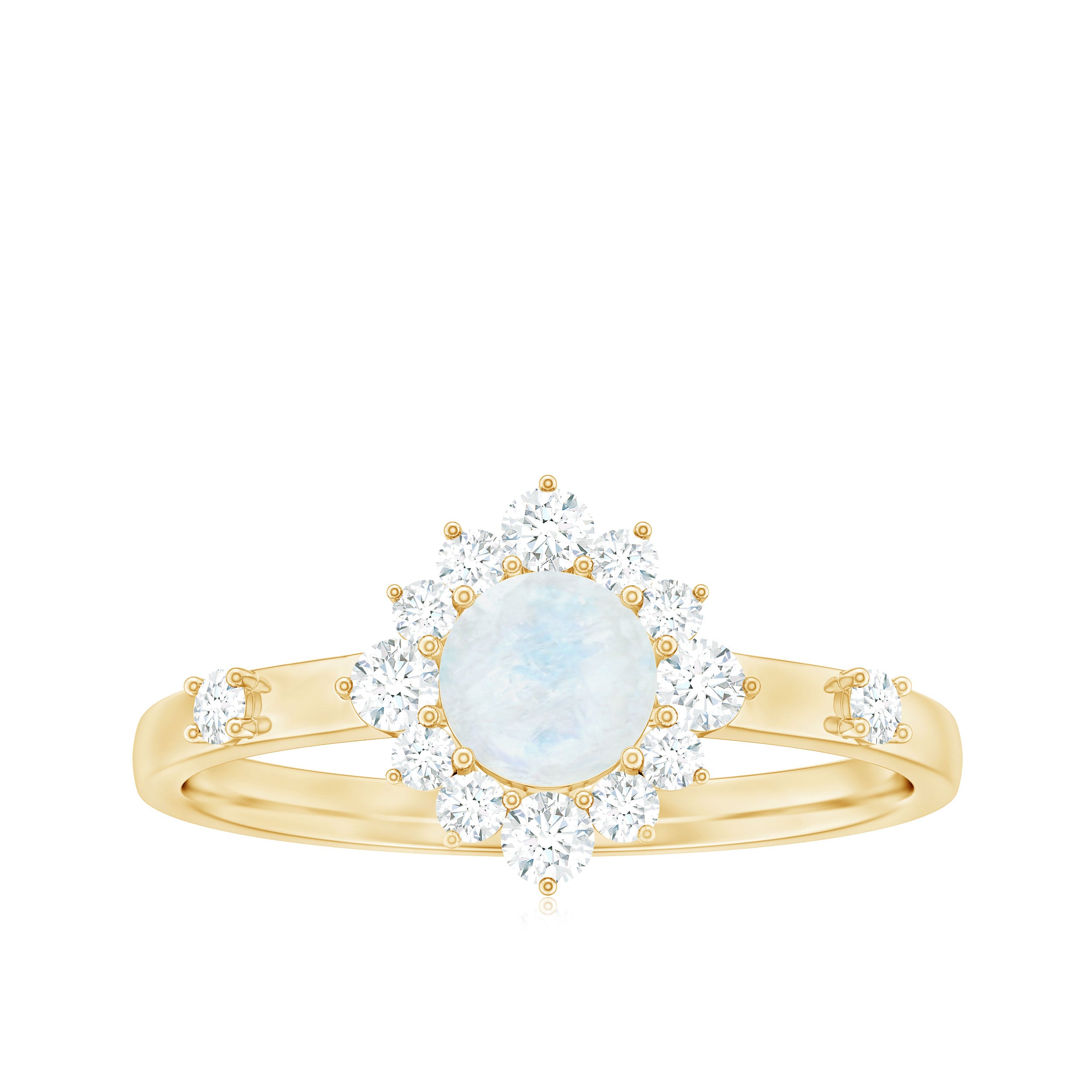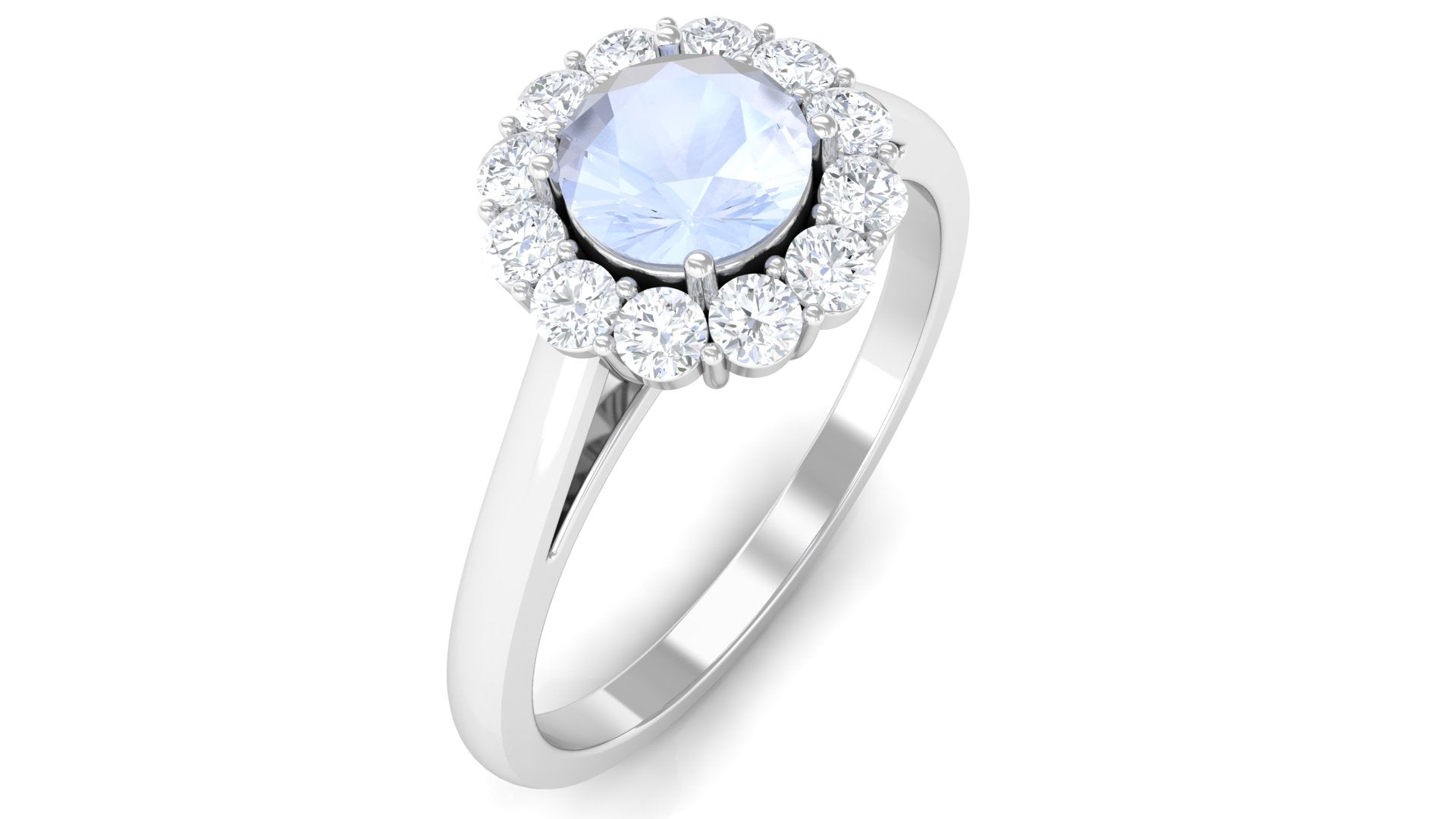 A Halo adorns the sheeny Centerpiece of Moonstone a sparkling touch with the shimmering parade of Diamond/Moissanite all around. Also, if you’re all about glitz and glam but still like a little classic touch, a Moonstone Ring with Diamonds (in a Halo) could be your best bet. The best part? It doesn’t just bestow more character on your Moonstone; it best highlights its beauty by making it appear larger.