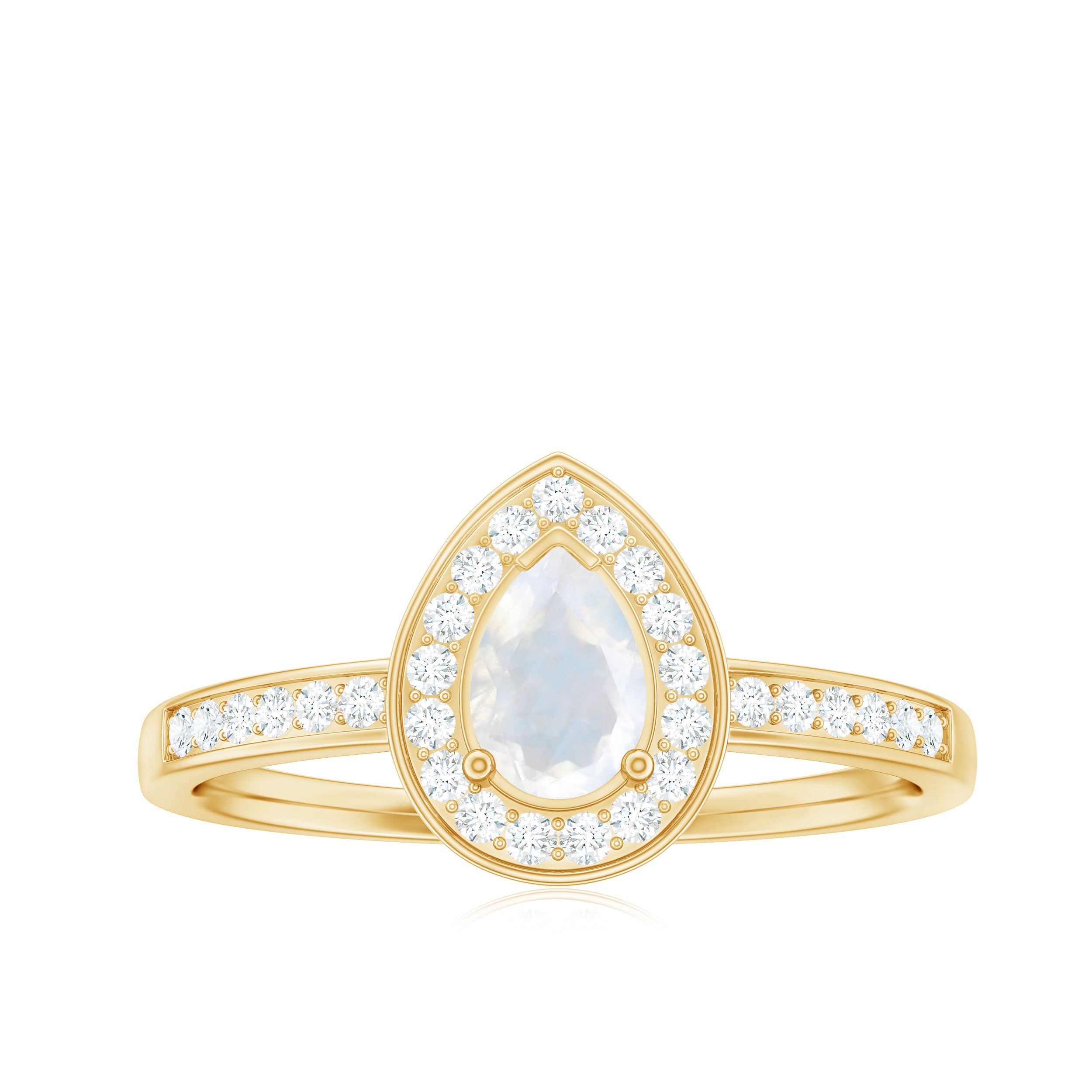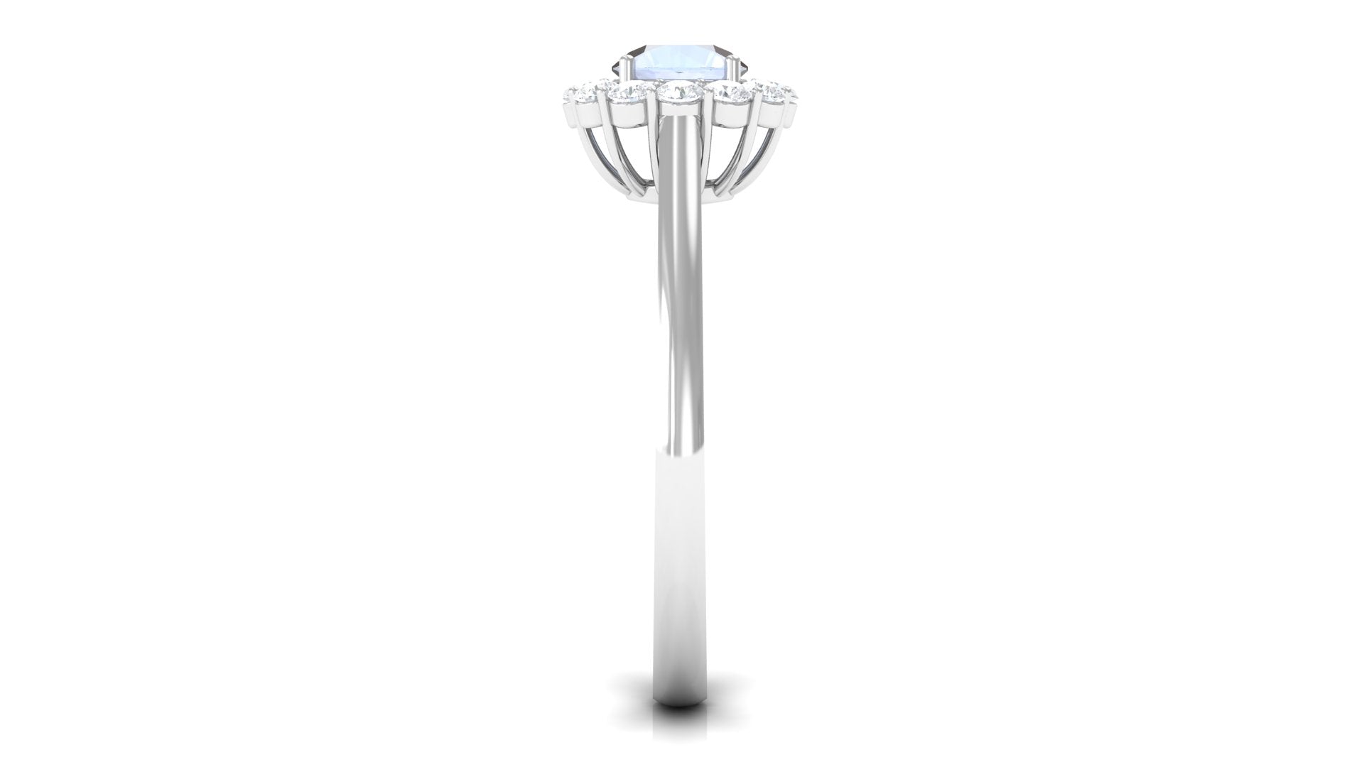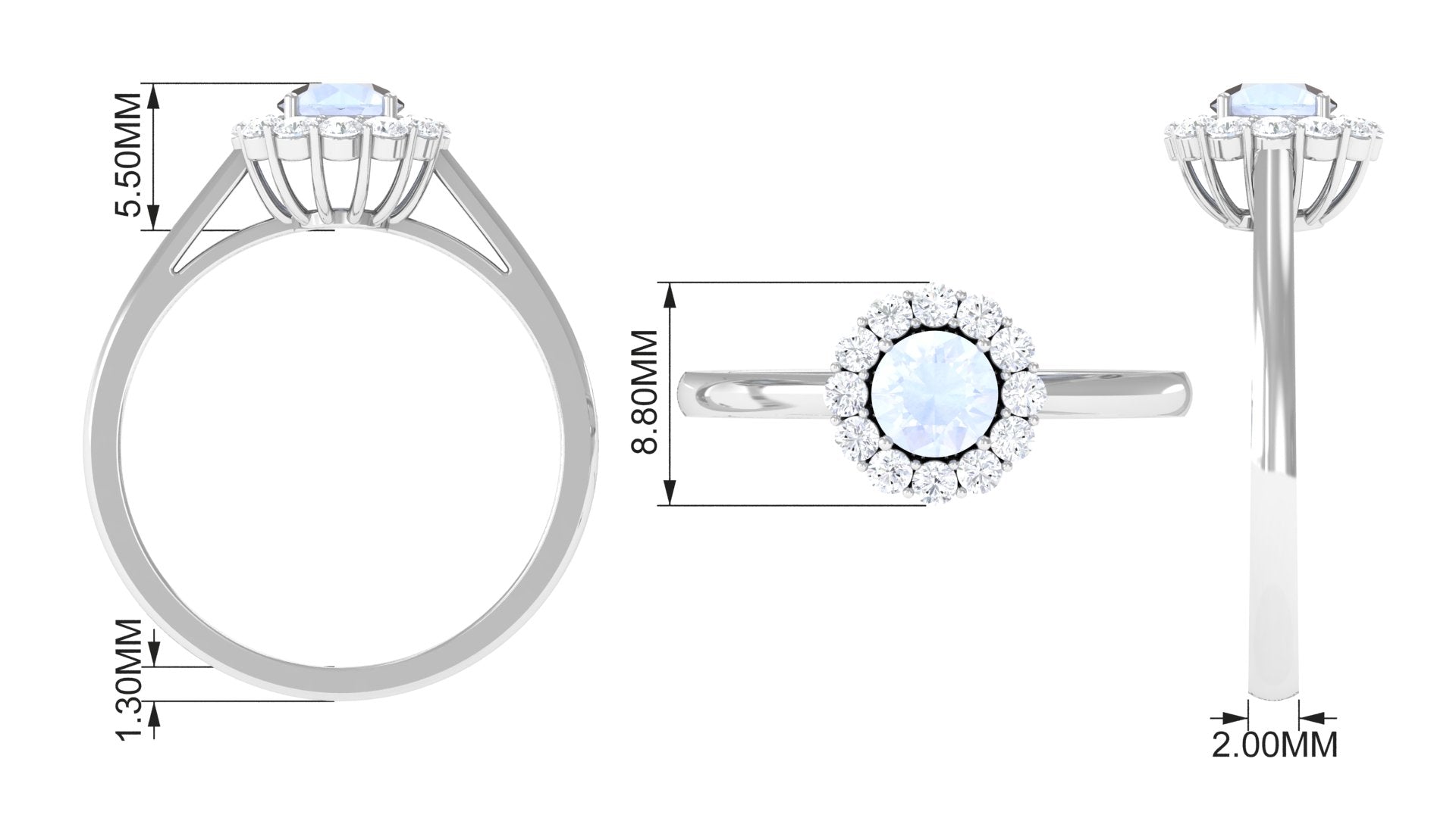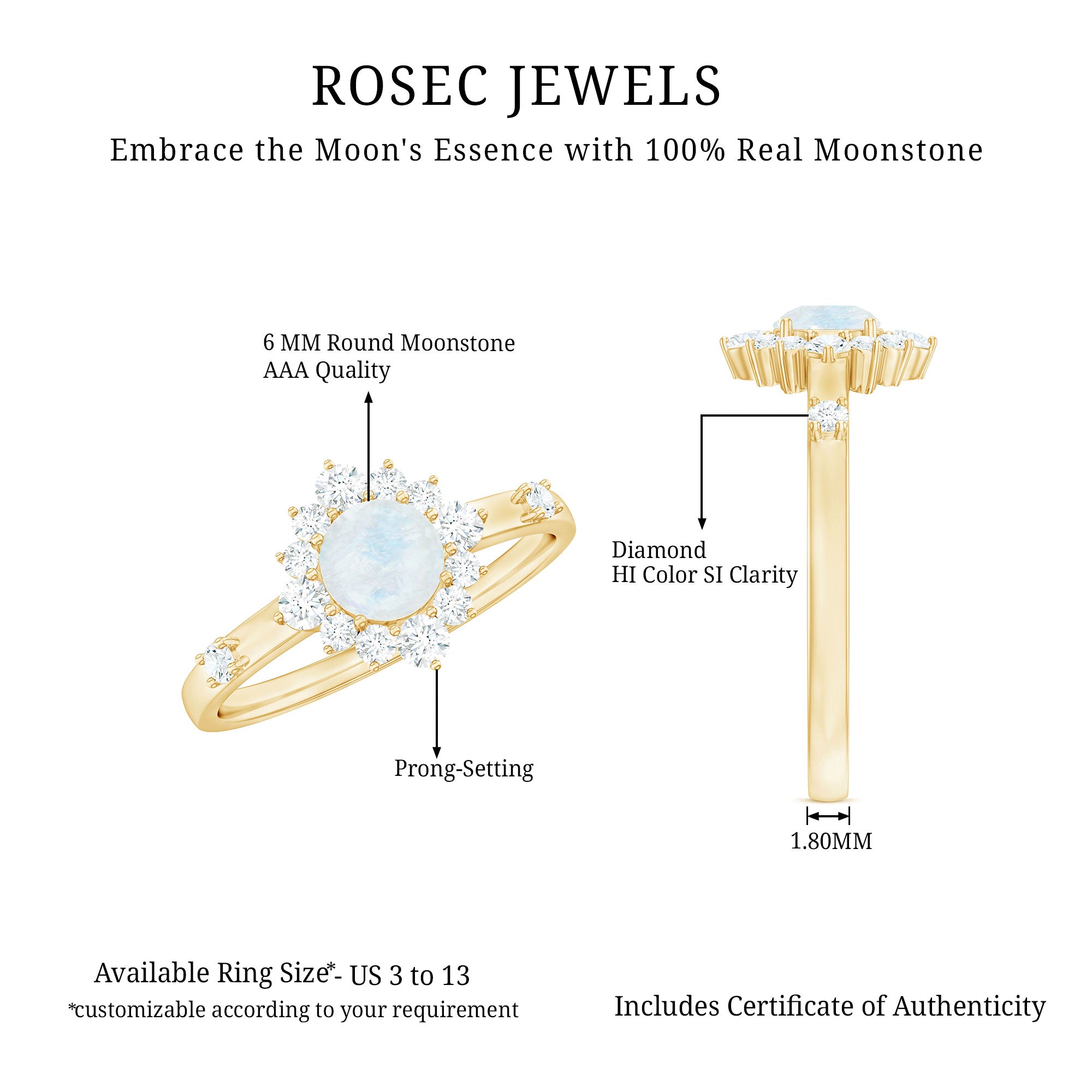 A Halo adorns the sheeny Centerpiece of Moonstone a sparkling touch with the shimmering parade of Diamond/Moissanite all around. Also, if you’re all about glitz and glam but still like a little classic touch, a Moonstone Ring with Diamonds (in a Halo) could be your best bet. The best part? It doesn’t just bestow more character on your Moonstone; it best highlights its beauty by making it appear larger.