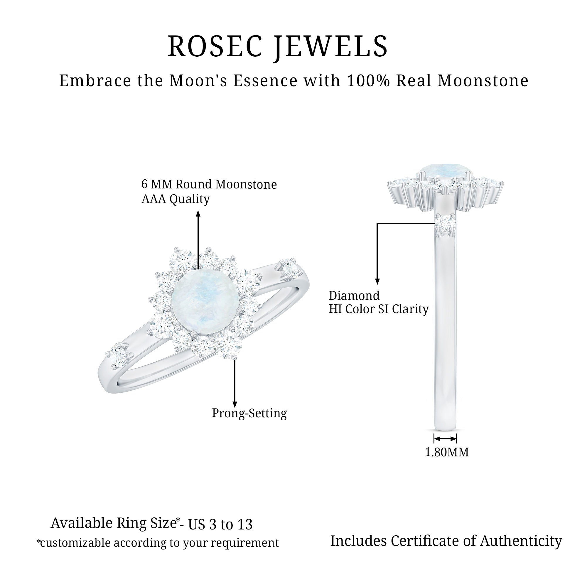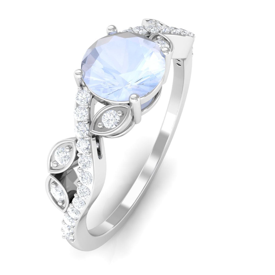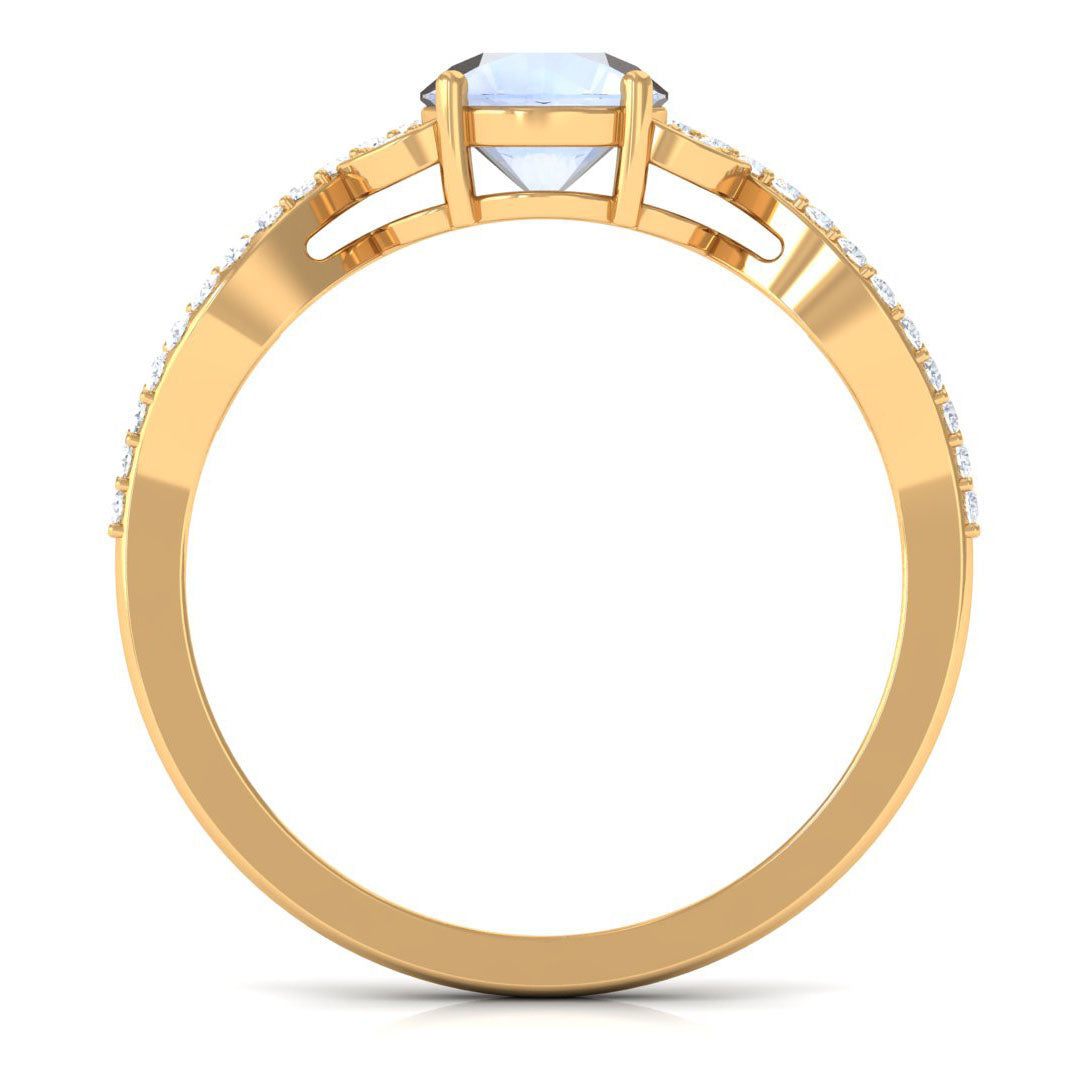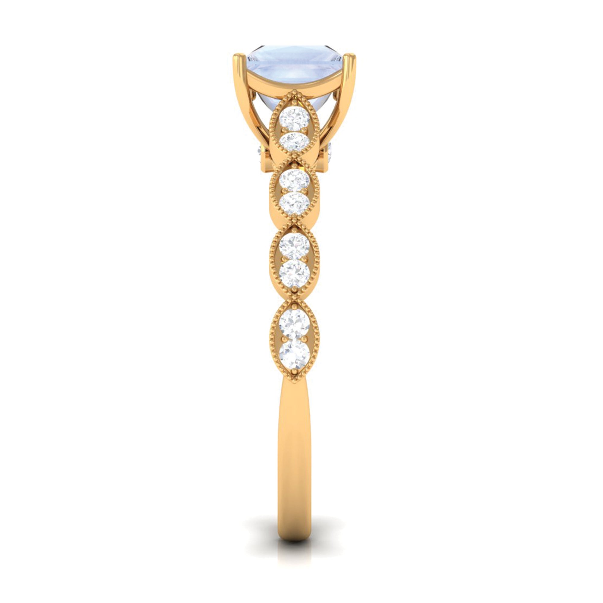 Easily the most sophisticated and Simple Moonstone Ring in the entire collection, a Solitaire Style features the Centerpiece of a Moonstone (of any shape) that stands out on its own. The Moonstone Solitaire here is at least 6 MM in size, which also makes it a one-of-a-kind choice of Moonstone Engagement Ring. It is fashioned in a versatile number of shapes that cater to just as many senses of style. While a Round or Oval Moonstone Ring exudes a conventional touch, a ring adorned with a princess, marquise, or pear-cut Moonstone is more on the fancier side of the spectrum. On the other hand, if you’re on the hunt for an Antique Moonstone Ring, go for the one fashioned in Emerald, Cushion, or Asscher cut Center stone.