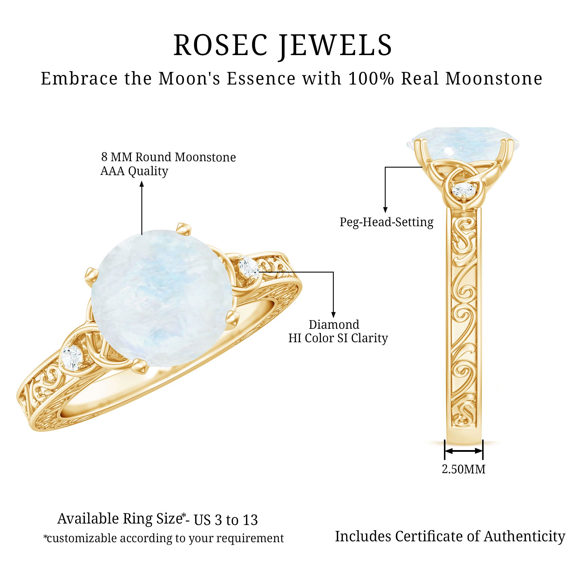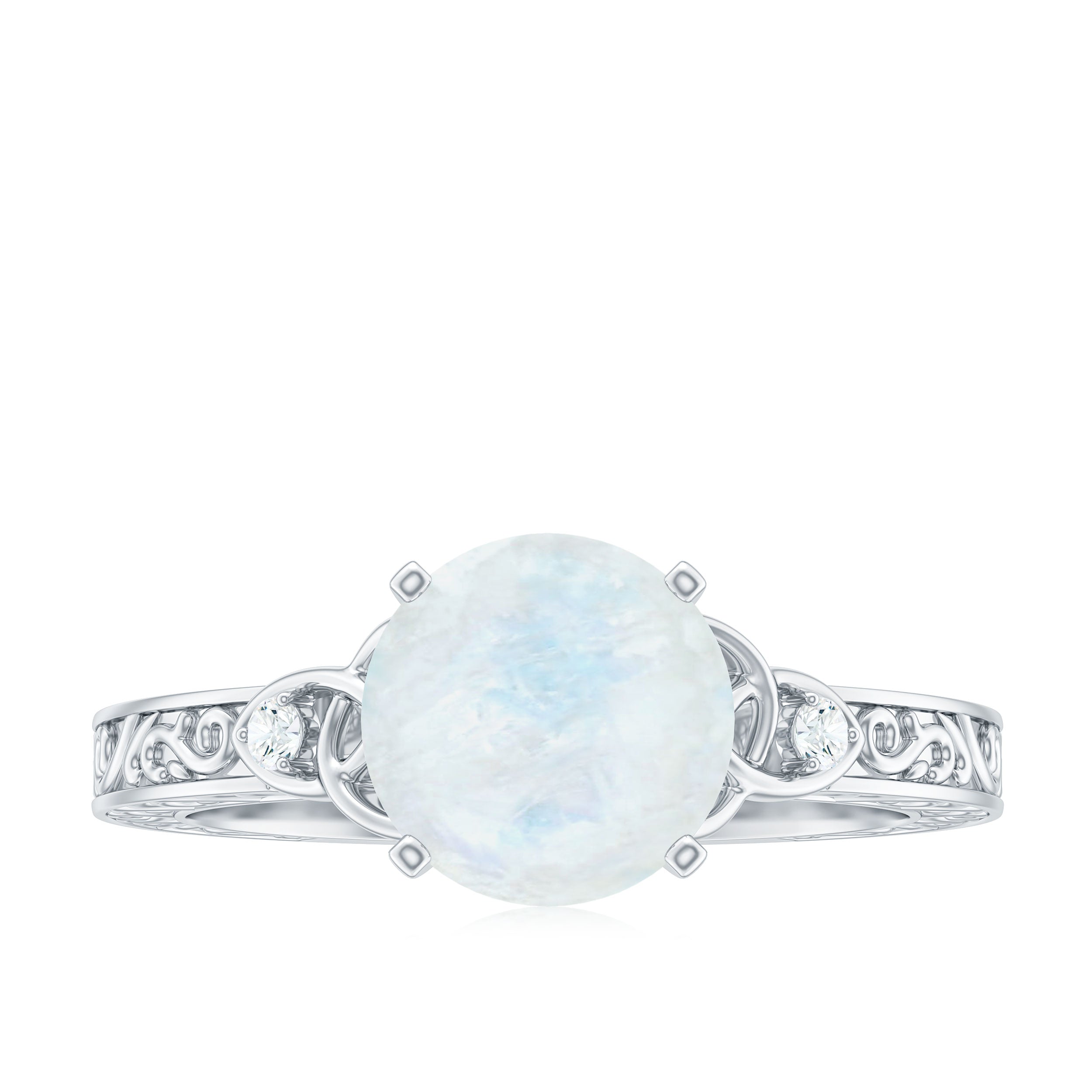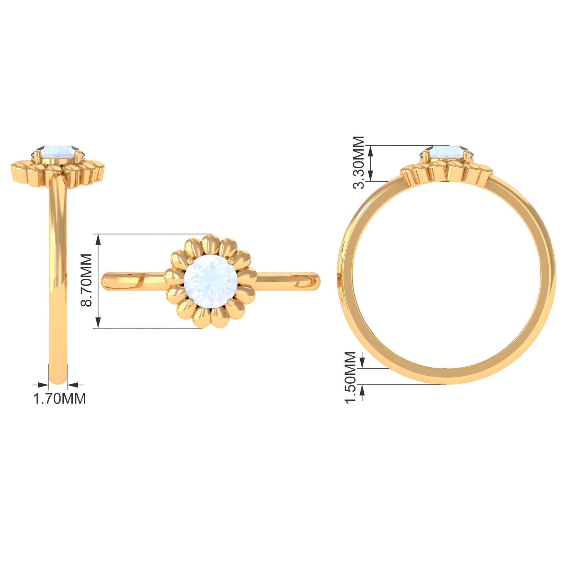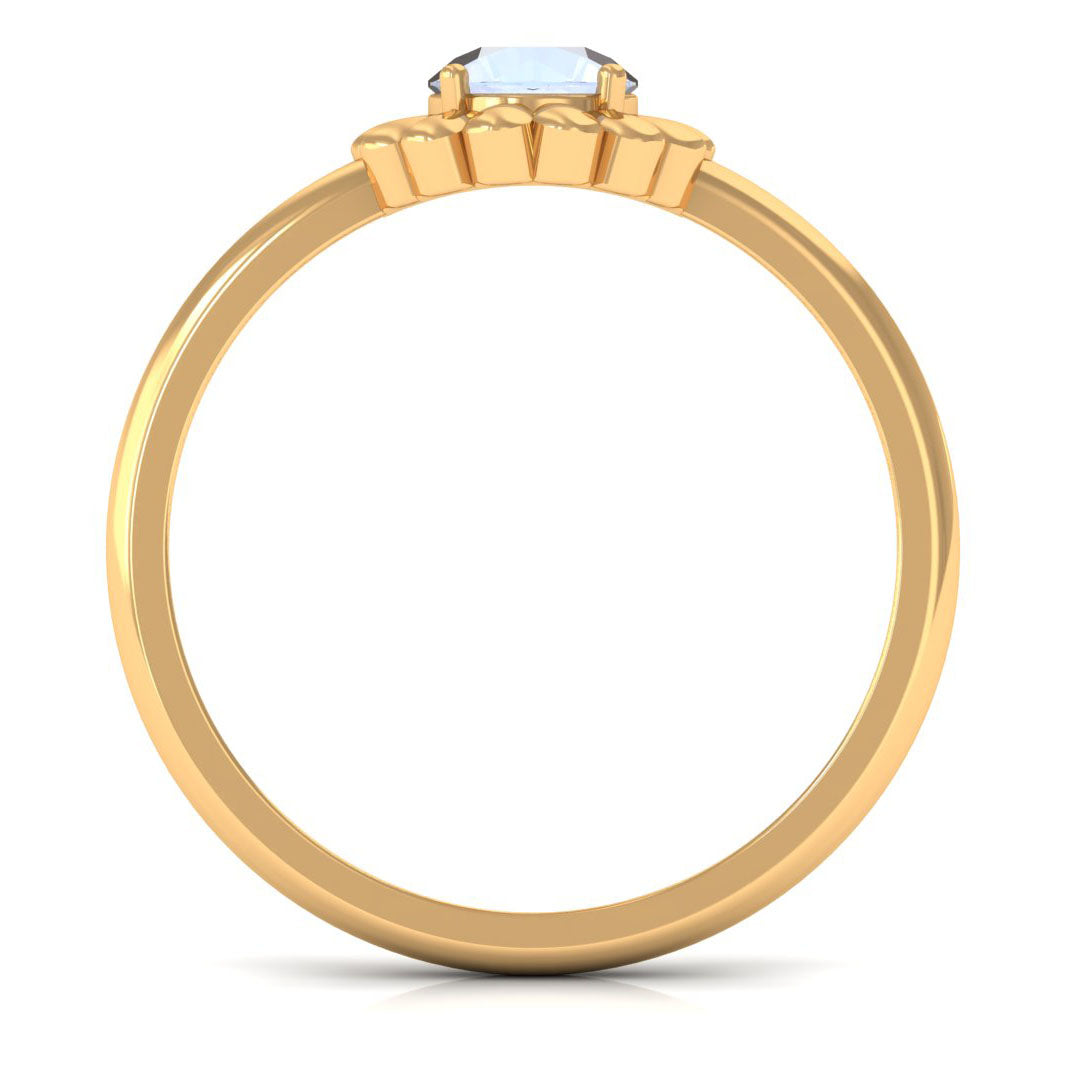 Nothing short of a piece of ancient art, a Vintage Moonstone Ring complements the surreal charm of Moonstone with ornate designs from the Victorian, Edwardian, and Art Deco Eras. Precisely, this Unique Moonstone Ring is skillfully crafted with intricately crafted abstract patterns as well as milgrain and filigree detailing. For those who like an heirloom touch in their emblem of love, this also makes for a beautiful Moonstone Engagement Ring.