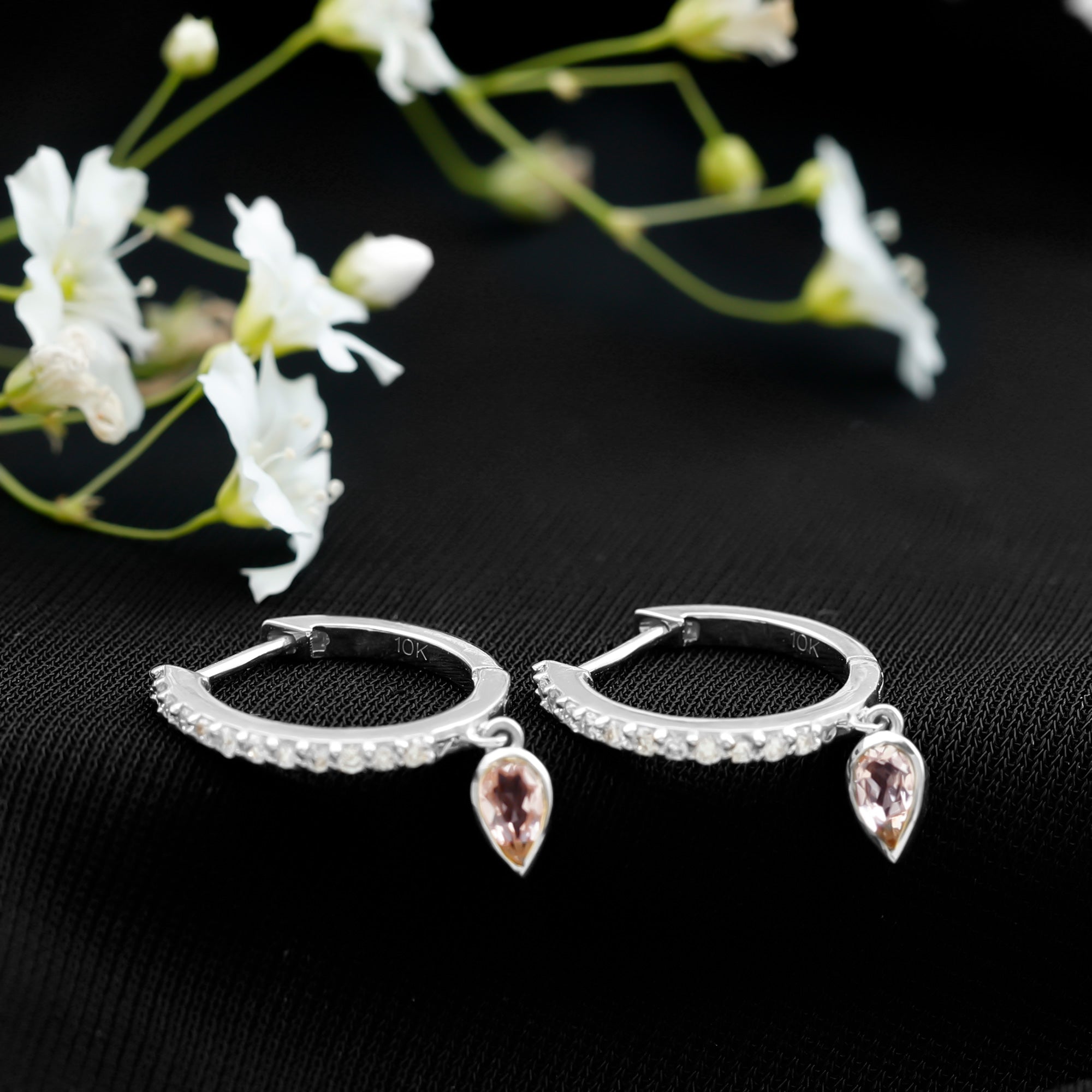 Perfect to make a chic statement, Morganite Hoop Earrings are characterized by a circular or semi-circular shape. To lend them an elegant visual appeal, they are studded with the stunning centerpiece of Morganite. From small and delicate huggie hoops to large and statement-making ones, they perfectly cover your desk to dinner looks.