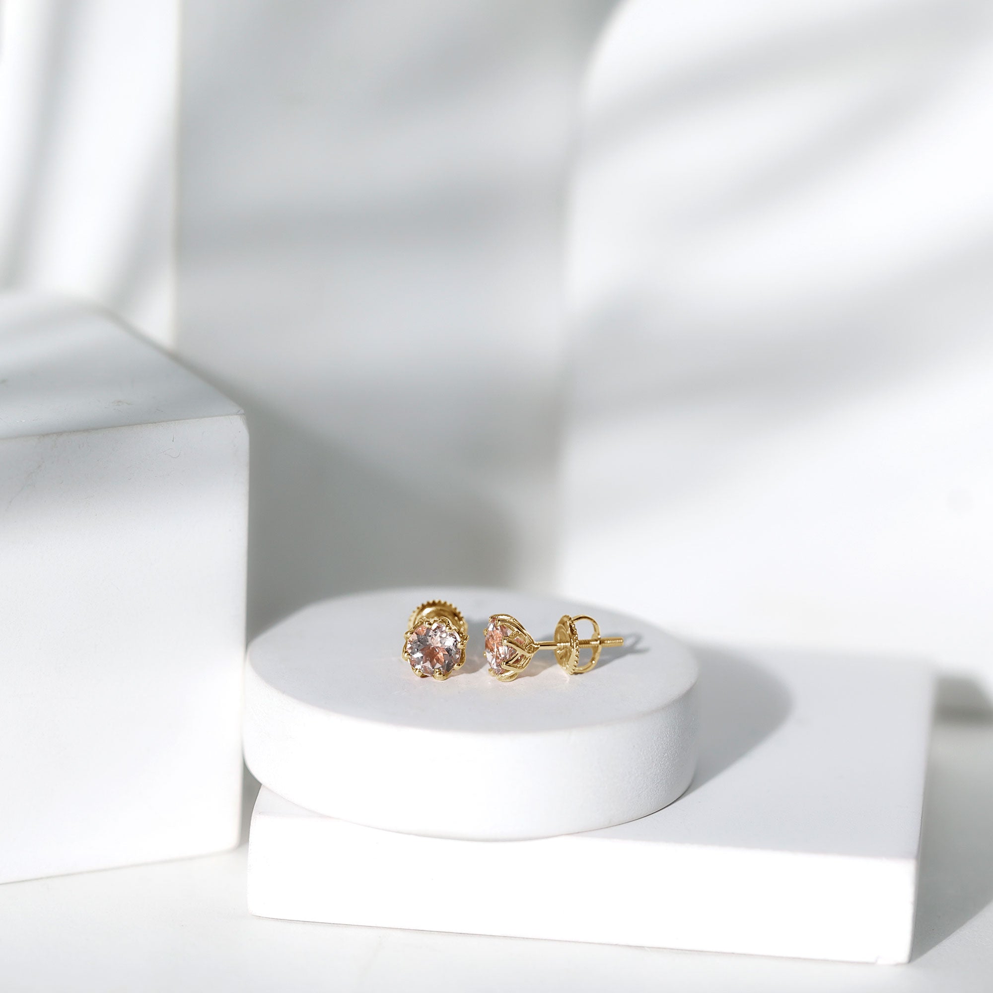 An everyday choice of elegance, Morganite Stud Earrings are decorated with a stunning Centerpiece of Morganite that sits directly on the earlobe. They are often secured by screw back, push back, and butterfly clutch closures. From the most Classic Solitaire Studs to a shimmering pair of Morganite Halo Earrings, each piece in this style makes for a timeless statement that goes effortlessly with your everyday ensembles.