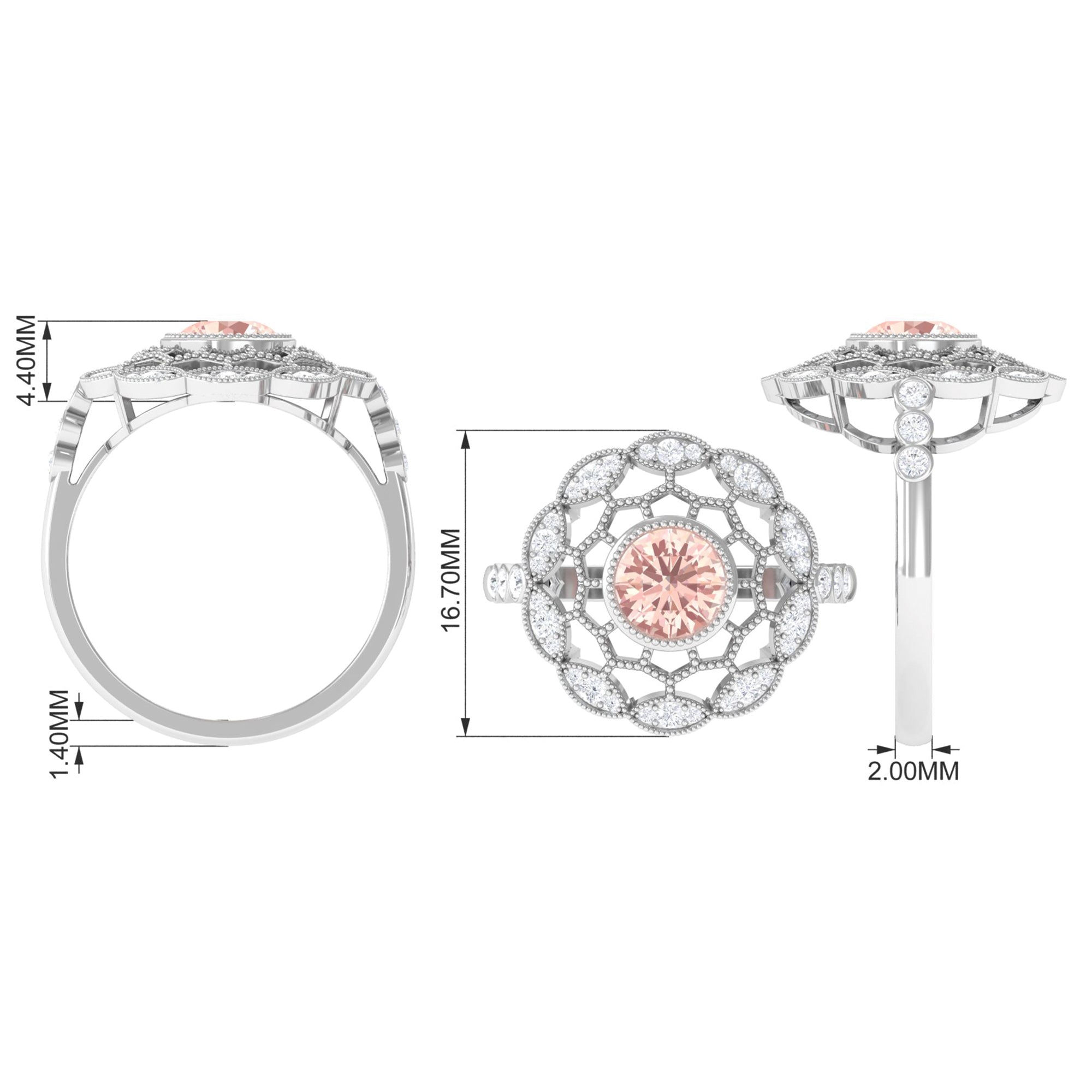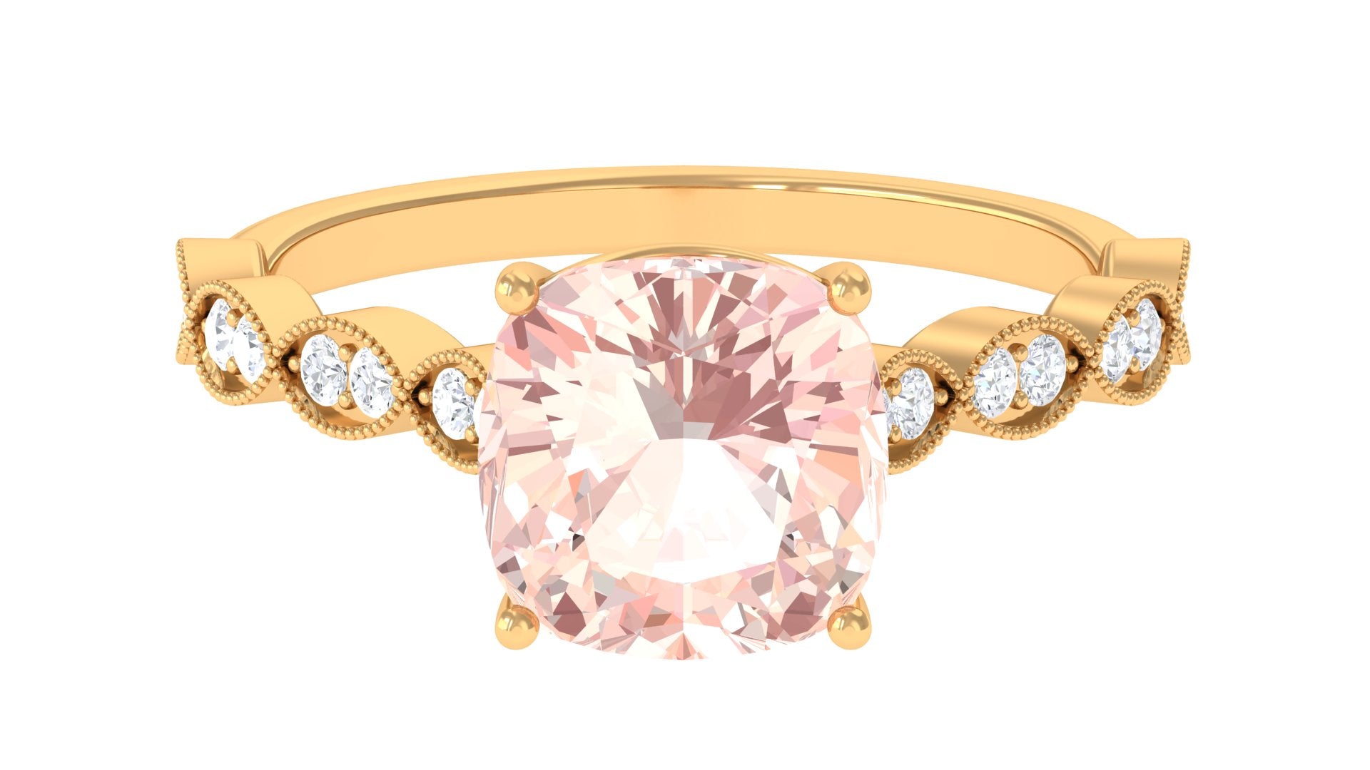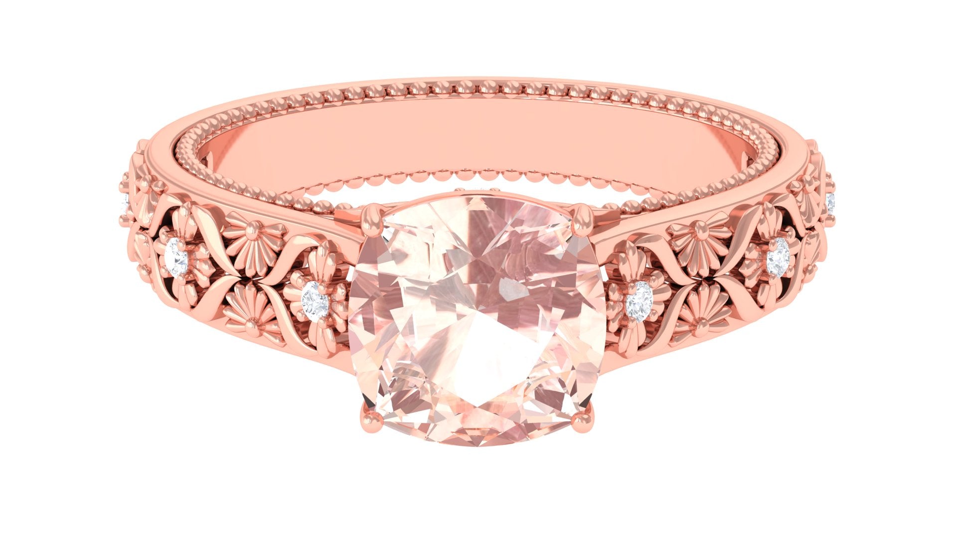 Standing the test of time, a Vintage Morganite Ring boasts ornate designs that are inspired by the Art Deco, Edwardian, and Victorian Eras. In a broader context, it features art-forward geometric patterns as well as intricate milgrain, filigree, and antique engravings that are brought to life with heavy metalwork. With the old-world vibe of these designs complementing the feminine appeal of Morganite, this Antique Morganite Ring offers you the best of both worlds.