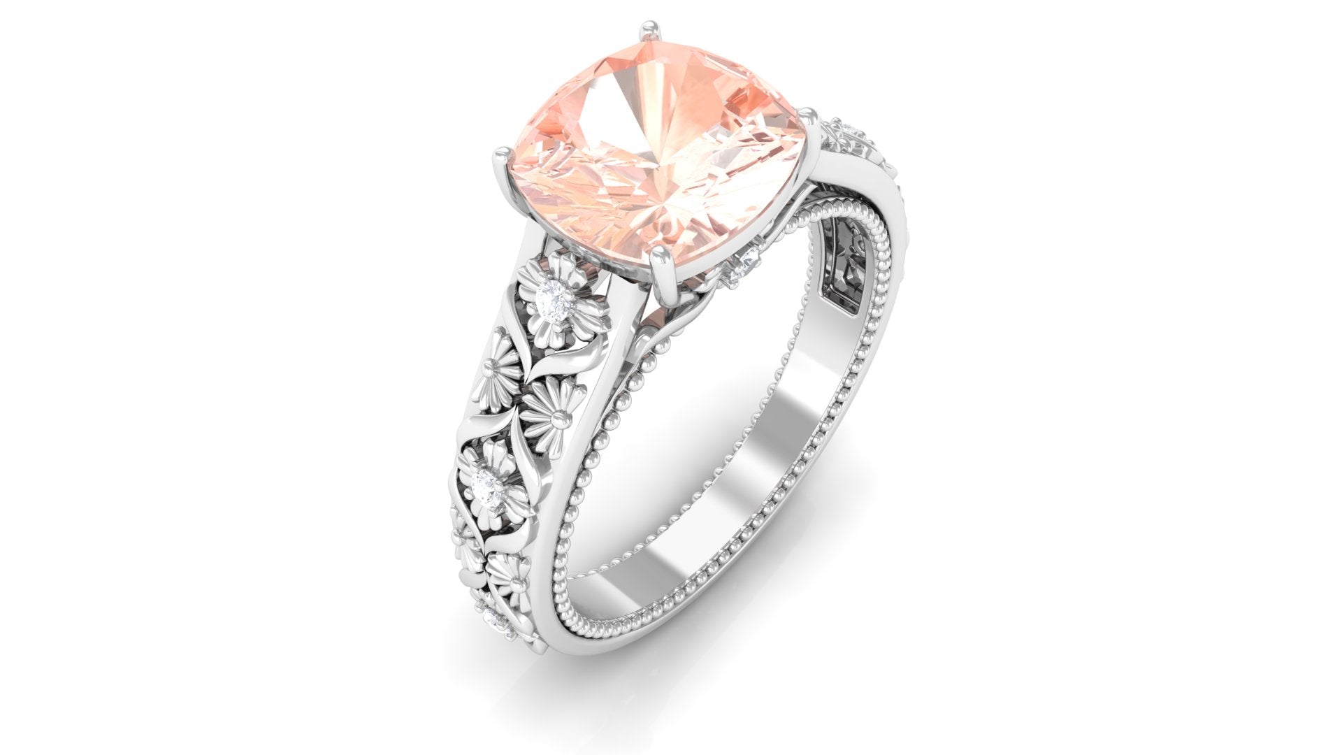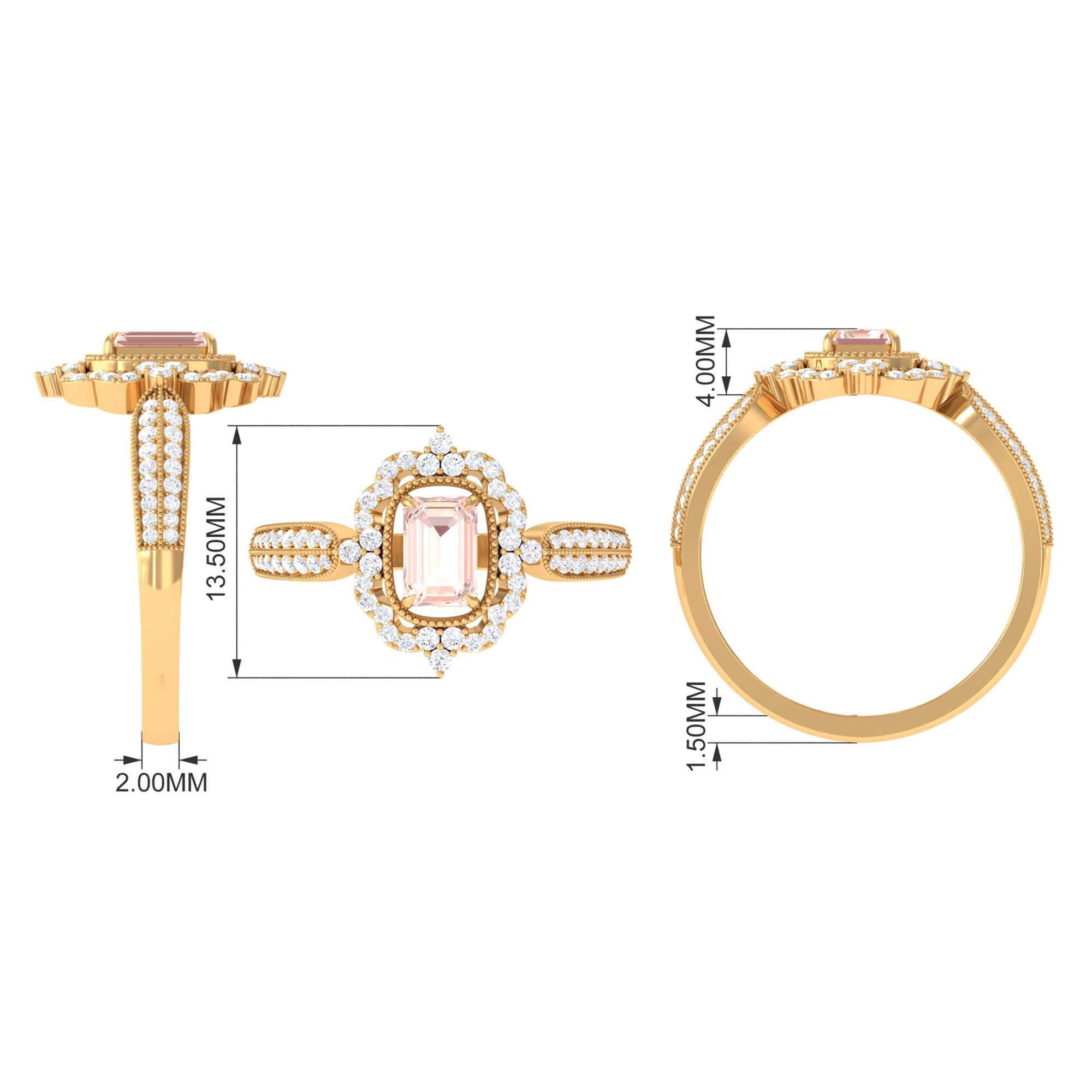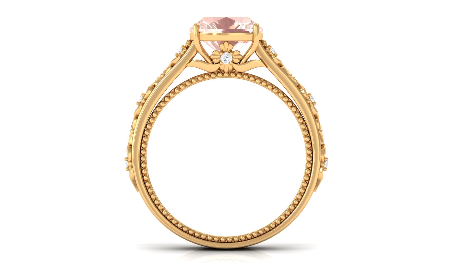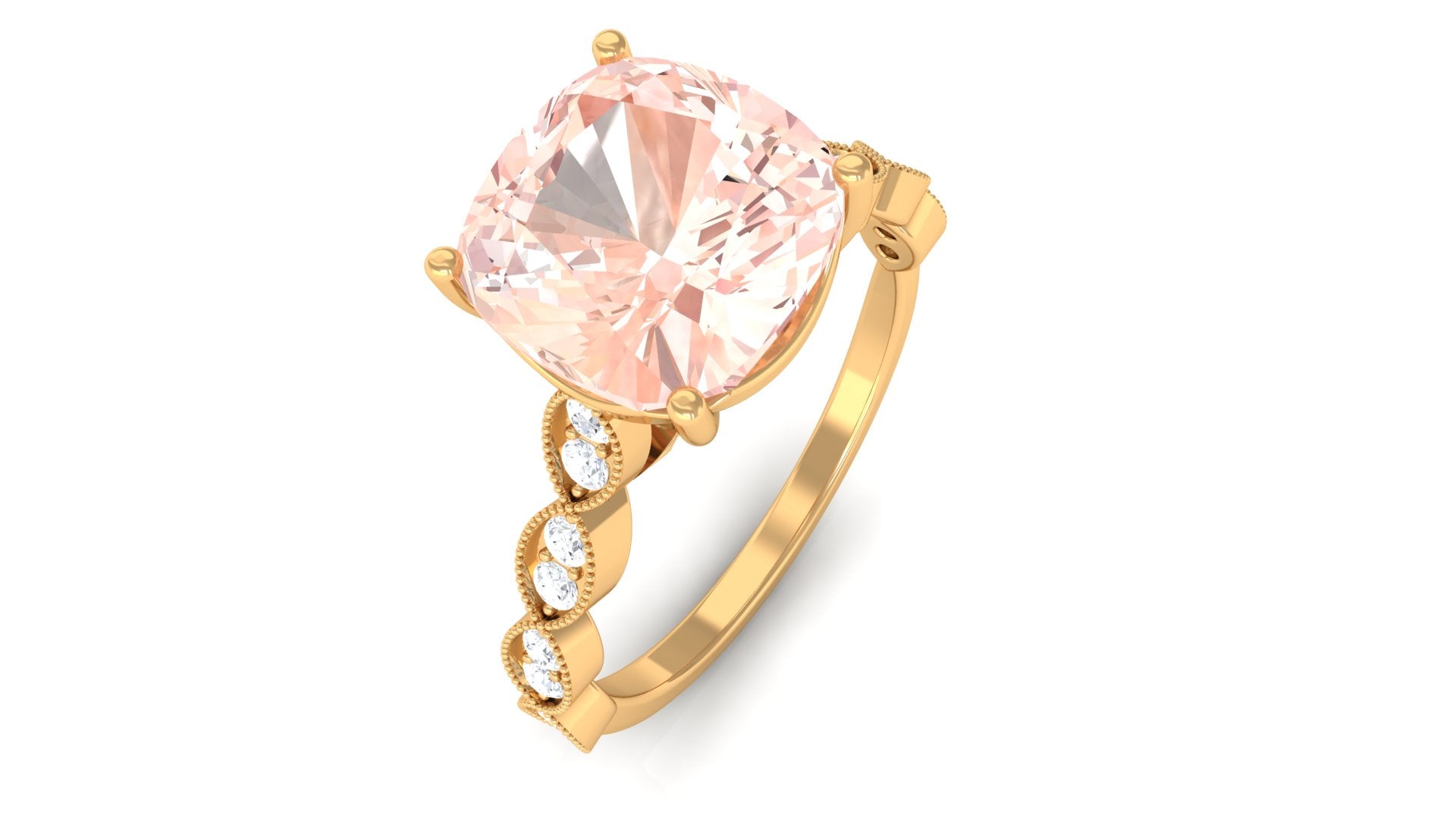 Standing the test of time, a Vintage Morganite Ring boasts ornate designs that are inspired by the Art Deco, Edwardian, and Victorian Eras. In a broader context, it features art-forward geometric patterns as well as intricate milgrain, filigree, and antique engravings that are brought to life with heavy metalwork. With the old-world vibe of these designs complementing the feminine appeal of Morganite, this Antique Morganite Ring offers you the best of both worlds.