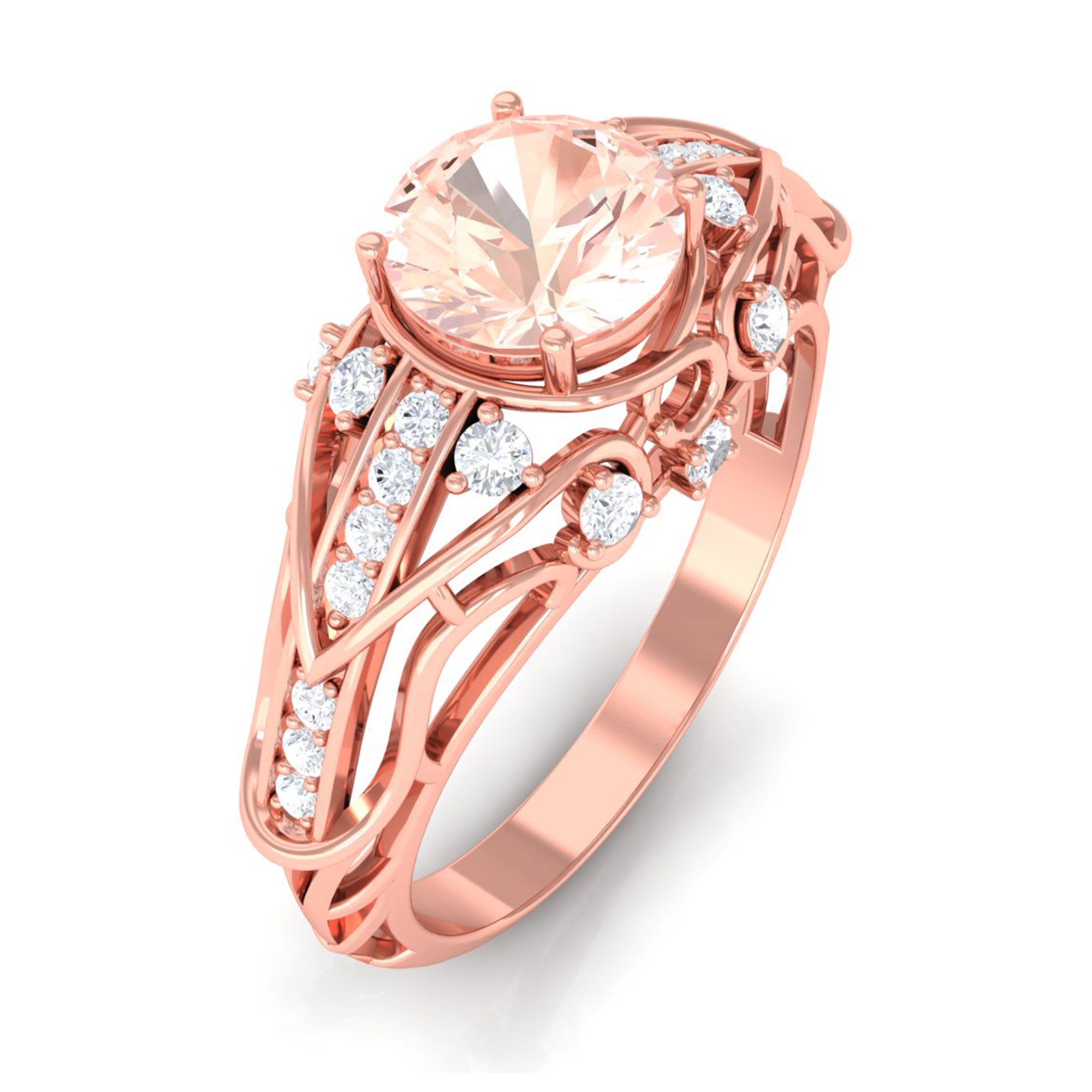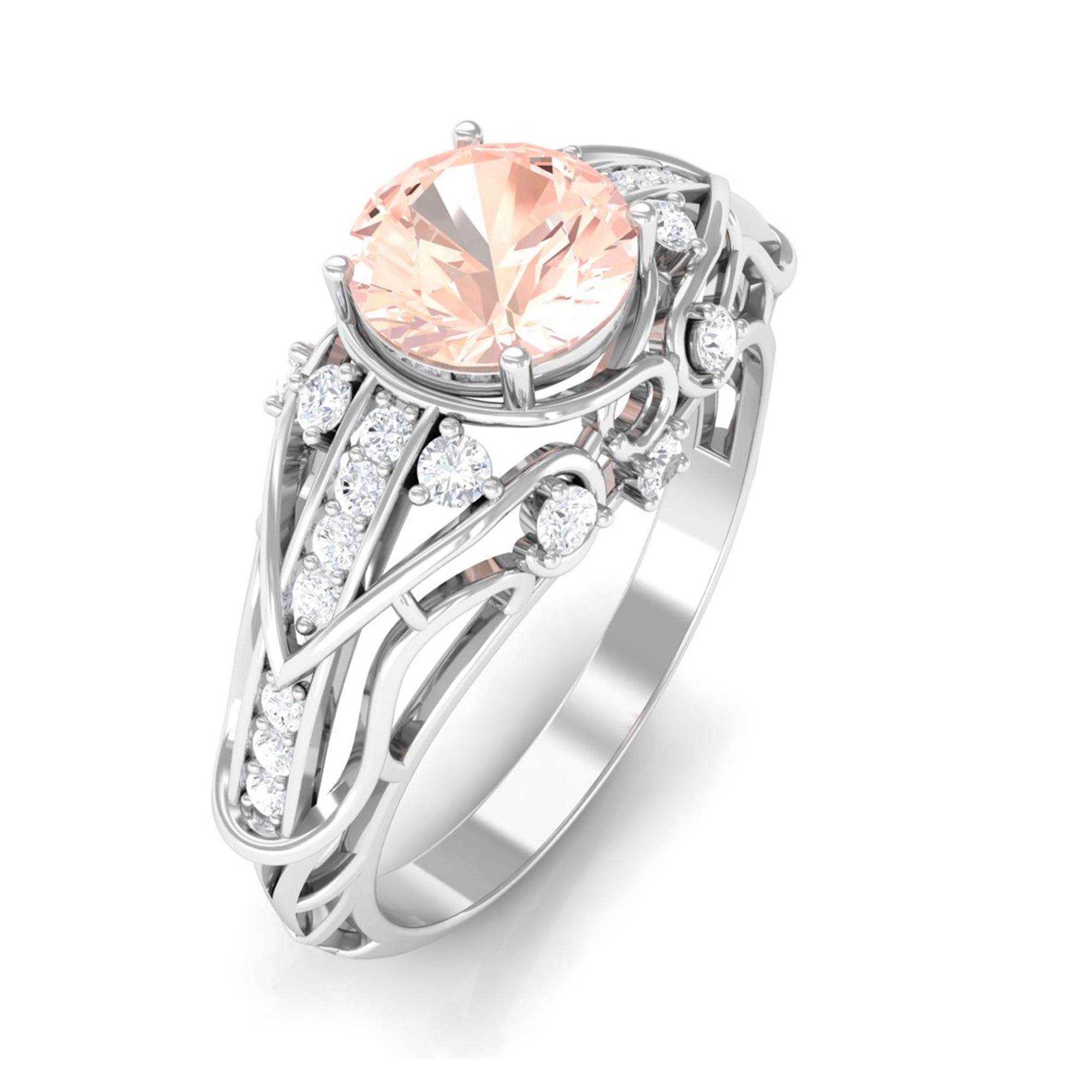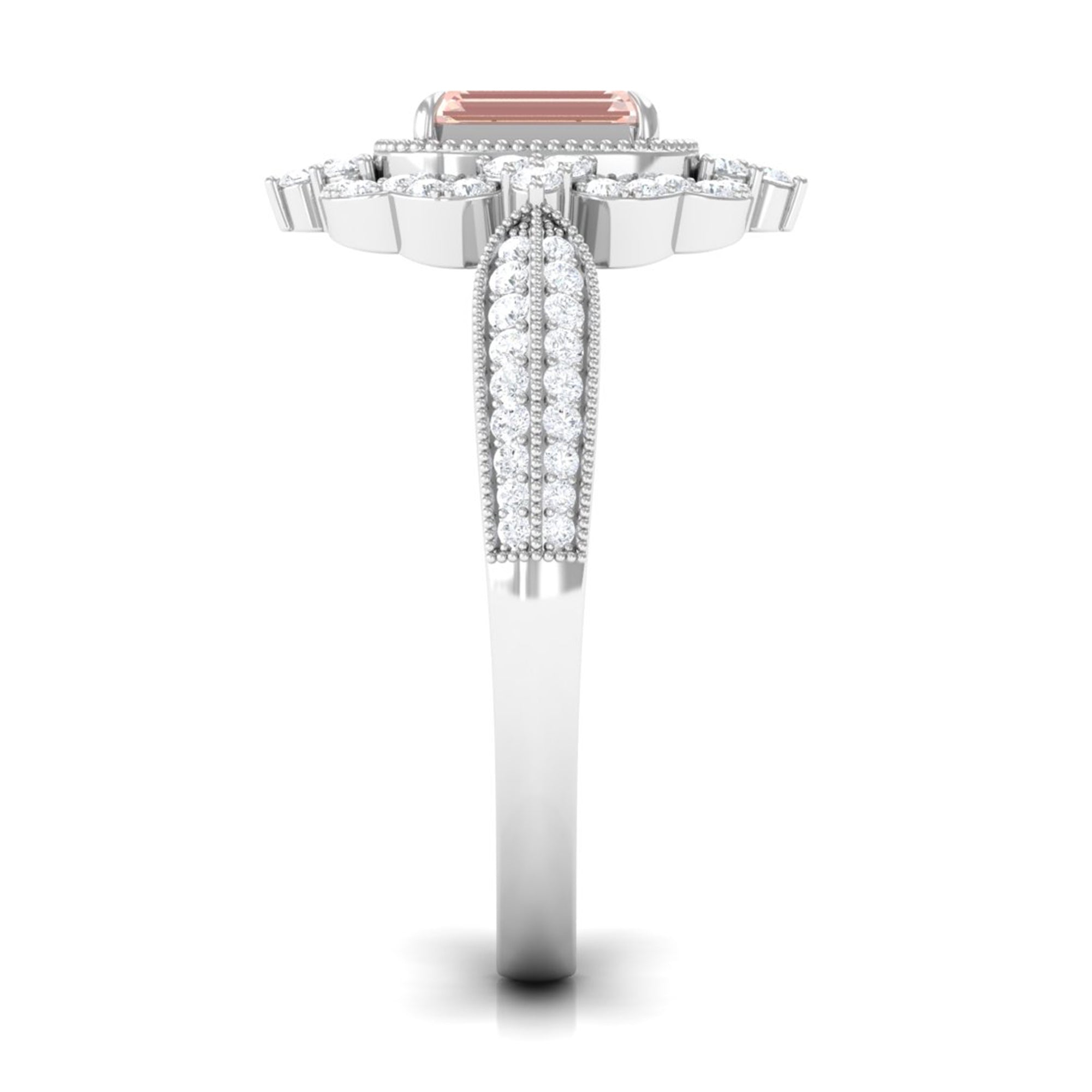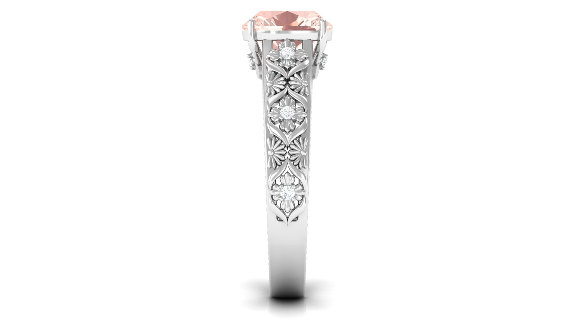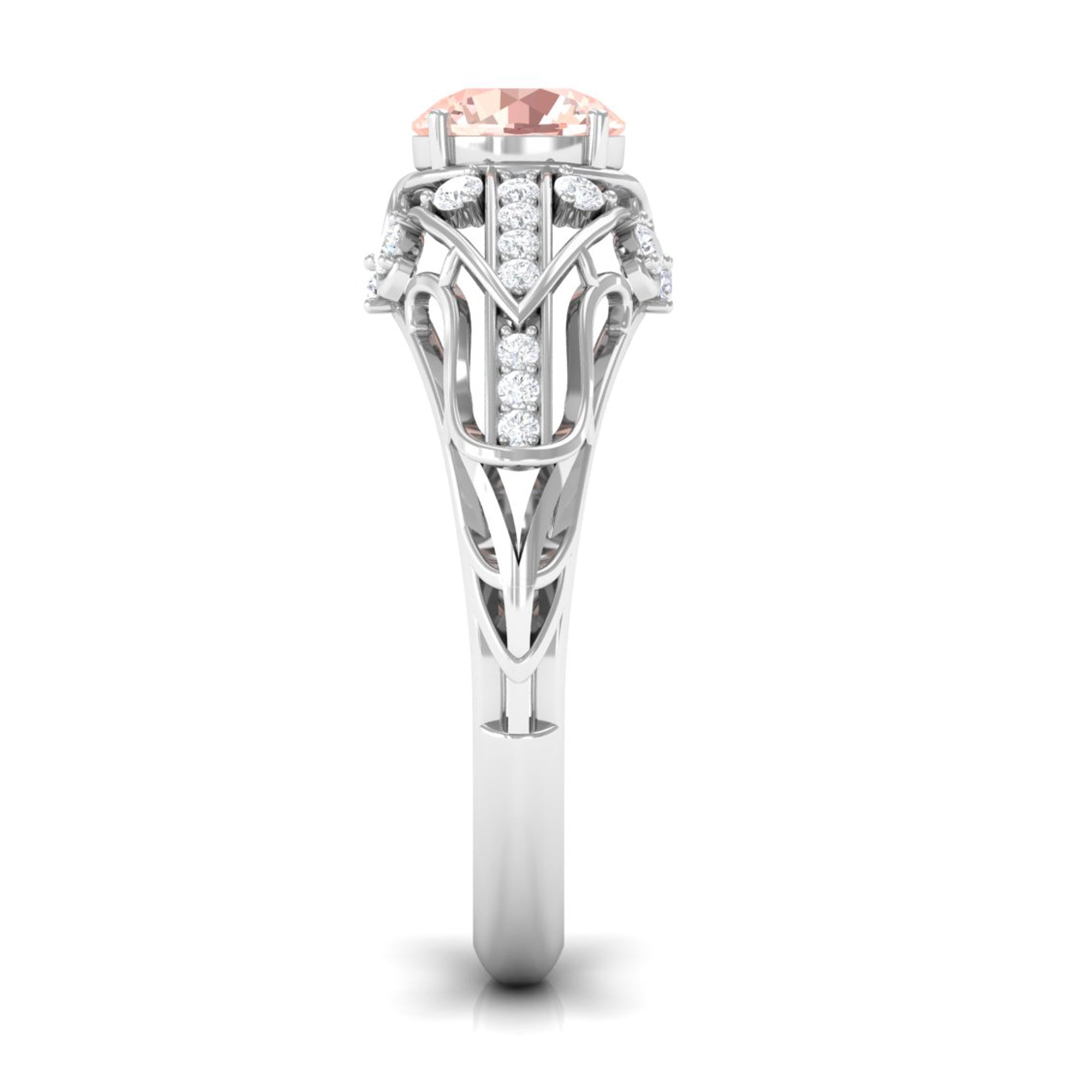 Meant to get you party-ready, a Morganite Cocktail Ring is characterized by a flashy center stone of Morganite that is incorporated in a bold, eye-striking design. Furthermore, the Morganite Solitaire is often surrounded by a showy parade of Diamond/Moissanite in playful patterns. Just like the name suggests, it is an extravagant mix of everything. It could be beautified by dramatic floral motifs, sparkling diamond accents, or even emphasized by vintage-inspired designs.