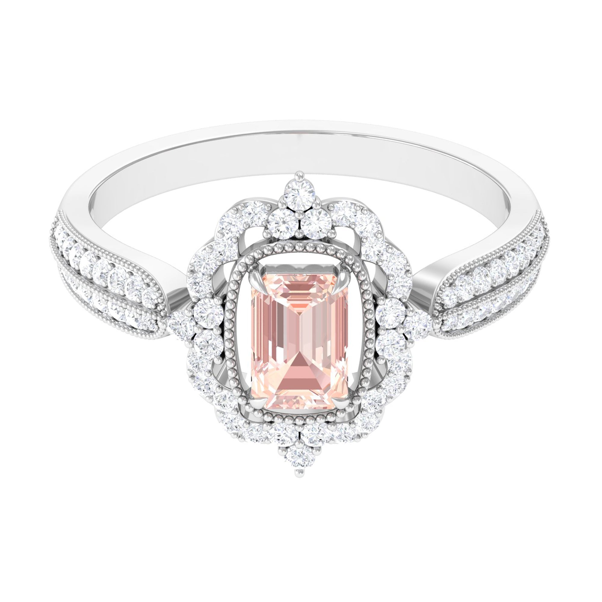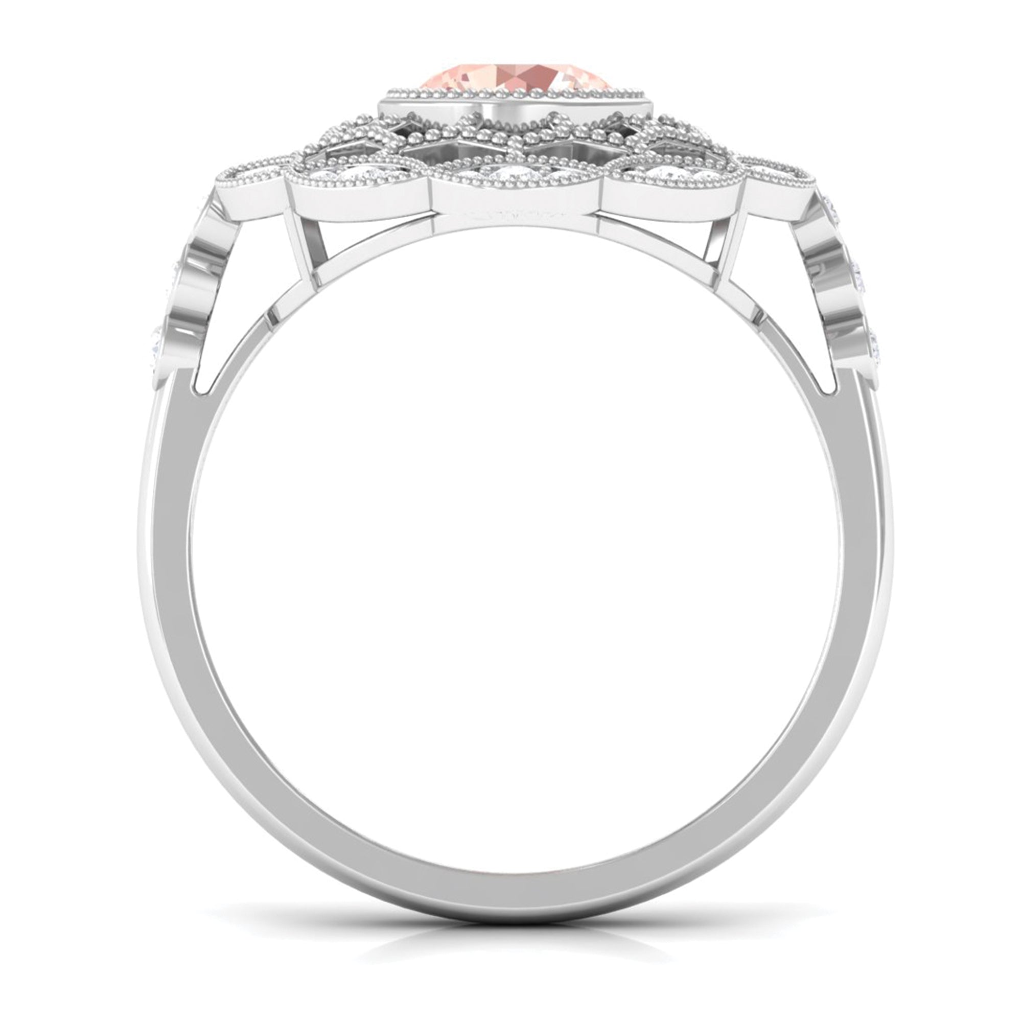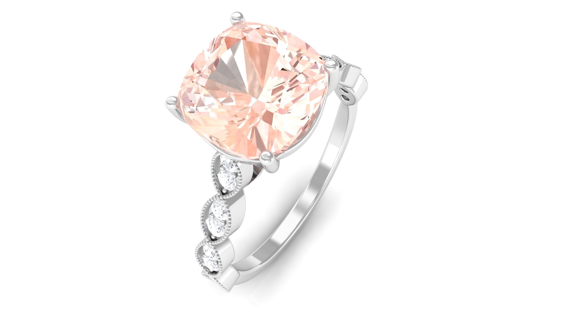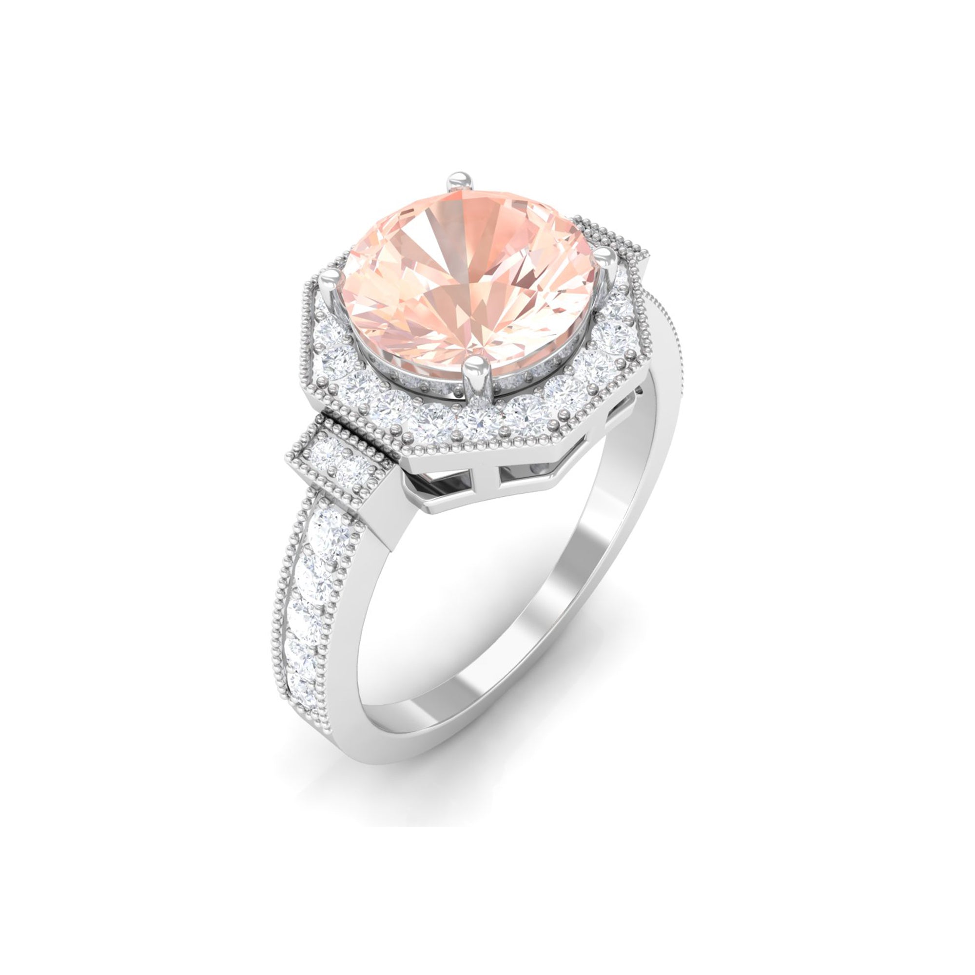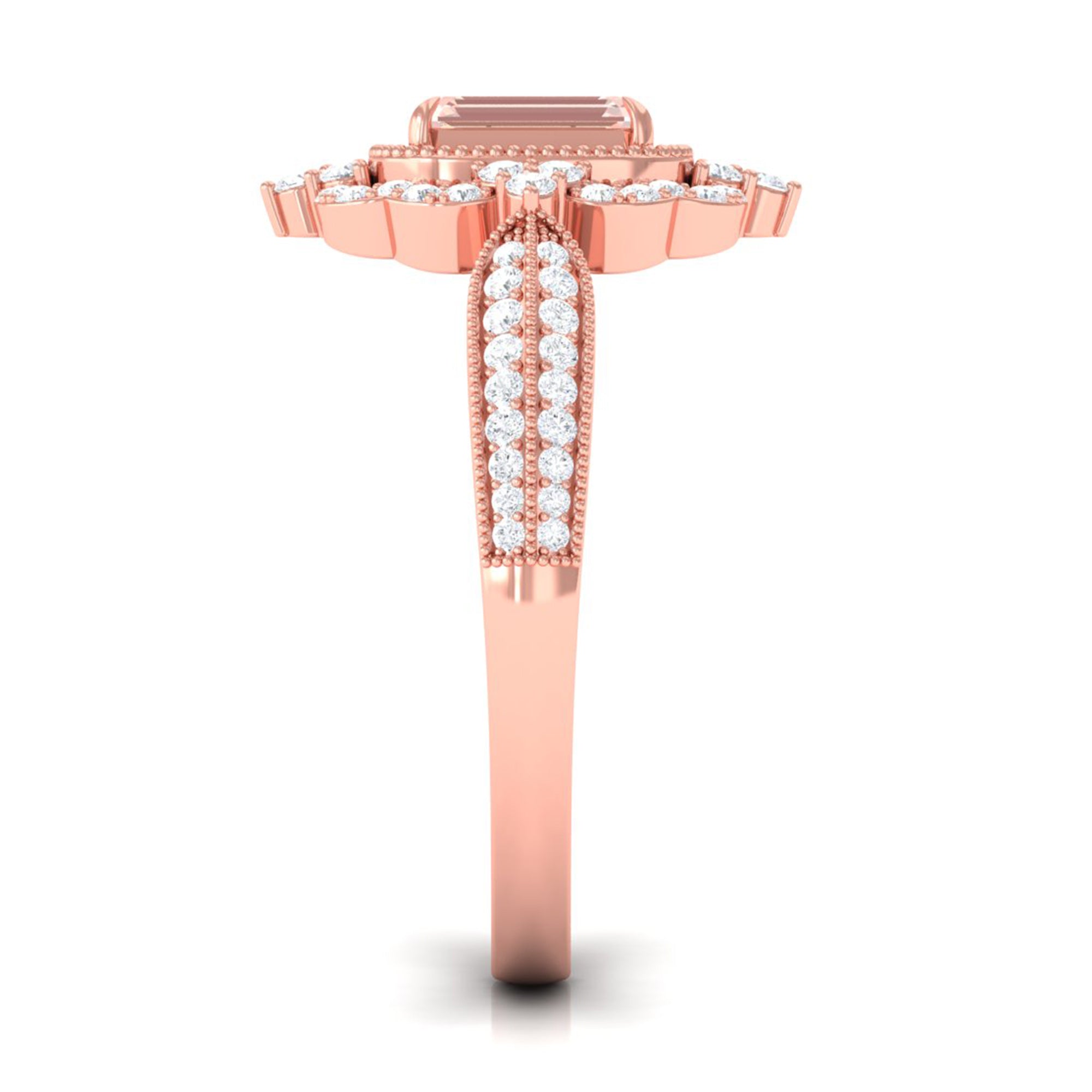 Meant to get you party-ready, a Morganite Cocktail Ring is characterized by a flashy center stone of Morganite that is incorporated in a bold, eye-striking design. Furthermore, the Morganite Solitaire is often surrounded by a showy parade of Diamond/Moissanite in playful patterns. Just like the name suggests, it is an extravagant mix of everything. It could be beautified by dramatic floral motifs, sparkling diamond accents, or even emphasized by vintage-inspired designs.