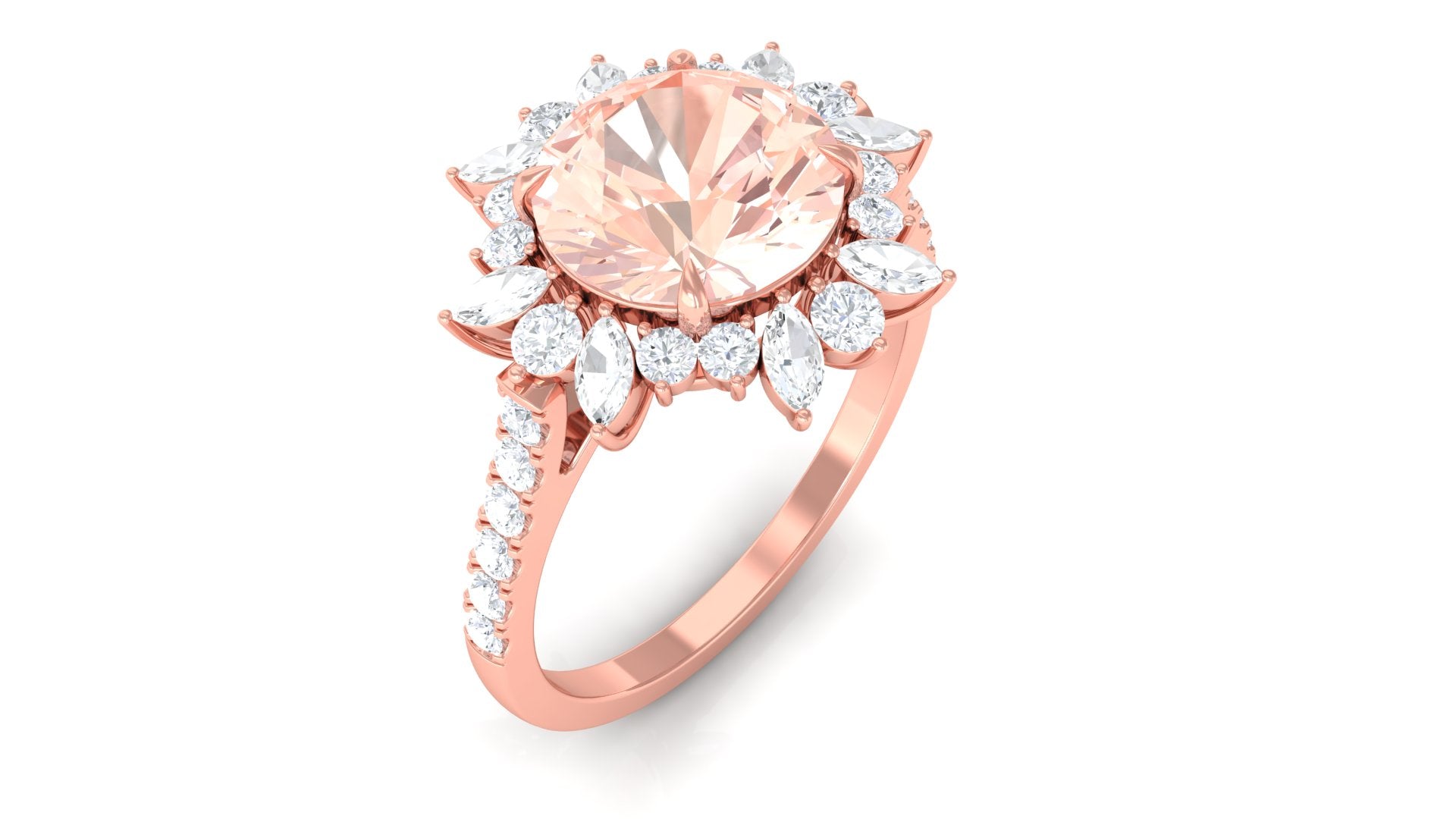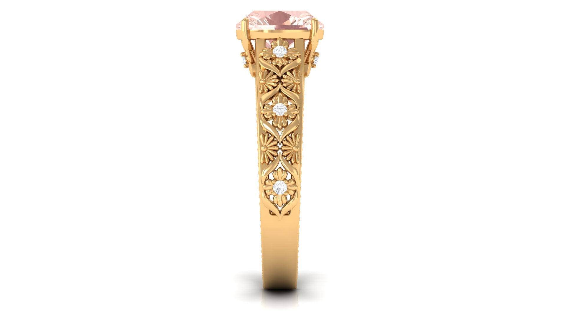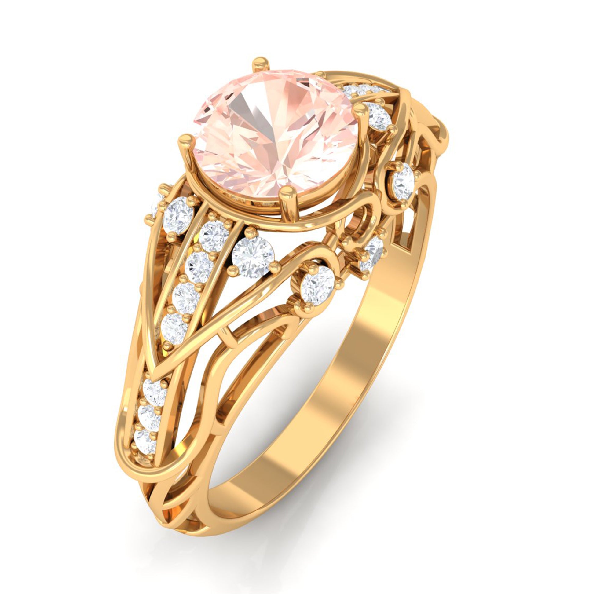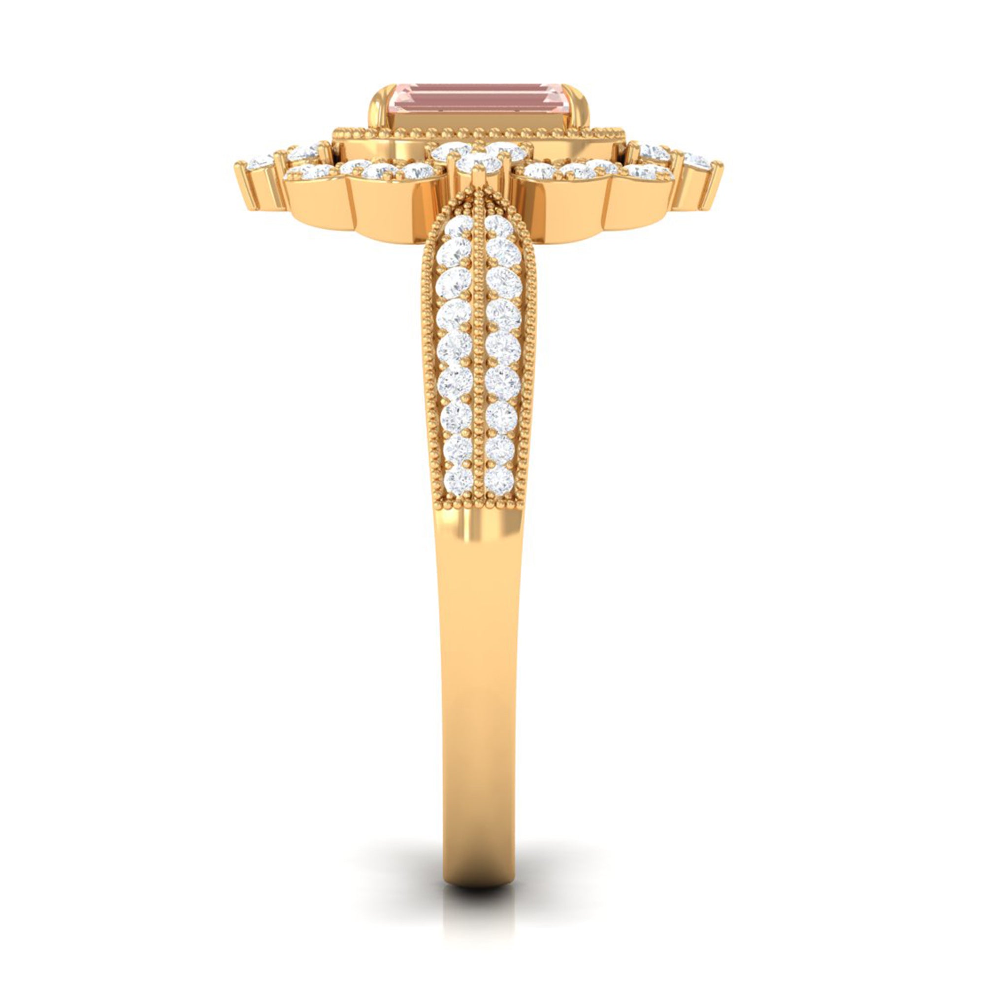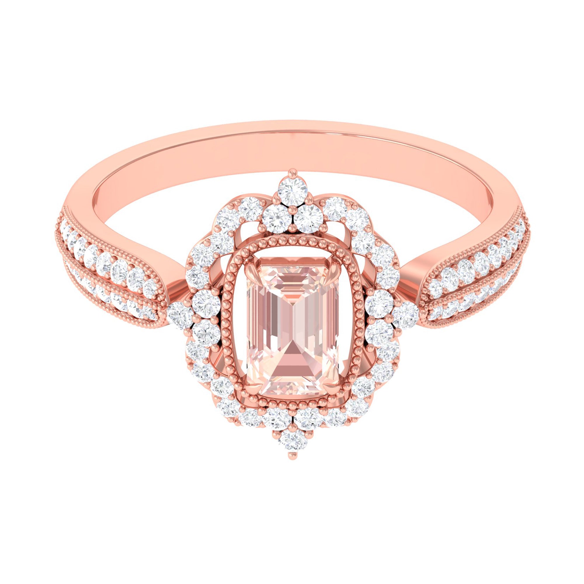 Meant to get you party-ready, a Morganite Cocktail Ring is characterized by a flashy center stone of Morganite that is incorporated in a bold, eye-striking design. Furthermore, the Morganite Solitaire is often surrounded by a showy parade of Diamond/Moissanite in playful patterns. Just like the name suggests, it is an extravagant mix of everything. It could be beautified by dramatic floral motifs, sparkling diamond accents, or even emphasized by vintage-inspired designs.