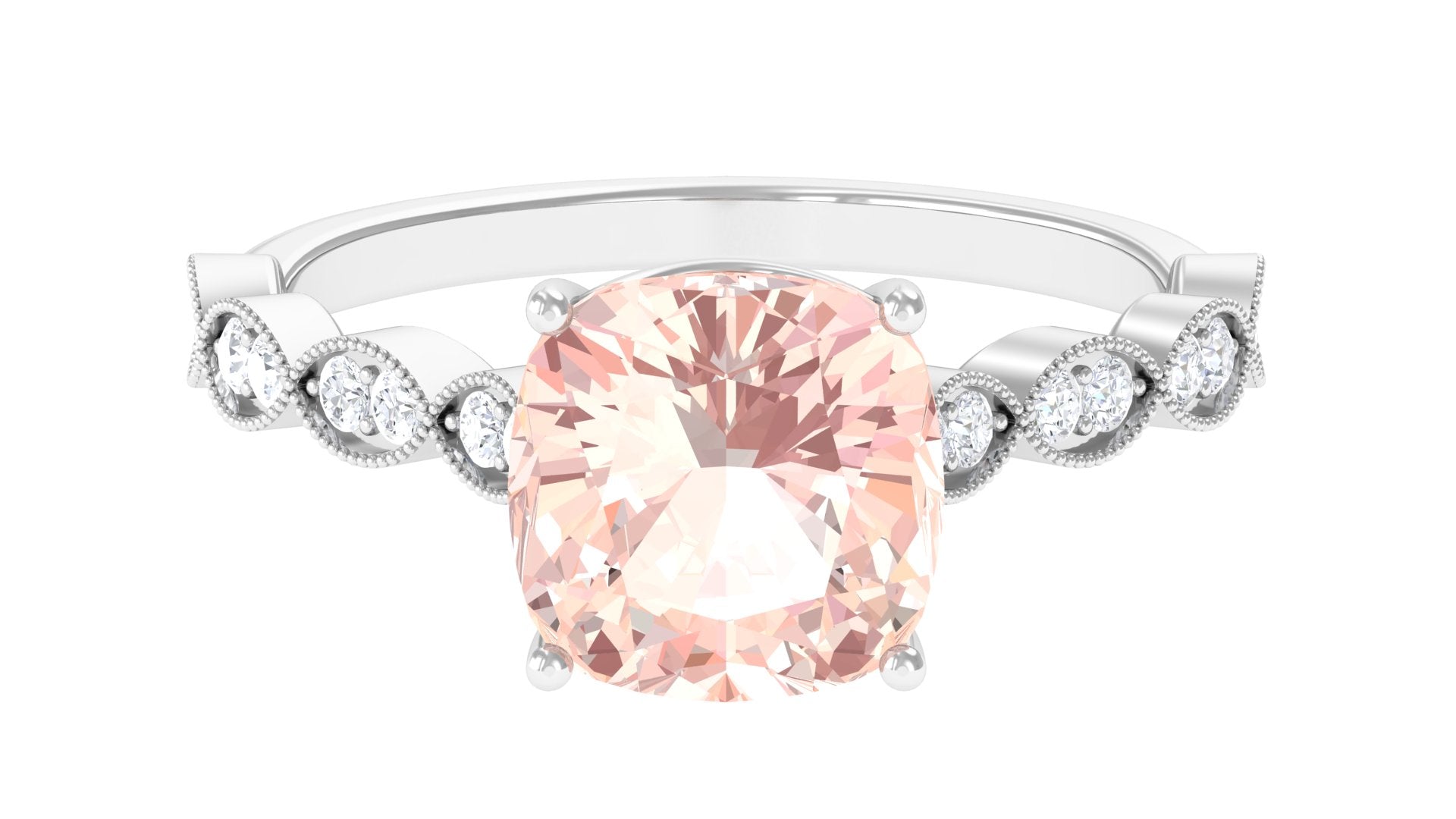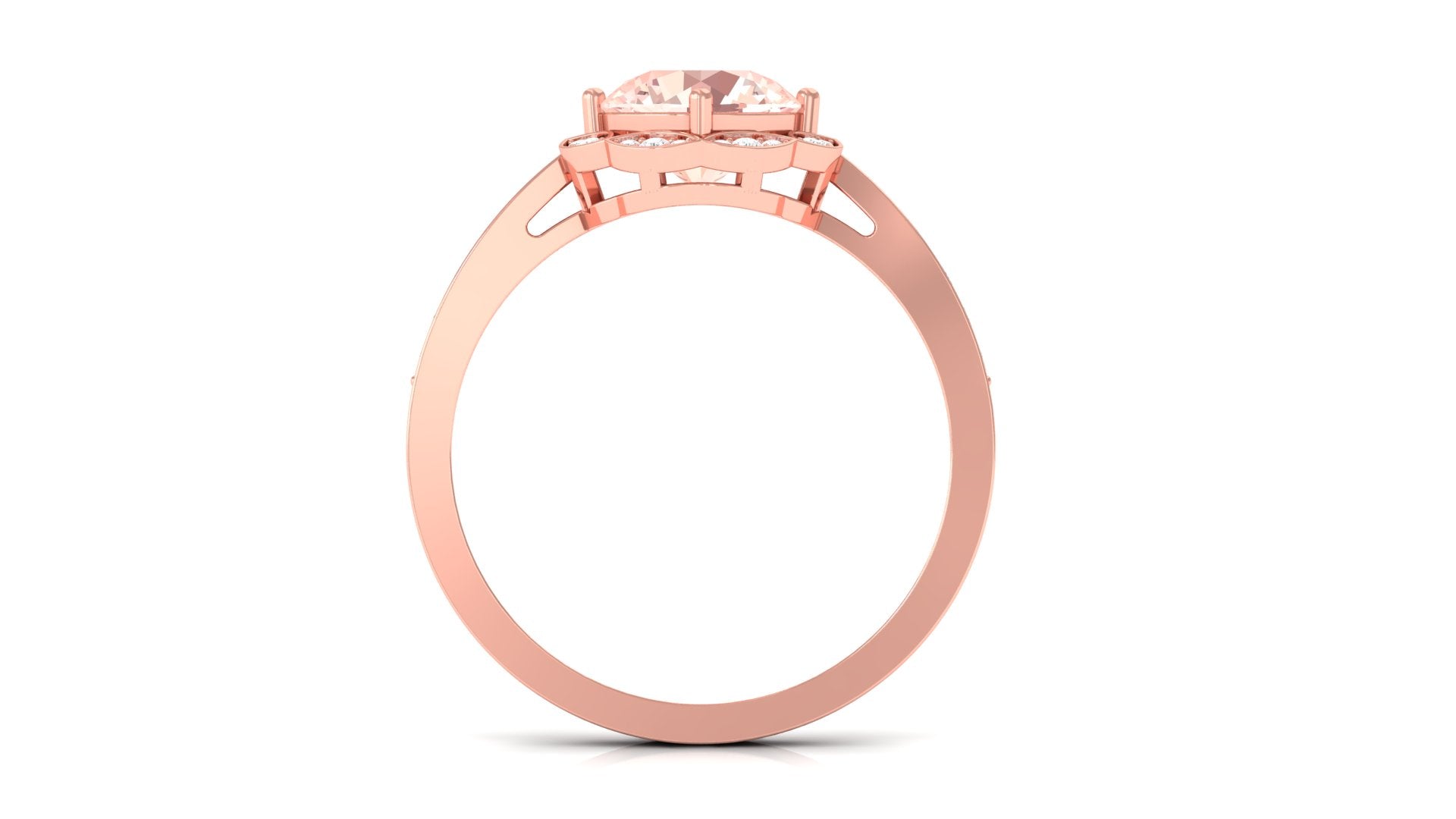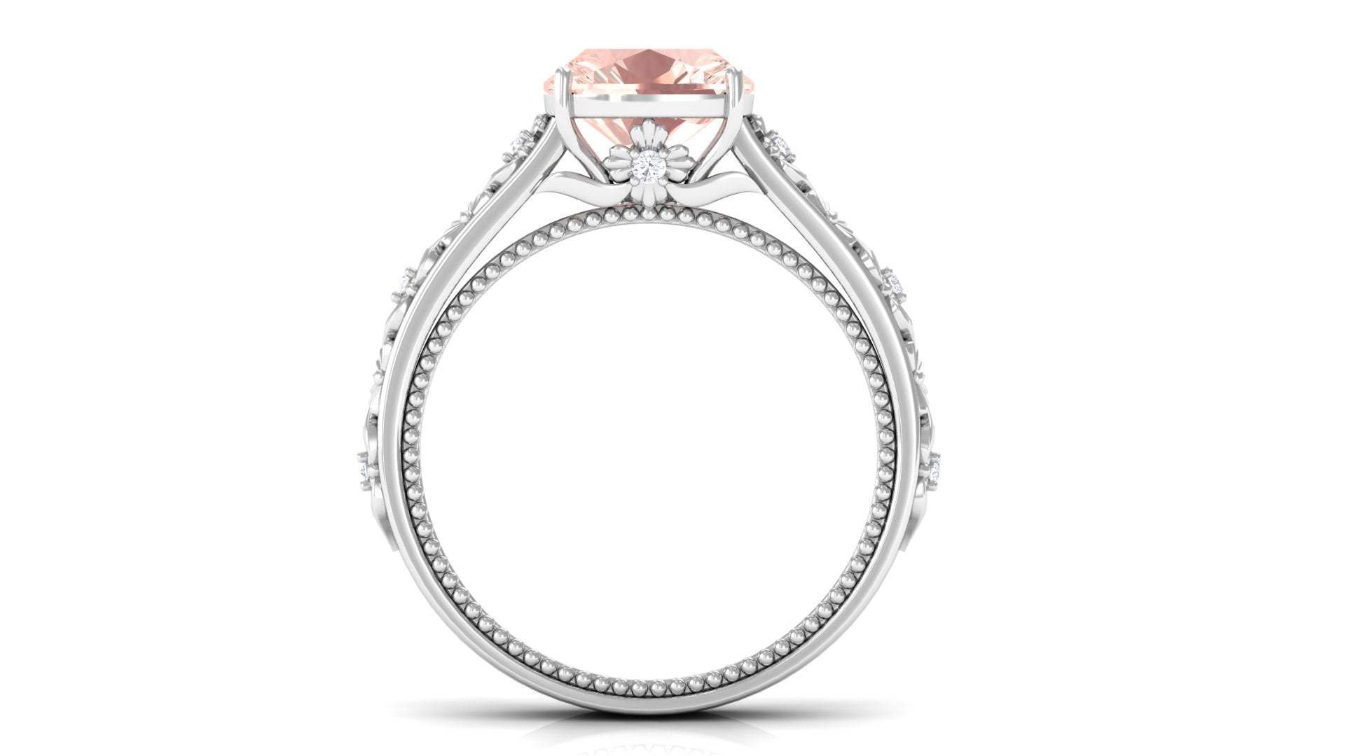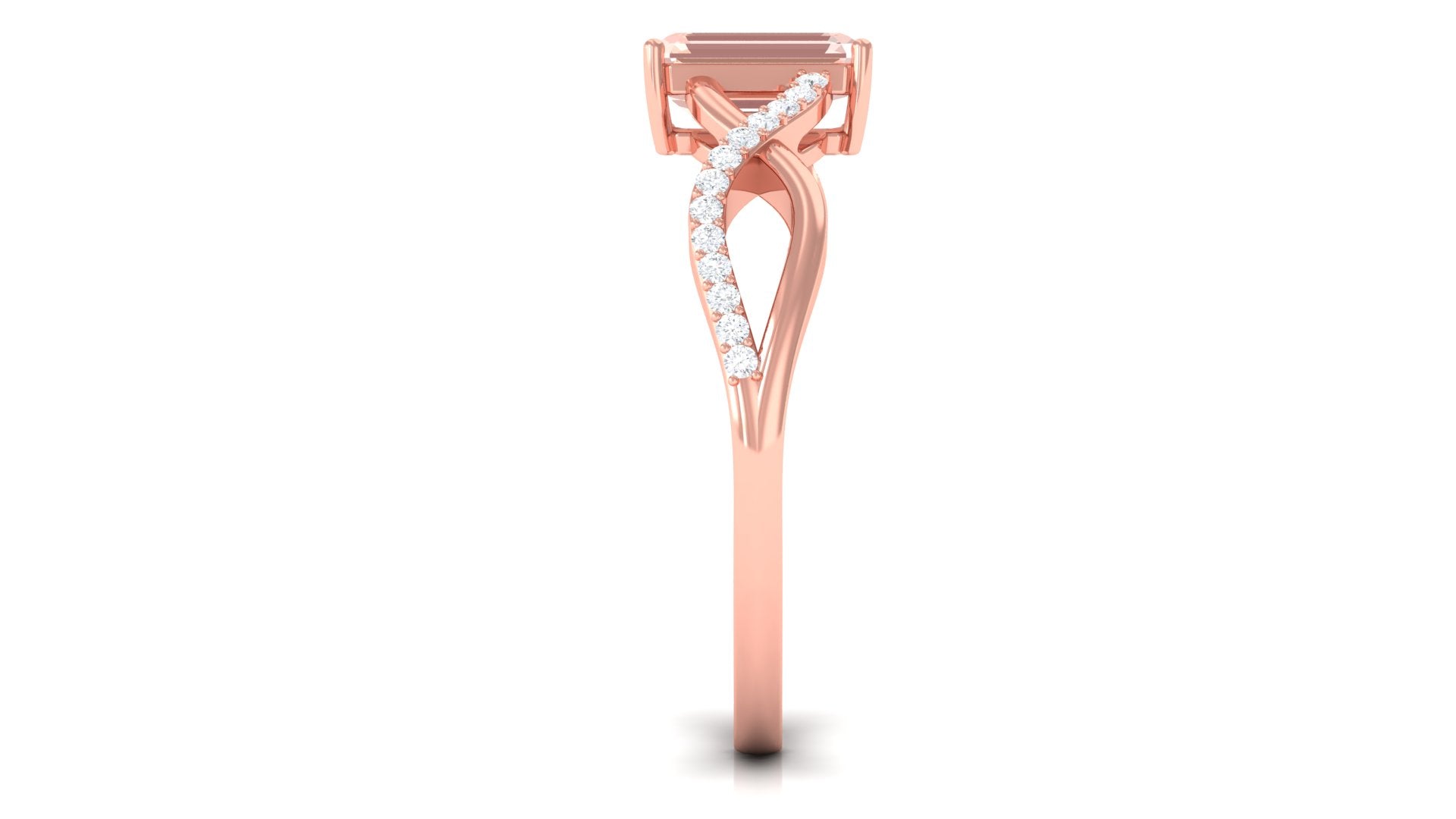 Forever in trend, a Solitaire Morganite Ring boasts a solo centerpiece of Morganite (that is meant to shine out with its enormous size of 6 MM or more). This style makes for one of the most classic cum conventional choices in the Morganite Engagement Ring. What’s more, this timeless style offers you a wide scope of versatility. It ranges from a Round Morganite Ring for the traditional bride to fancier ones like Marquise, Pear, or Princess Cut Solitaire Ring for the bride who likes to keep up with the trends. On the other hand, if nothing appeals quite like a little vintage touch, you can rely on old-school shapes like an Asscher, Cushion, or Emerald Cut Morganite Ring.