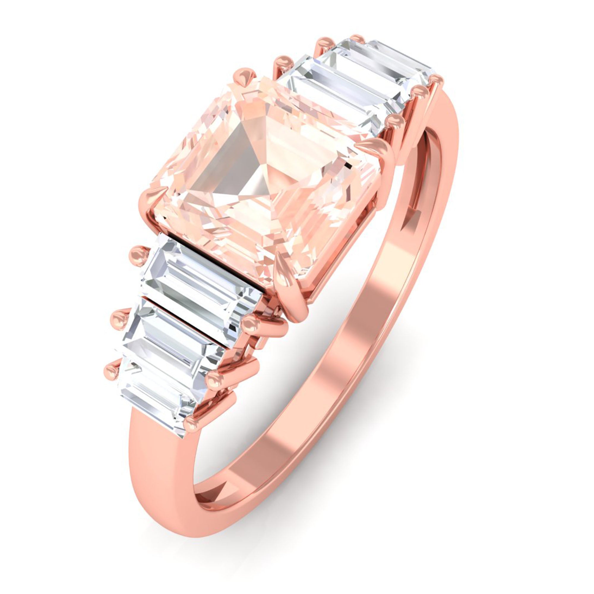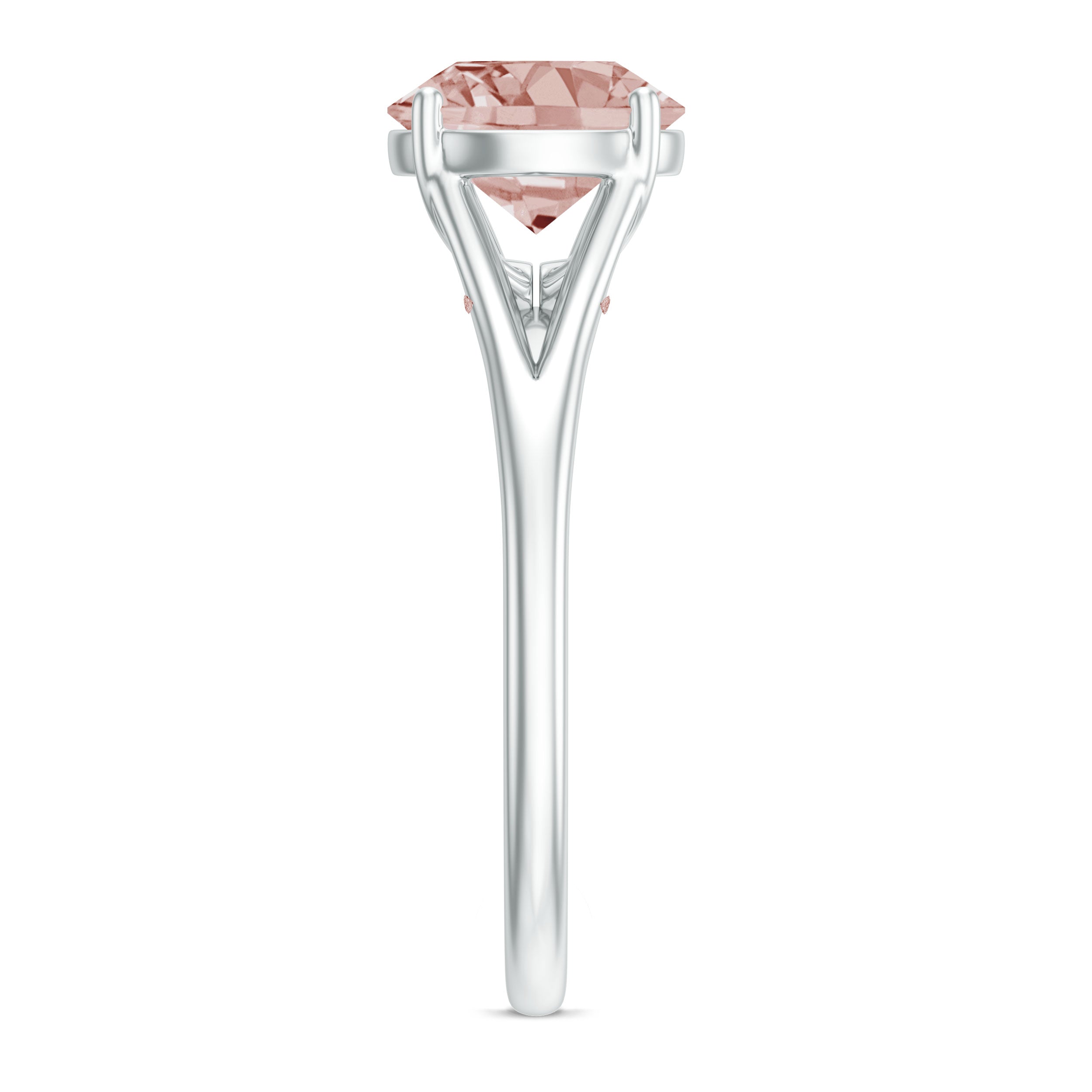 A pink morganite ring is a timeless choice. The single, chosen morganite gem takes the center stage, allowing its color to shine without any other distraction. Morganites has become popular and it's an on-trend choice.