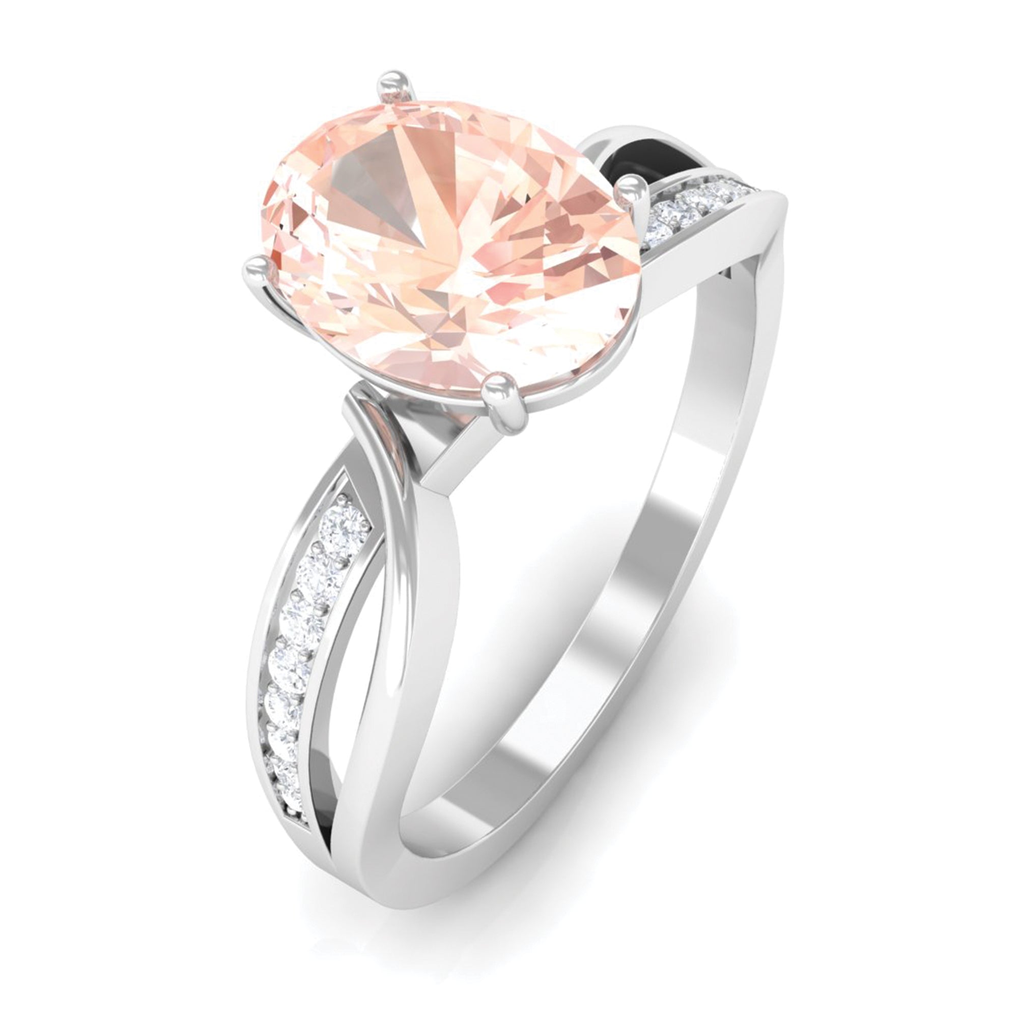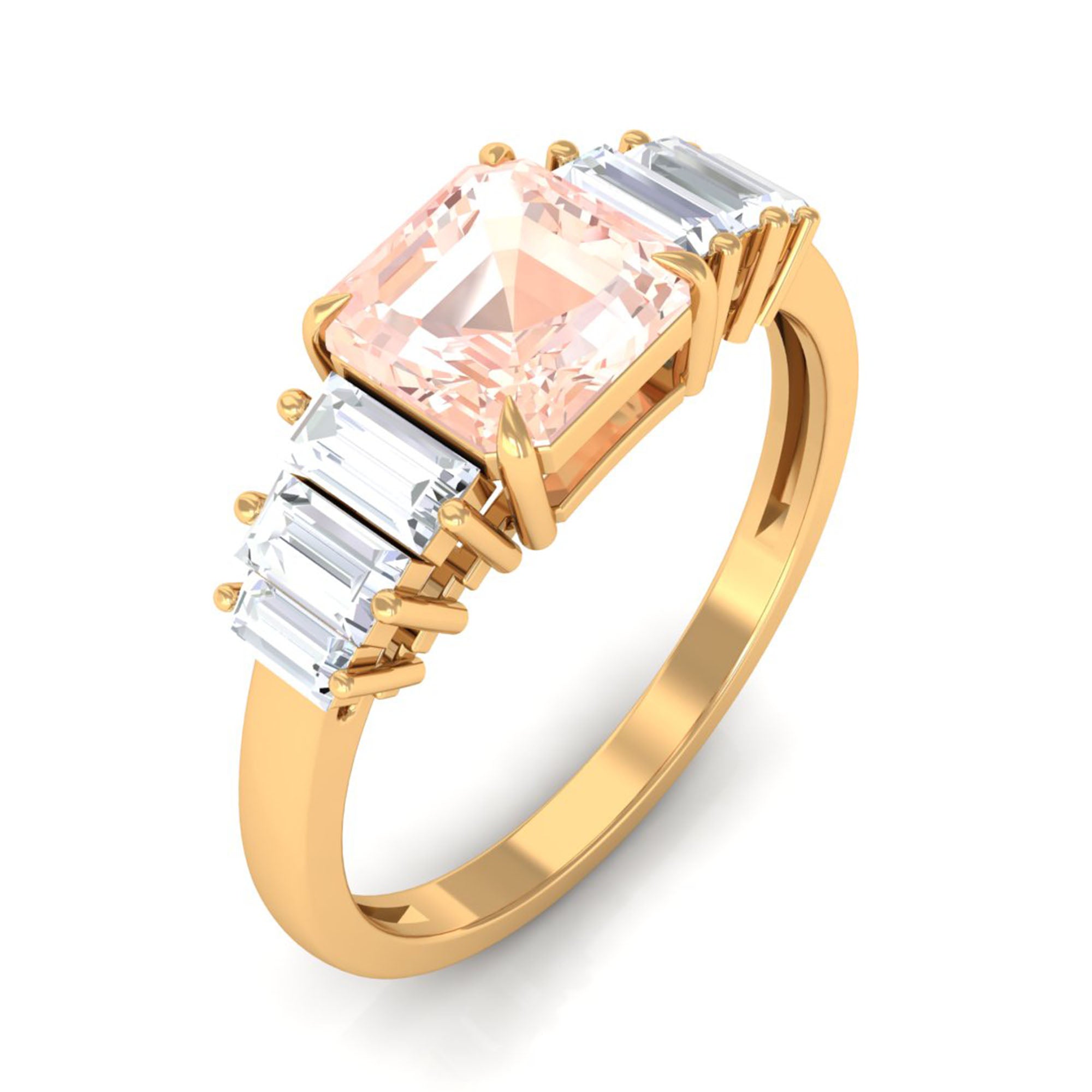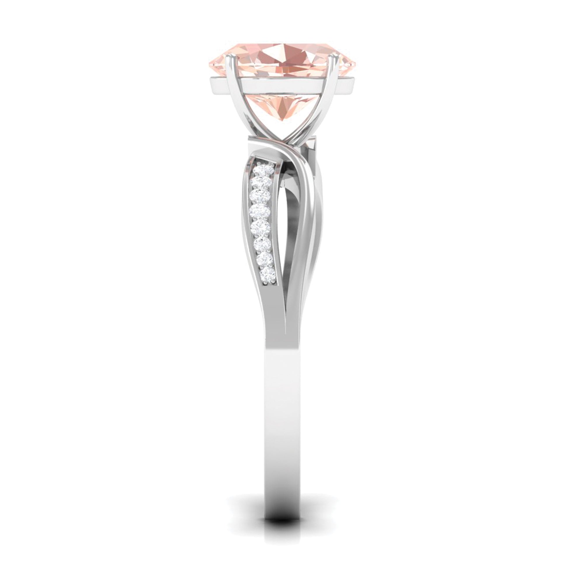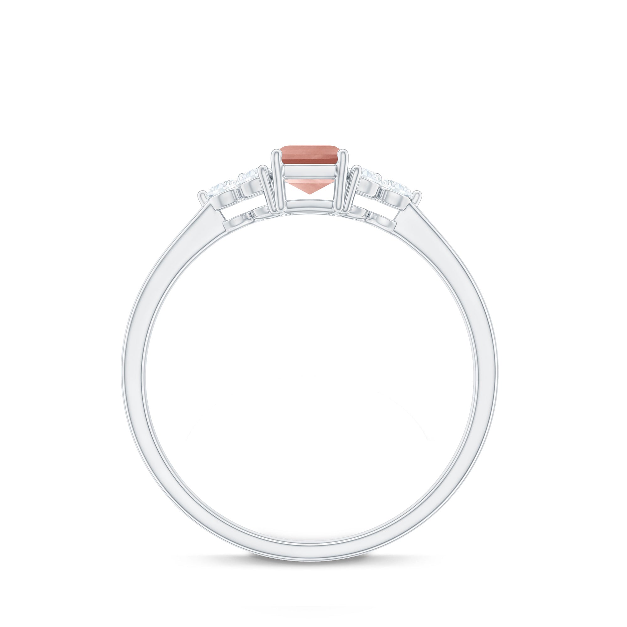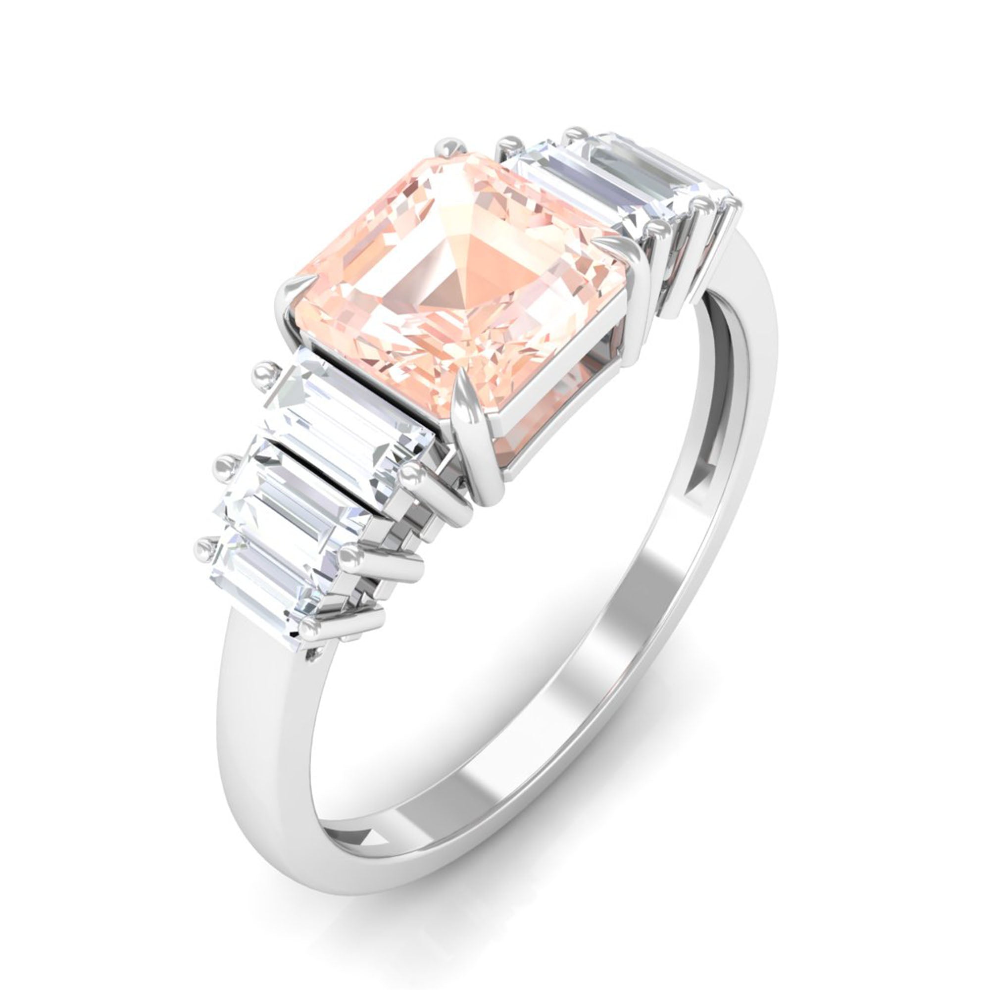 White gold offers a sleek and modern look that contrasts perfectly with the warm peachy tone of Morganite. The cool undertone of white gold metal adds an elegant touch and timeless appeal to the morganite rings, ideal for those who prefer a more classic look.