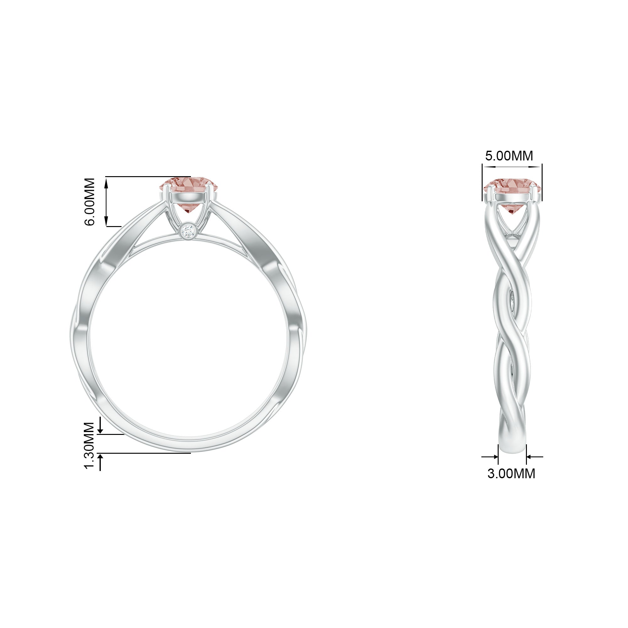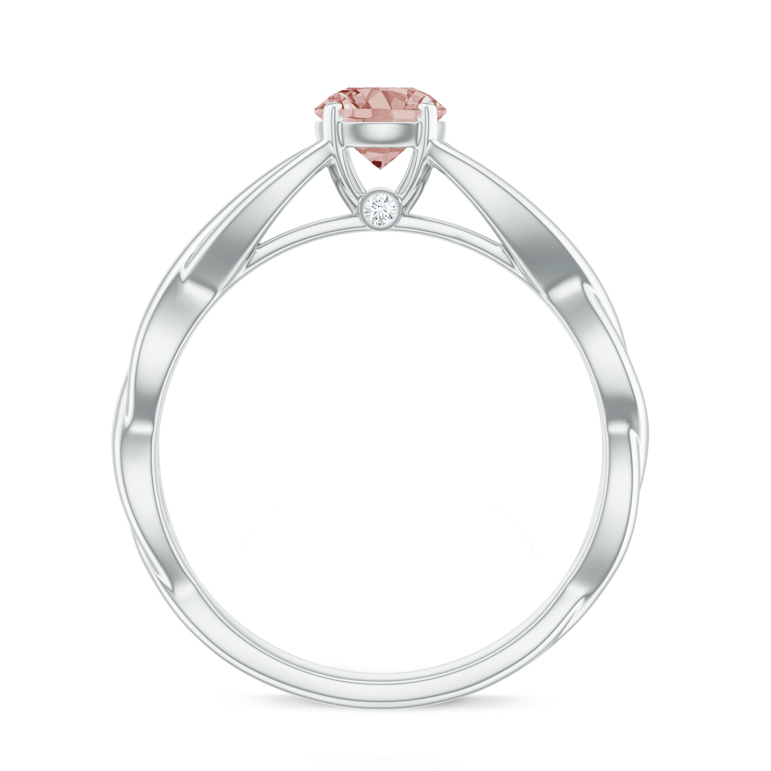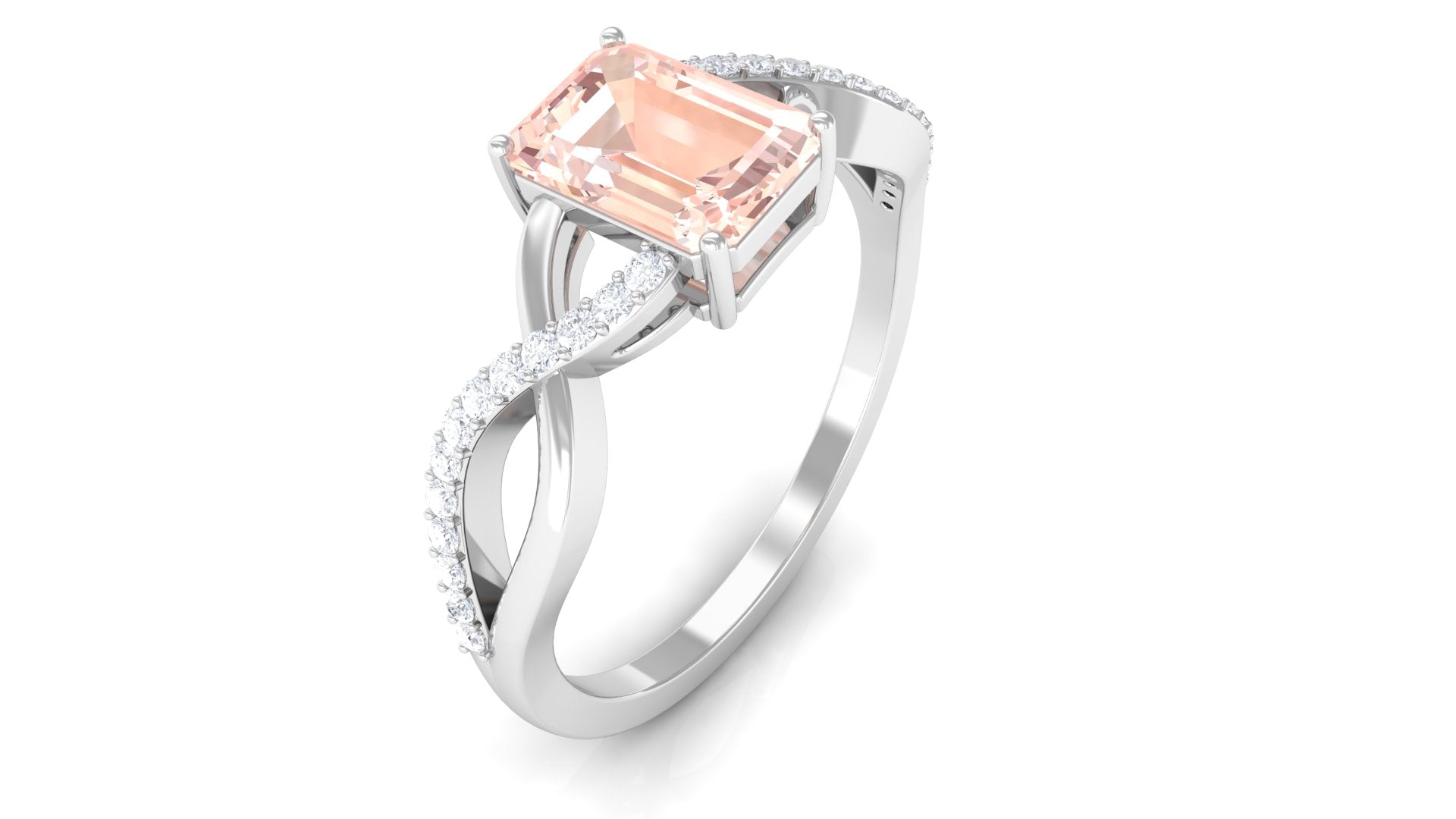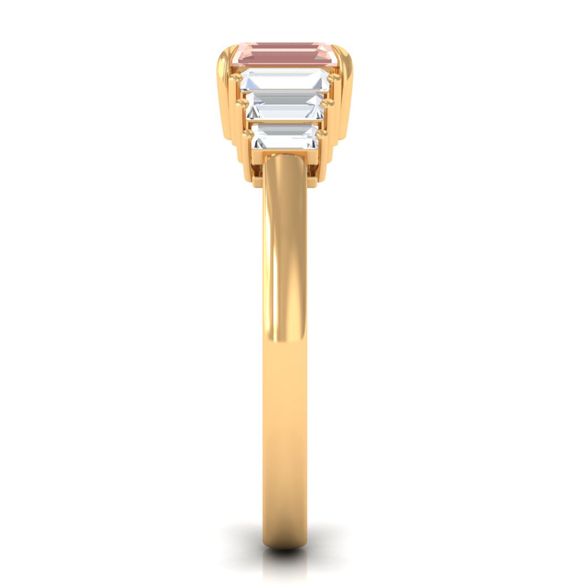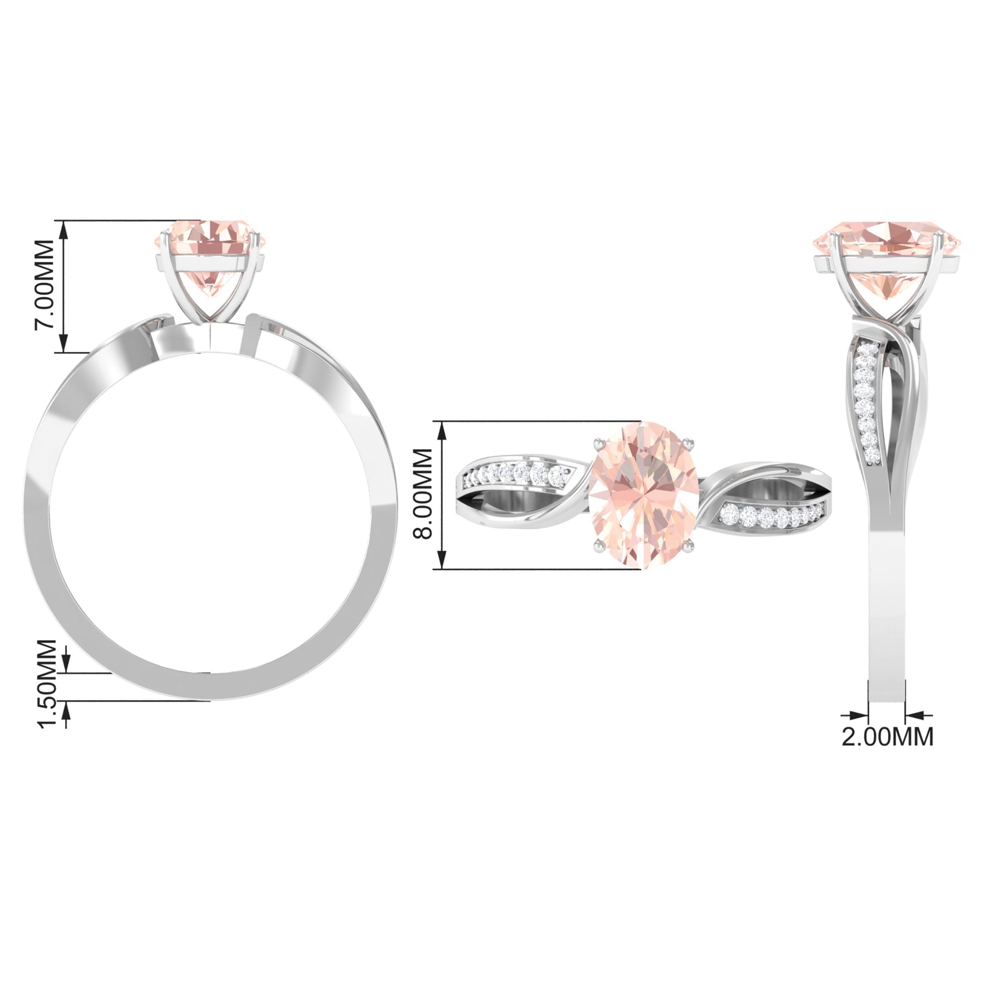 White gold offers a sleek and modern look that contrasts perfectly with the warm peachy tone of Morganite. The cool undertone of white gold metal adds an elegant touch and timeless appeal to the morganite rings, ideal for those who prefer a more classic look.