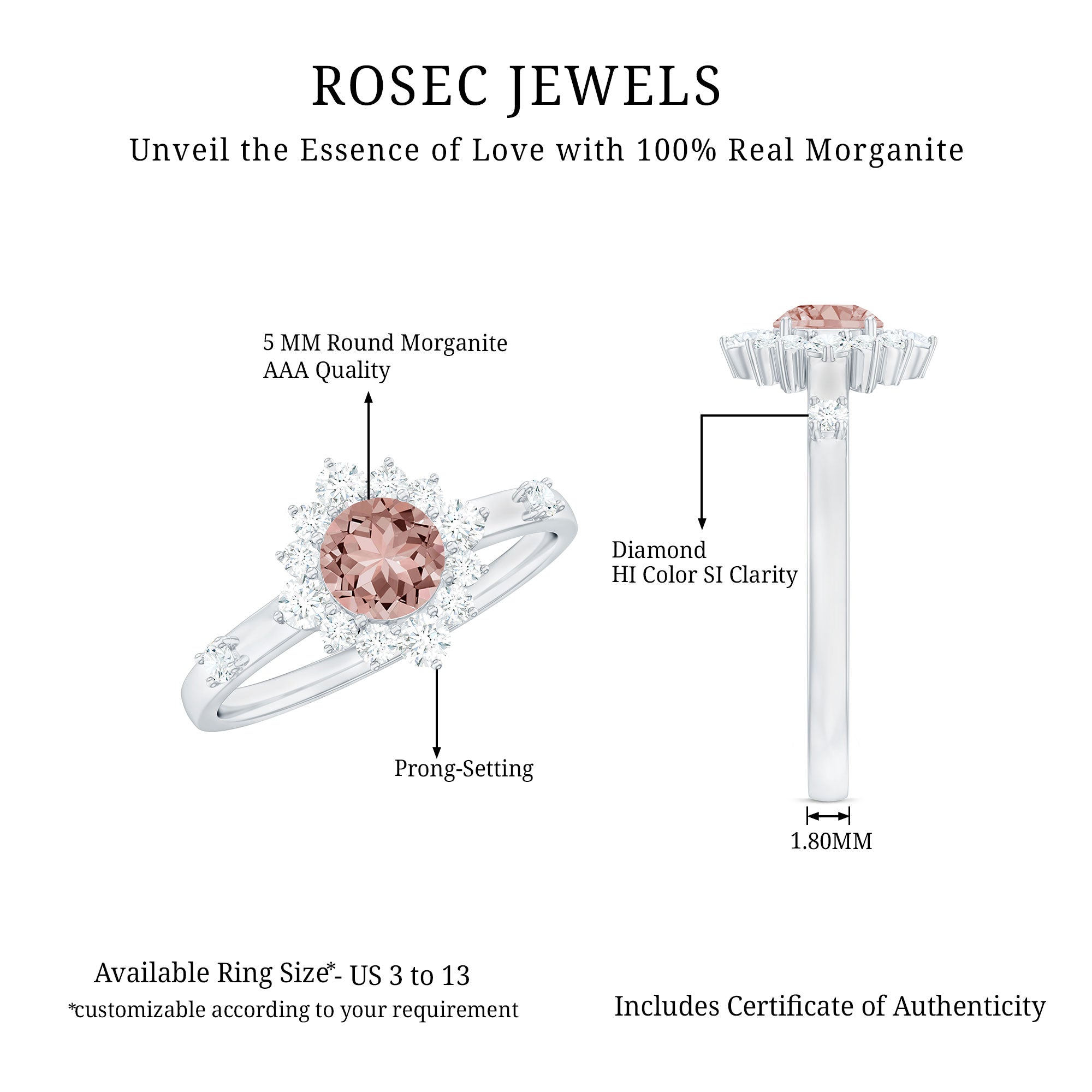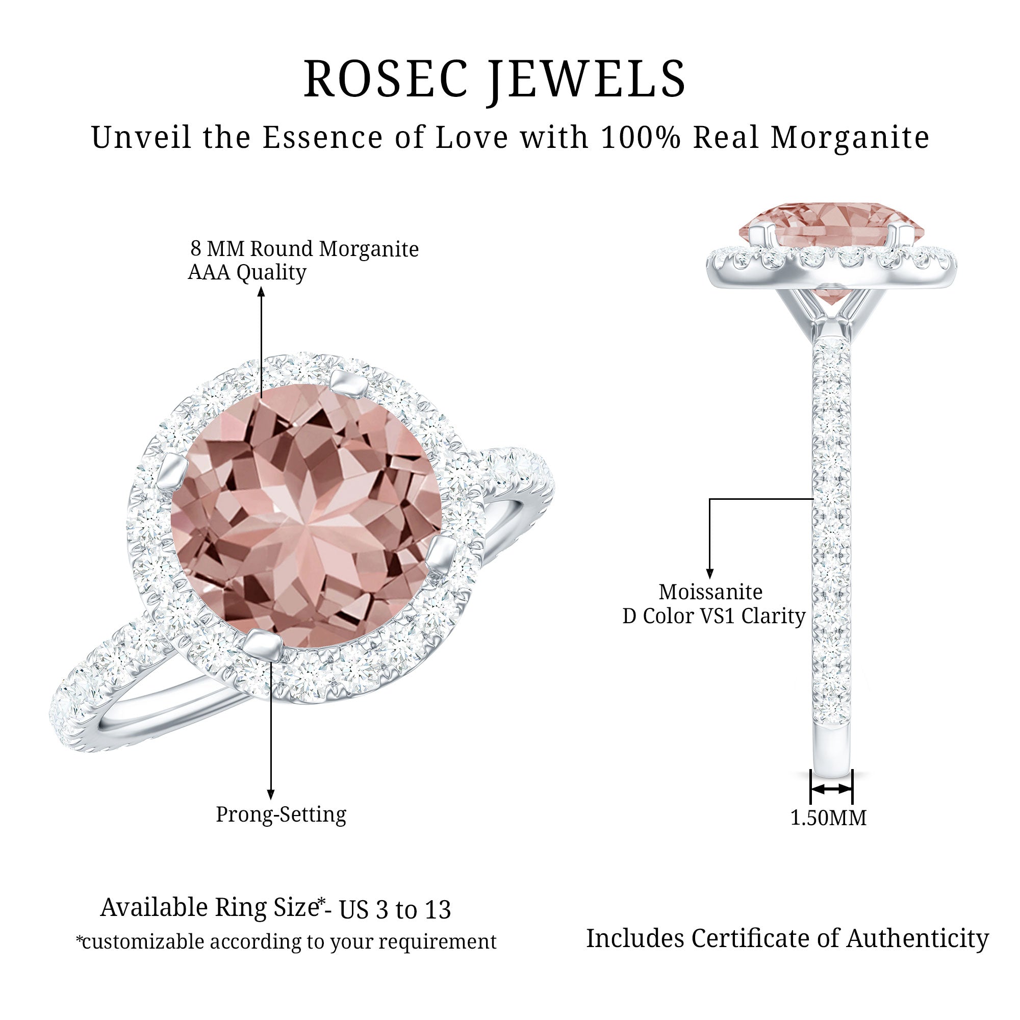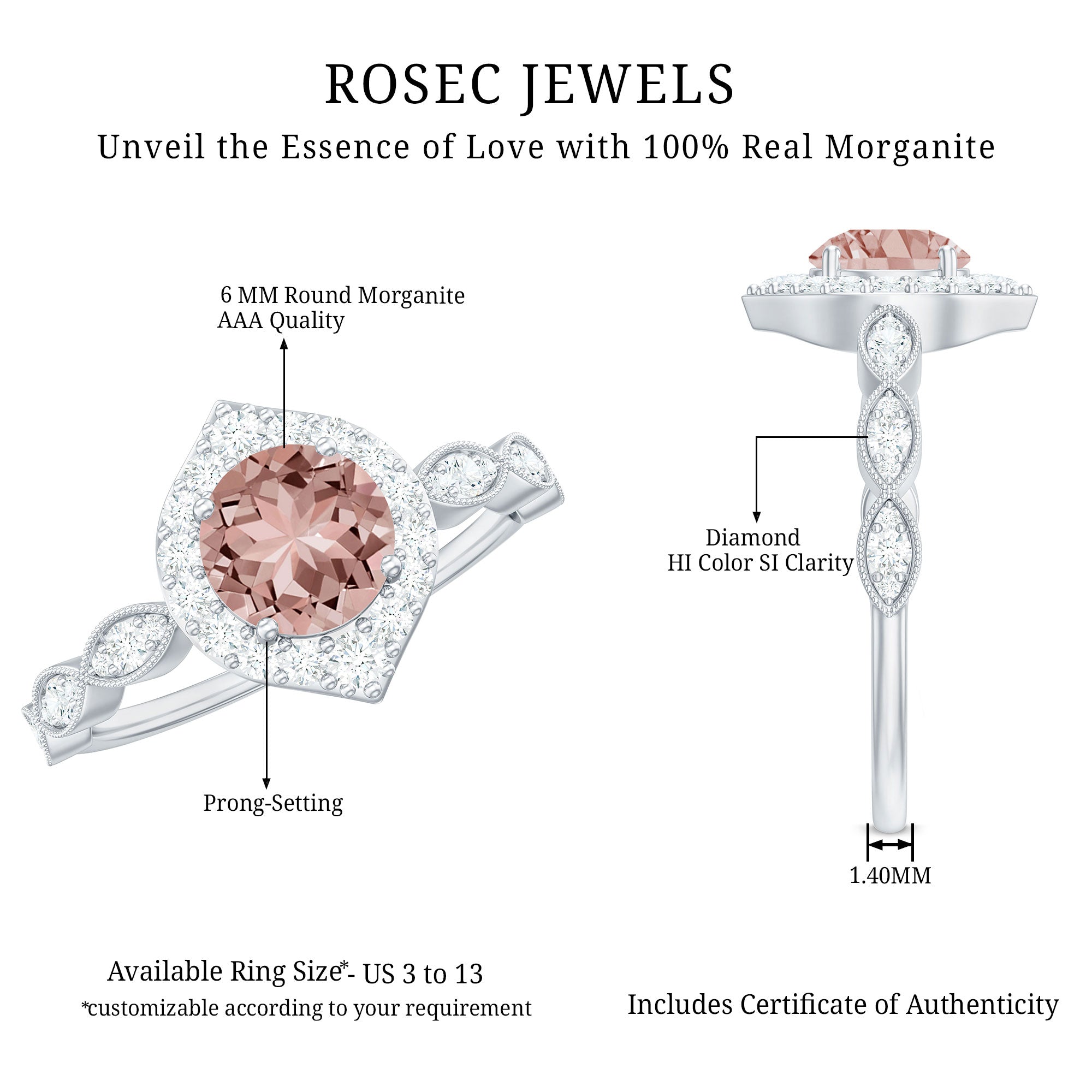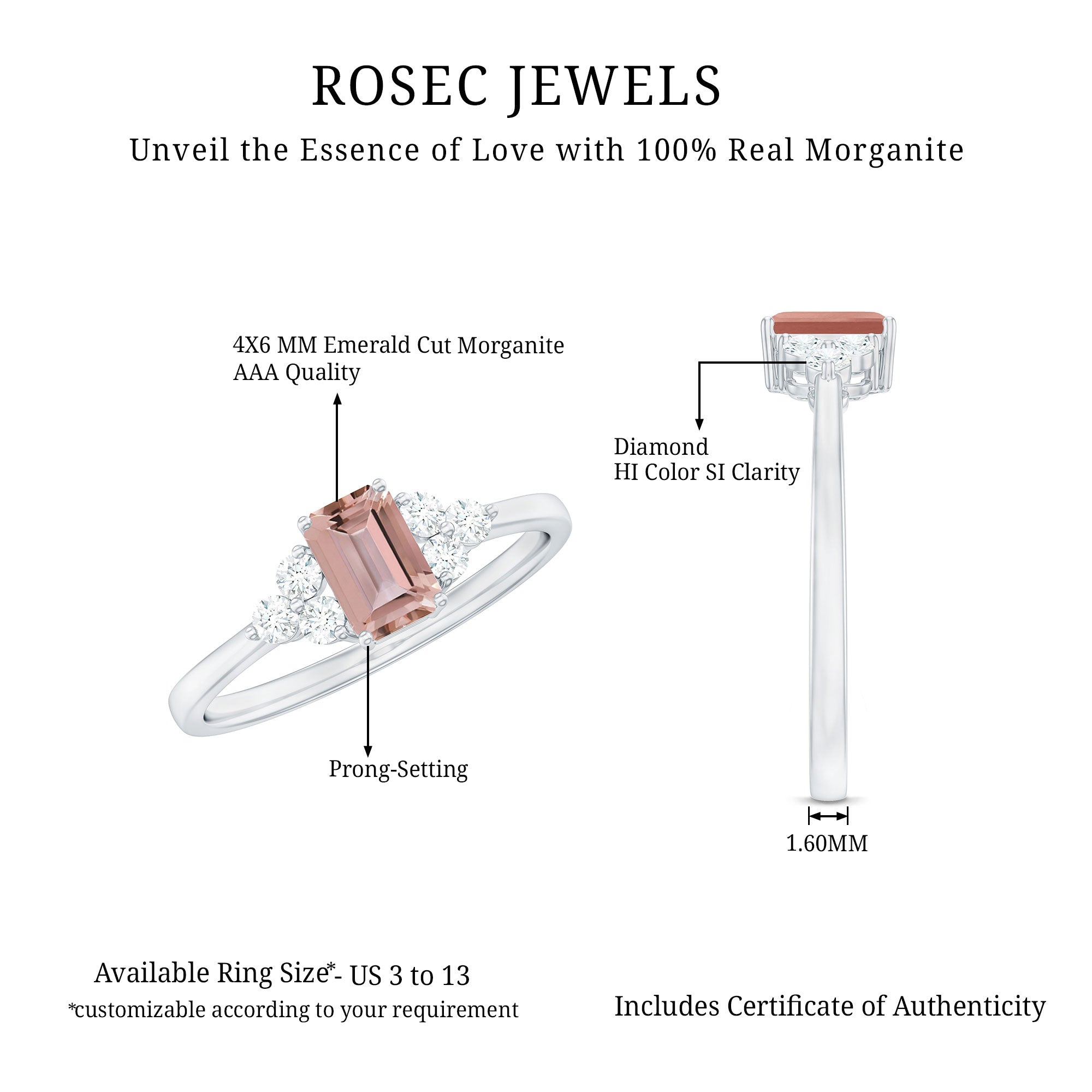 Now that you’ve fallen for Morganite even more, we can’t wait to introduce you to our versatile designs that will end your hunt for the “best place to buy Morganite ring” once and for all.
