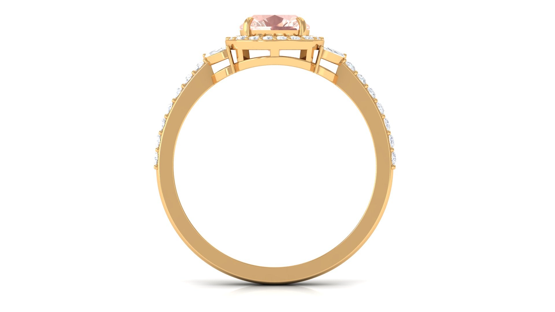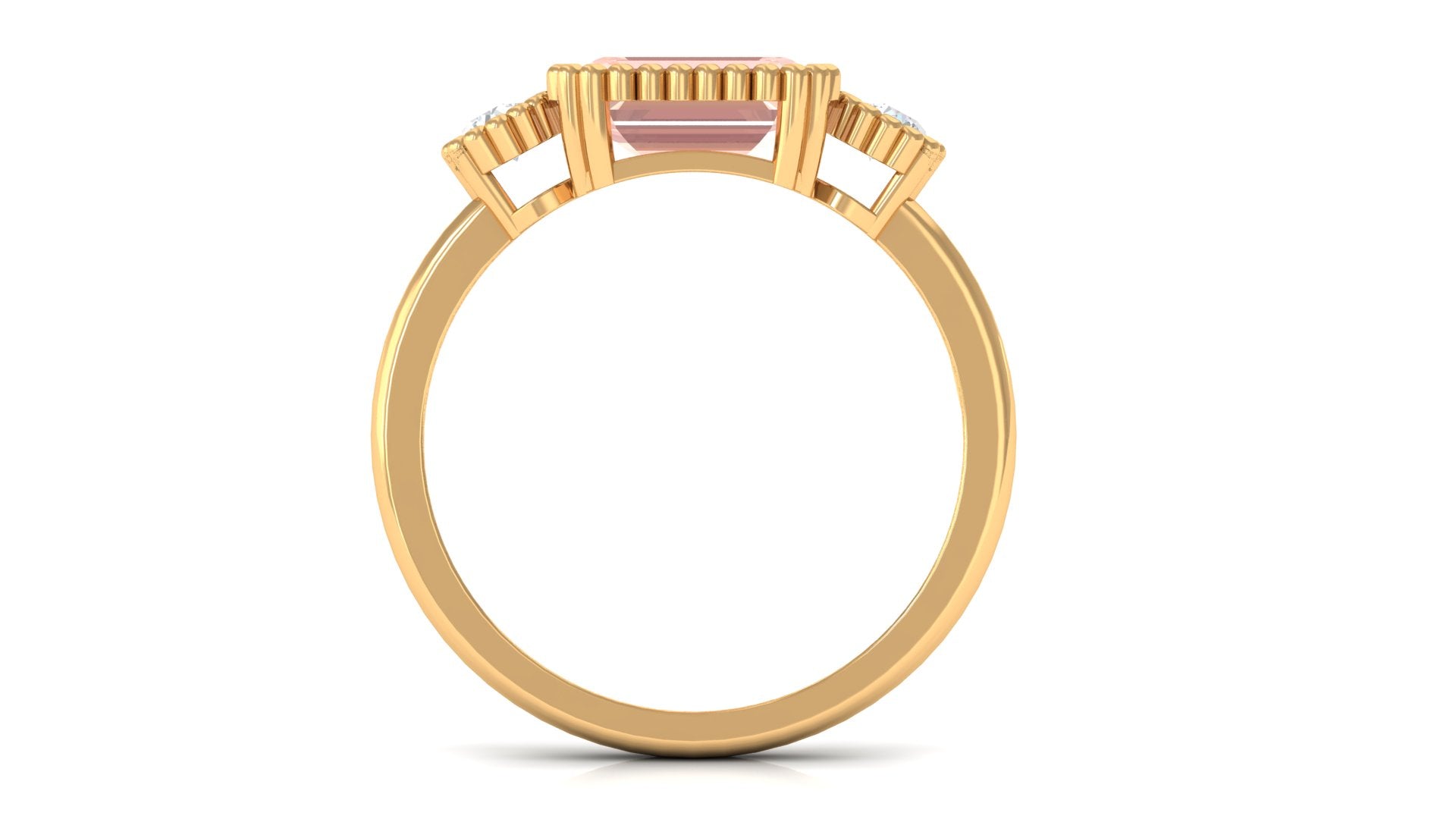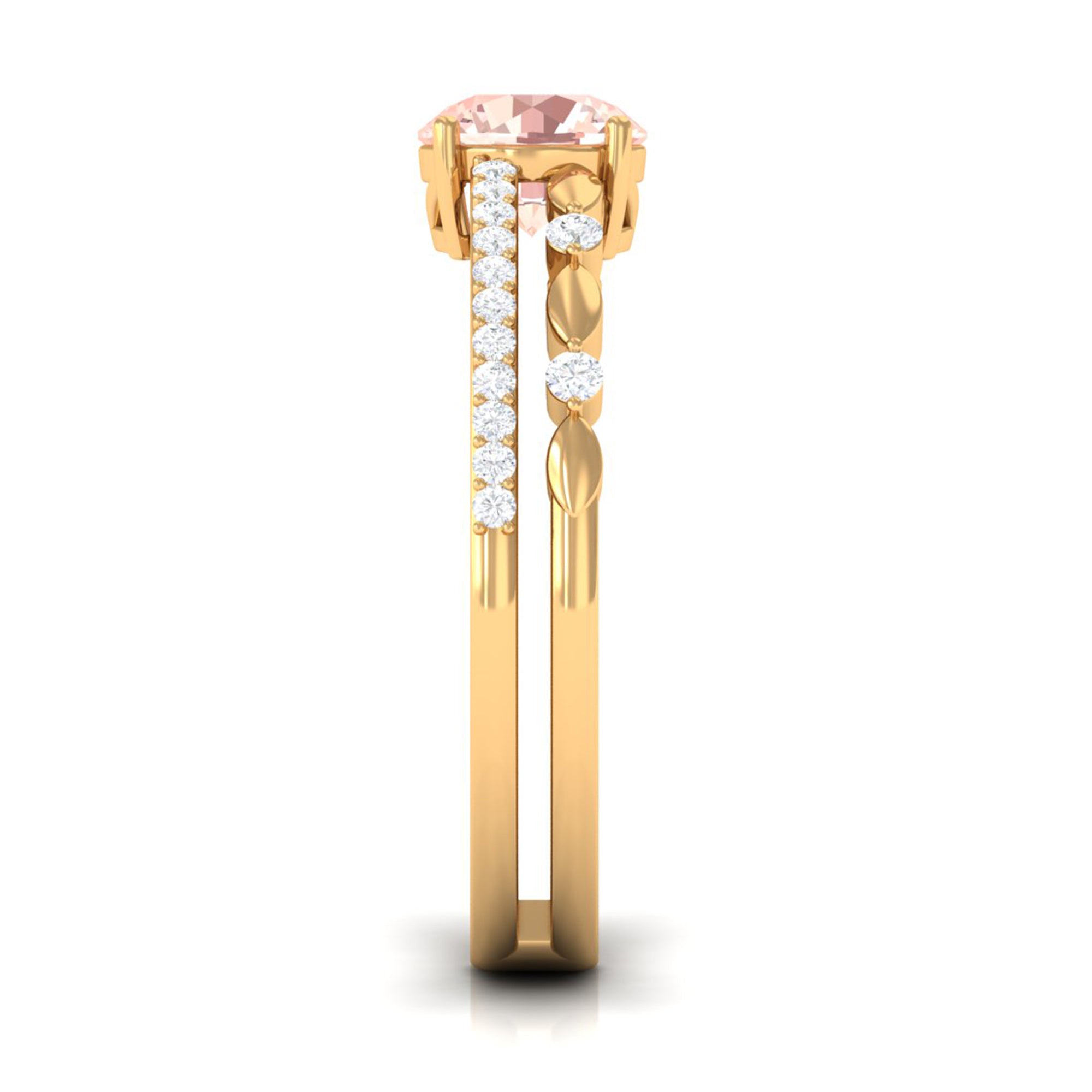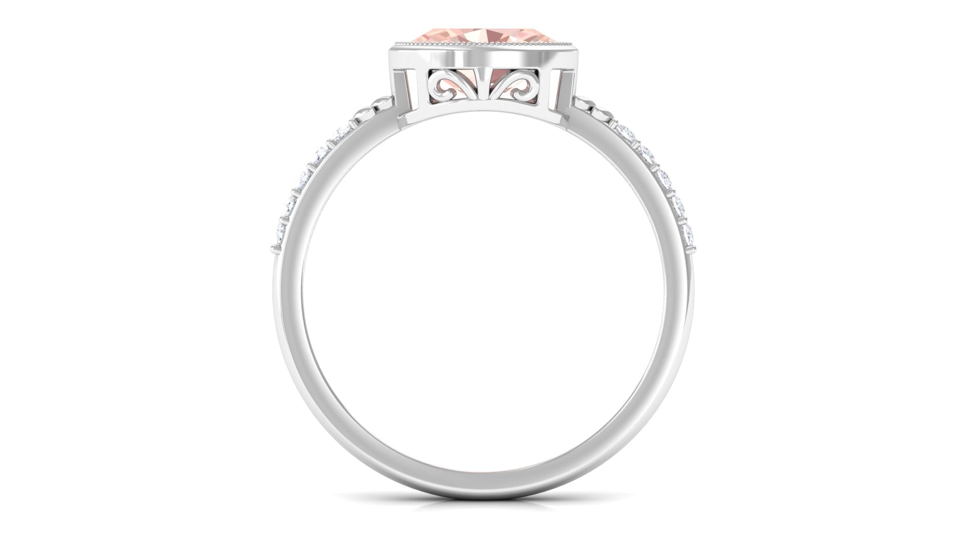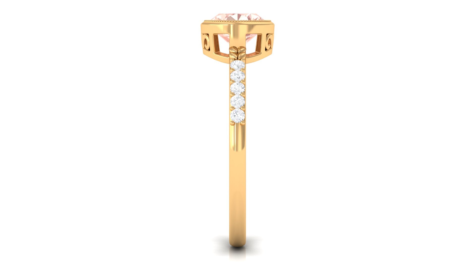 Forever in trend, a Solitaire Morganite Ring boasts a solo centerpiece of Morganite (that is meant to shine out with its enormous size of 6 MM or more). This style makes for one of the most classic cum conventional choices in the Morganite Engagement Ring. What’s more, this timeless style offers you a wide scope of versatility. It ranges from a Round Morganite Ring for the traditional bride to fancier ones like Marquise, Pear, or Princess Cut Solitaire Ring for the bride who likes to keep up with the trends. On the other hand, if nothing appeals quite like a little vintage touch, you can rely on old-school shapes like an Asscher, Cushion, or Emerald Cut Morganite Ring.
