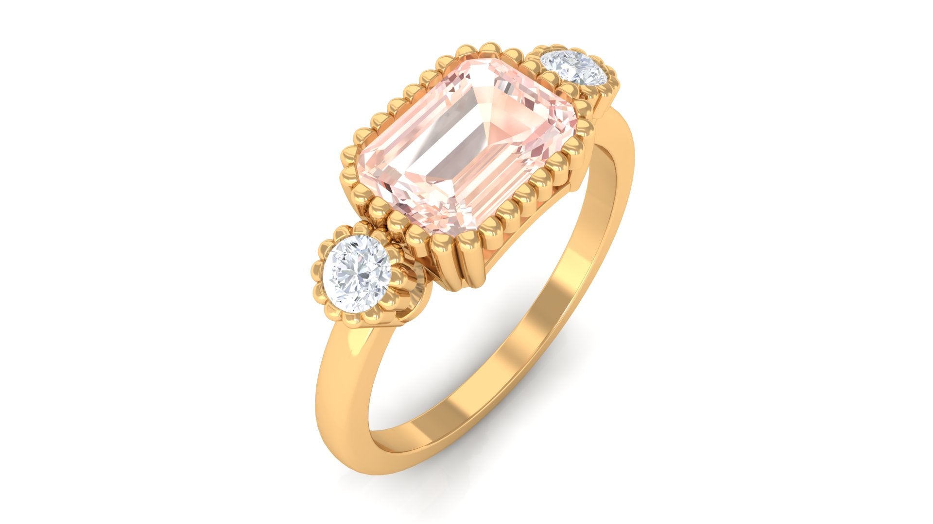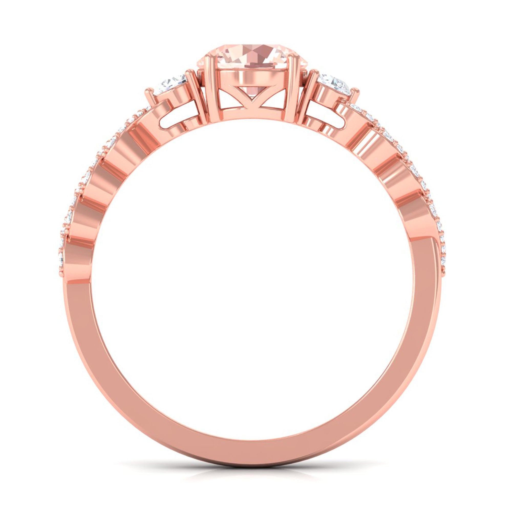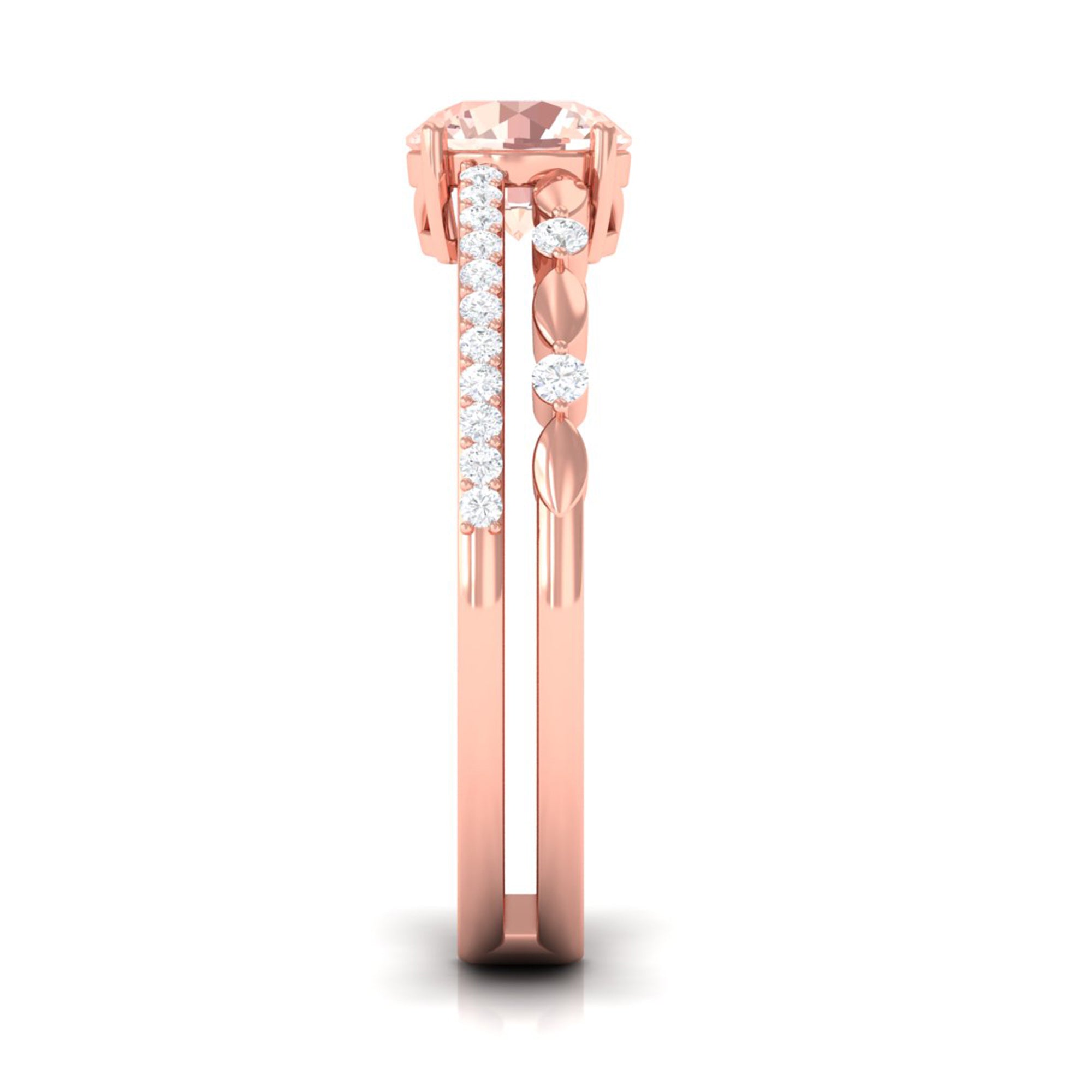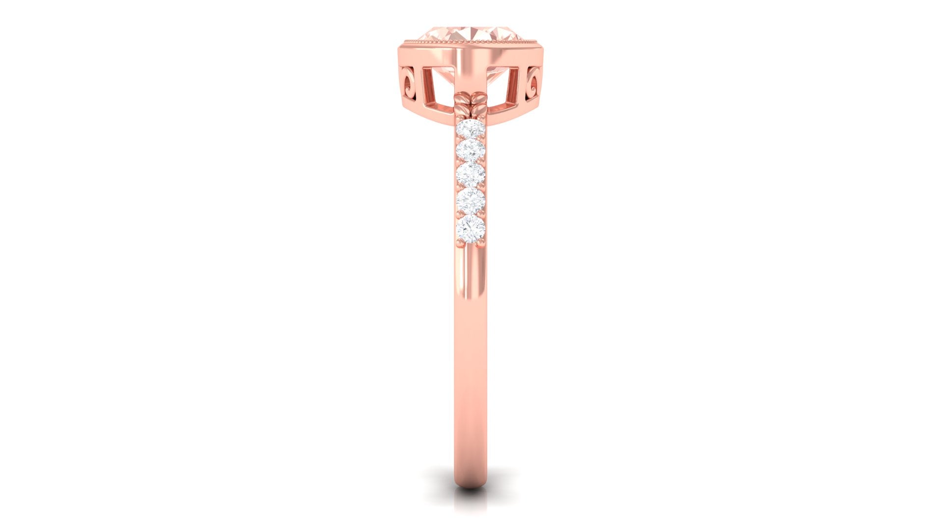 Forever in trend, a Solitaire Morganite Ring boasts a solo centerpiece of Morganite (that is meant to shine out with its enormous size of 6 MM or more). This style makes for one of the most classic cum conventional choices in the Morganite Engagement Ring. What’s more, this timeless style offers you a wide scope of versatility. It ranges from a Round Morganite Ring for the traditional bride to fancier ones like Marquise, Pear, or Princess Cut Solitaire Ring for the bride who likes to keep up with the trends. On the other hand, if nothing appeals quite like a little vintage touch, you can rely on old-school shapes like an Asscher, Cushion, or Emerald Cut Morganite Ring.