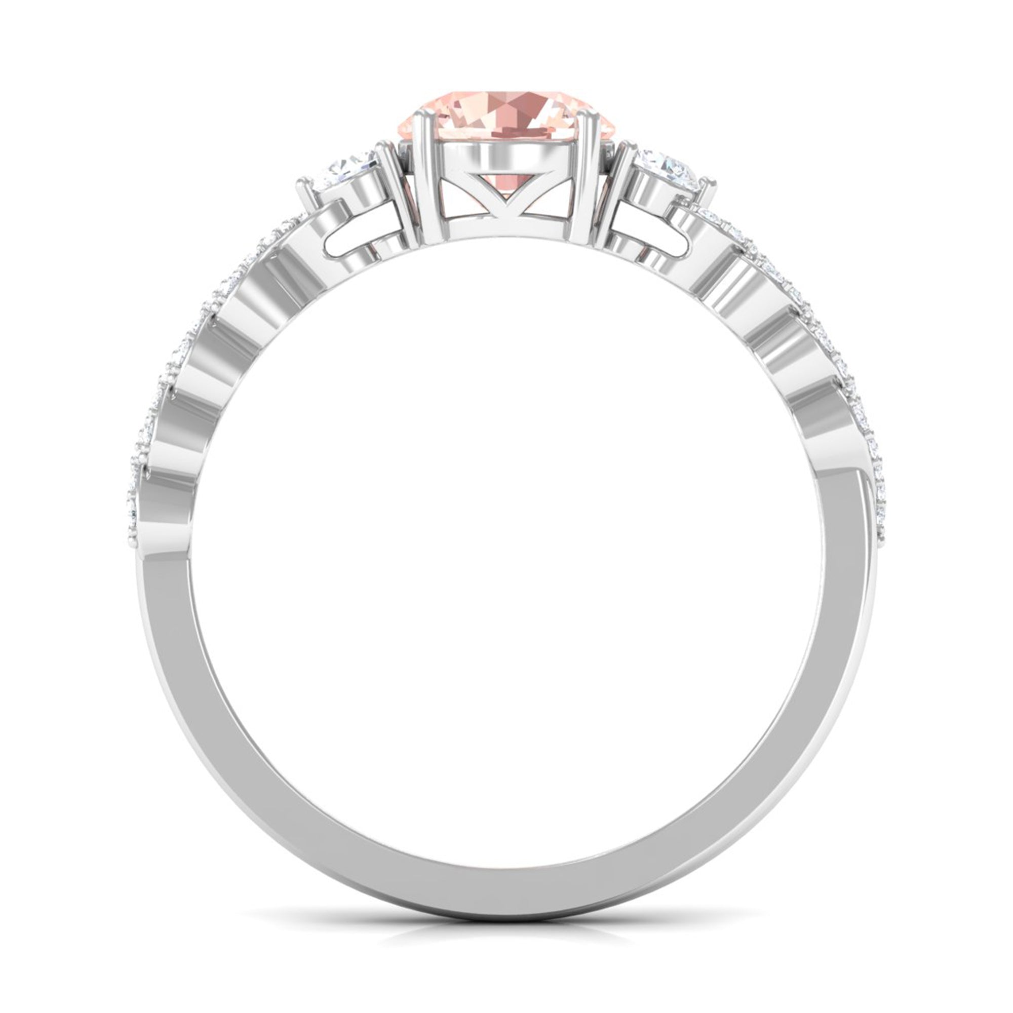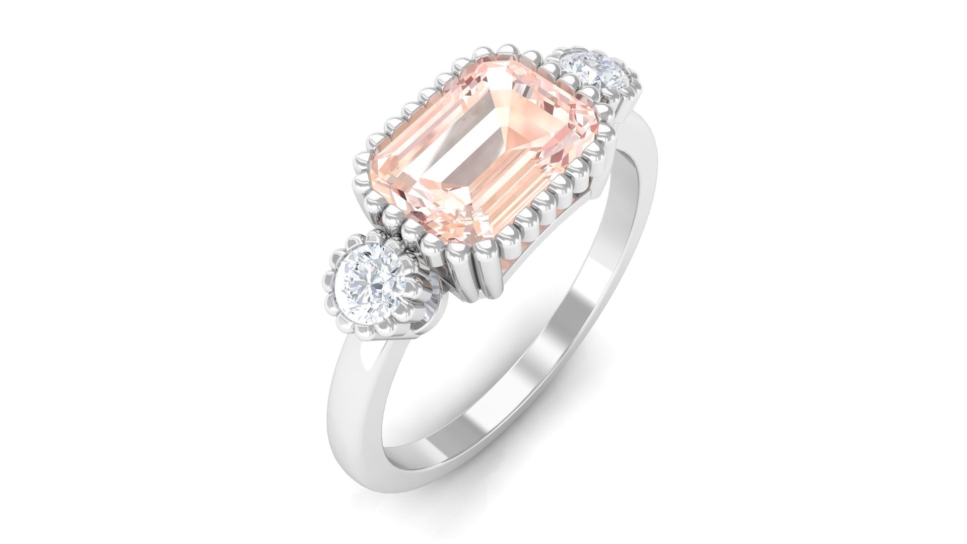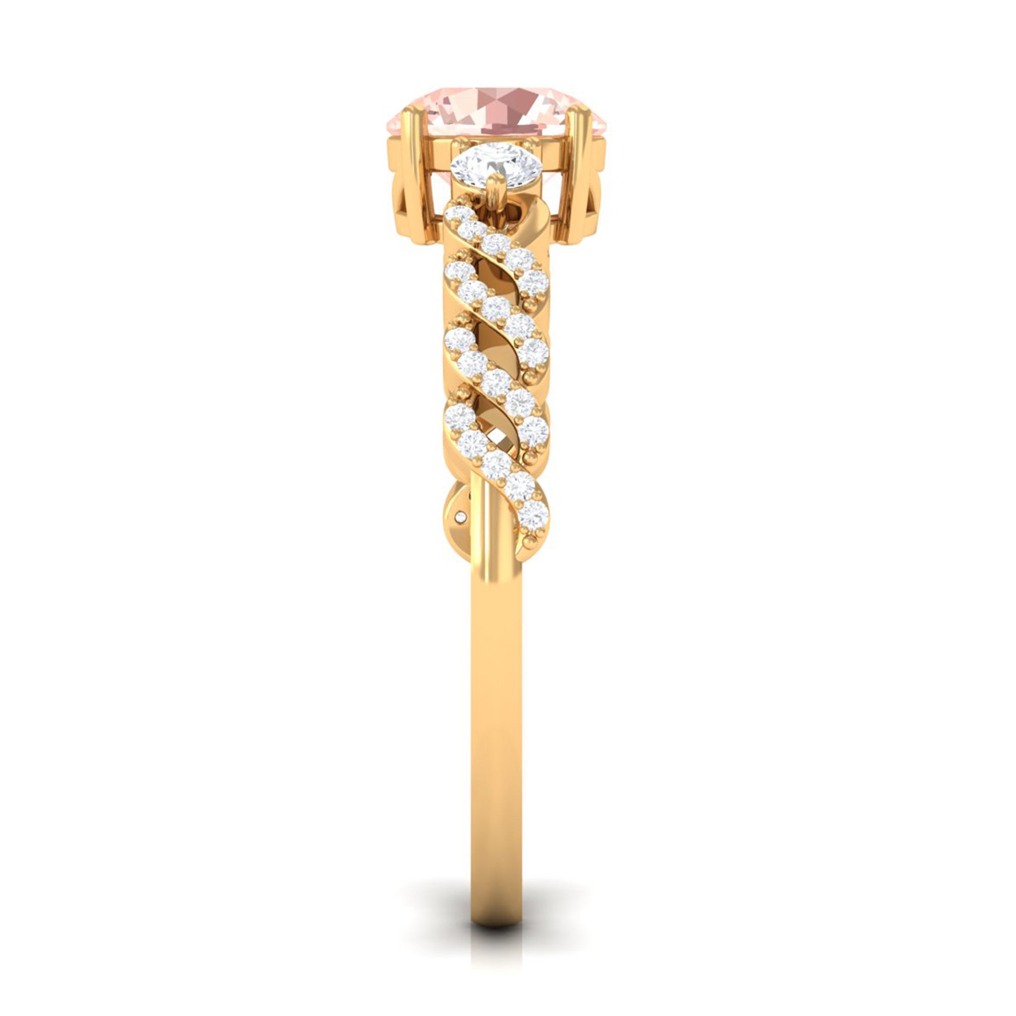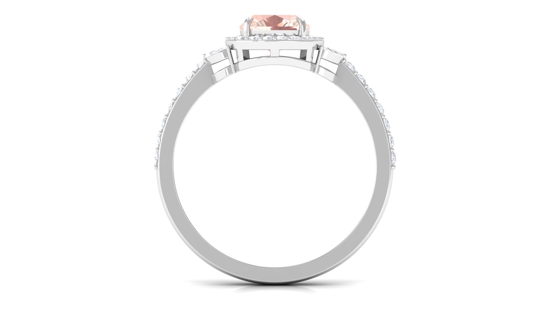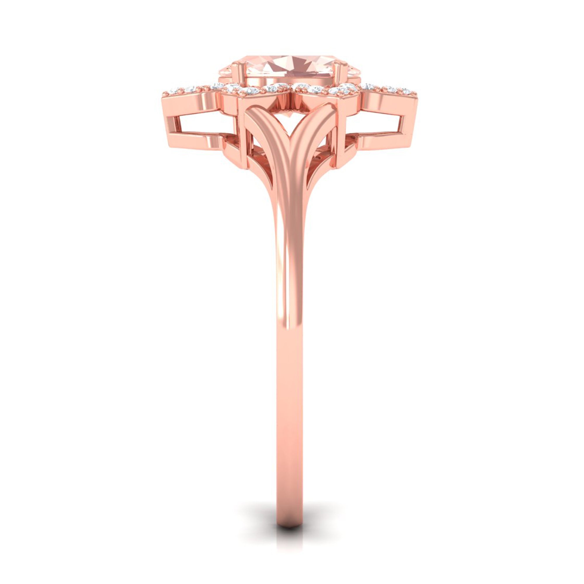 Forever in trend, a Solitaire Morganite Ring boasts a solo centerpiece of Morganite (that is meant to shine out with its enormous size of 6 MM or more). This style makes for one of the most classic cum conventional choices in the Morganite Engagement Ring. What’s more, this timeless style offers you a wide scope of versatility. It ranges from a Round Morganite Ring for the traditional bride to fancier ones like Marquise, Pear, or Princess Cut Solitaire Ring for the bride who likes to keep up with the trends. On the other hand, if nothing appeals quite like a little vintage touch, you can rely on old-school shapes like an Asscher, Cushion, or Emerald Cut Morganite Ring.