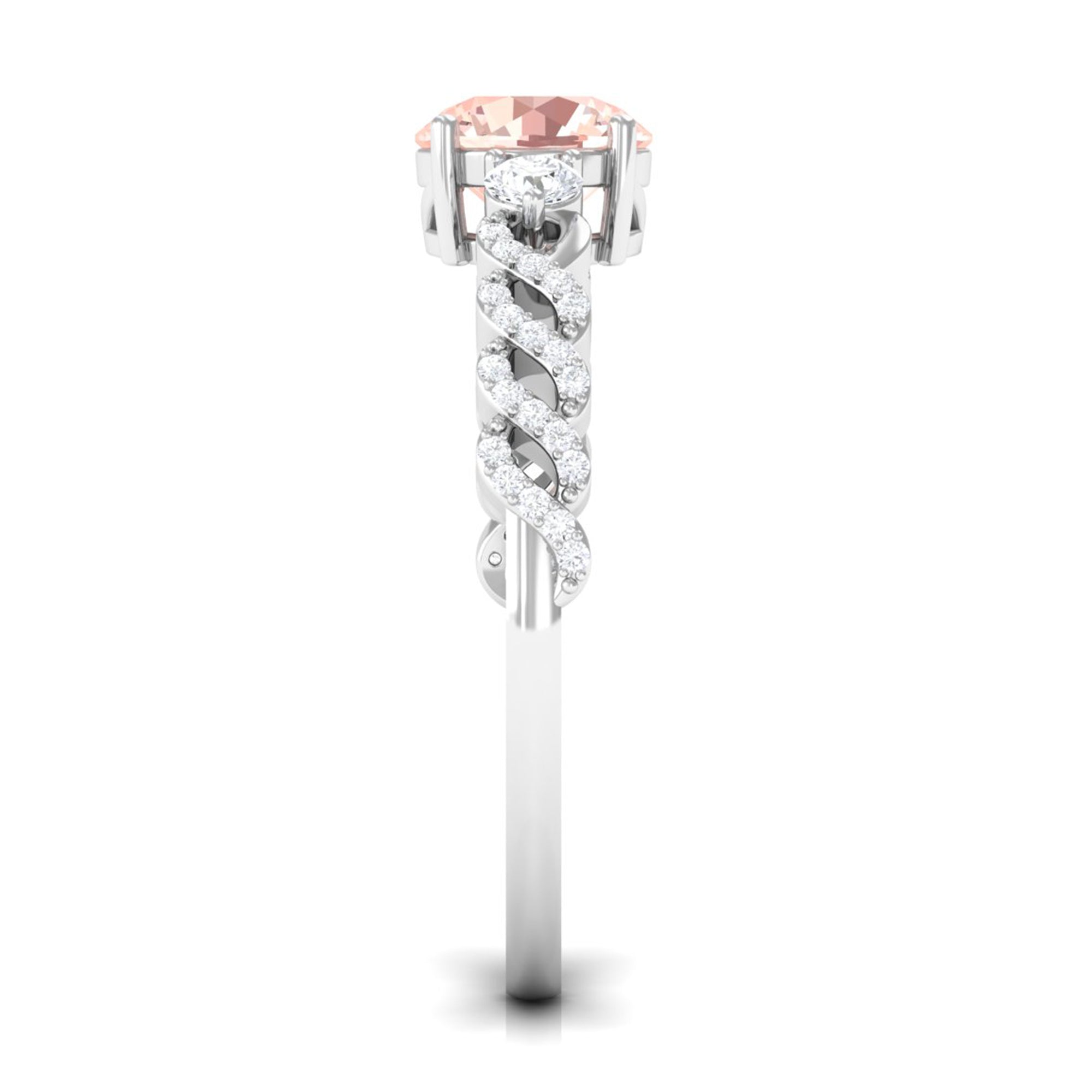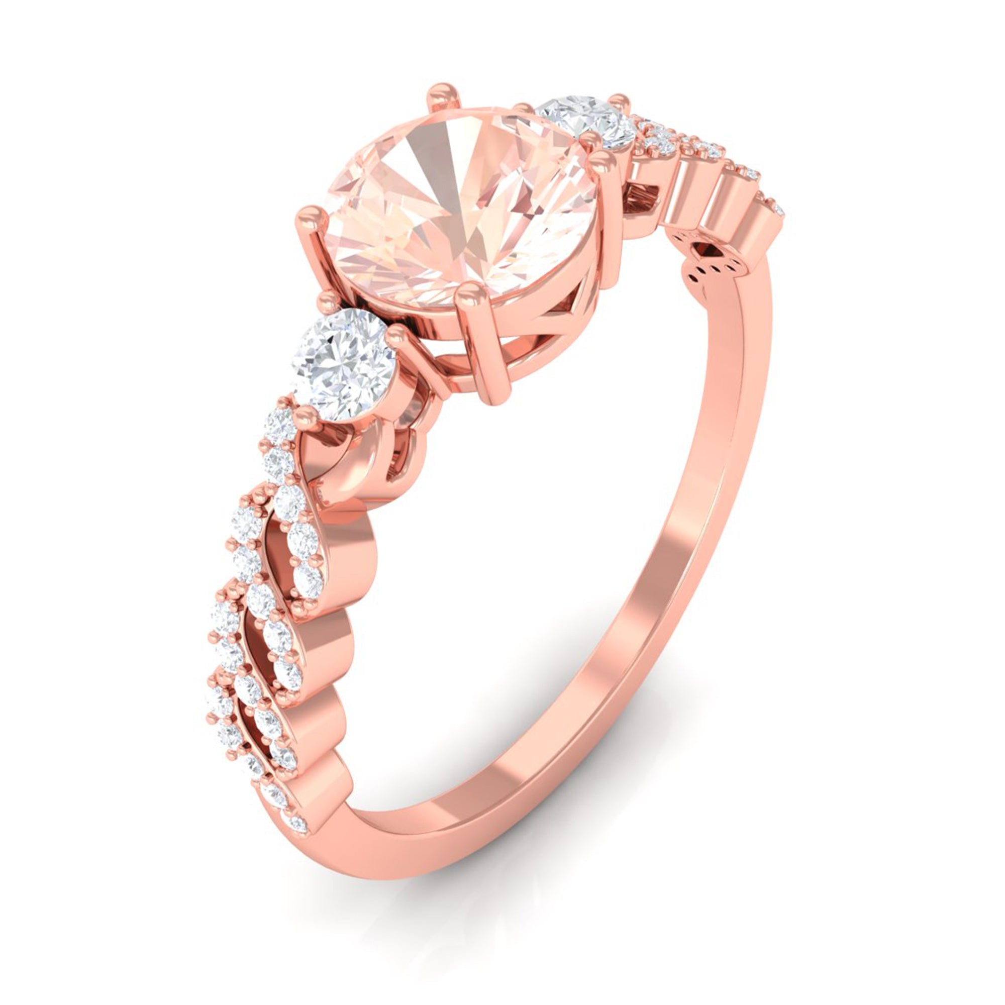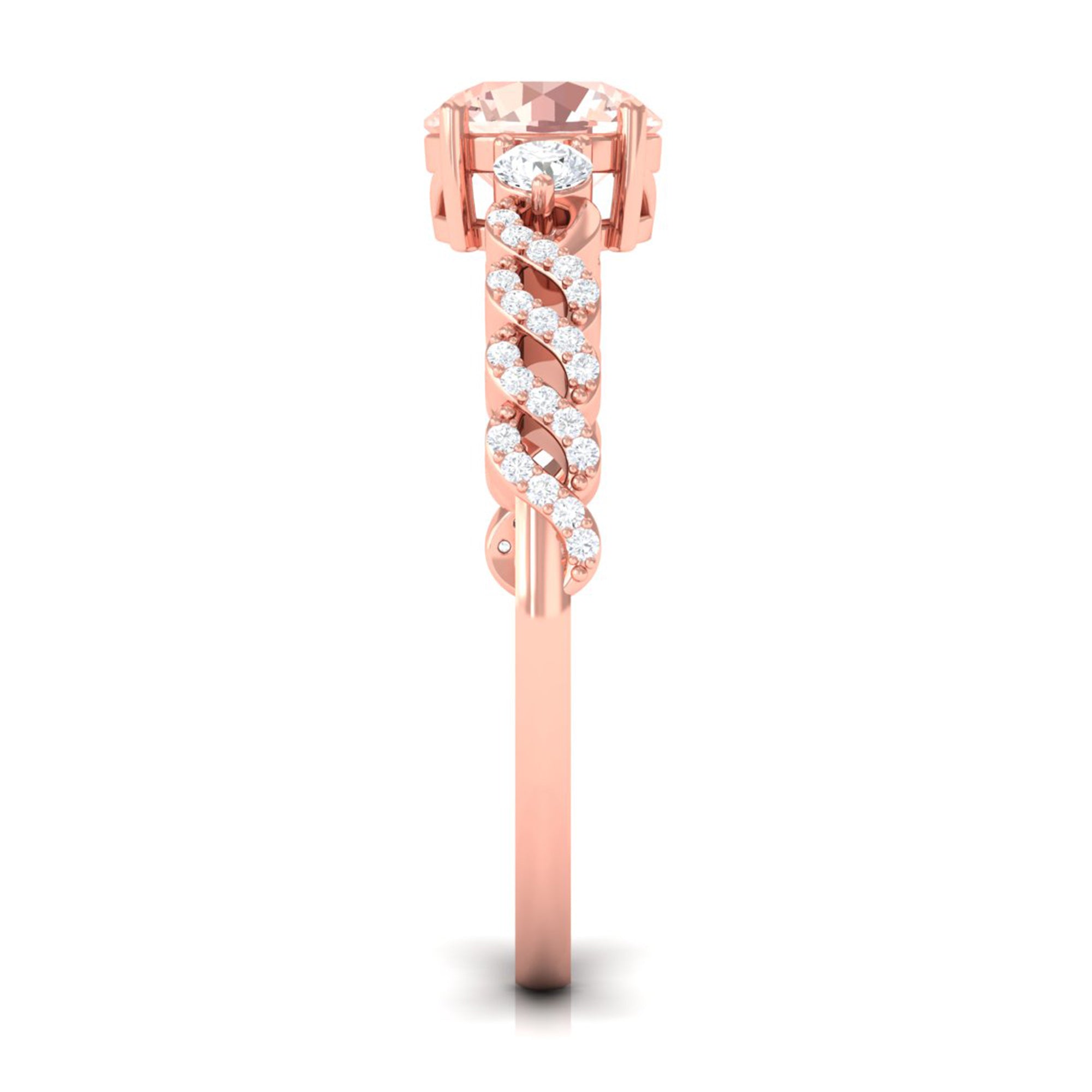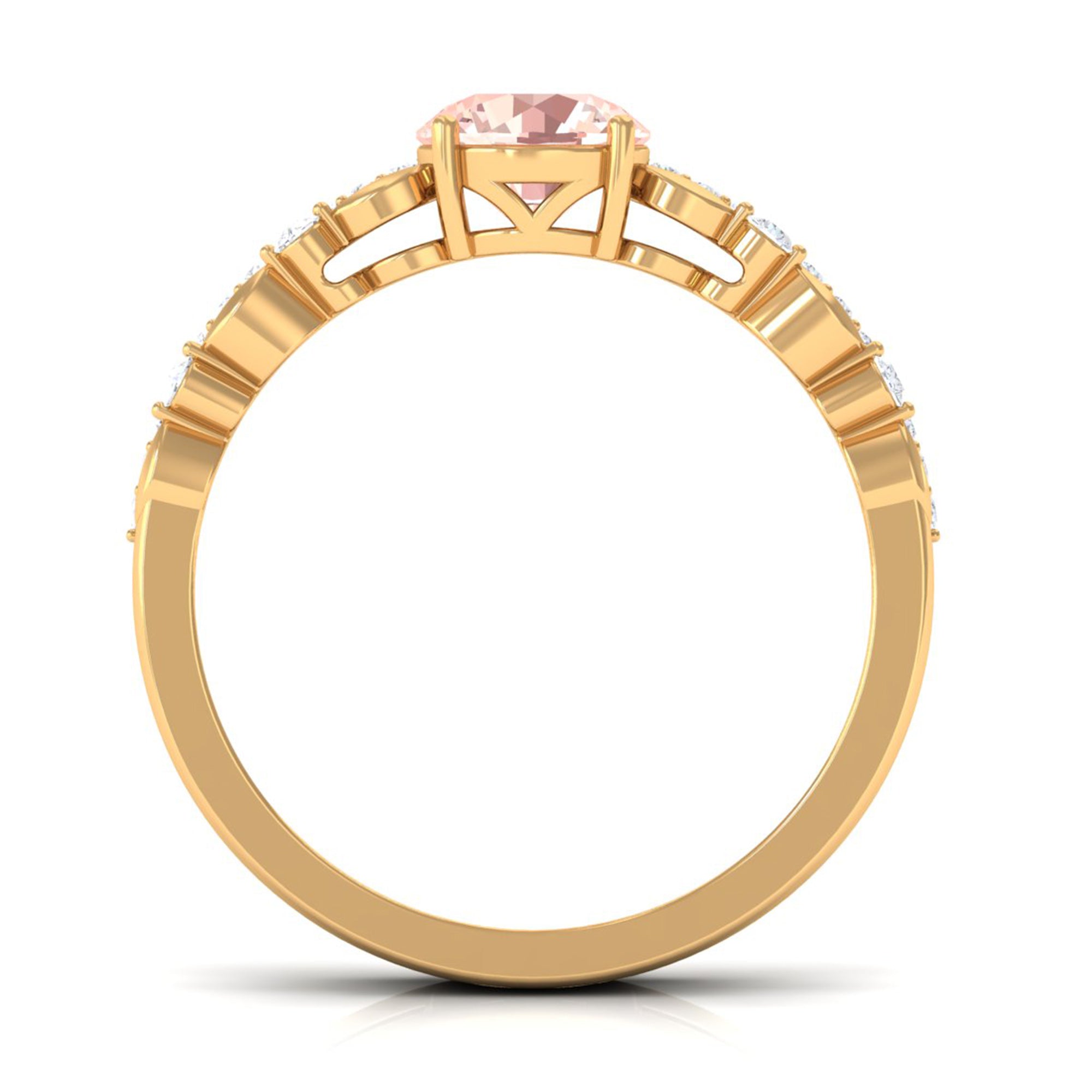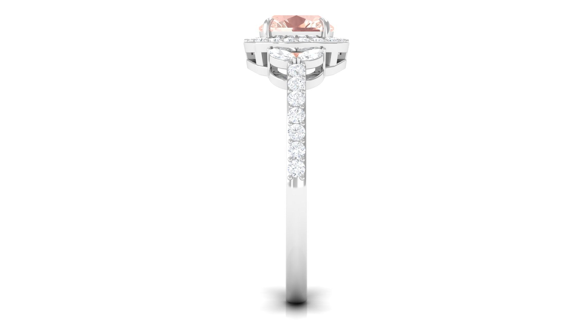 Forever in trend, a Solitaire Morganite Ring boasts a solo centerpiece of Morganite (that is meant to shine out with its enormous size of 6 MM or more). This style makes for one of the most classic cum conventional choices in the Morganite Engagement Ring. What’s more, this timeless style offers you a wide scope of versatility. It ranges from a Round Morganite Ring for the traditional bride to fancier ones like Marquise, Pear, or Princess Cut Solitaire Ring for the bride who likes to keep up with the trends. On the other hand, if nothing appeals quite like a little vintage touch, you can rely on old-school shapes like an Asscher, Cushion, or Emerald Cut Morganite Ring.