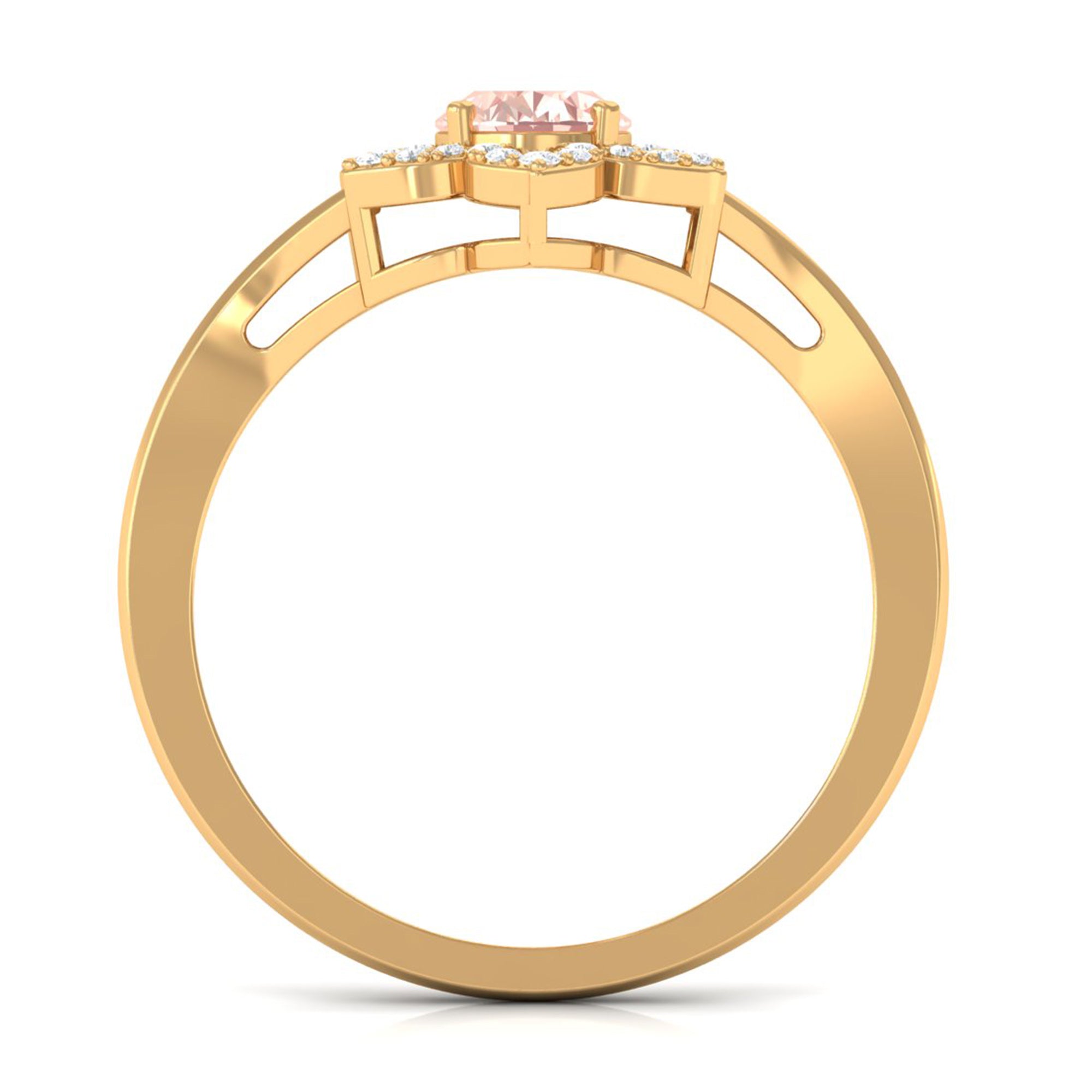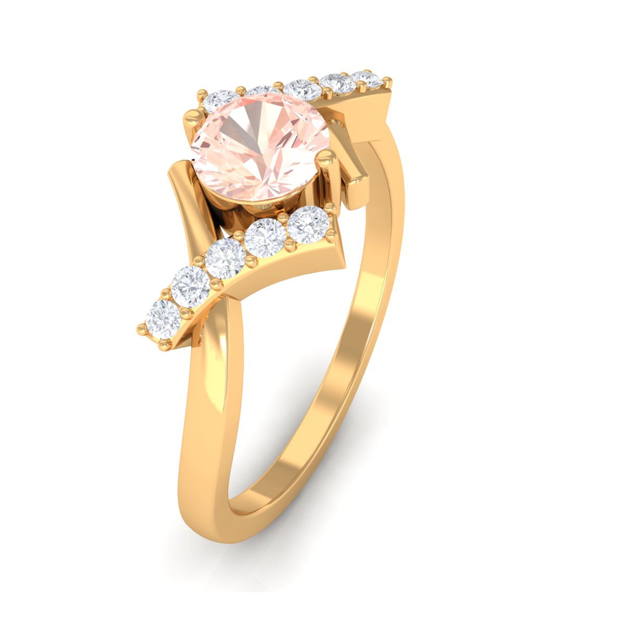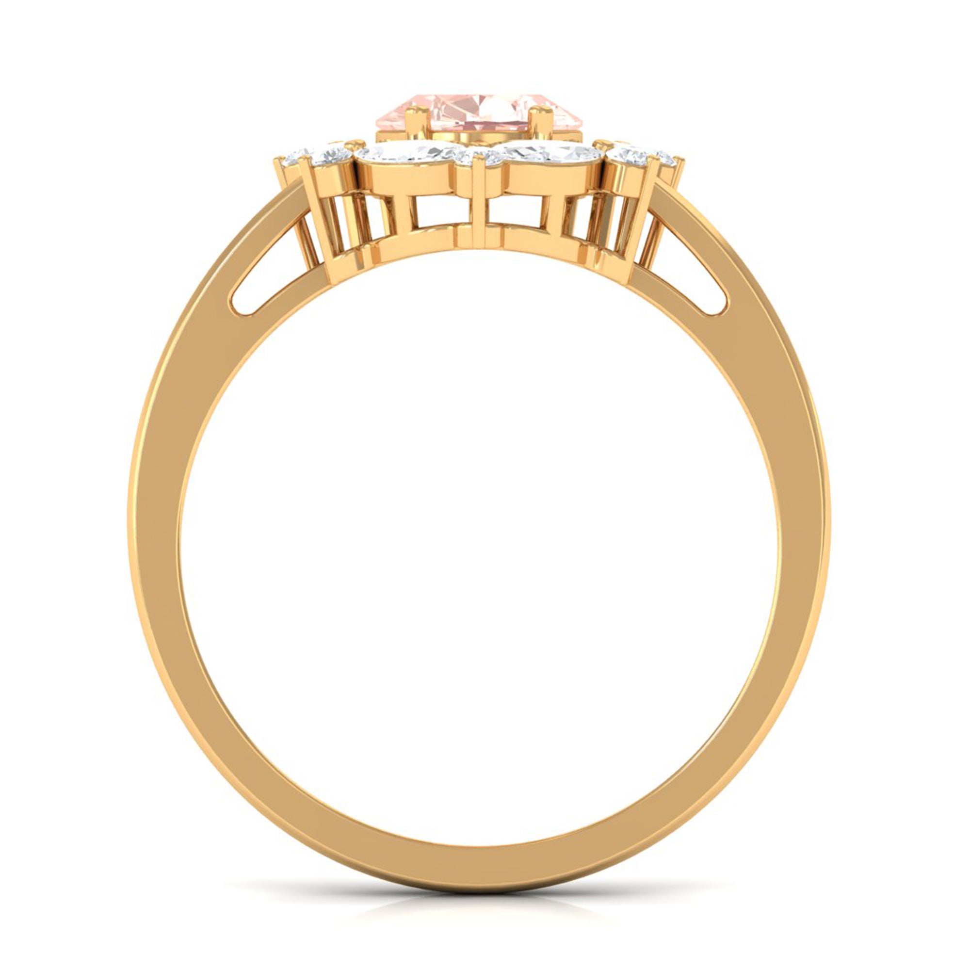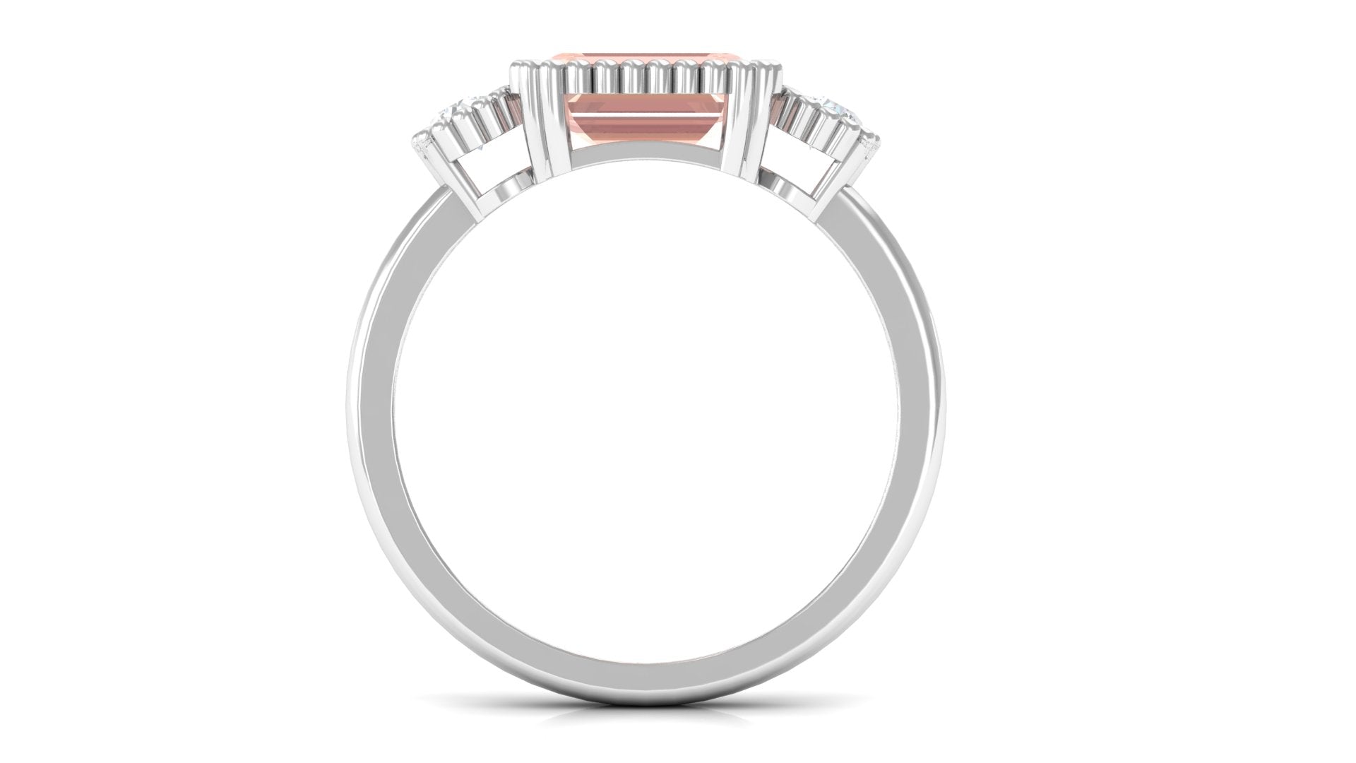 Forever in trend, a Solitaire Morganite Ring boasts a solo centerpiece of Morganite (that is meant to shine out with its enormous size of 6 MM or more). This style makes for one of the most classic cum conventional choices in the Morganite Engagement Ring. What’s more, this timeless style offers you a wide scope of versatility. It ranges from a Round Morganite Ring for the traditional bride to fancier ones like Marquise, Pear, or Princess Cut Solitaire Ring for the bride who likes to keep up with the trends. On the other hand, if nothing appeals quite like a little vintage touch, you can rely on old-school shapes like an Asscher, Cushion, or Emerald Cut Morganite Ring.