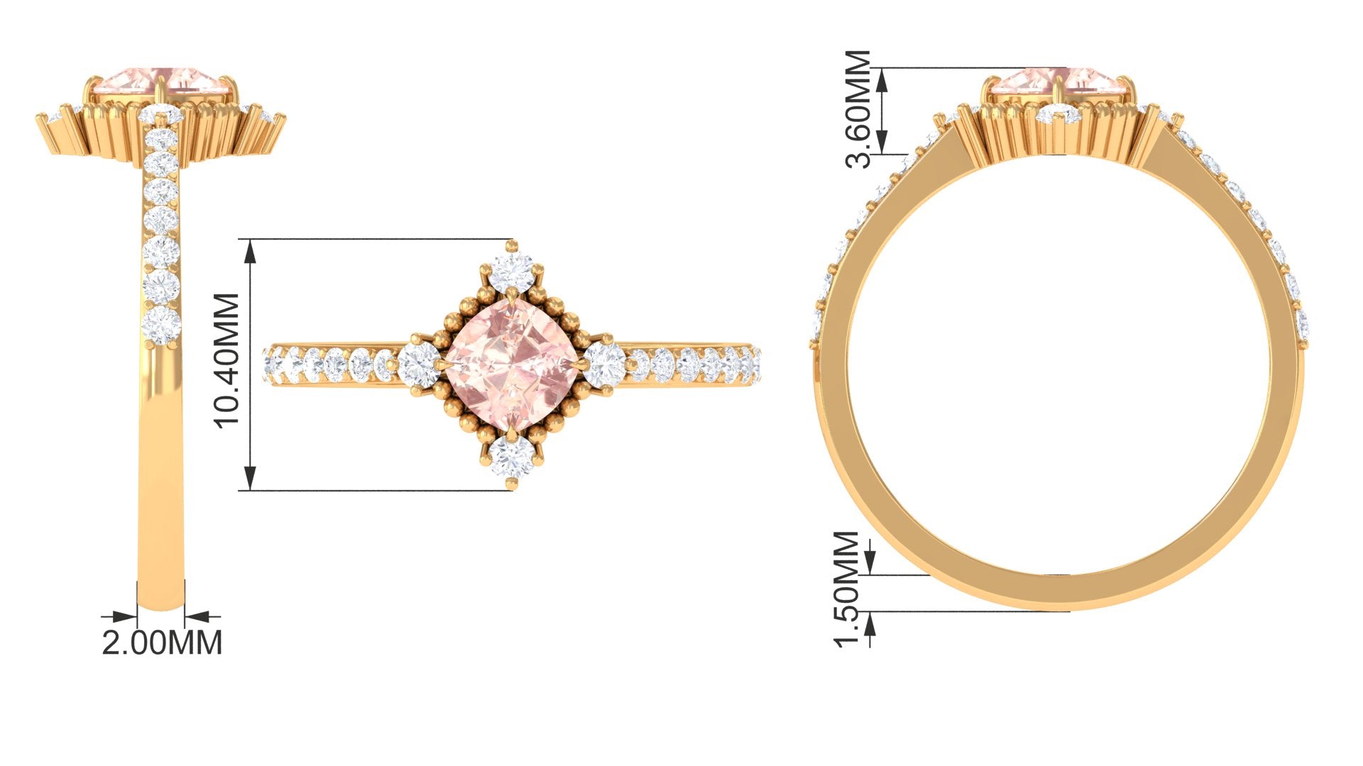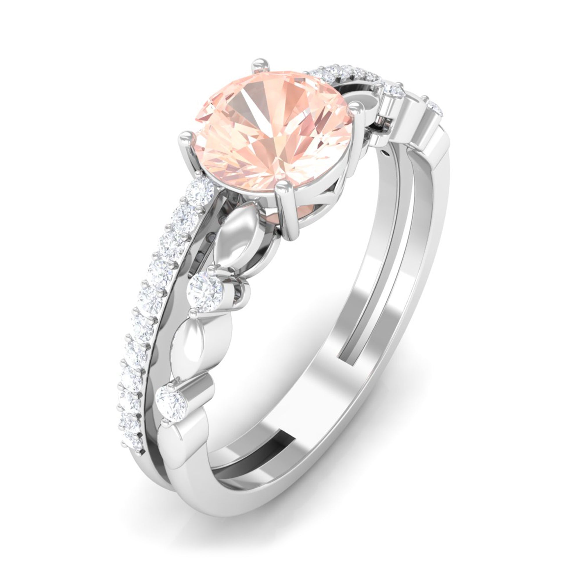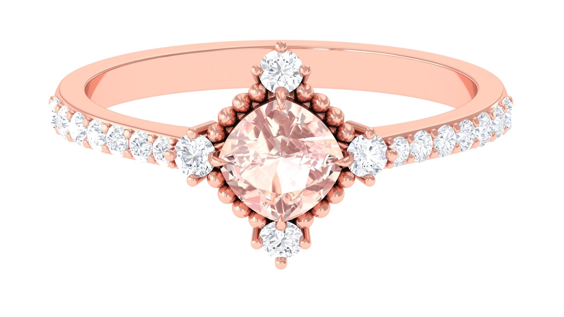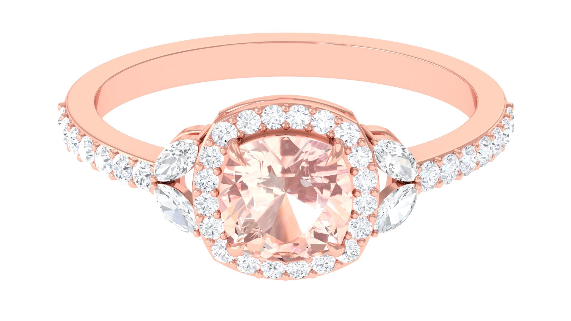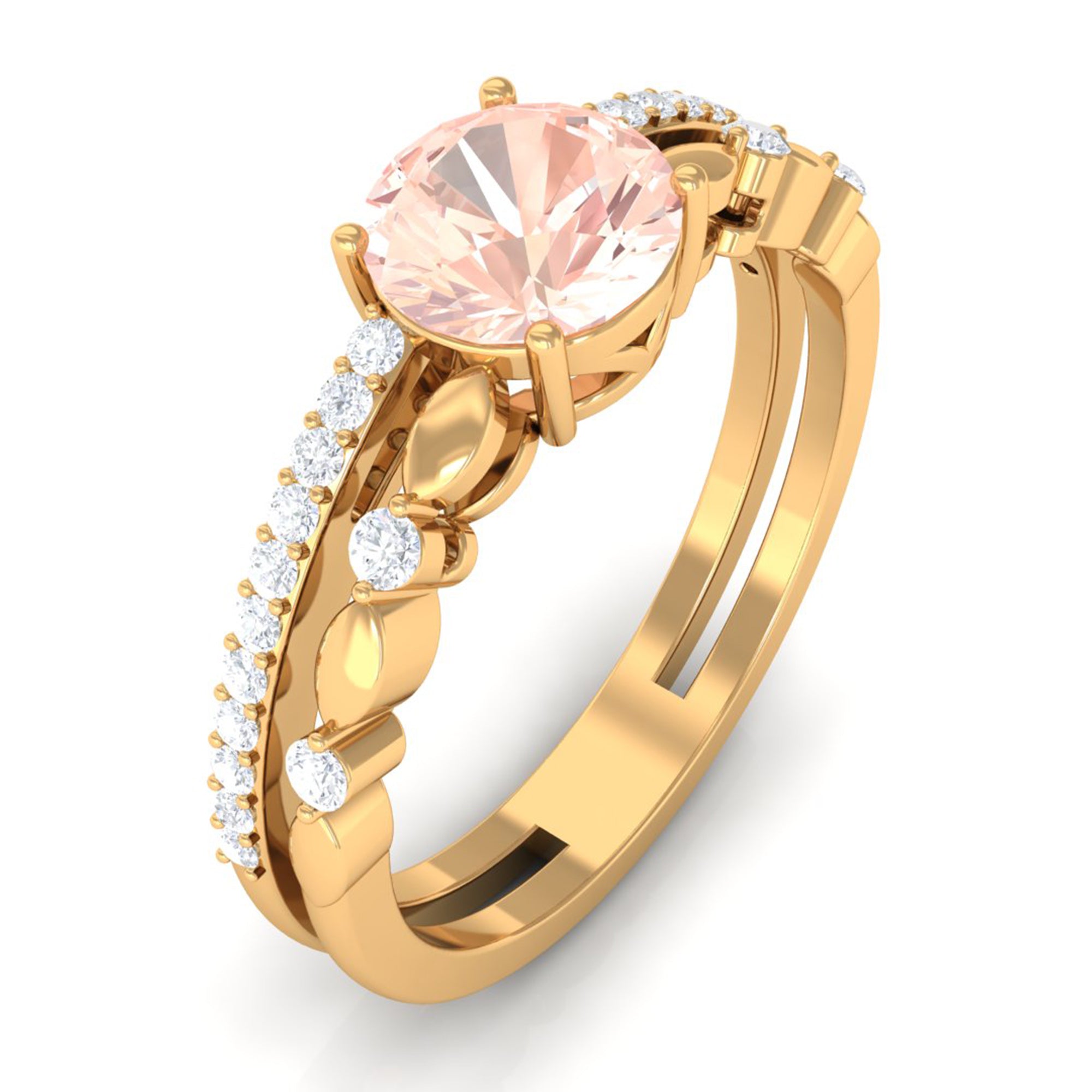 Forever in trend, a Solitaire Morganite Ring boasts a solo centerpiece of Morganite (that is meant to shine out with its enormous size of 6 MM or more). This style makes for one of the most classic cum conventional choices in the Morganite Engagement Ring. What’s more, this timeless style offers you a wide scope of versatility. It ranges from a Round Morganite Ring for the traditional bride to fancier ones like Marquise, Pear, or Princess Cut Solitaire Ring for the bride who likes to keep up with the trends. On the other hand, if nothing appeals quite like a little vintage touch, you can rely on old-school shapes like an Asscher, Cushion, or Emerald Cut Morganite Ring.