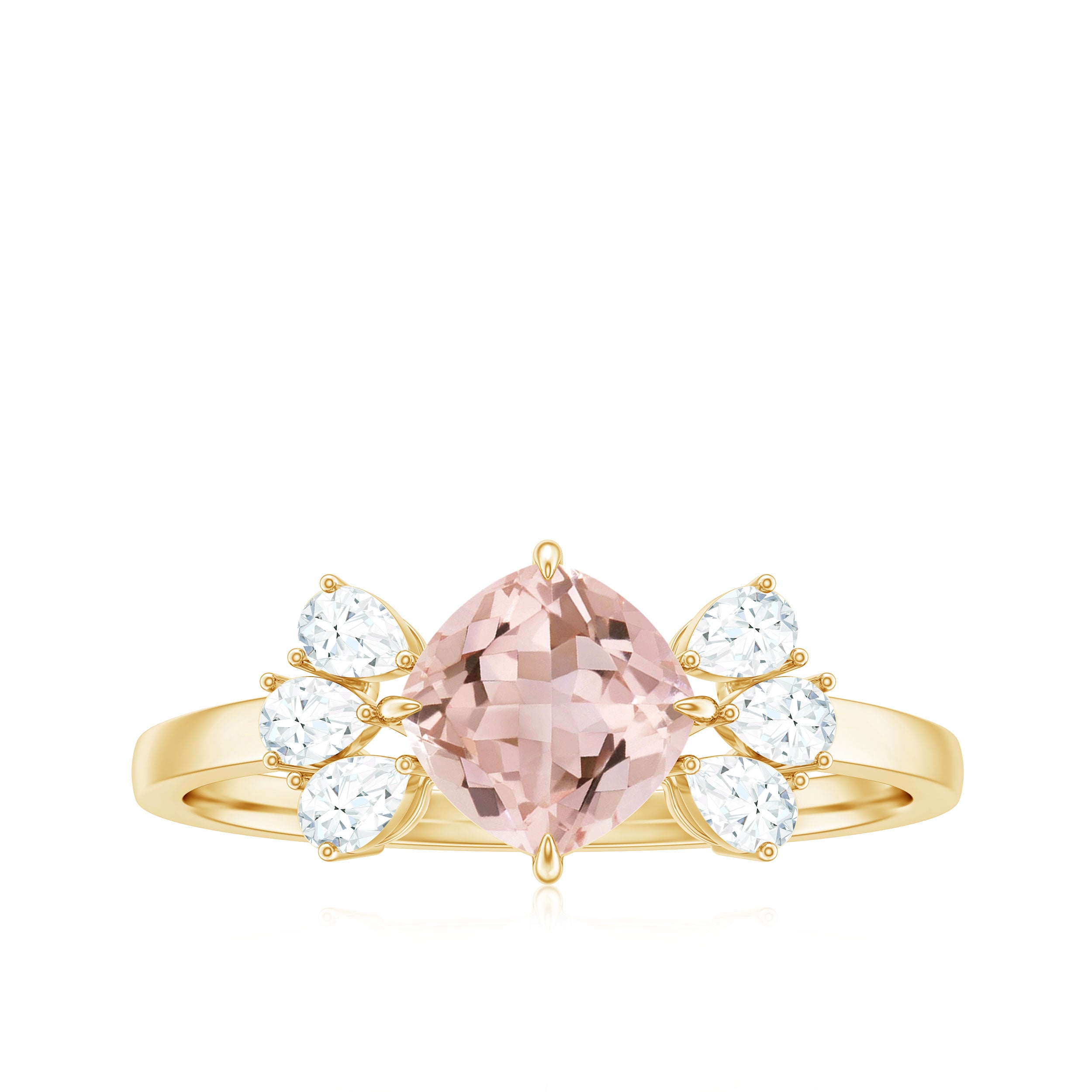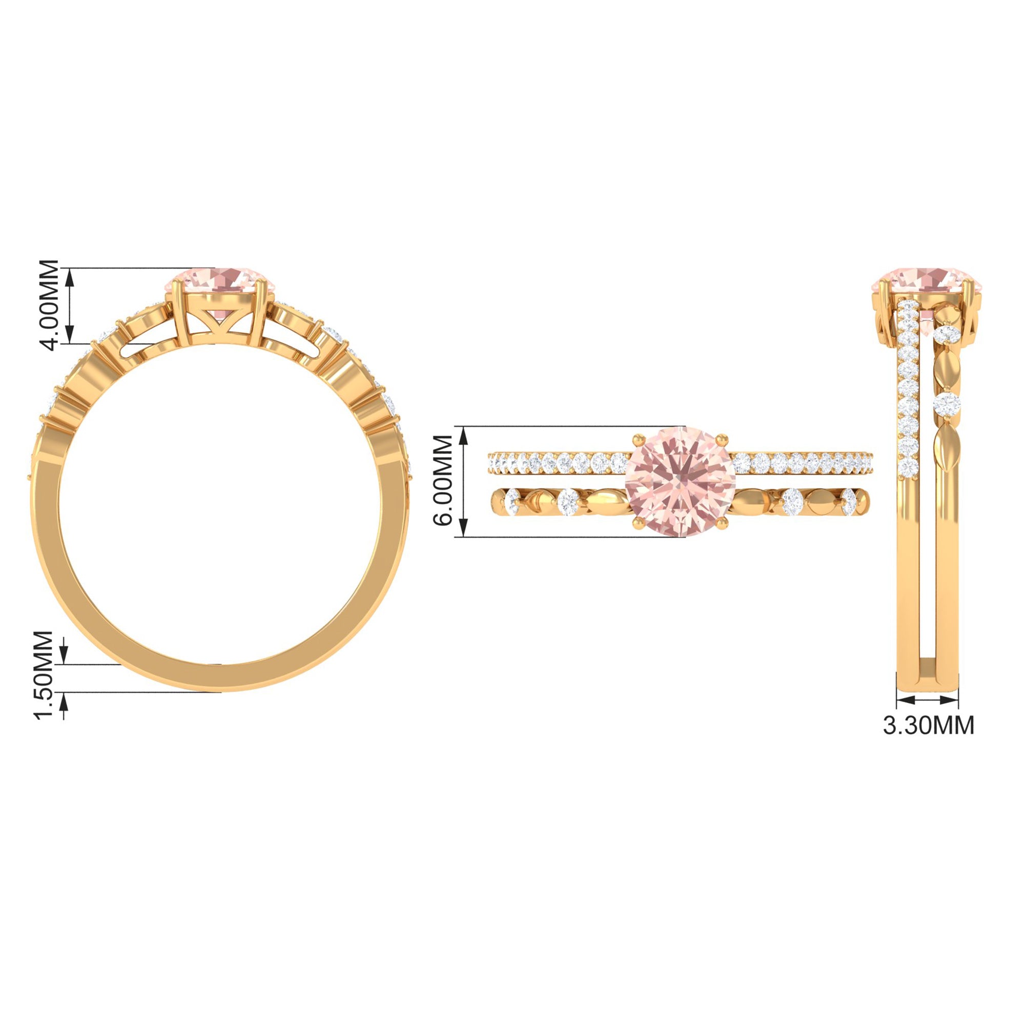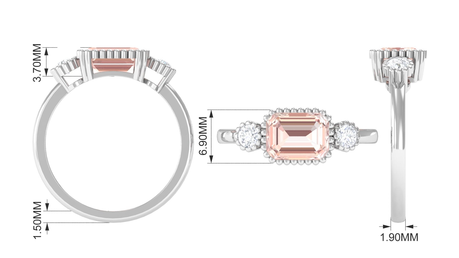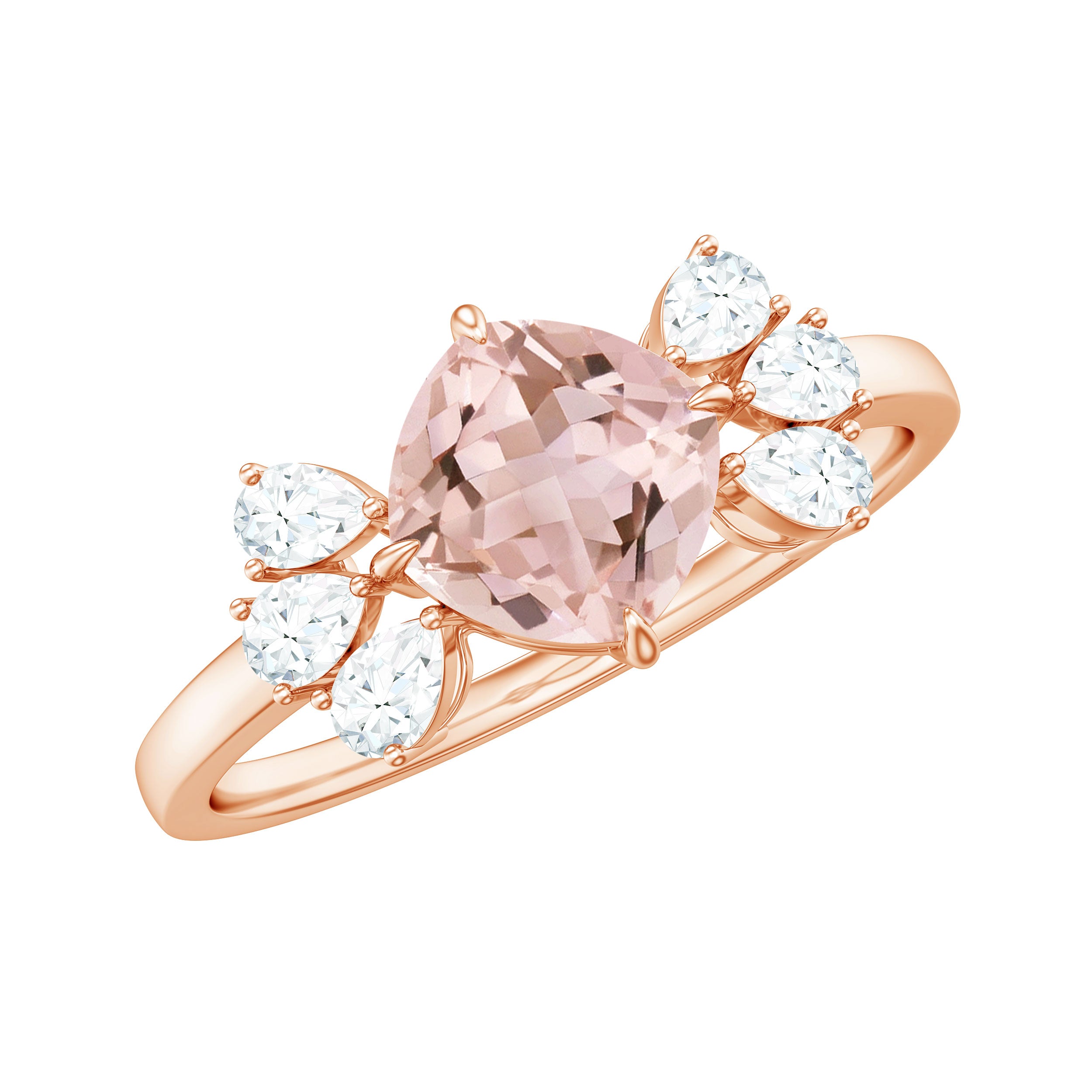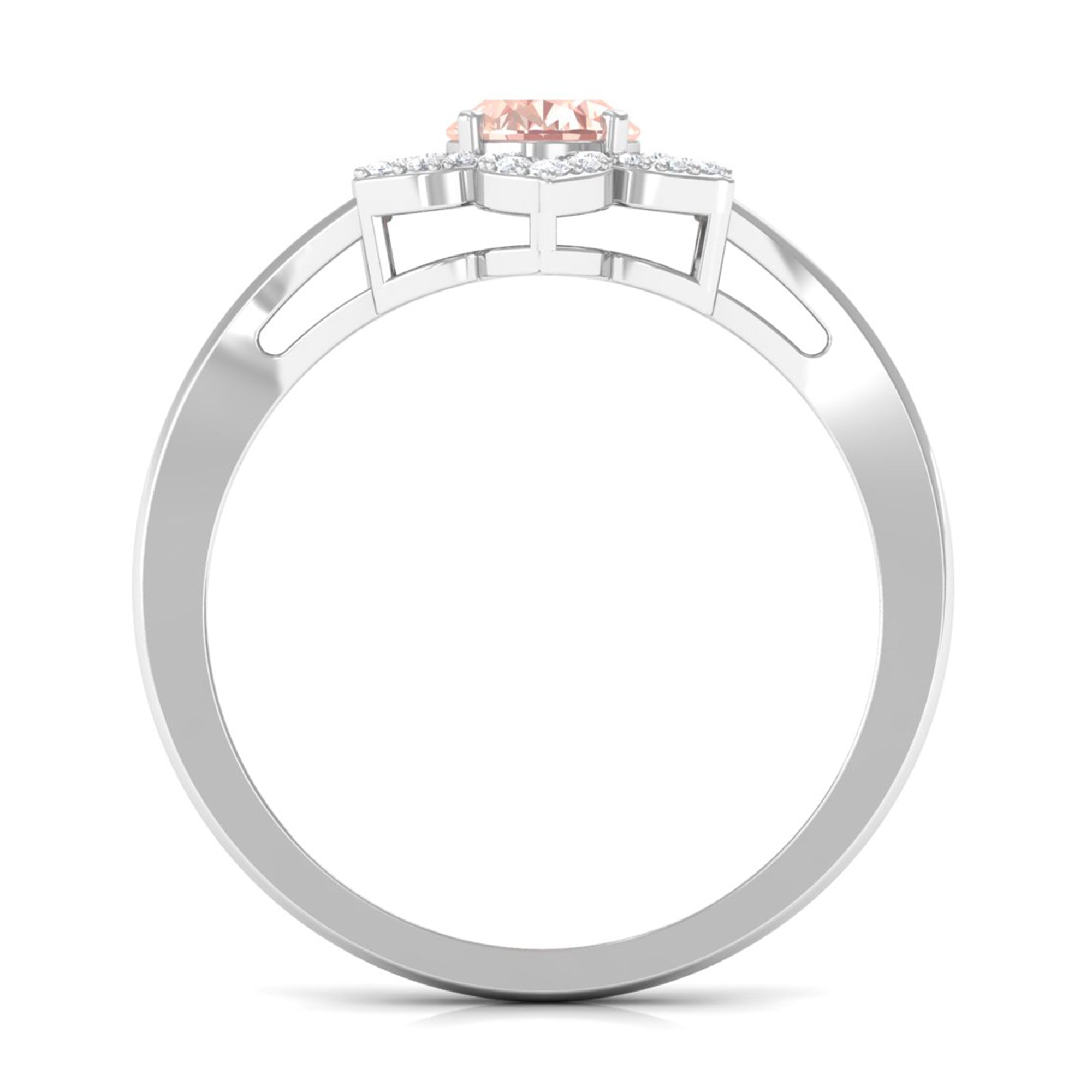 Forever in trend, a Solitaire Morganite Ring boasts a solo centerpiece of Morganite (that is meant to shine out with its enormous size of 6 MM or more). This style makes for one of the most classic cum conventional choices in the Morganite Engagement Ring. What’s more, this timeless style offers you a wide scope of versatility. It ranges from a Round Morganite Ring for the traditional bride to fancier ones like Marquise, Pear, or Princess Cut Solitaire Ring for the bride who likes to keep up with the trends. On the other hand, if nothing appeals quite like a little vintage touch, you can rely on old-school shapes like an Asscher, Cushion, or Emerald Cut Morganite Ring.