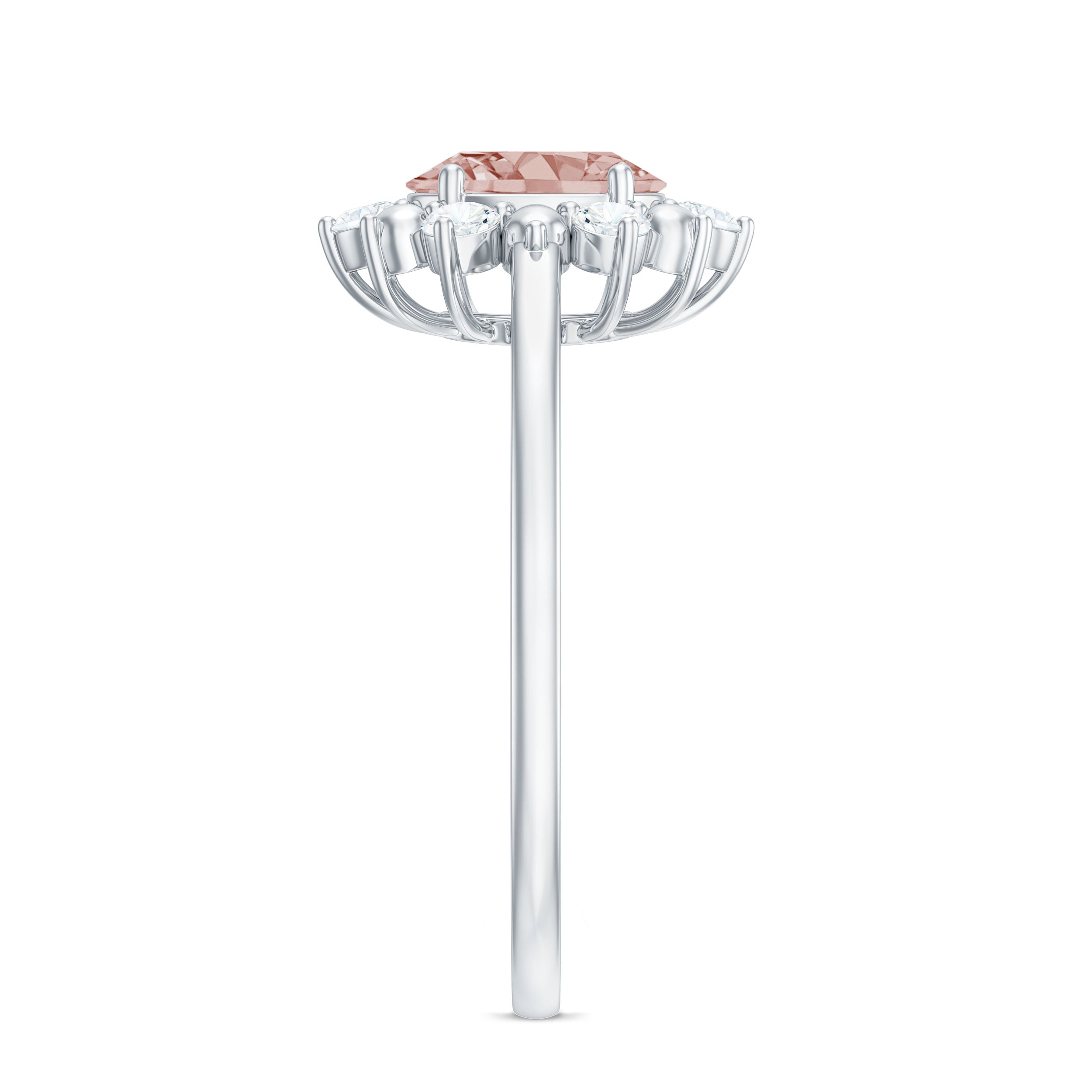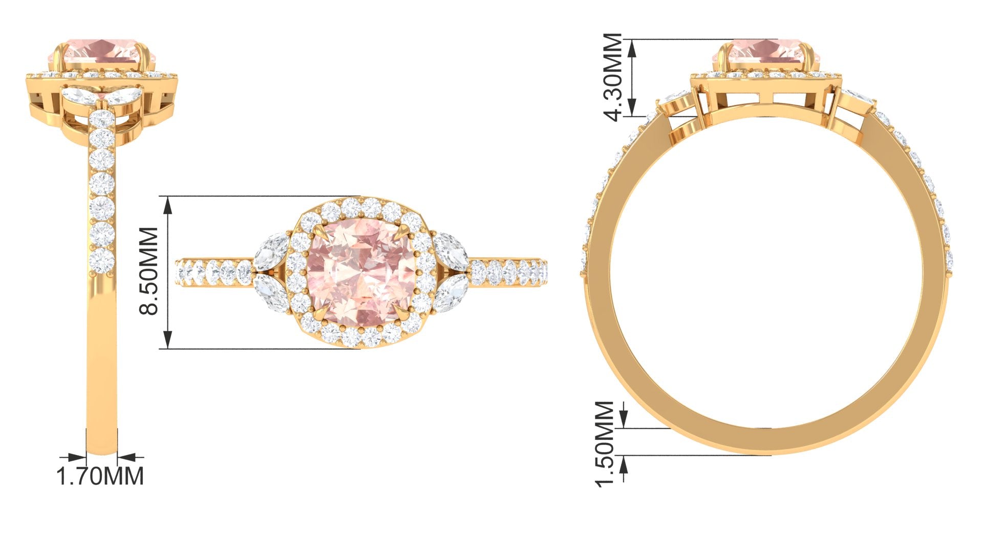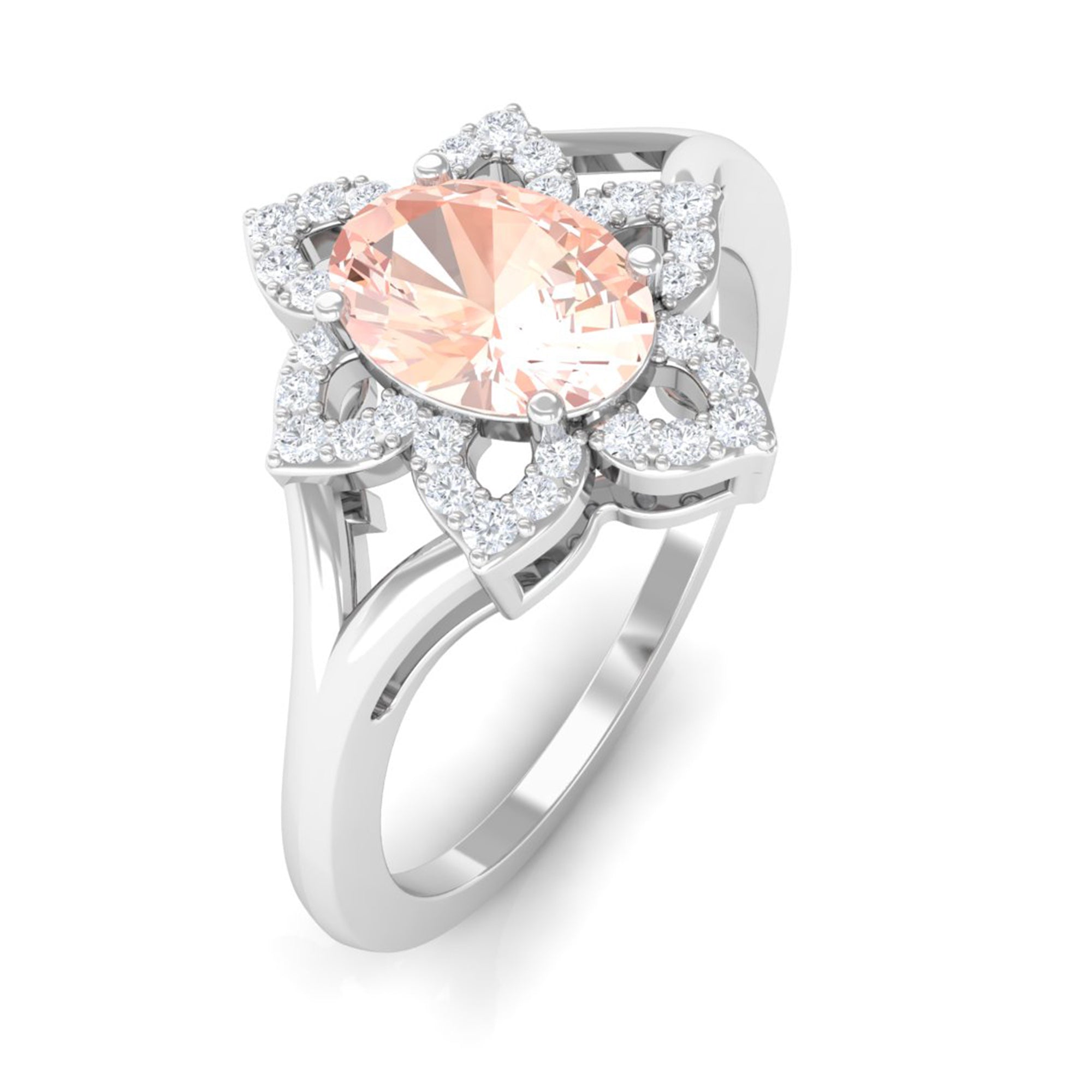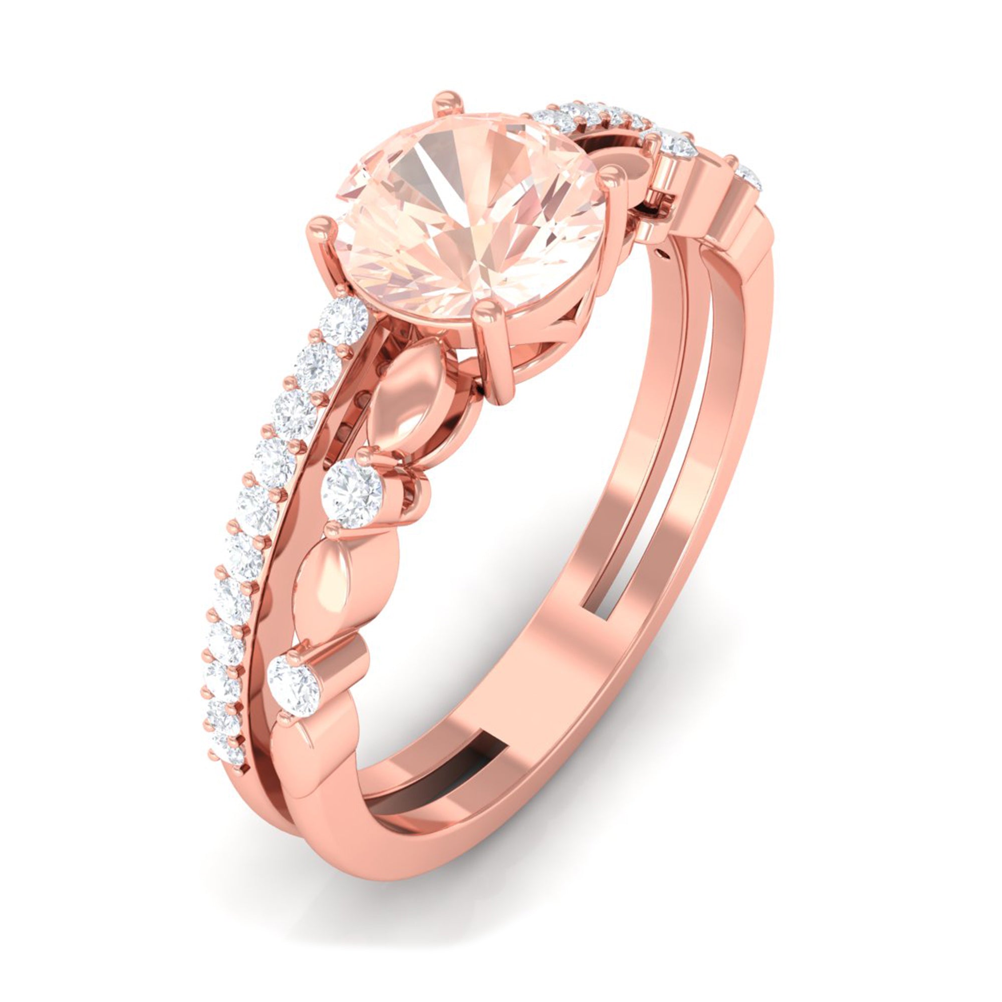 Forever in trend, a Solitaire Morganite Ring boasts a solo centerpiece of Morganite (that is meant to shine out with its enormous size of 6 MM or more). This style makes for one of the most classic cum conventional choices in the Morganite Engagement Ring. What’s more, this timeless style offers you a wide scope of versatility. It ranges from a Round Morganite Ring for the traditional bride to fancier ones like Marquise, Pear, or Princess Cut Solitaire Ring for the bride who likes to keep up with the trends. On the other hand, if nothing appeals quite like a little vintage touch, you can rely on old-school shapes like an Asscher, Cushion, or Emerald Cut Morganite Ring.