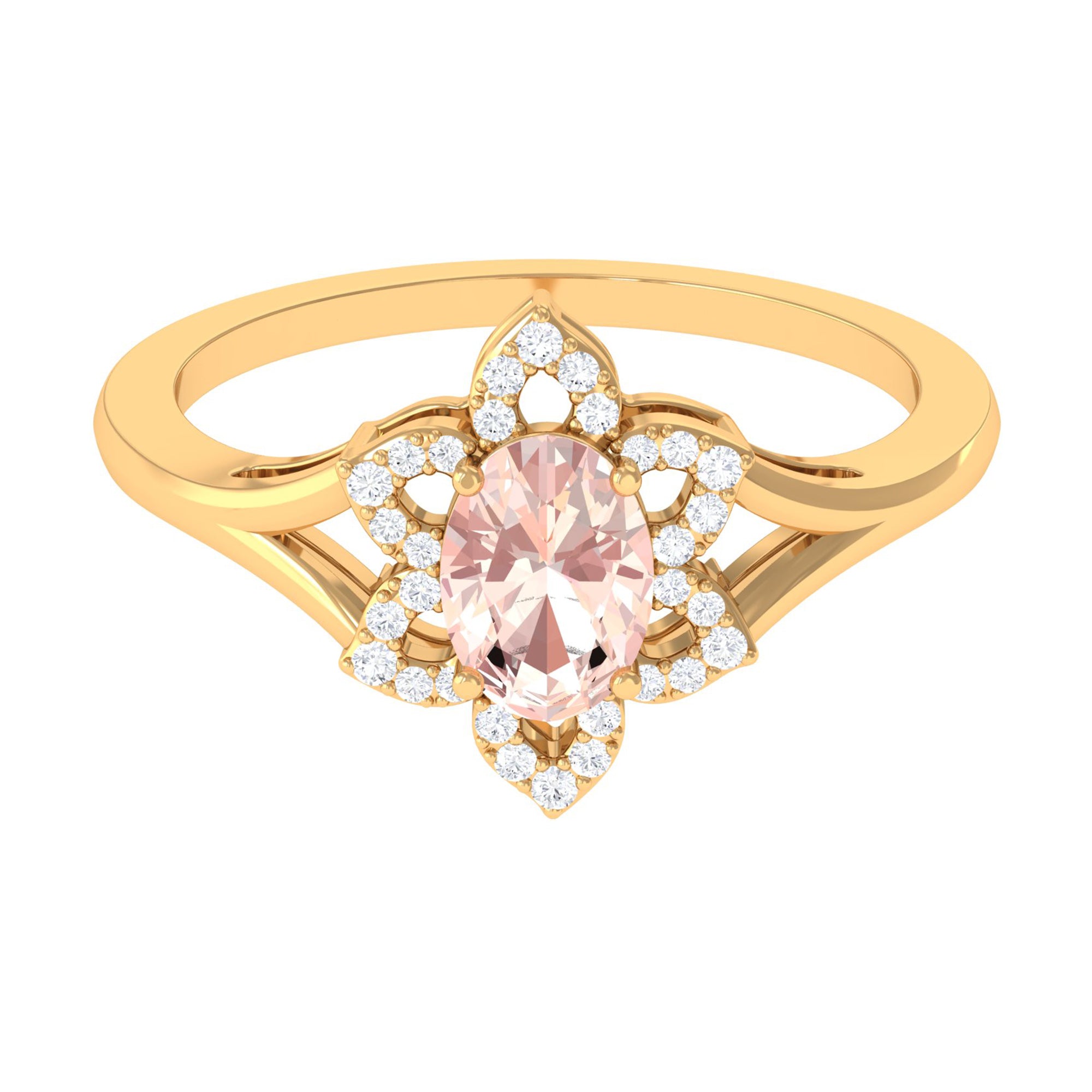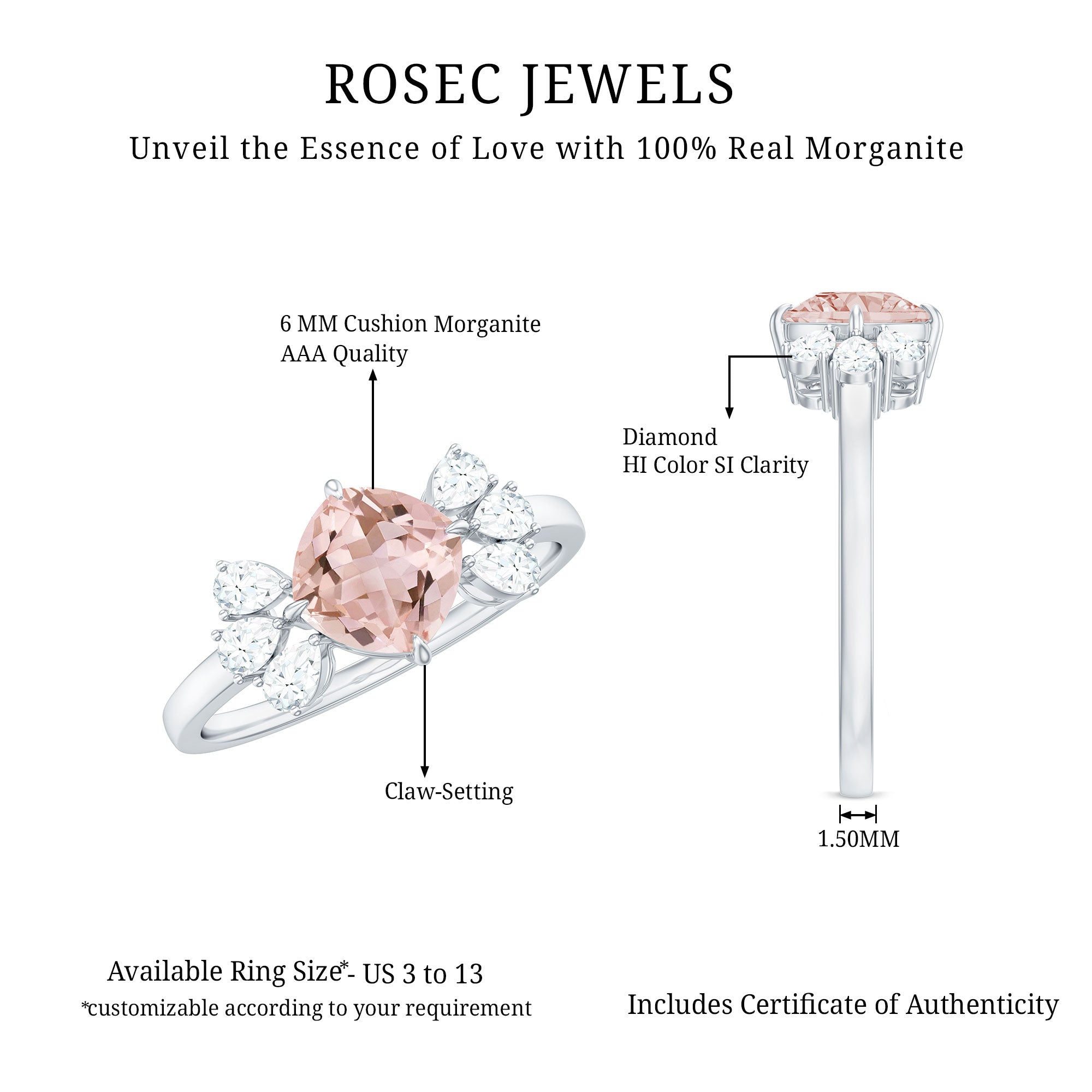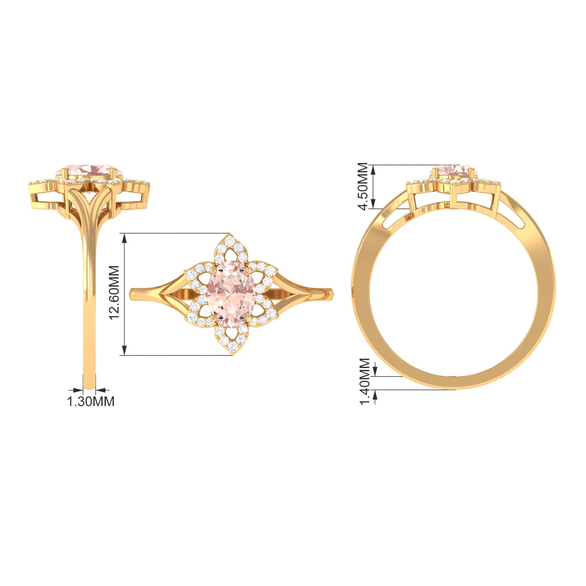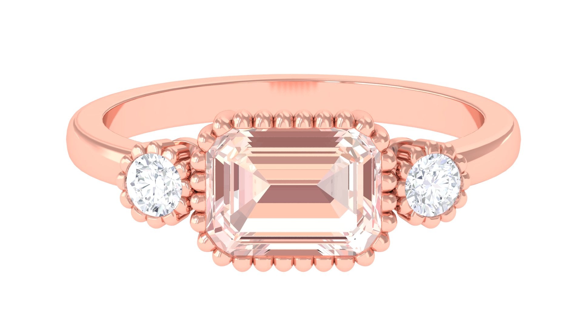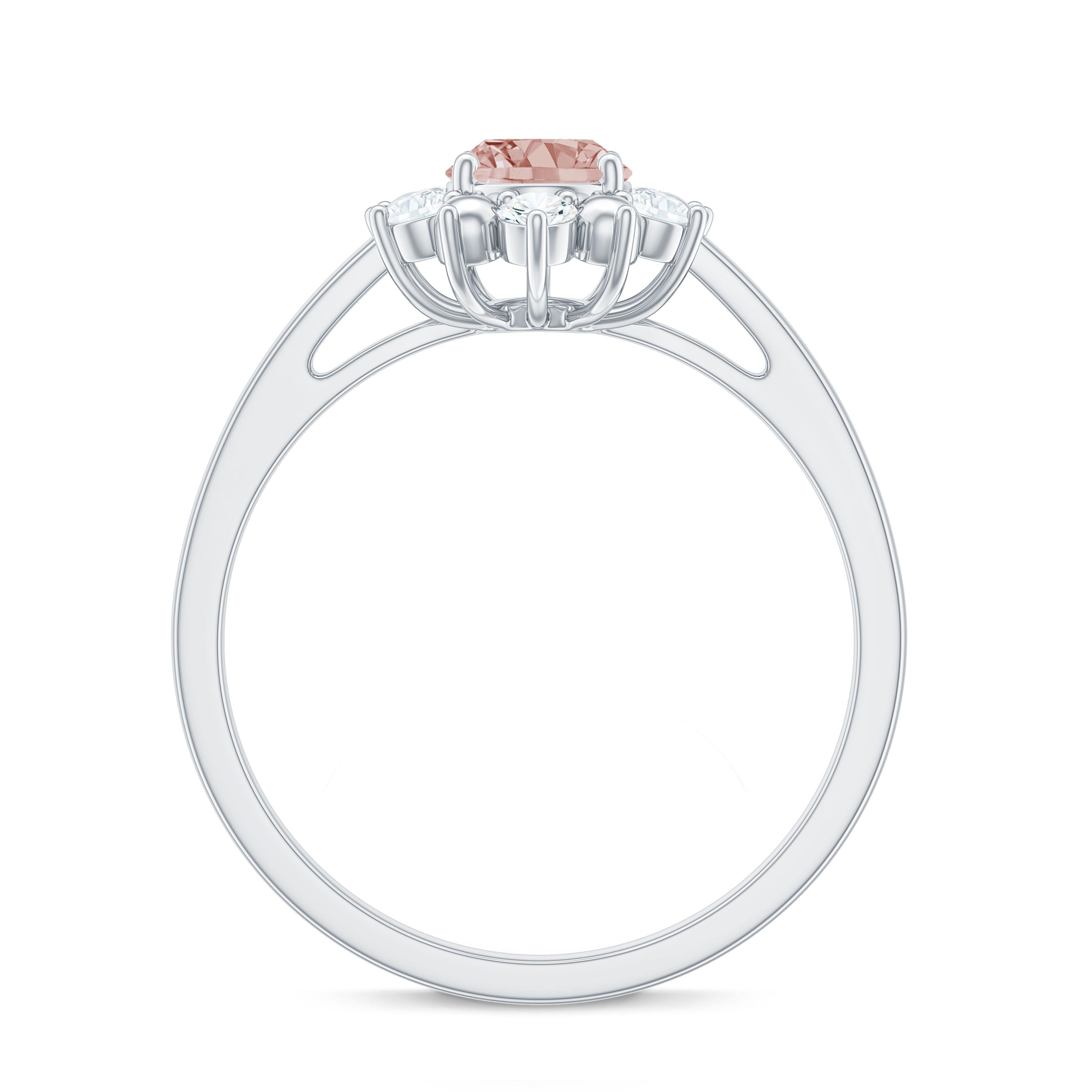Forever in trend, a Solitaire Morganite Ring boasts a solo centerpiece of Morganite (that is meant to shine out with its enormous size of 6 MM or more). This style makes for one of the most classic cum conventional choices in the Morganite Engagement Ring. What’s more, this timeless style offers you a wide scope of versatility. It ranges from a Round Morganite Ring for the traditional bride to fancier ones like Marquise, Pear, or Princess Cut Solitaire Ring for the bride who likes to keep up with the trends. On the other hand, if nothing appeals quite like a little vintage touch, you can rely on old-school shapes like an Asscher, Cushion, or Emerald Cut Morganite Ring.